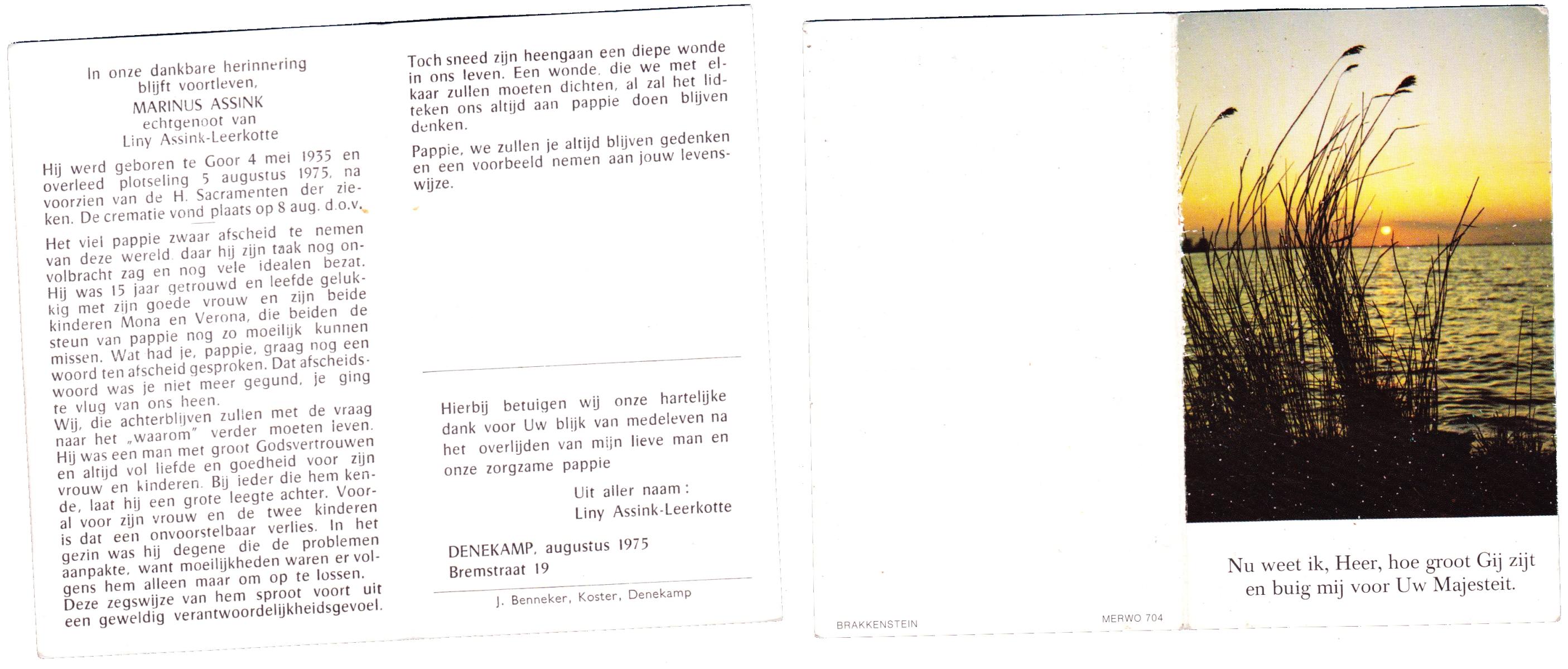 ASSINK, Marinus, geboren op 4-5-1935 te Goor, overleden op 5-8-1975 op 40-jarige leeftijd, gecremeerd op 8-8-1975.