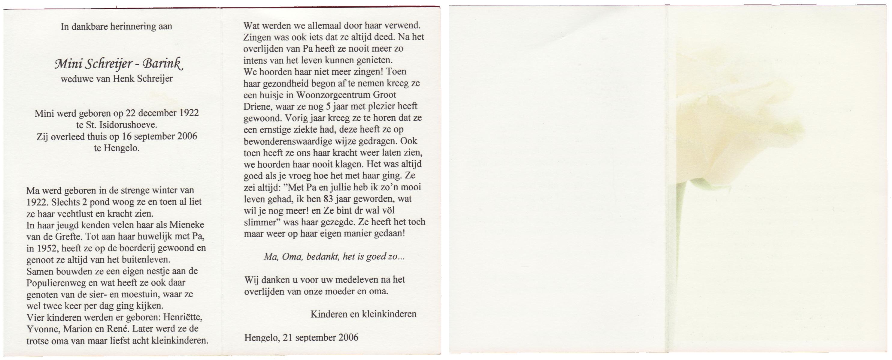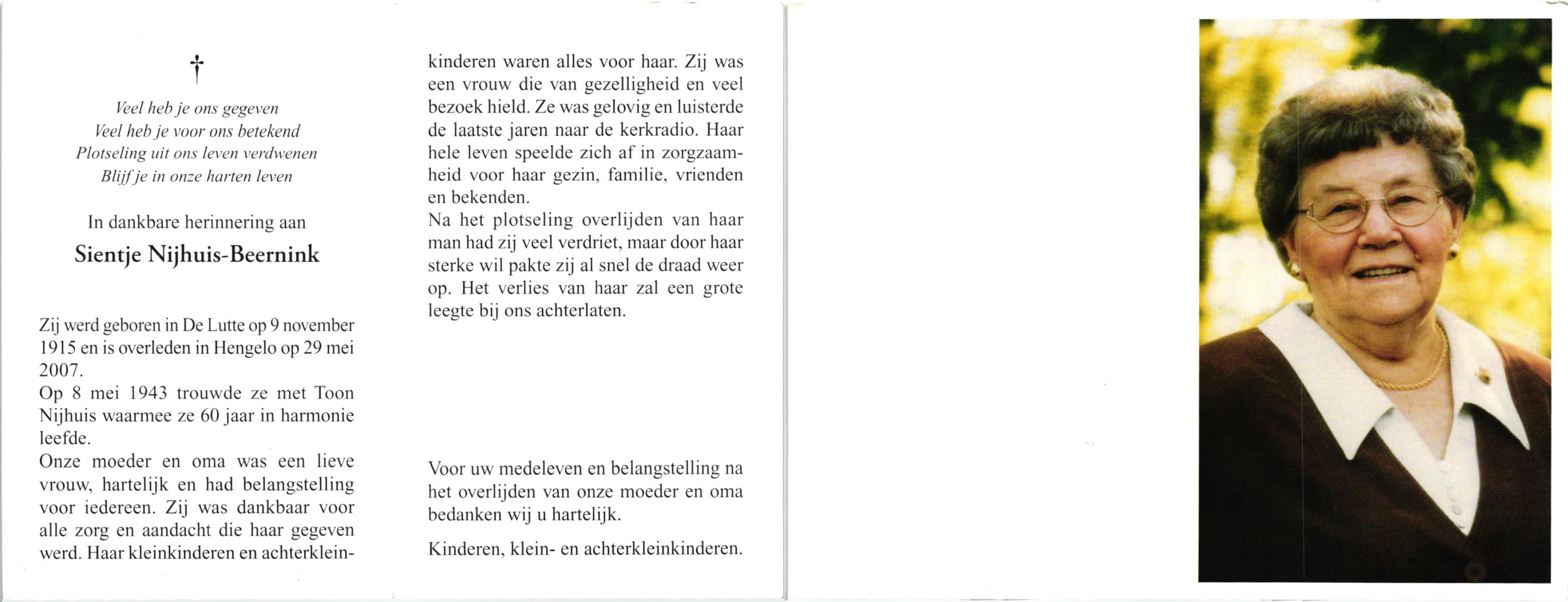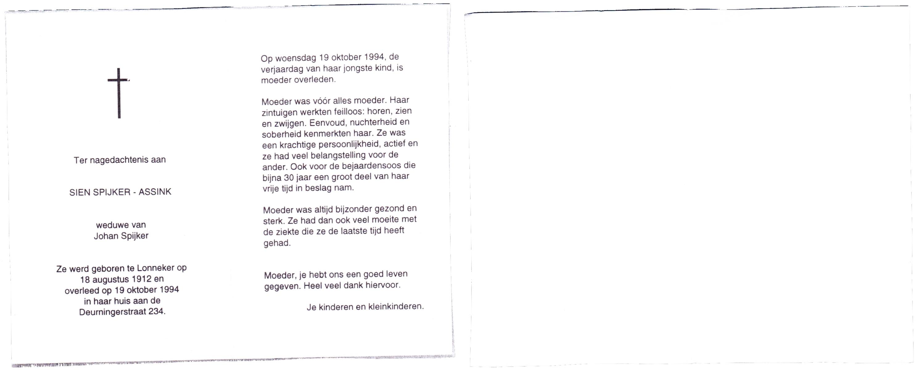 ASSINK, Sien, geboren op 18-8-1912 te Lonneker, overleden op 19-10-1994 te Lonneker op 82-jarige leeftijd.