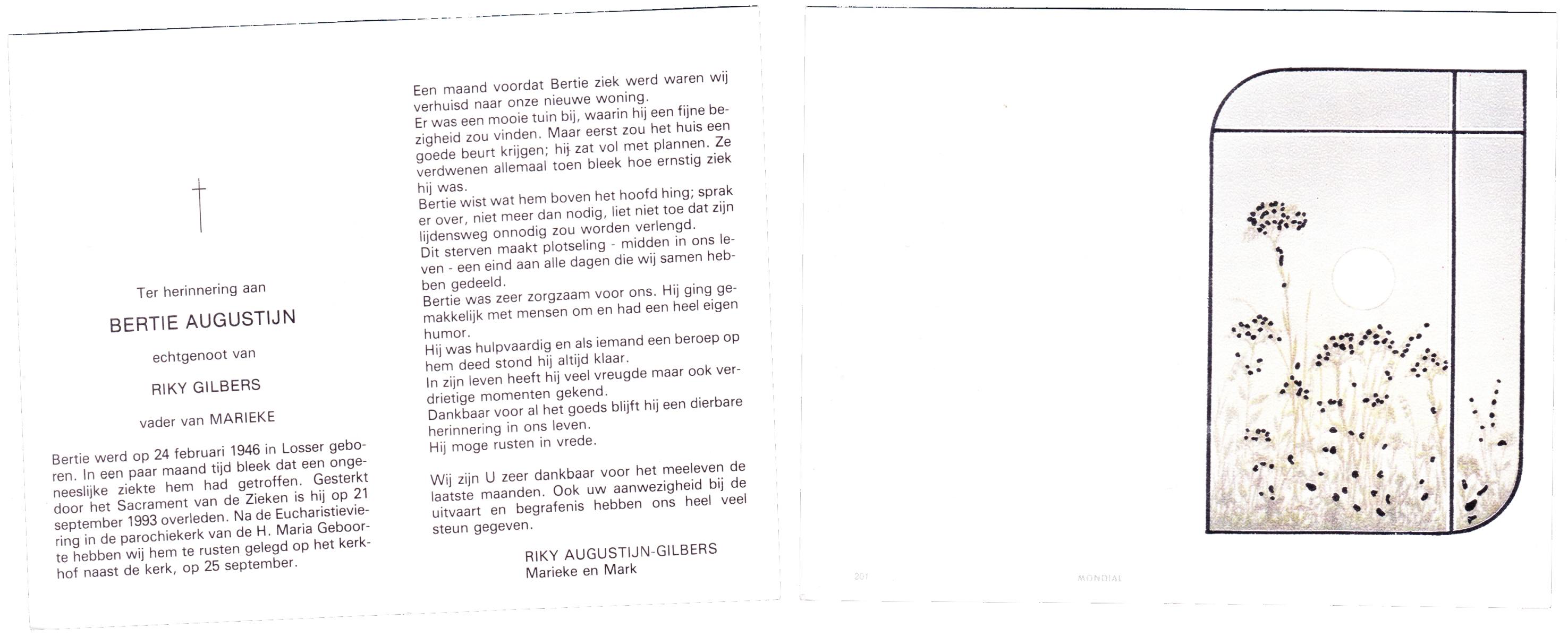 AUGUSTIJN, Bertie, geboren op 24-2-1946 te Losser, overleden op 21-9-1993 op 47-jarige leeftijd, begraven op 25-9-1993 te Losser.