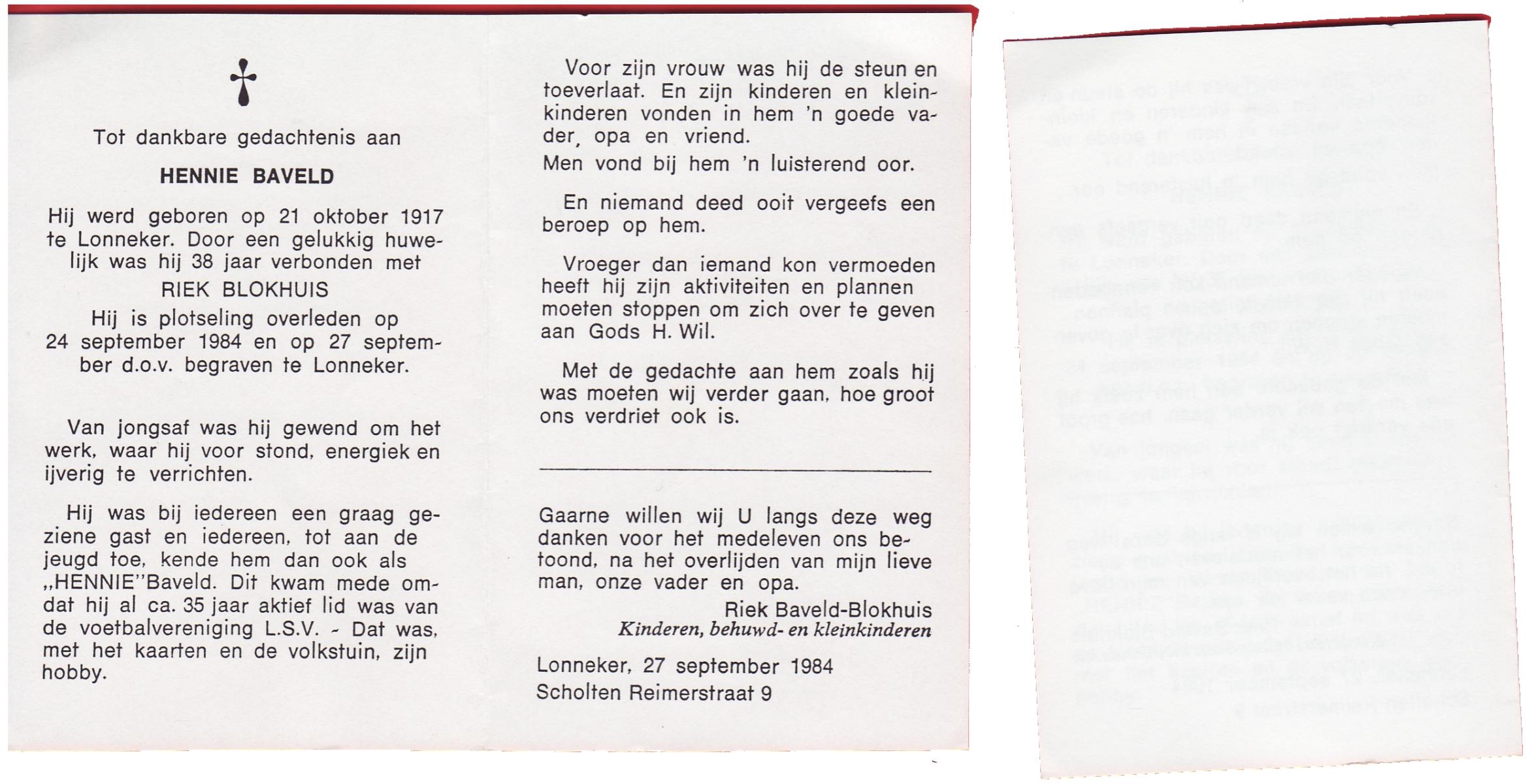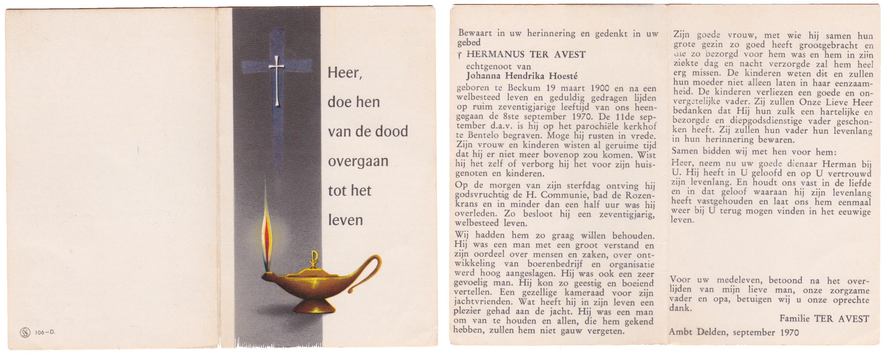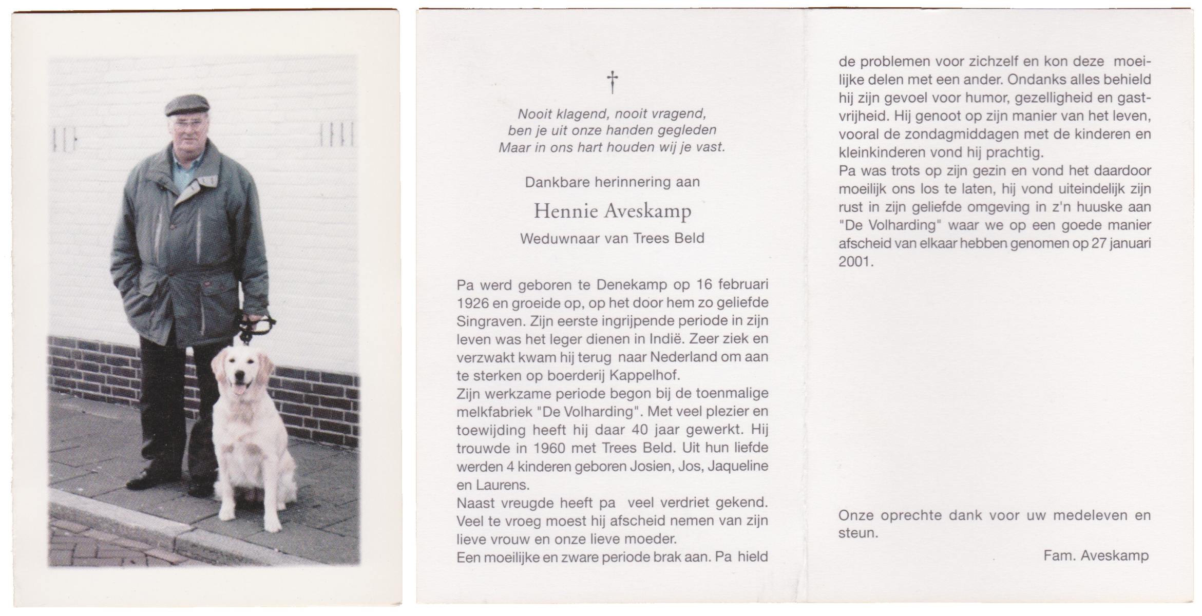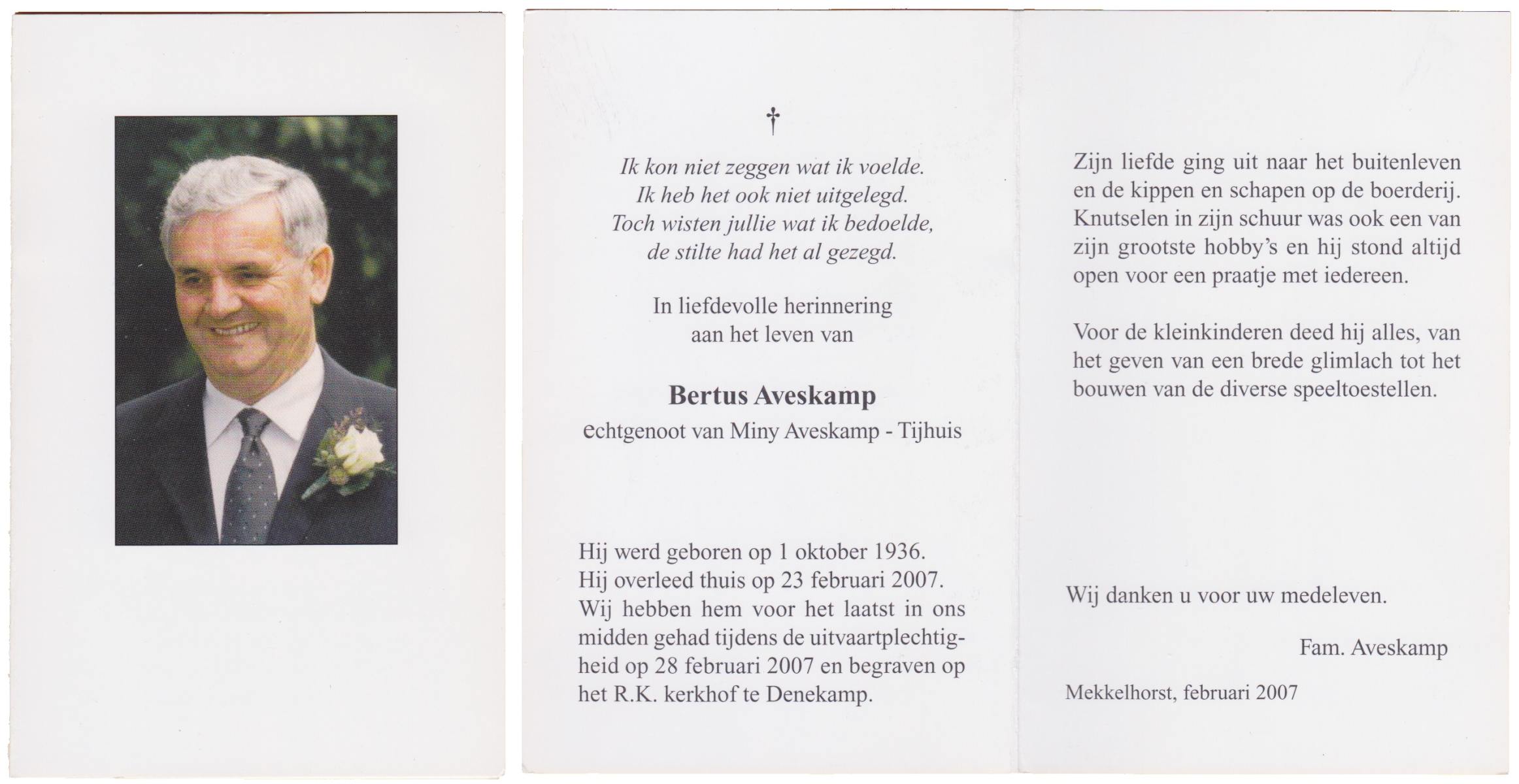 AVERDIJK, Hermanus Johannes, geboren op 18-11-1908 te Hengevelde, overleden op 28-3-1984 te Hengevelde op 74-jarige leeftijd, begraven op 31-3-1984 te Hengevelde.