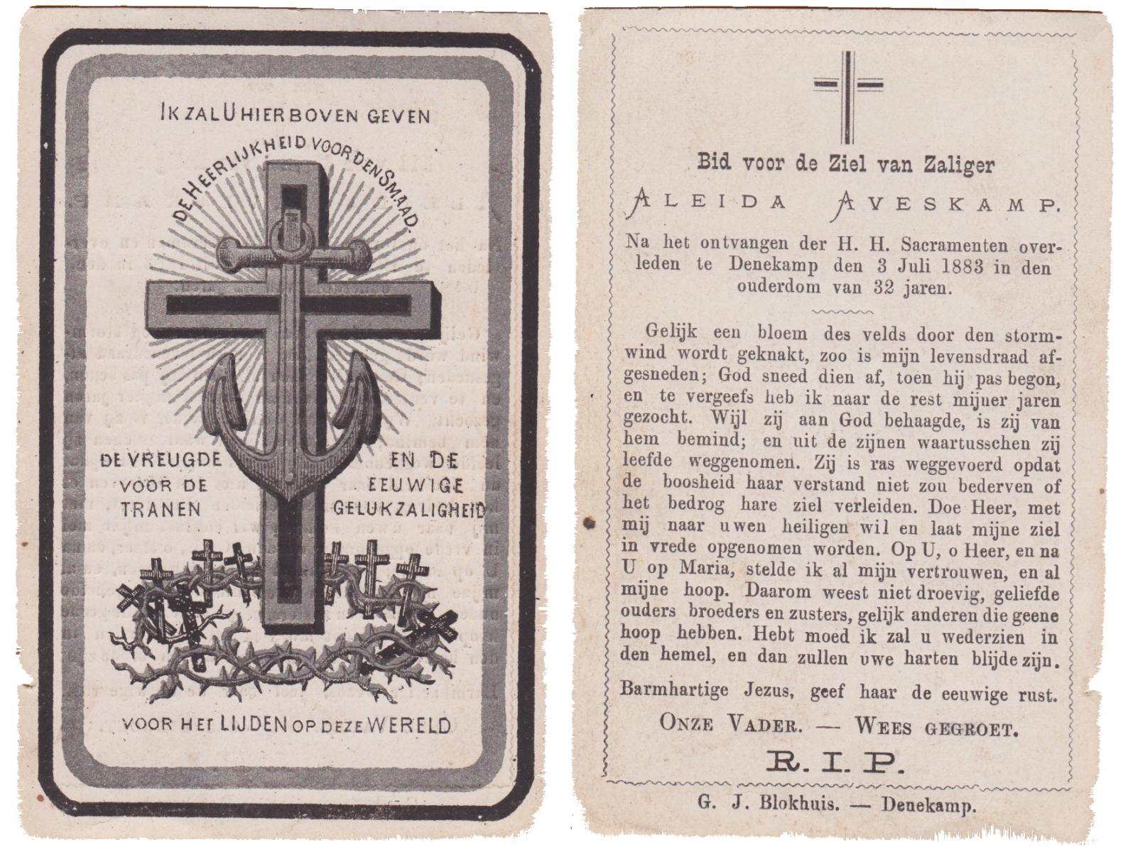 AVESKAMP, Aleida, geboren op -, overleden op 03-07-1883 te Denekamp op 32-jarige leeftijd.
