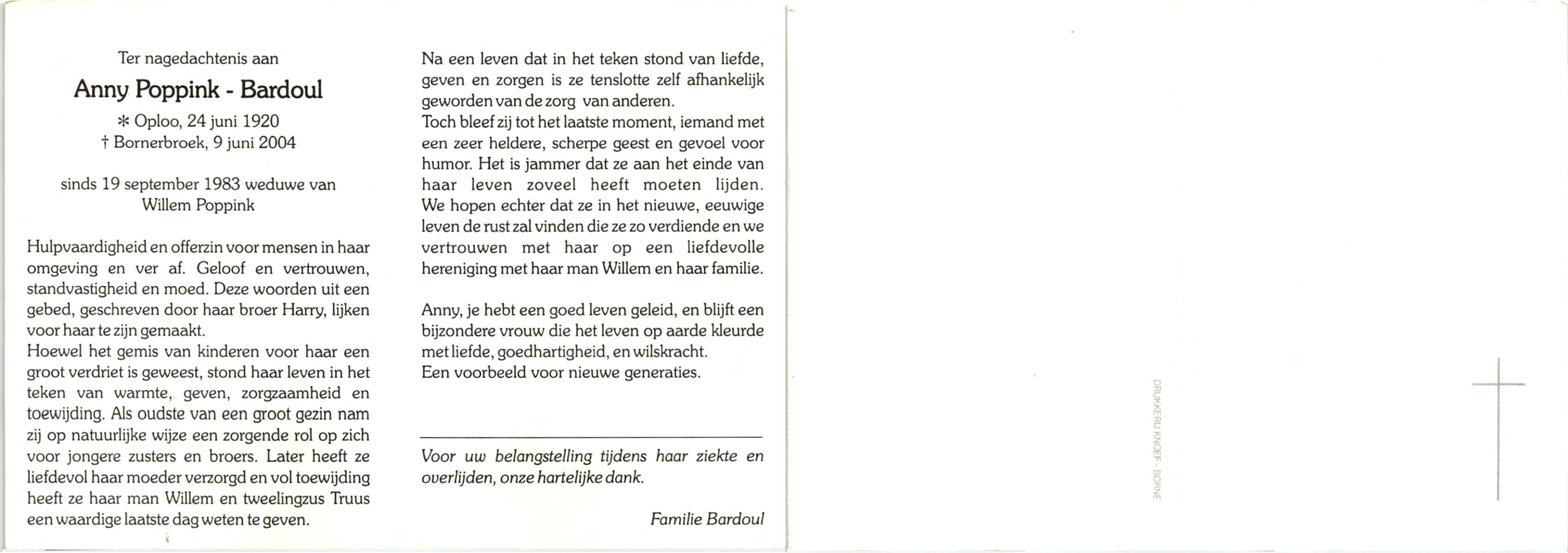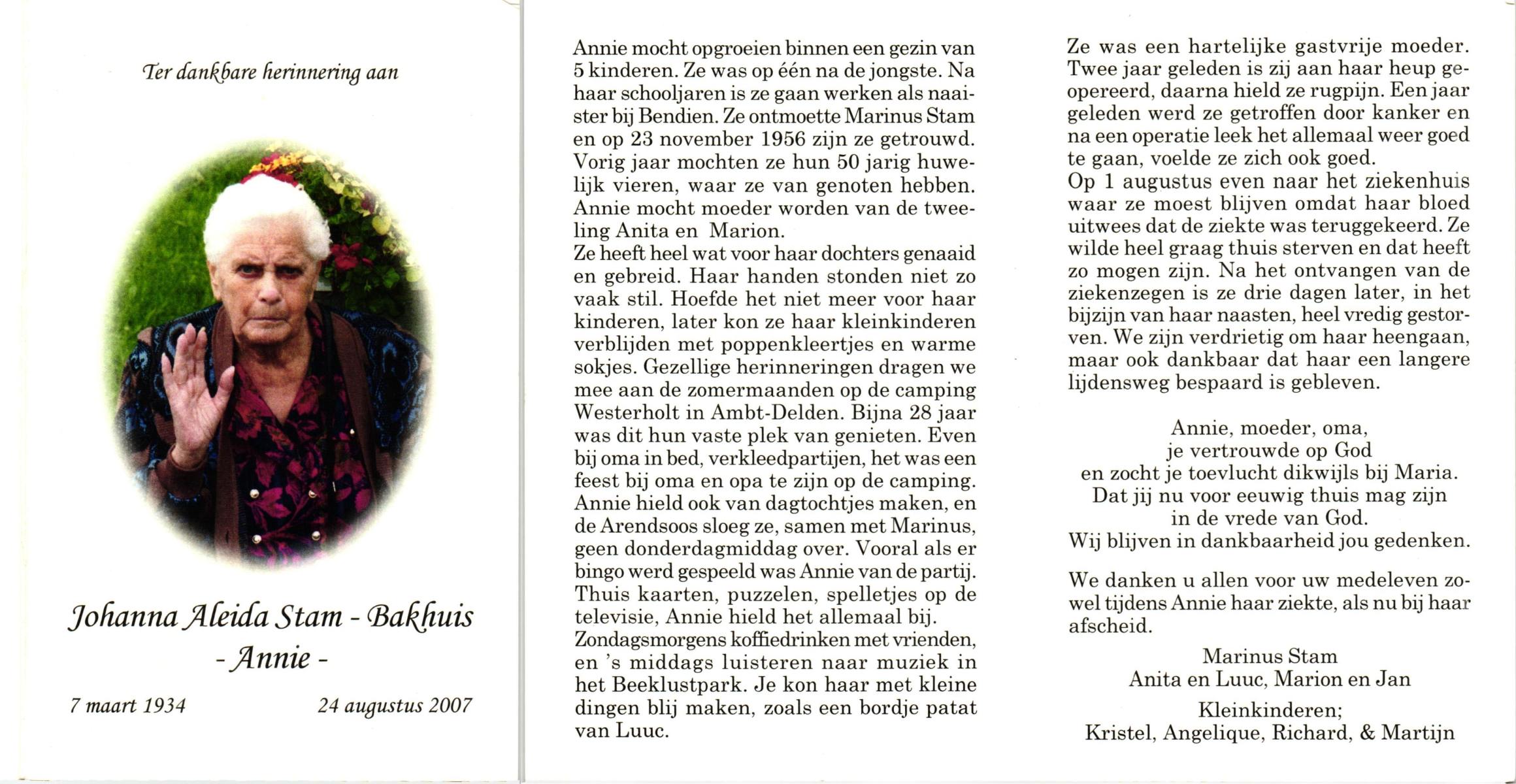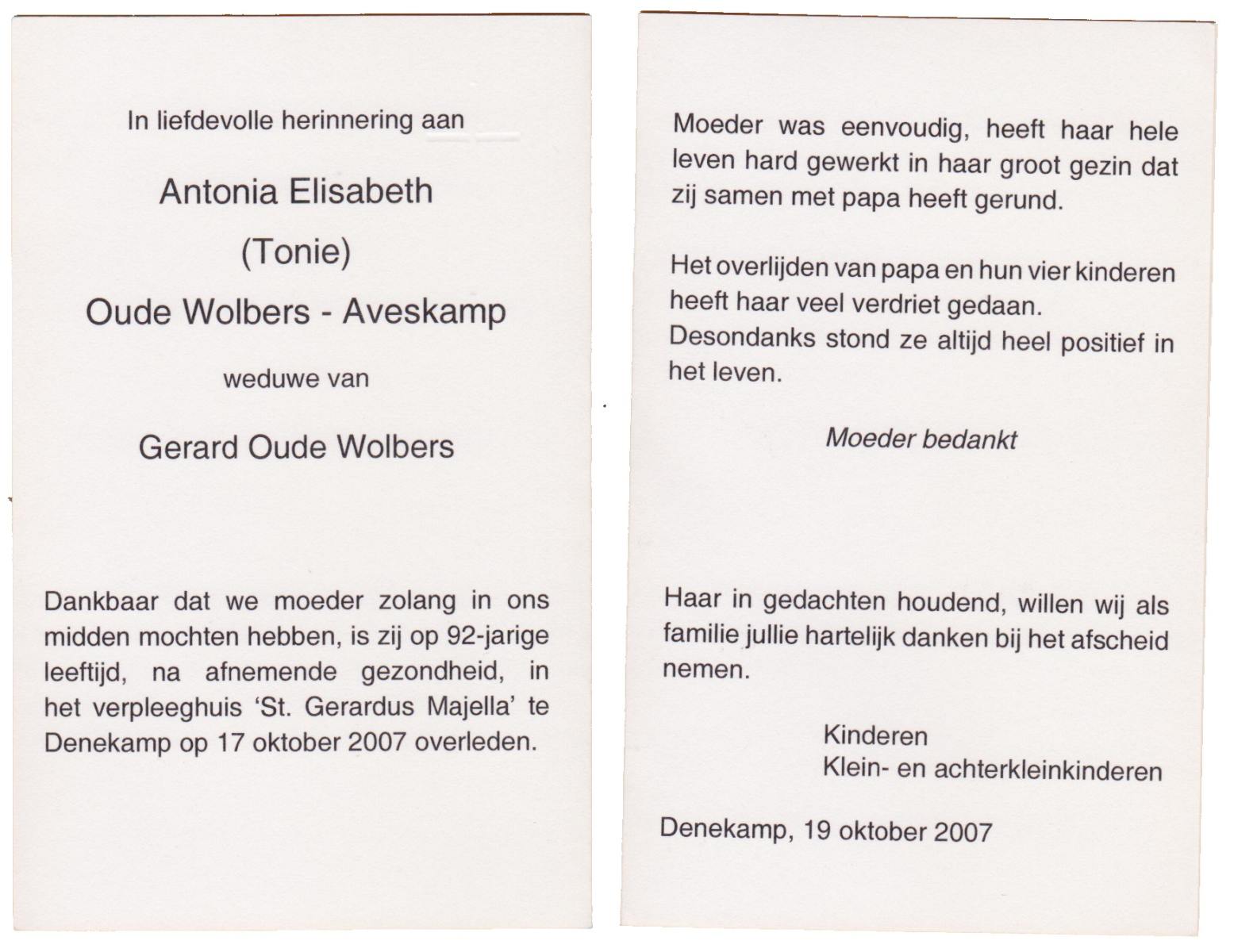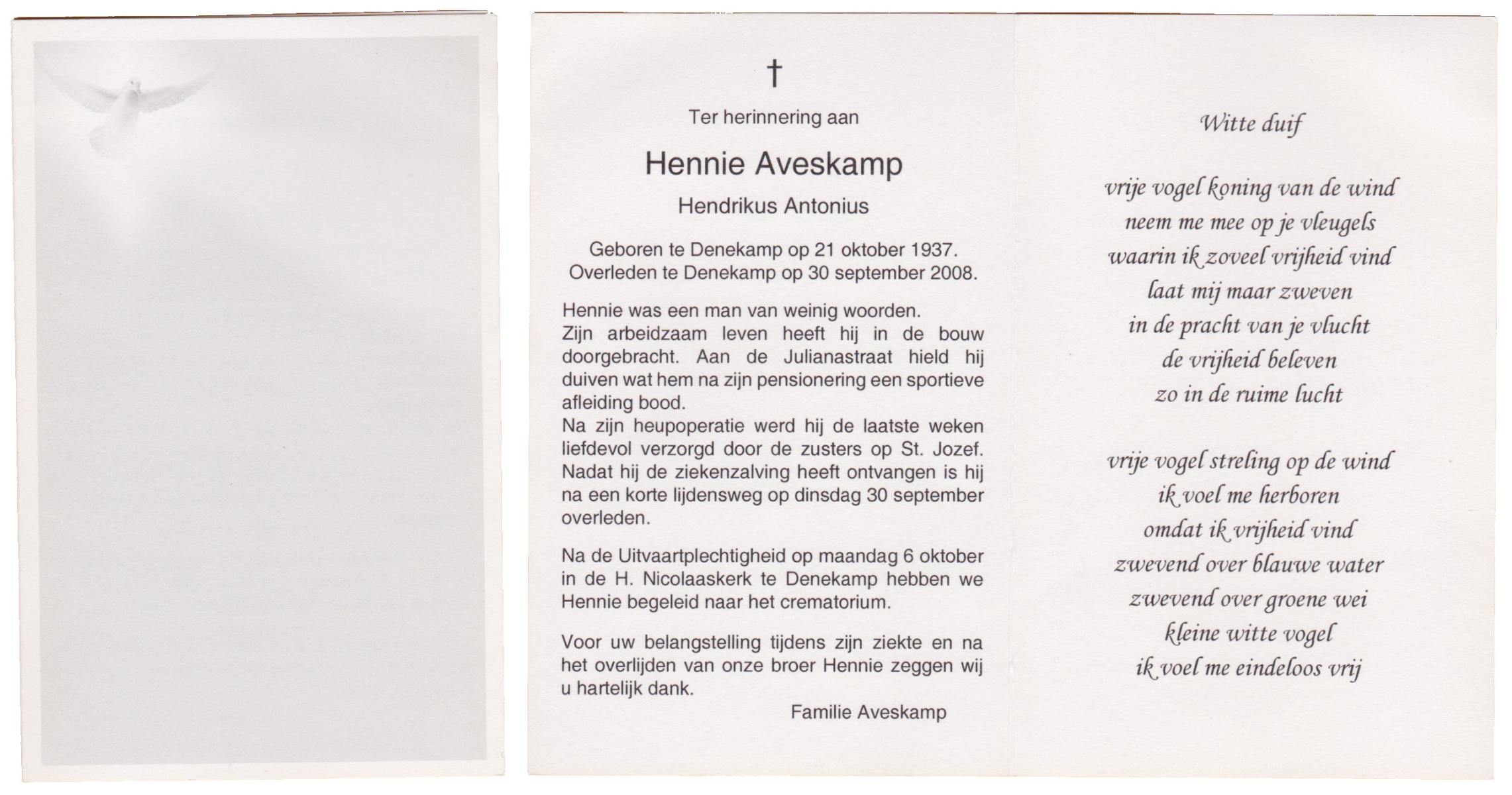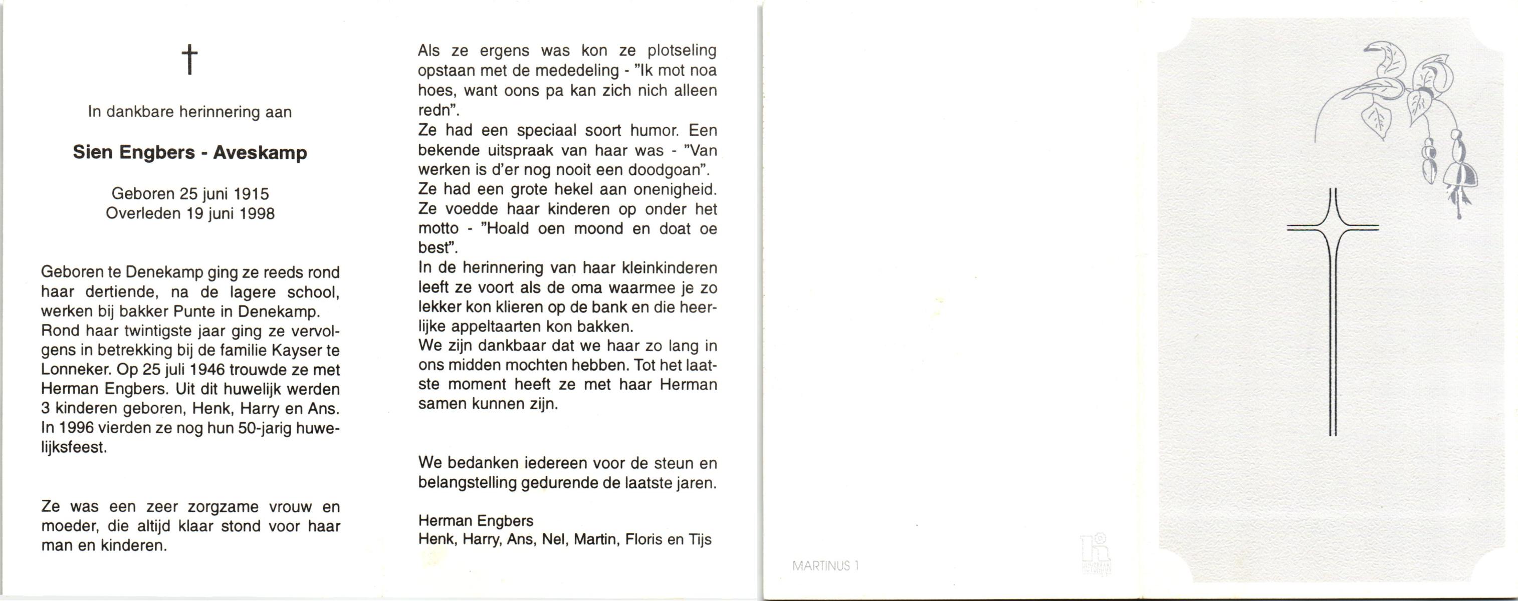 AVESKAMP, Annie, geboren op 28-10-1922 te Denekamp, overleden op 29-6-2006 op 83-jarige leeftijd.