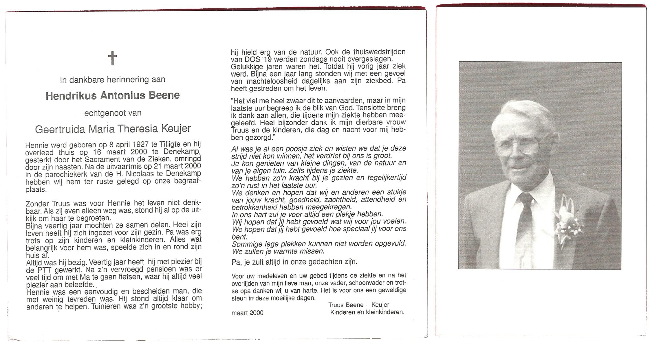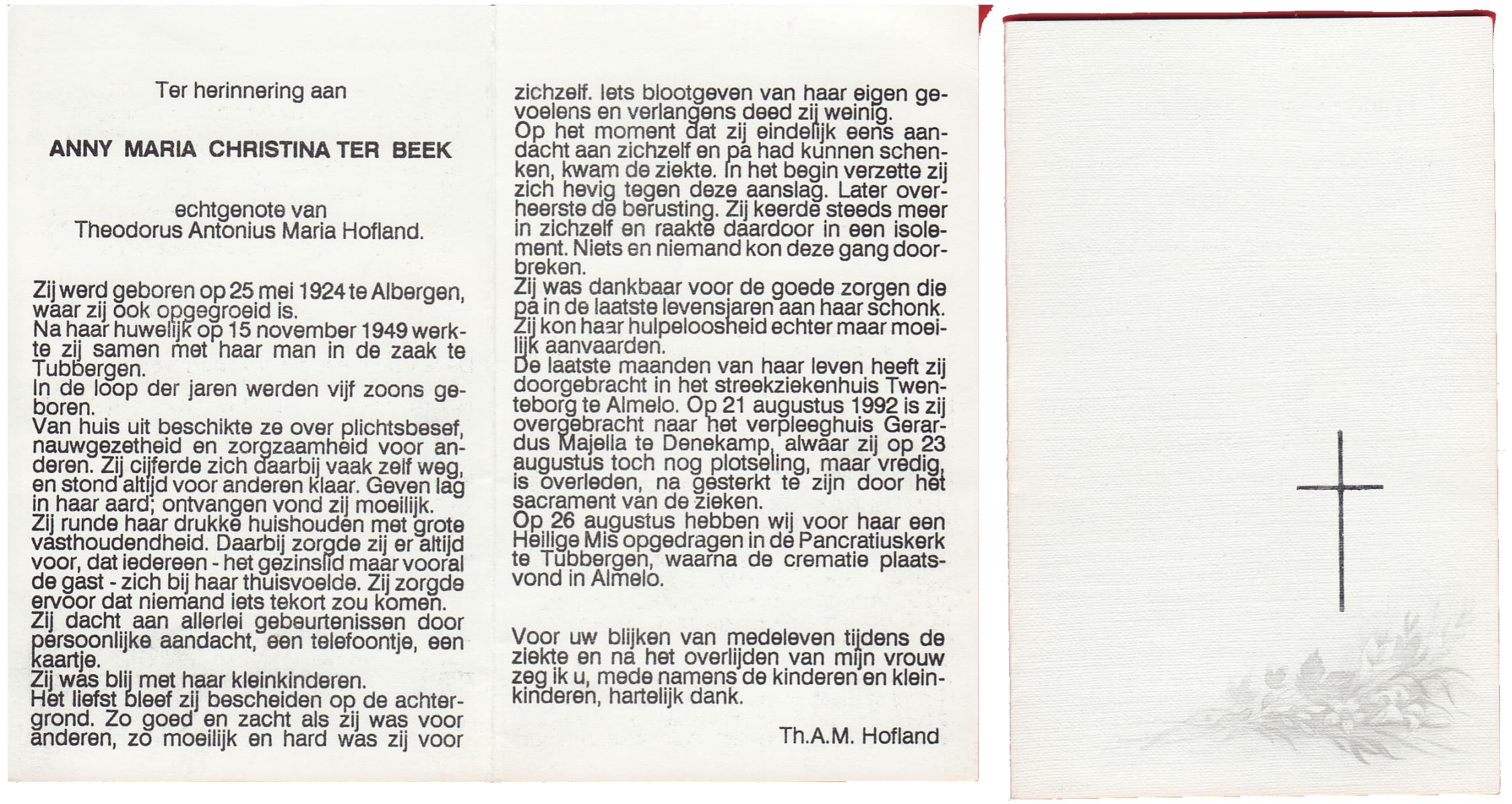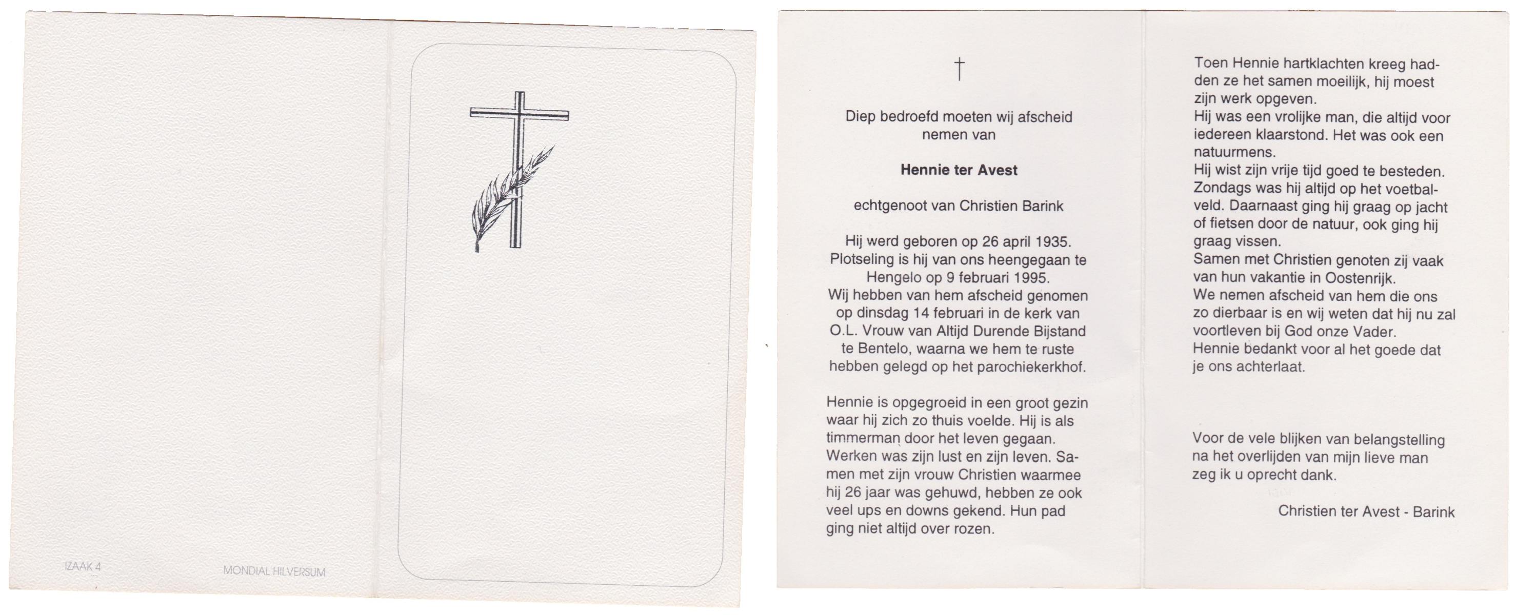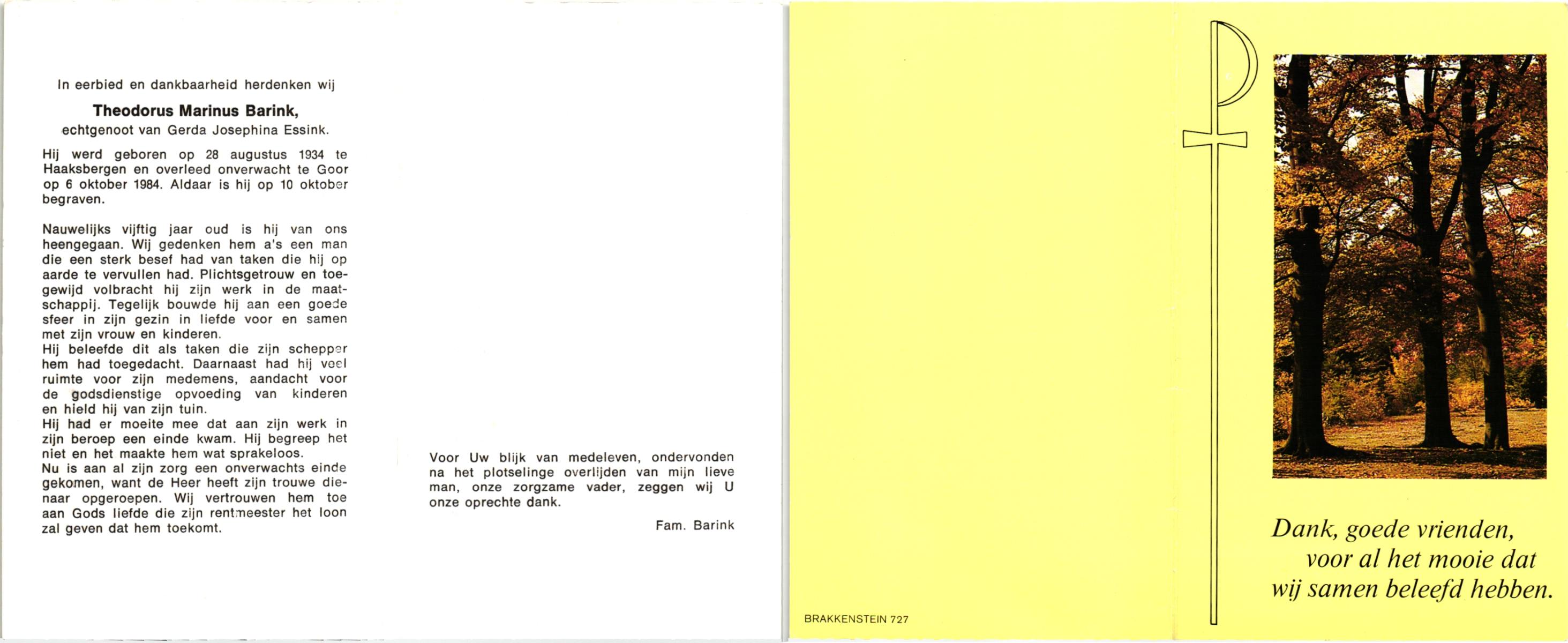 BEKE, ter, Theodorus Hendrikus, geboren op 5-7-1930 te Enschede, overleden op 27-10-1993 te Enschede op 63-jarige leeftijd, gecremeerd op 29-10-1993 te Usselo.
