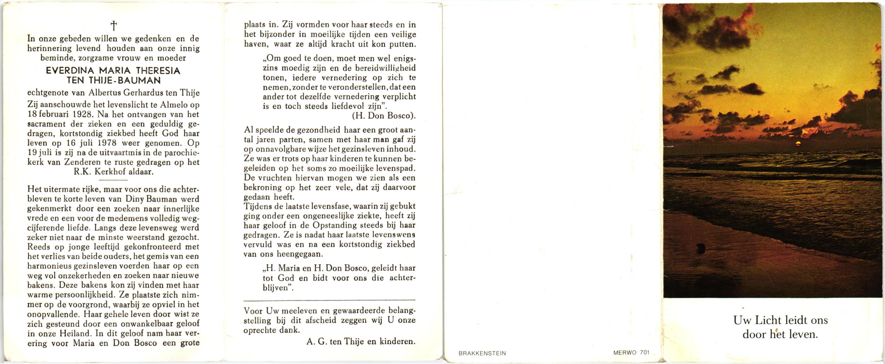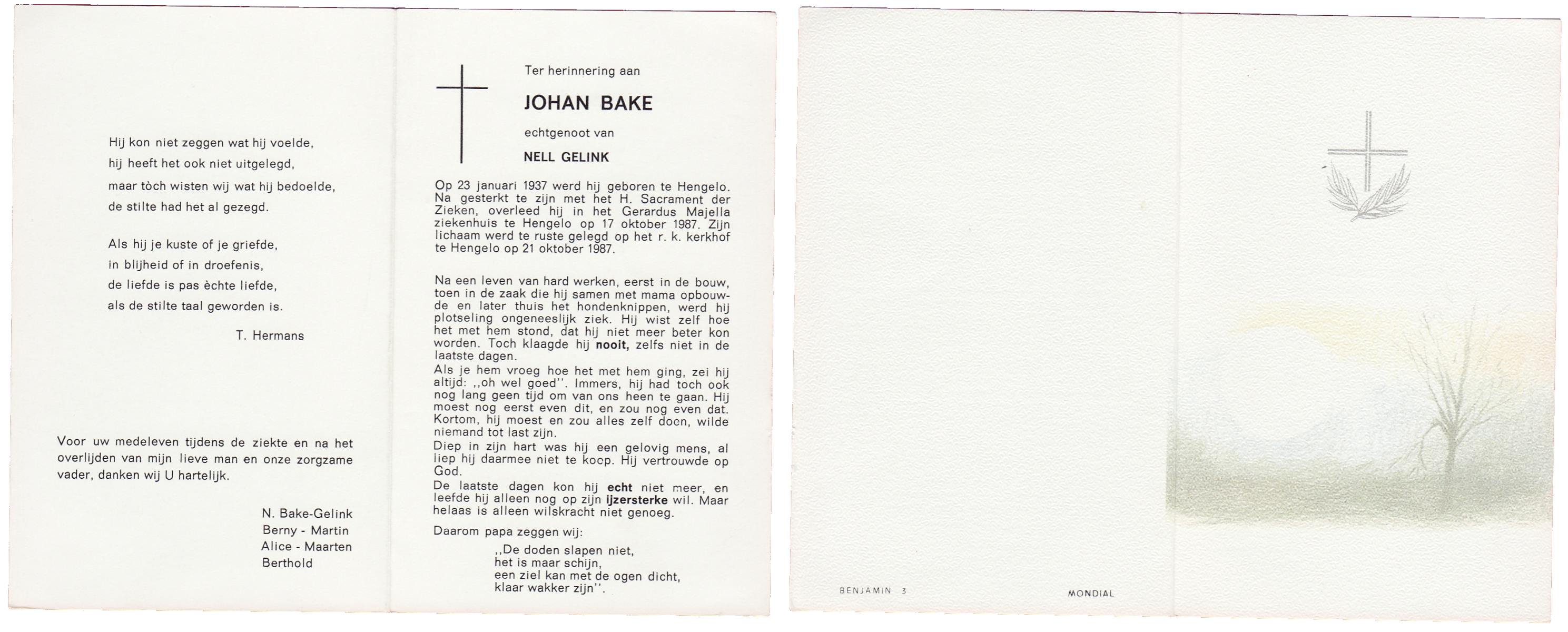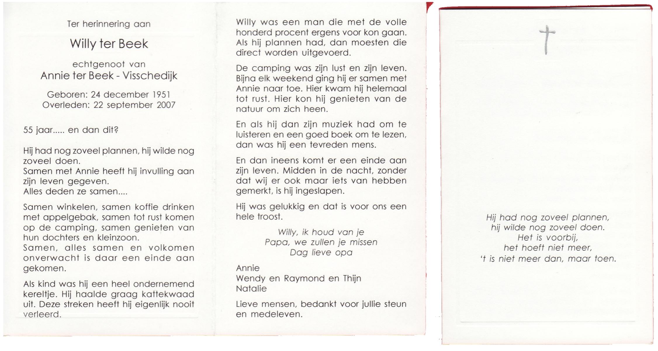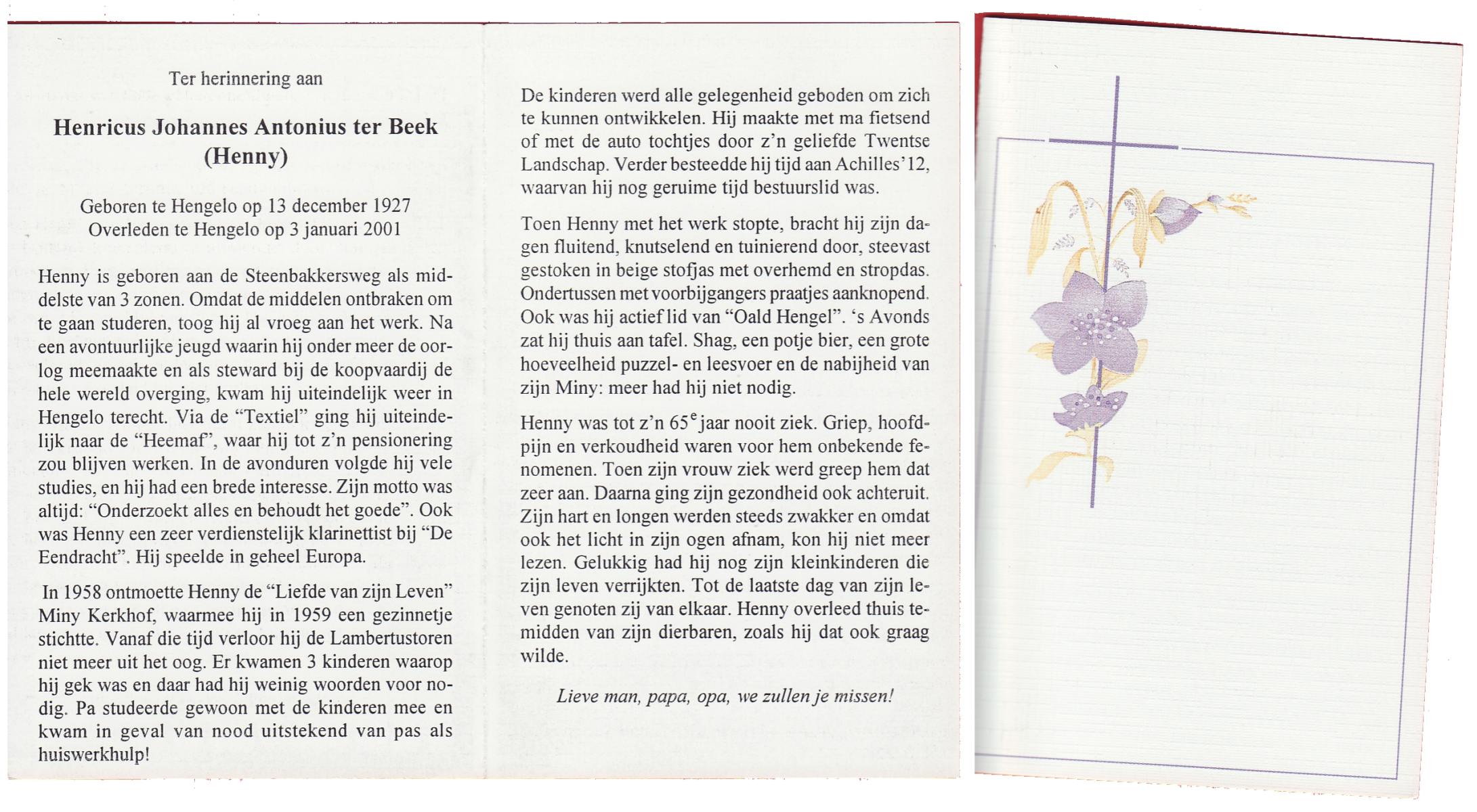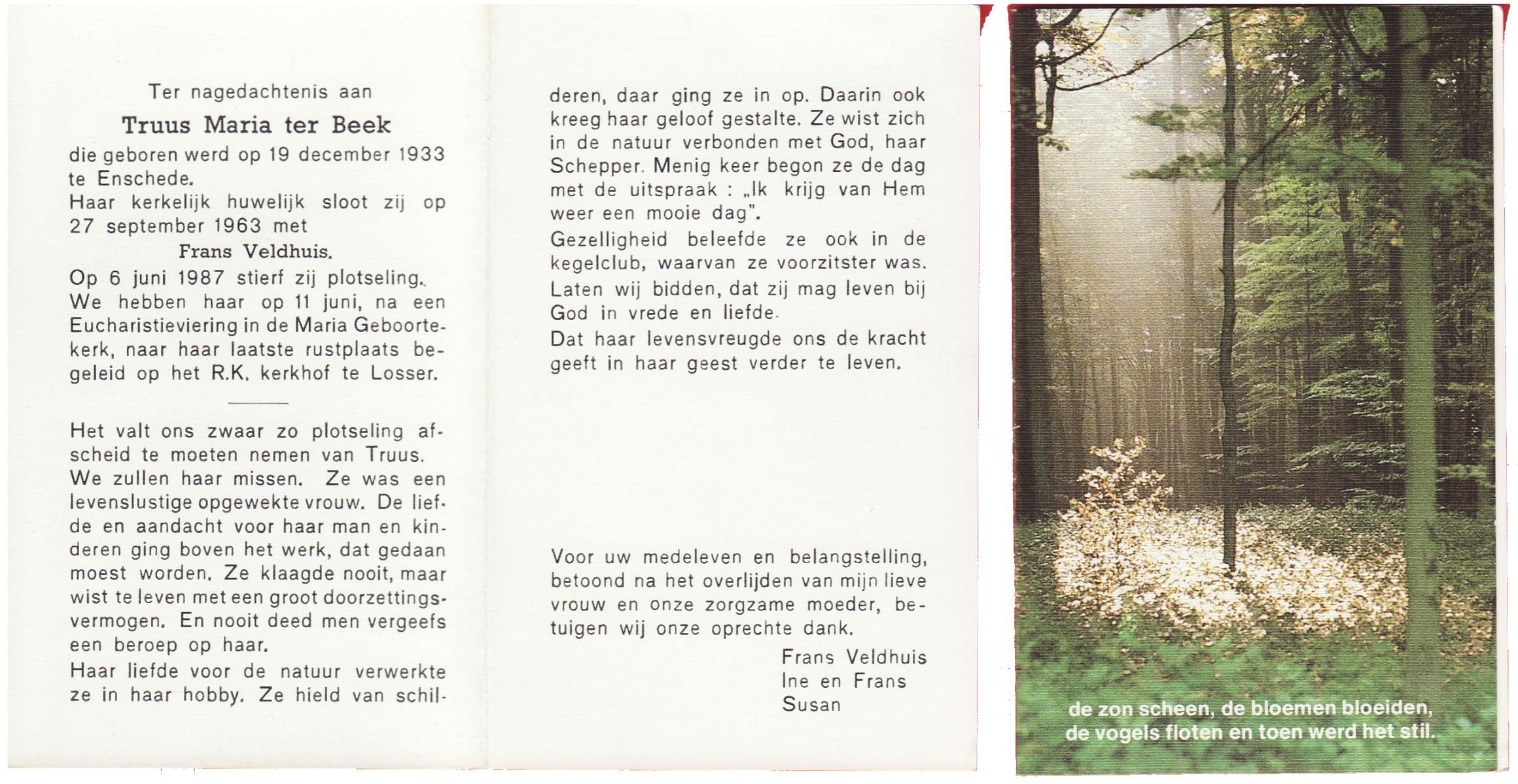BEKE, ter, Theodorus Hendrikus, geboren op 5-7-1930 te Enschede, overleden op 27-10-1993 te Enschede op 63-jarige leeftijd, gecremeerd op 29-10-1993 te Usselo.
