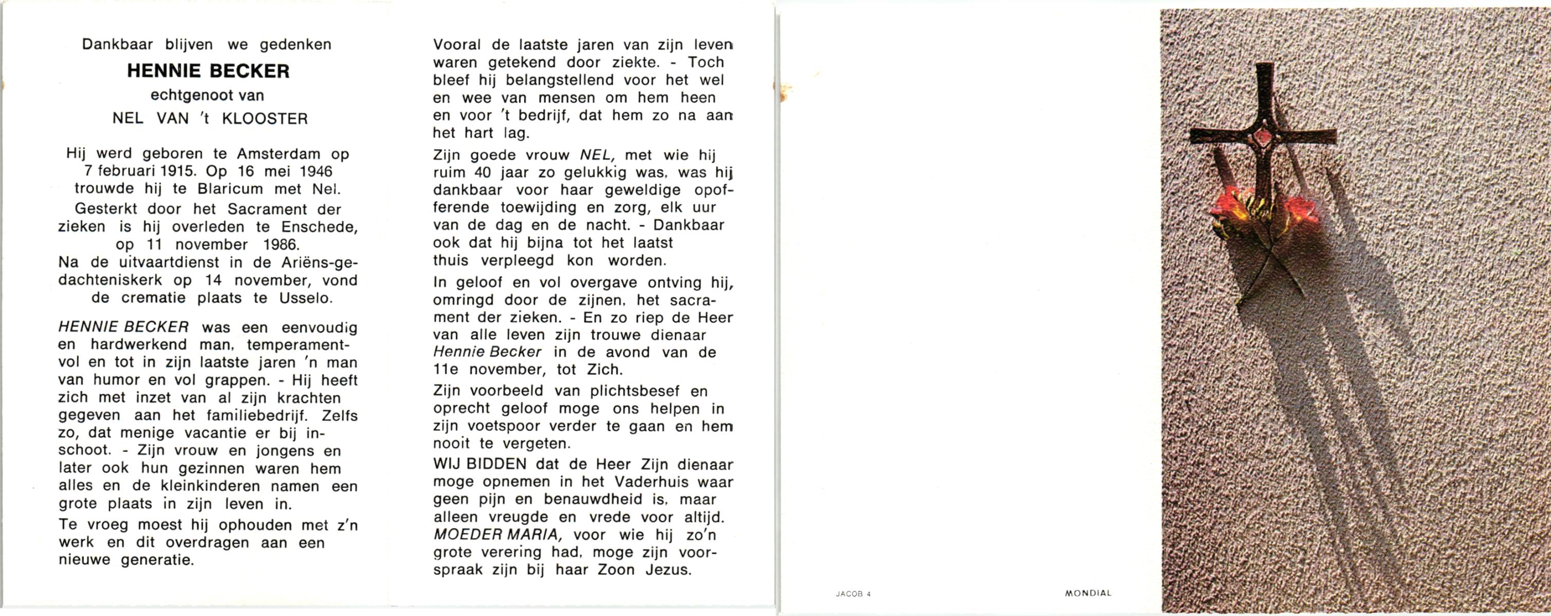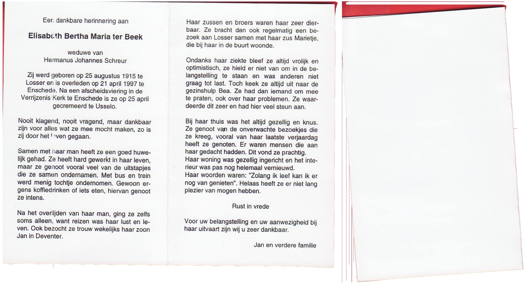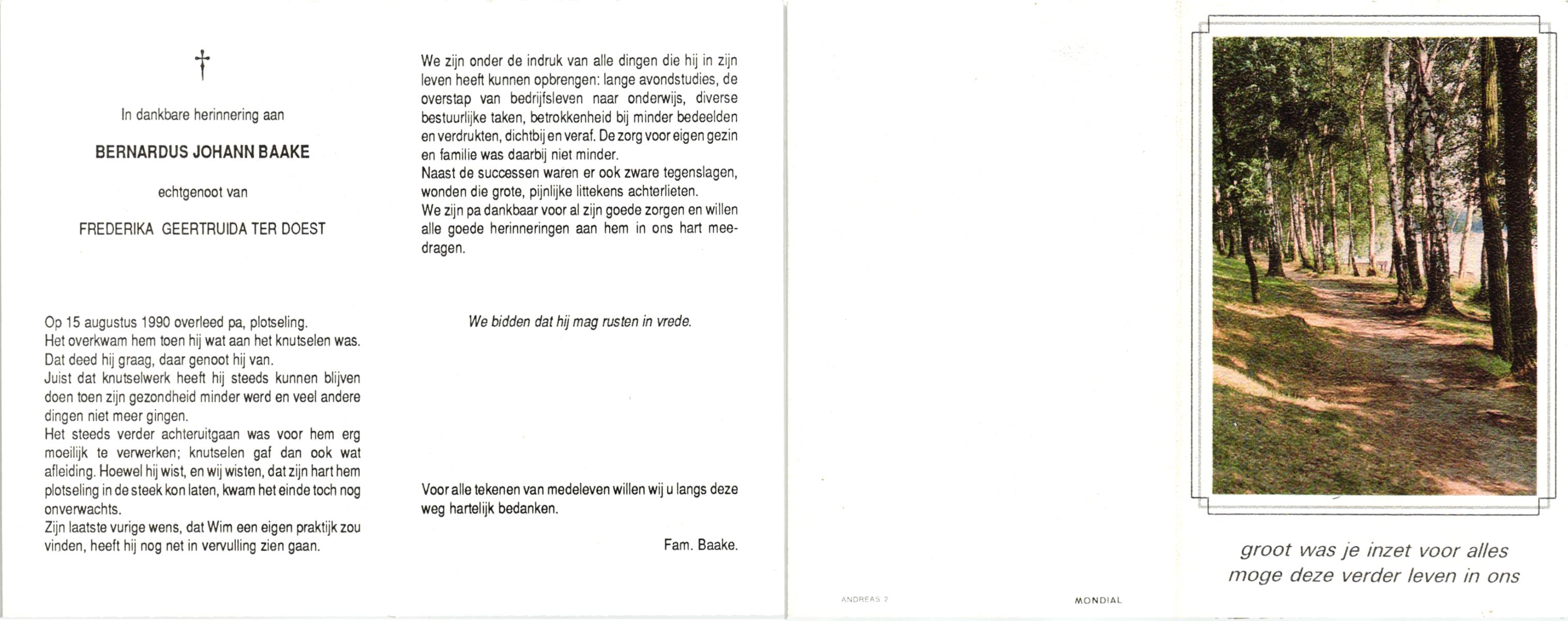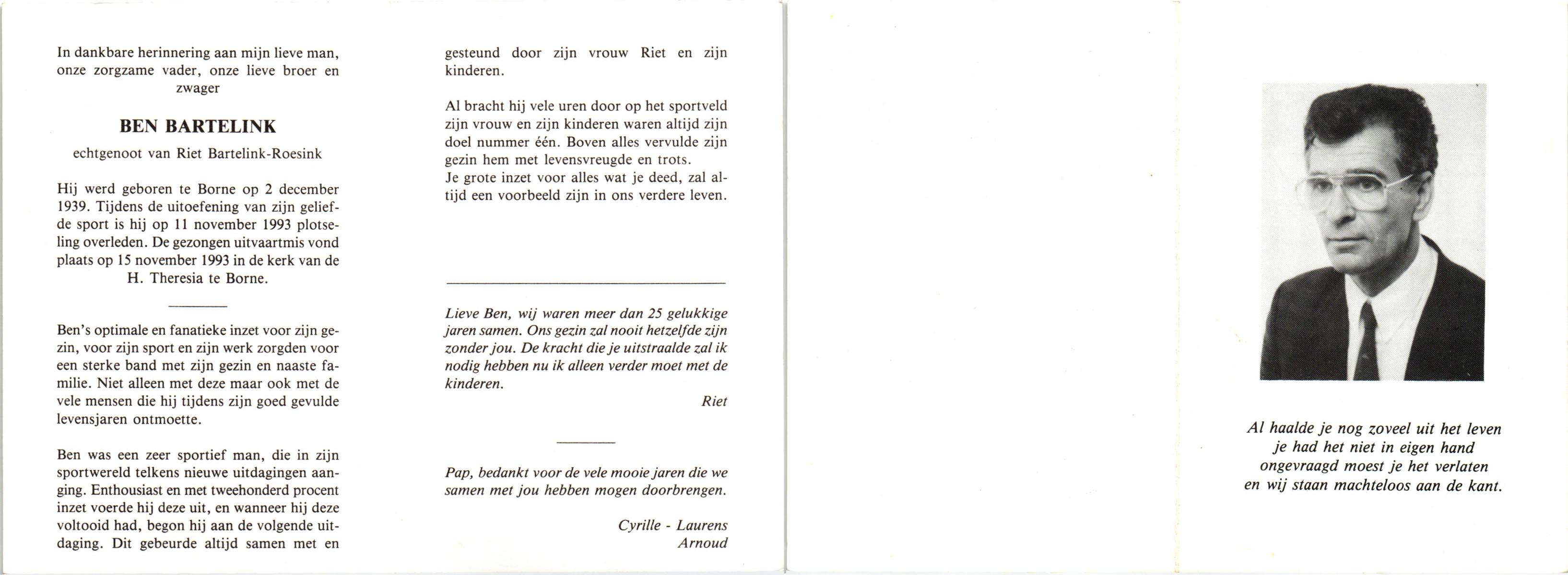 BEKE, ter, Theodorus Hendrikus, geboren op 5-7-1930 te Enschede, overleden op 27-10-1993 te Enschede op 63-jarige leeftijd, gecremeerd op 29-10-1993 te Usselo.