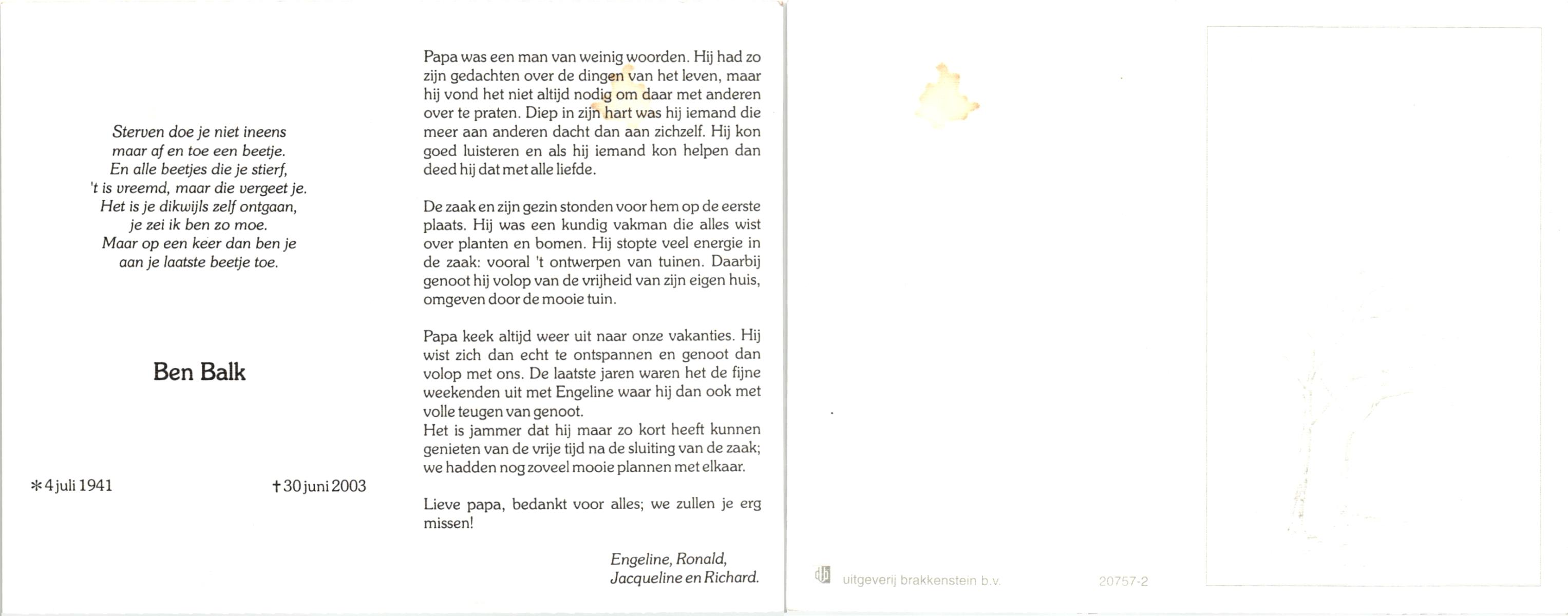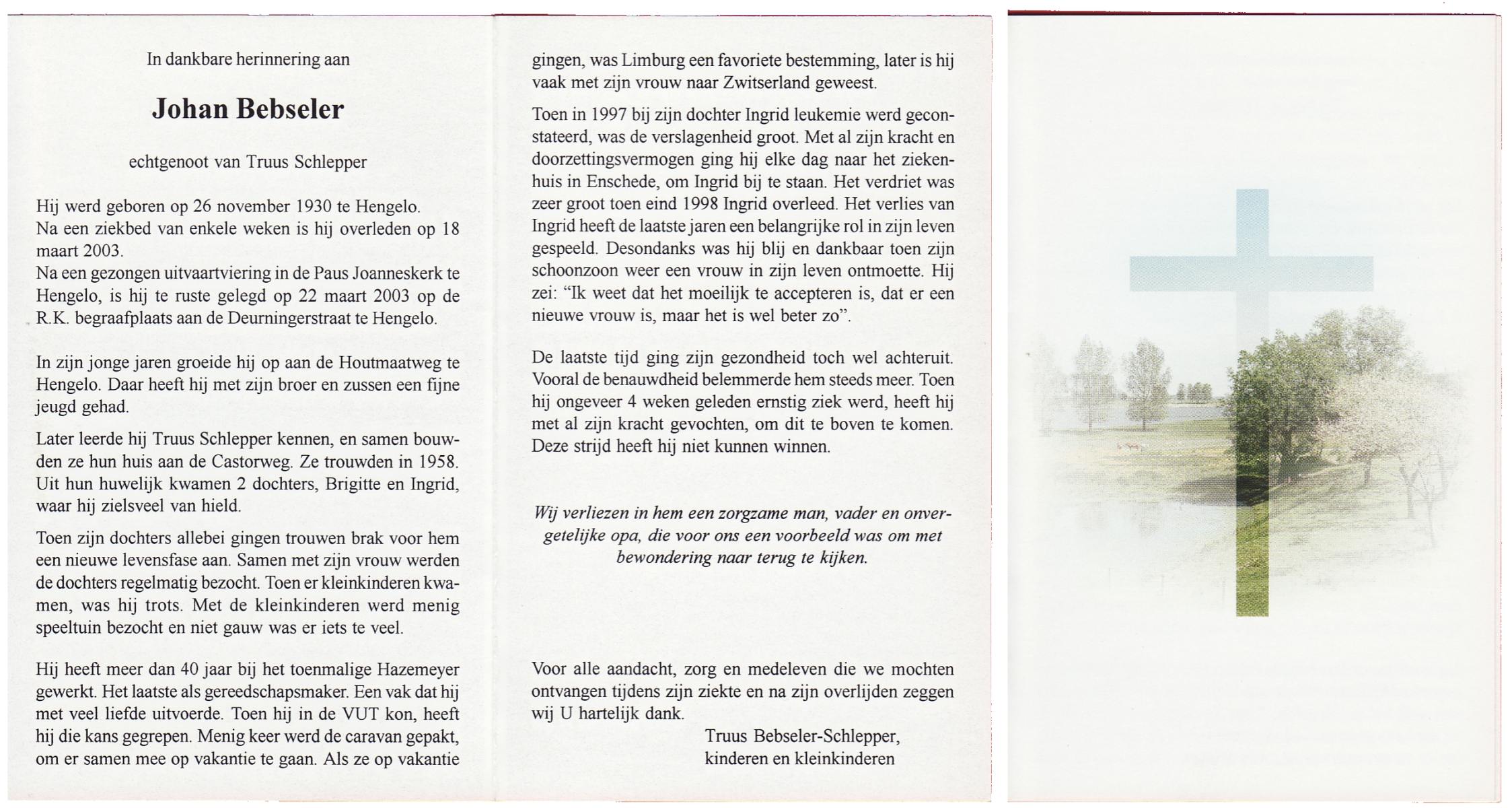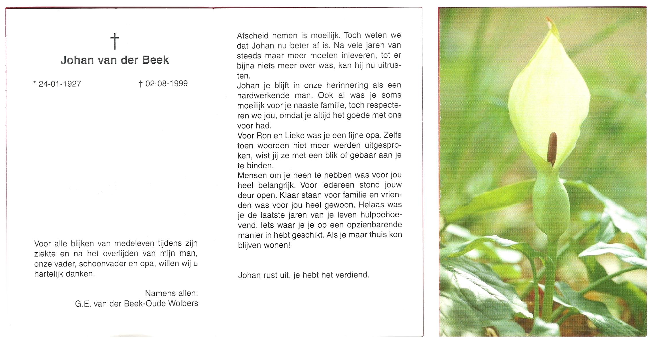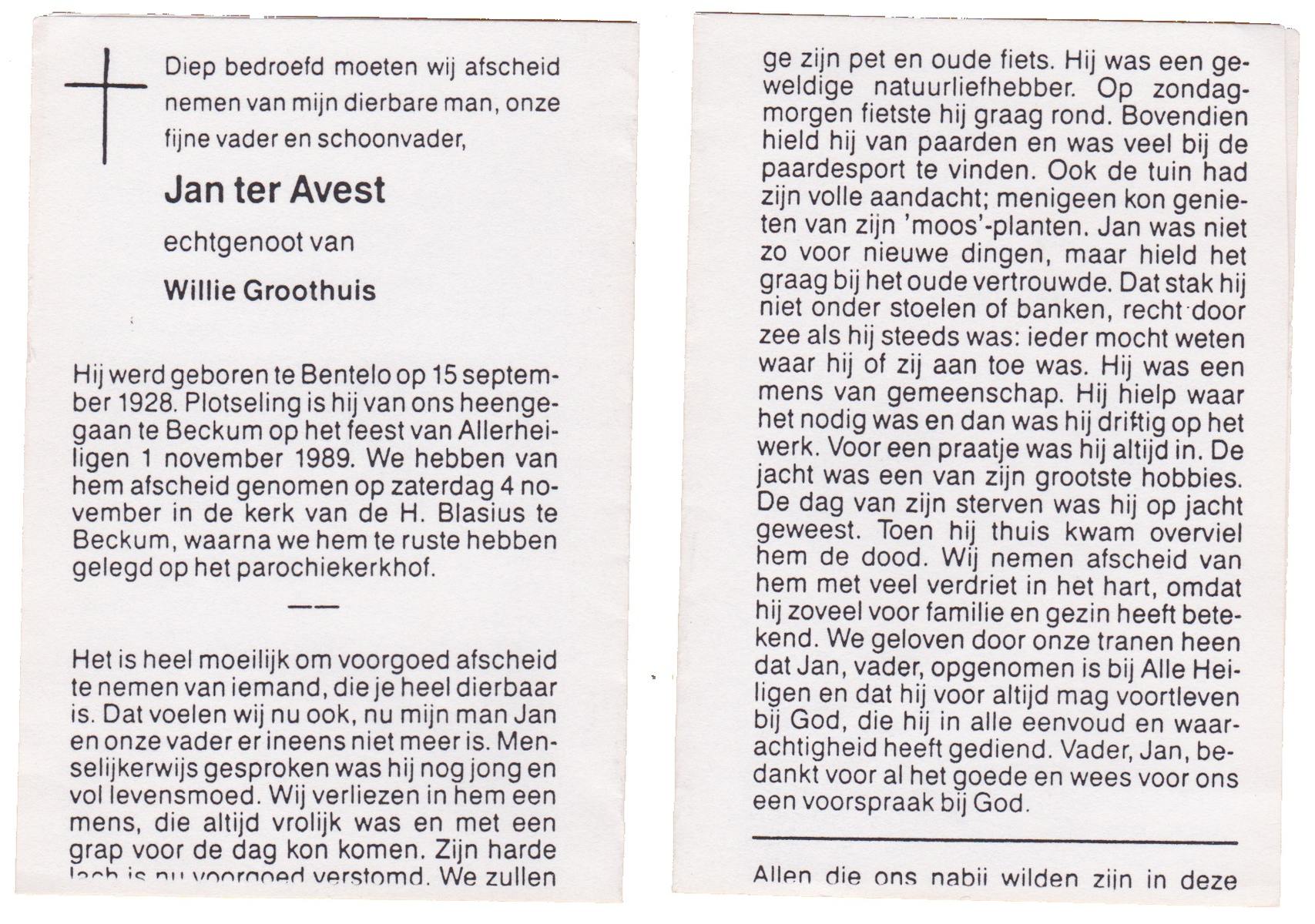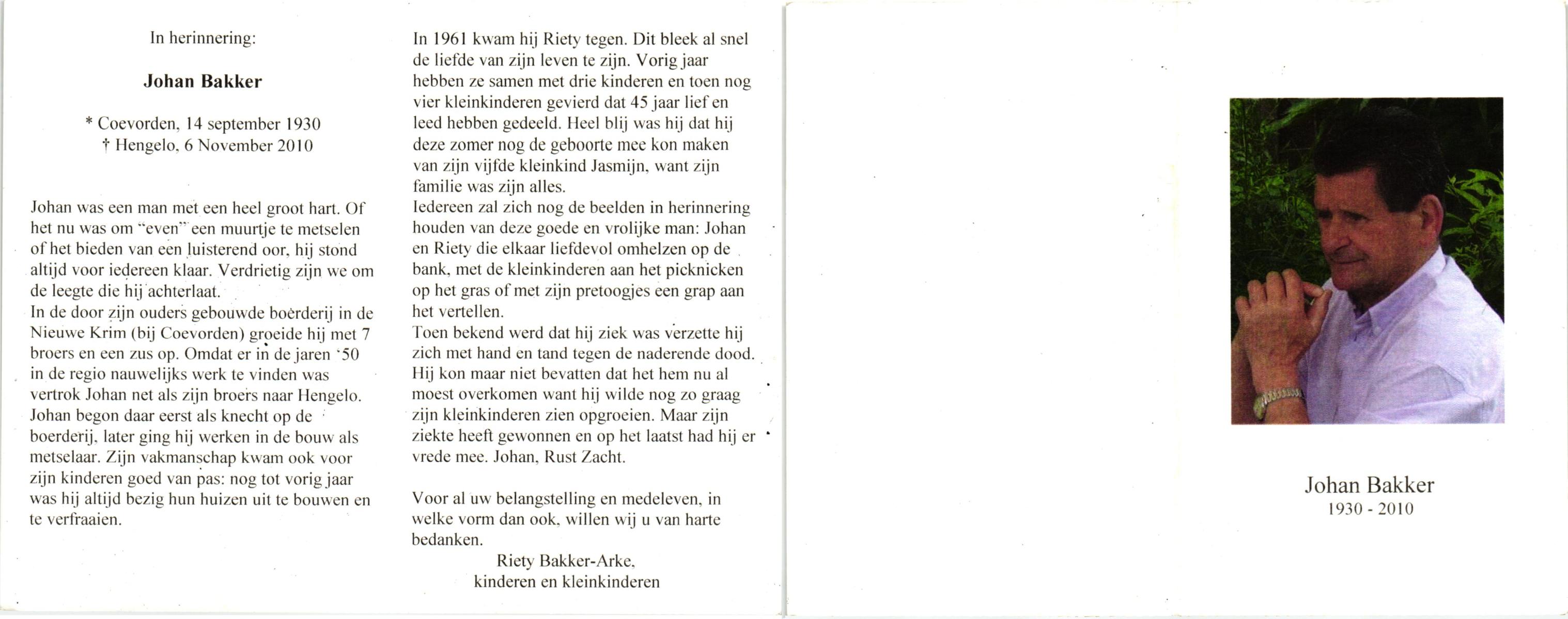 BEKE, ter, Jan, geboren op 11-8-1934 te Wierden, overleden op 18-11-2011 te Zenderen op 77-jarige leeftijd.