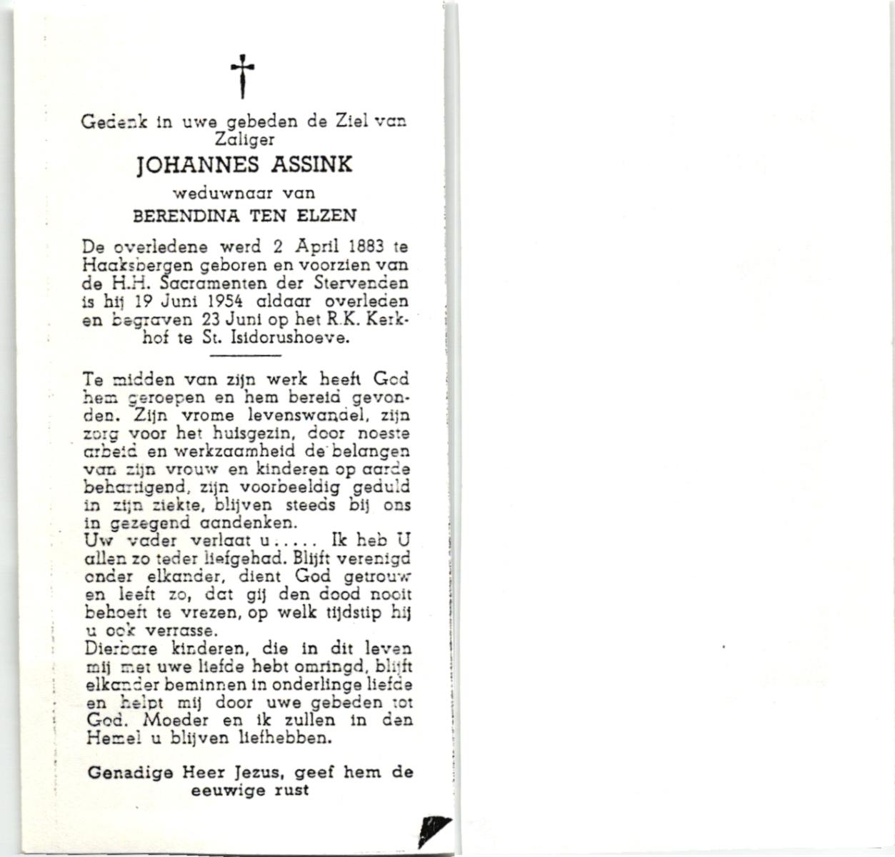 ASSINK, , Johannes, geboren op 02-04-1883 te Haaksbergen, overleden op 19-6-1954 te Haaksbergen op 71-jarige leeftijd, begraven op 23-6-1954 te St. Isidorushoeve.