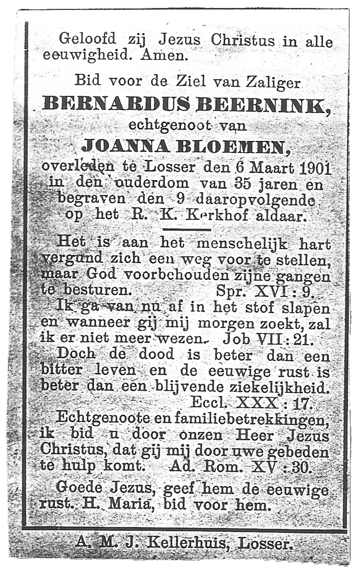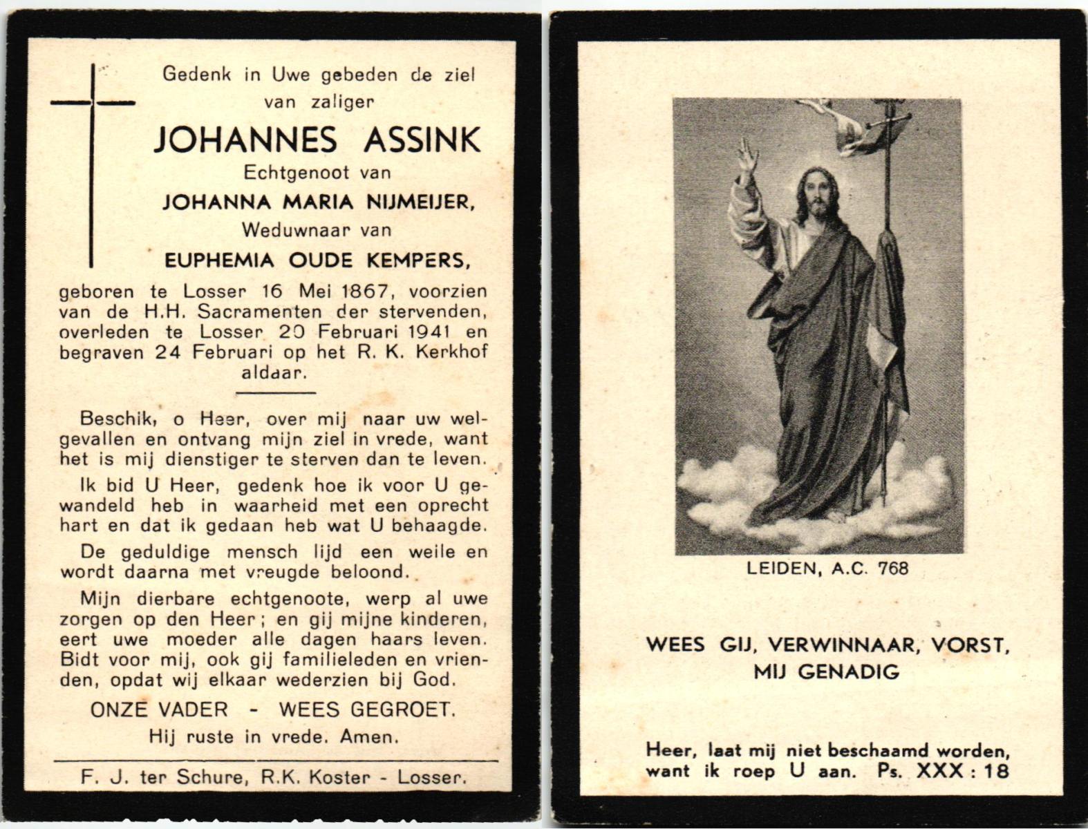 ASSINK, Johannes, geboren op 16-05-1867 te Losser, overleden op 20-2-1941 te Losser op 73-jarige leeftijd, begraven op 24-2-1941 te Losser.
