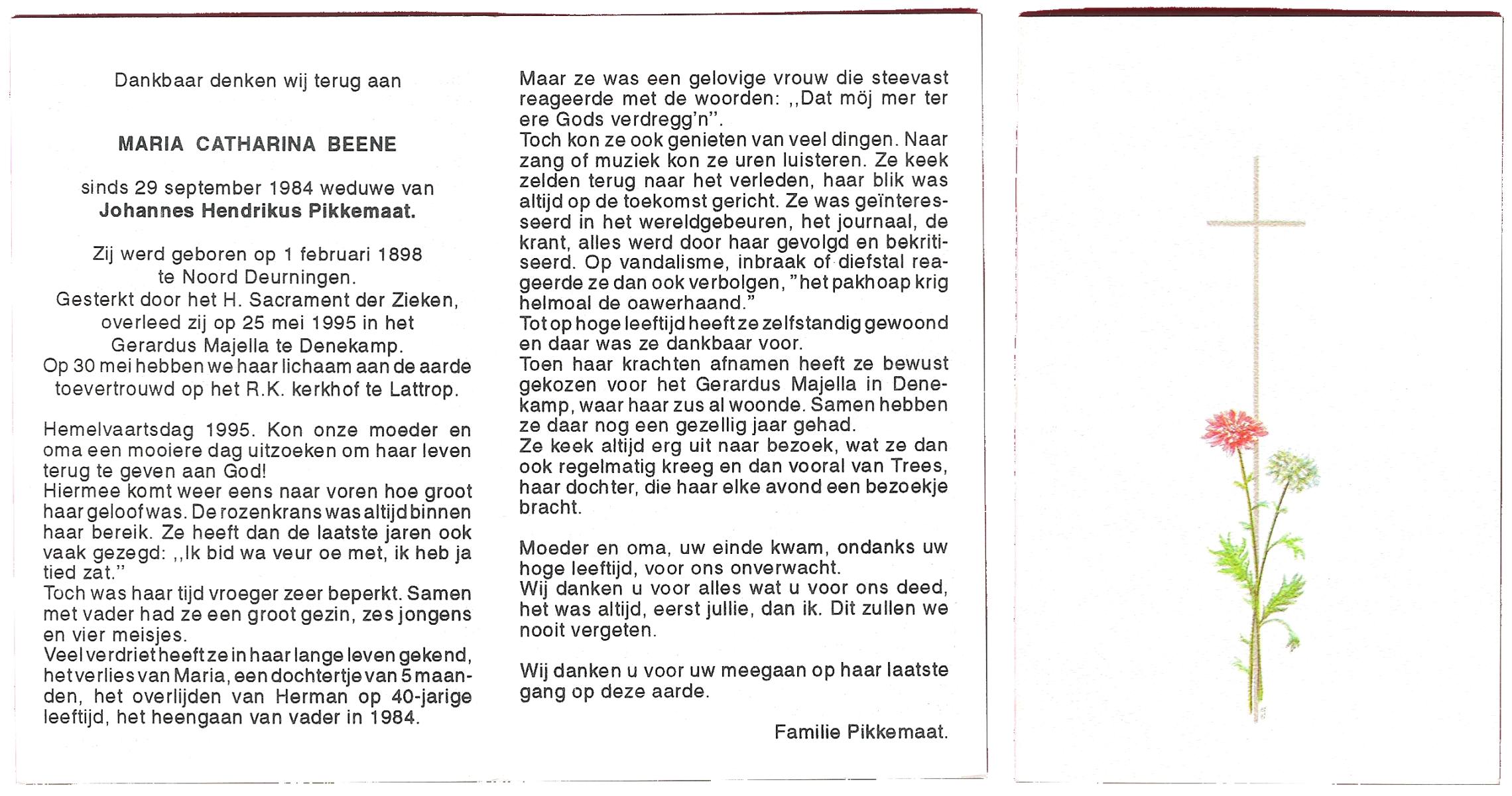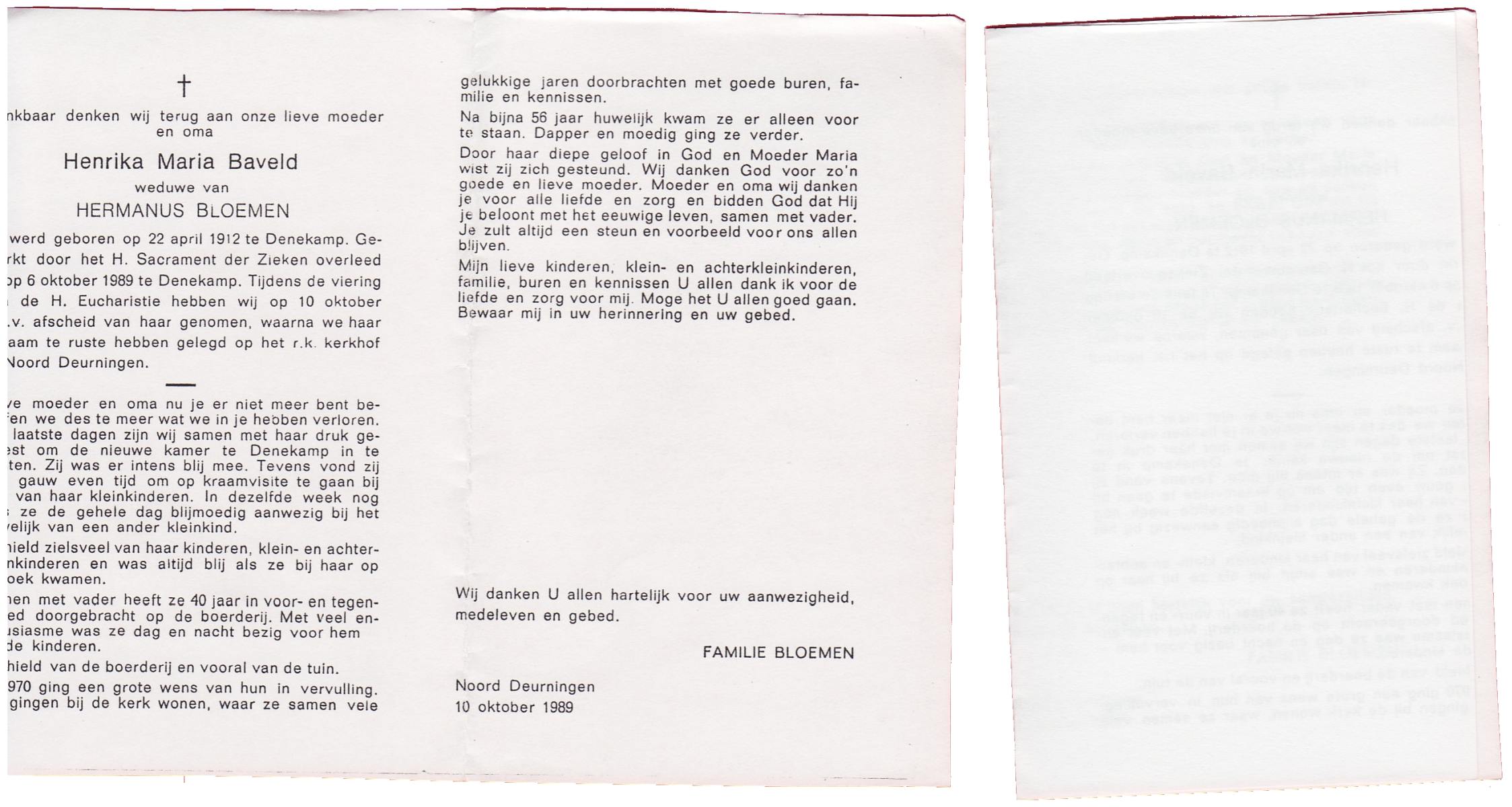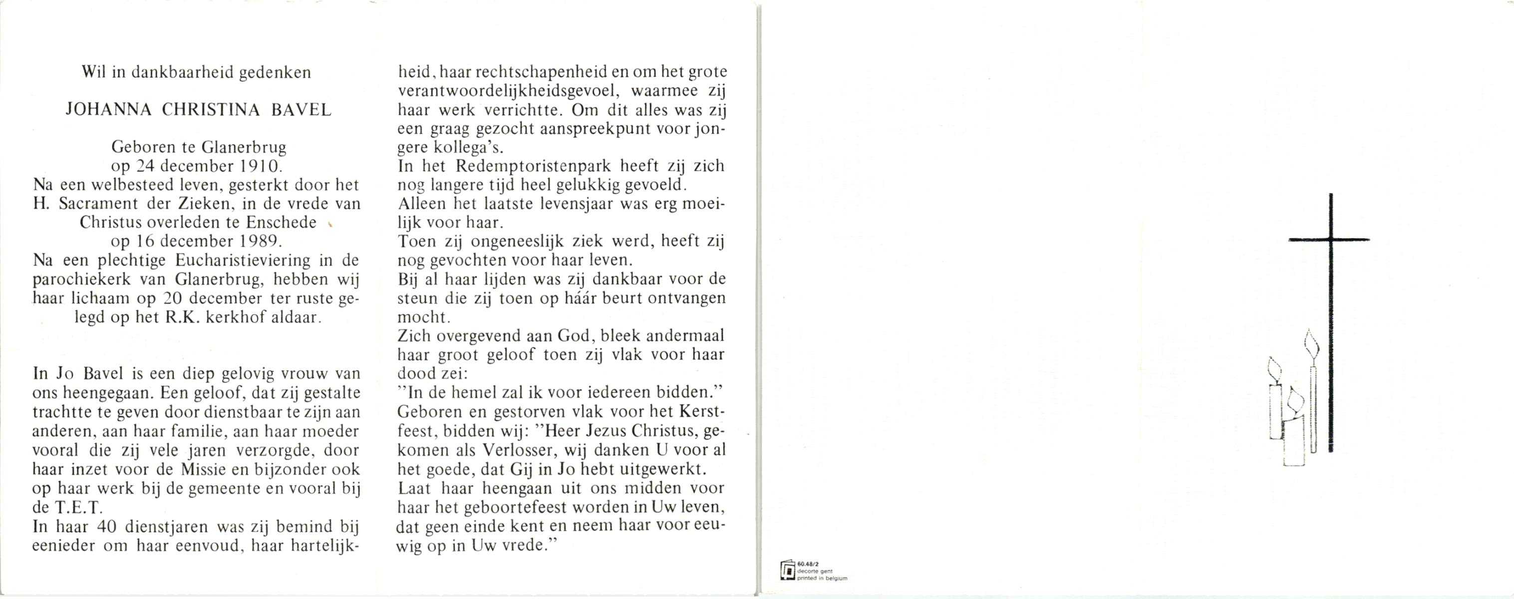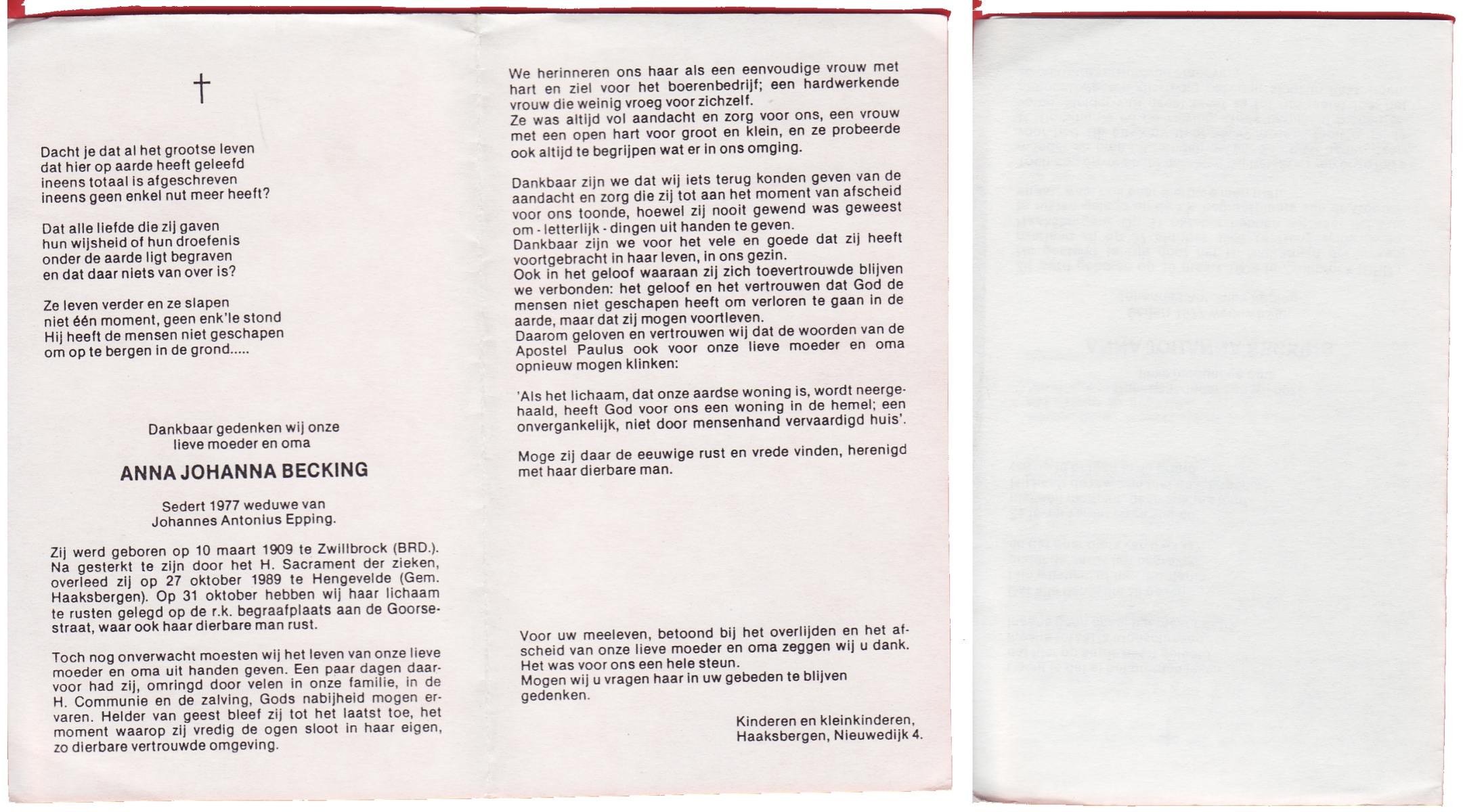 BEIJERINK, Johanna Maria, geboren op 27-2-1901 te Tilligte, overleden op 4-2-1990 te Oldenzaal op 88-jarige leeftijd, begraven op 7-2-1990 te Lattrop.