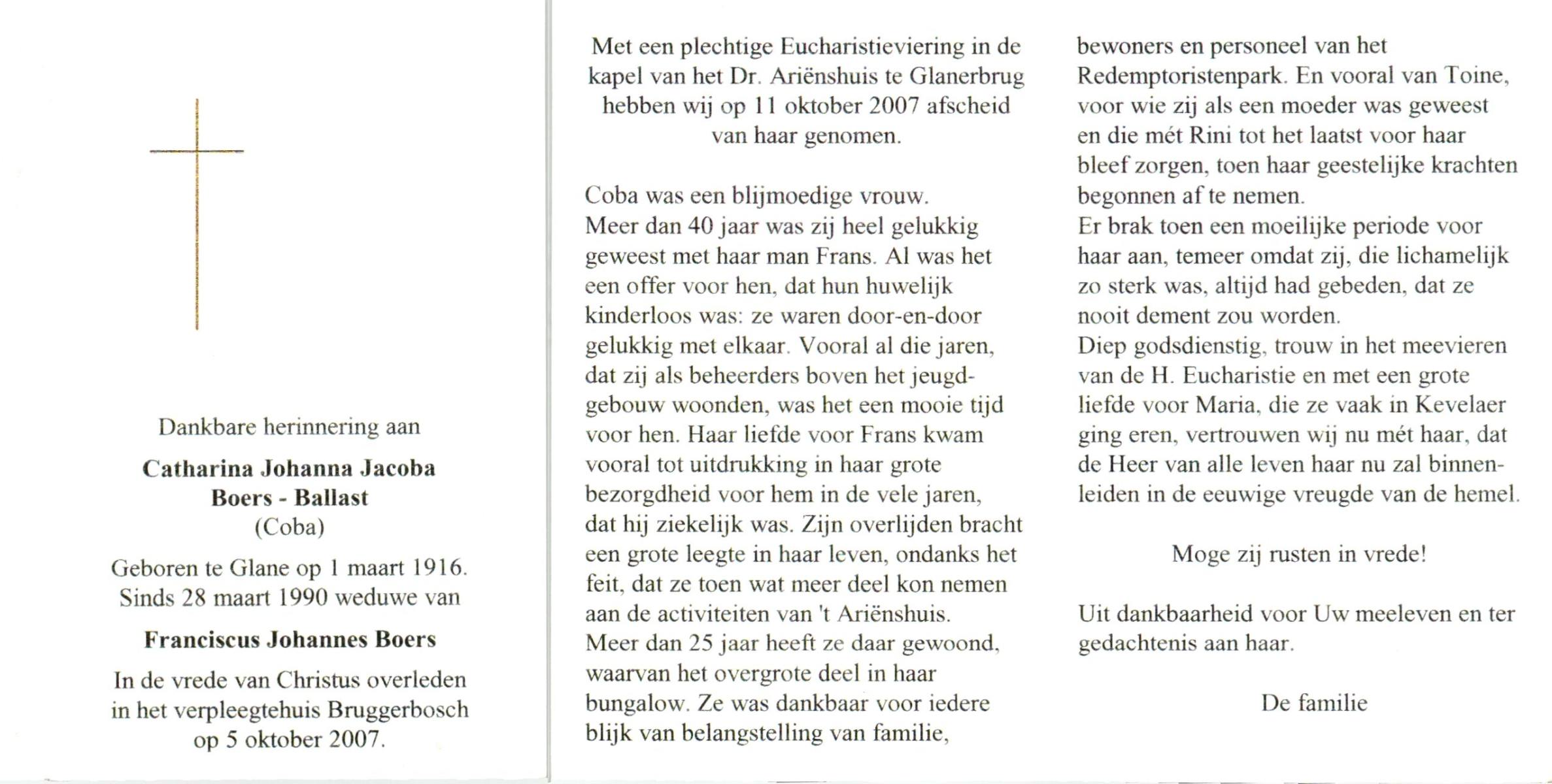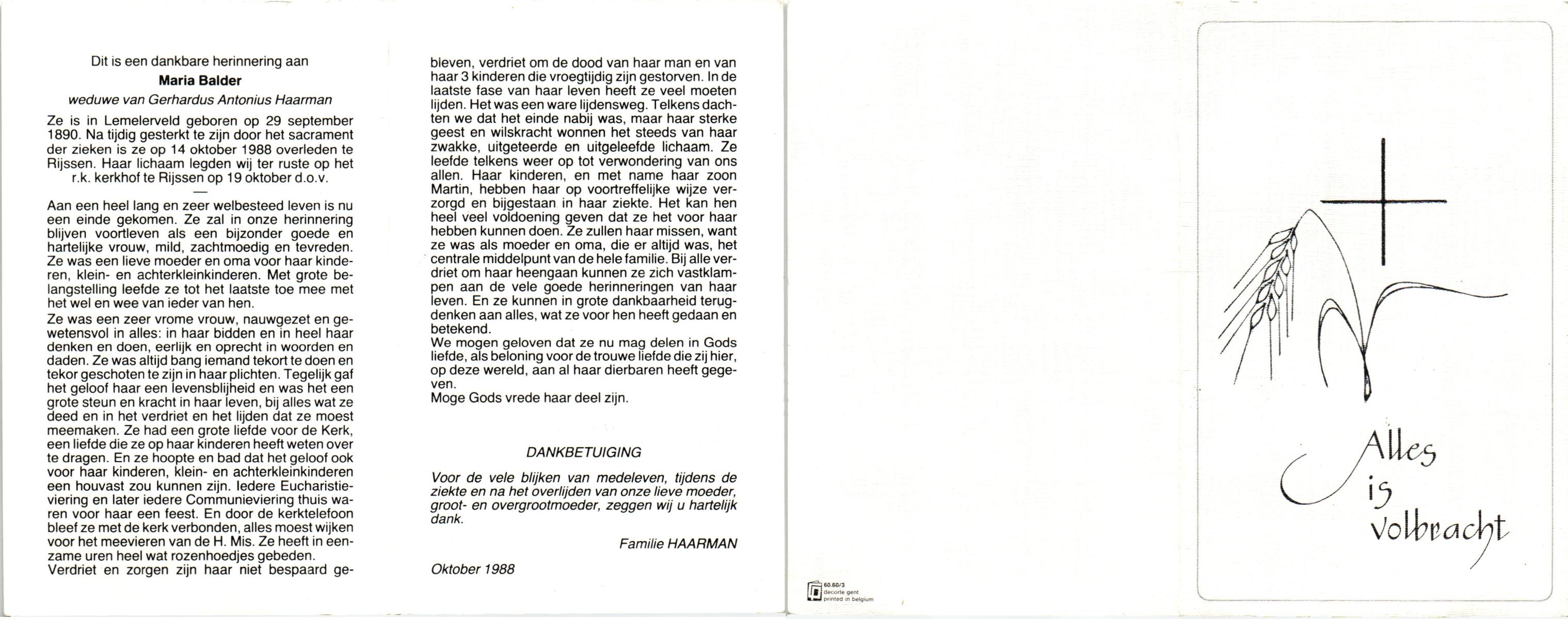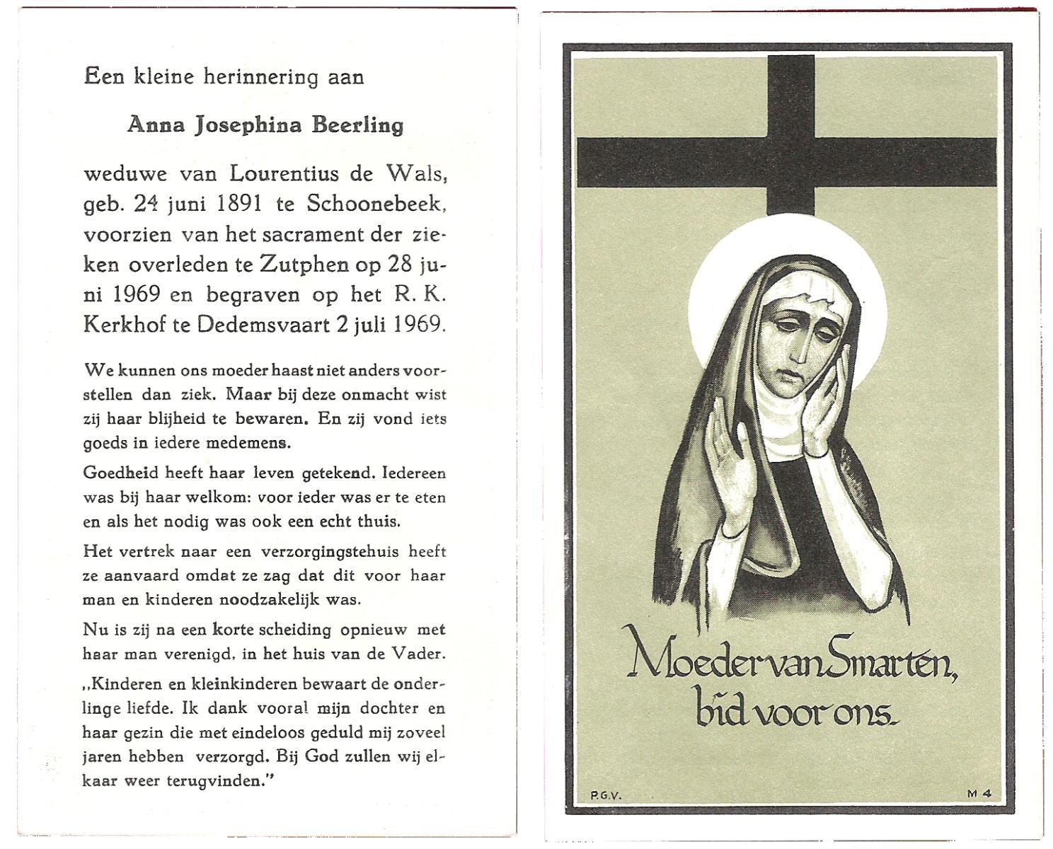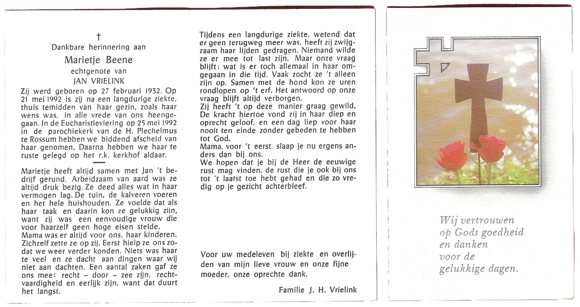 BEIJERINK, Johanna Maria, geboren op 27-2-1901 te Tilligte, overleden op 4-2-1990 te Oldenzaal op 88-jarige leeftijd, begraven op 7-2-1990 te Lattrop.