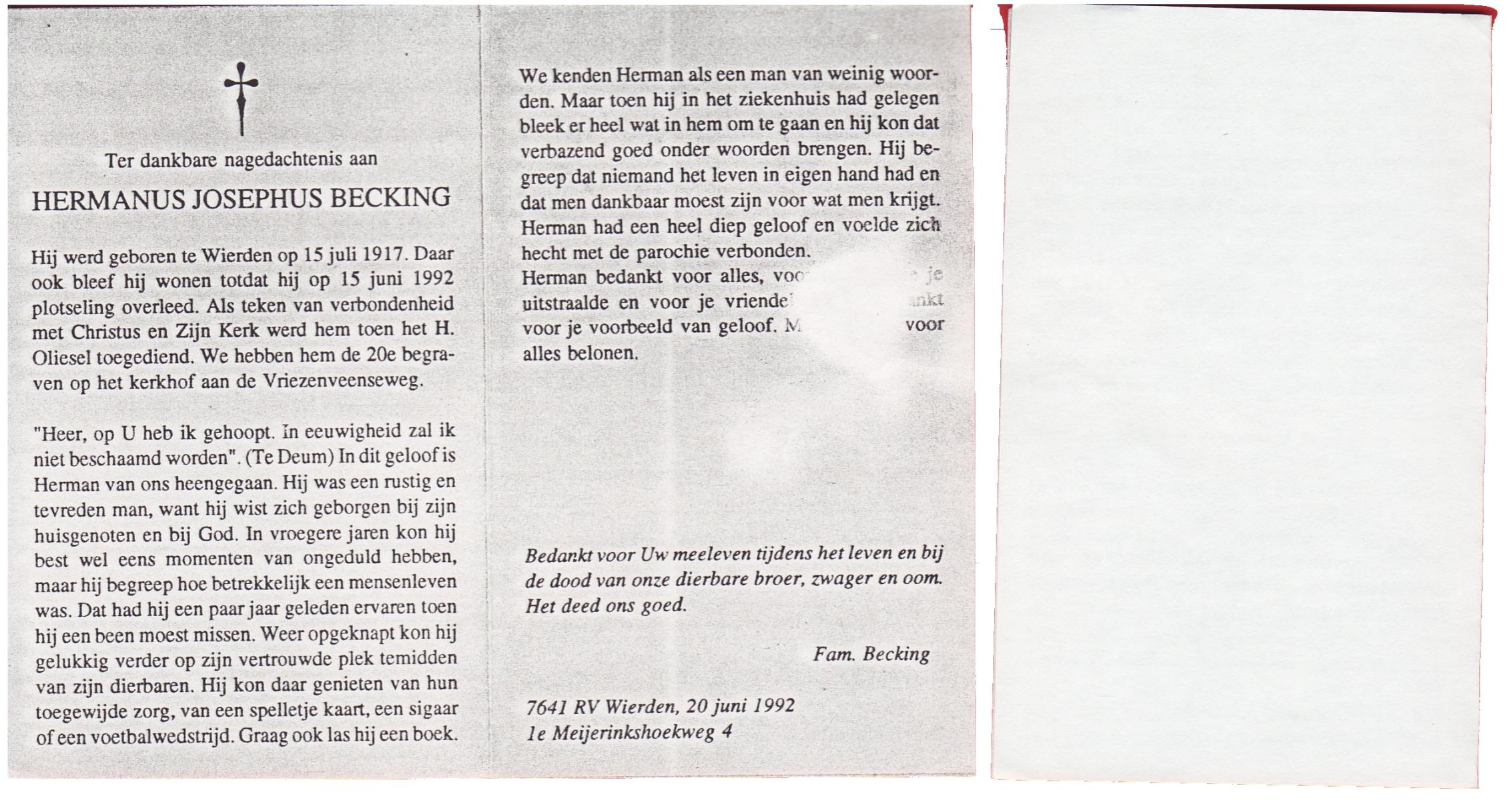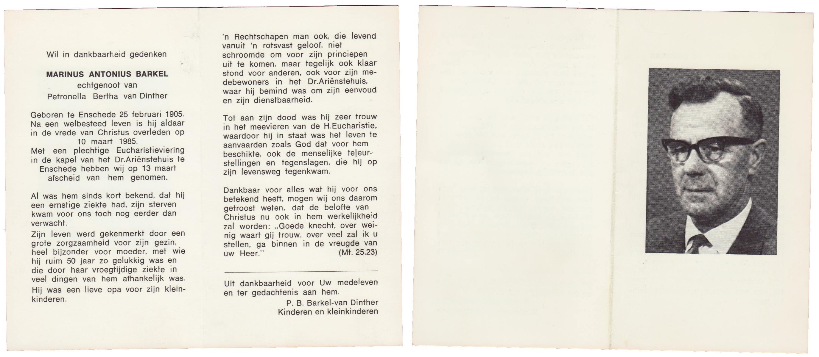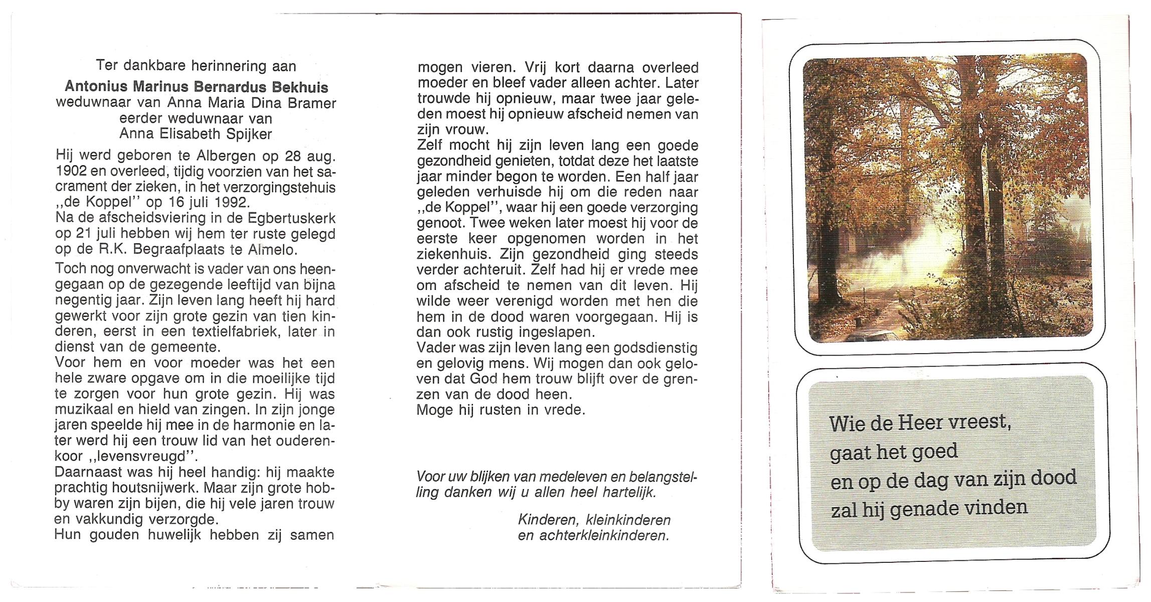 BEKHUIS, Antonius Marinus Bernardus, geboren op 28-8-1902 te Albergen, overleden op 16-6-1992 te Almelo op 89-jarige leeftijd, begraven op 21-7-1992 te Almelo.