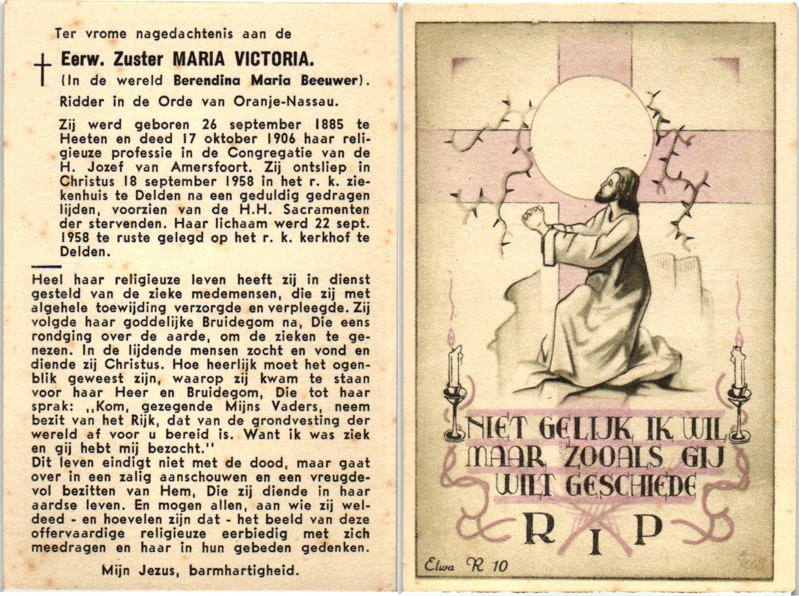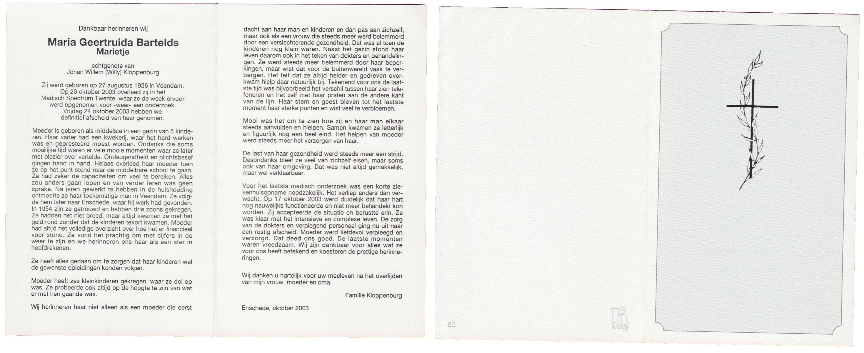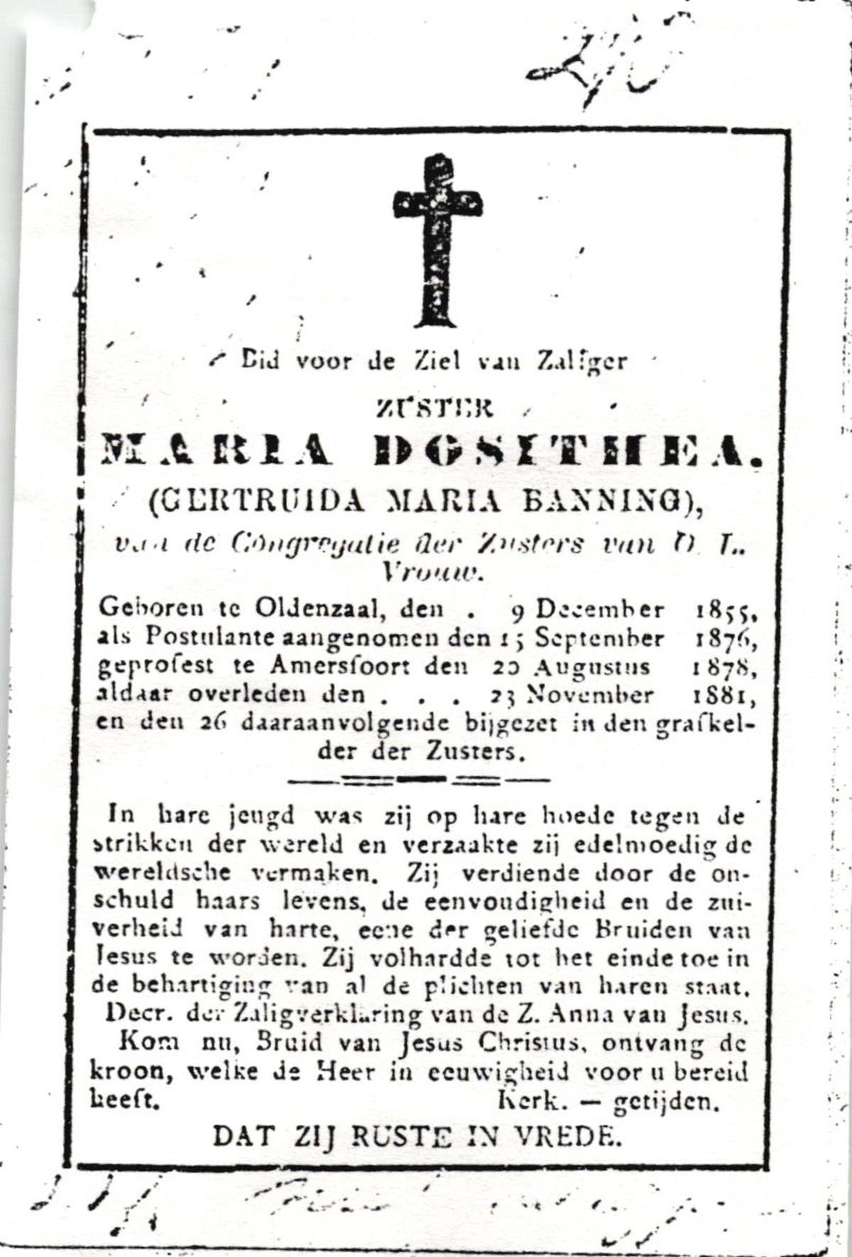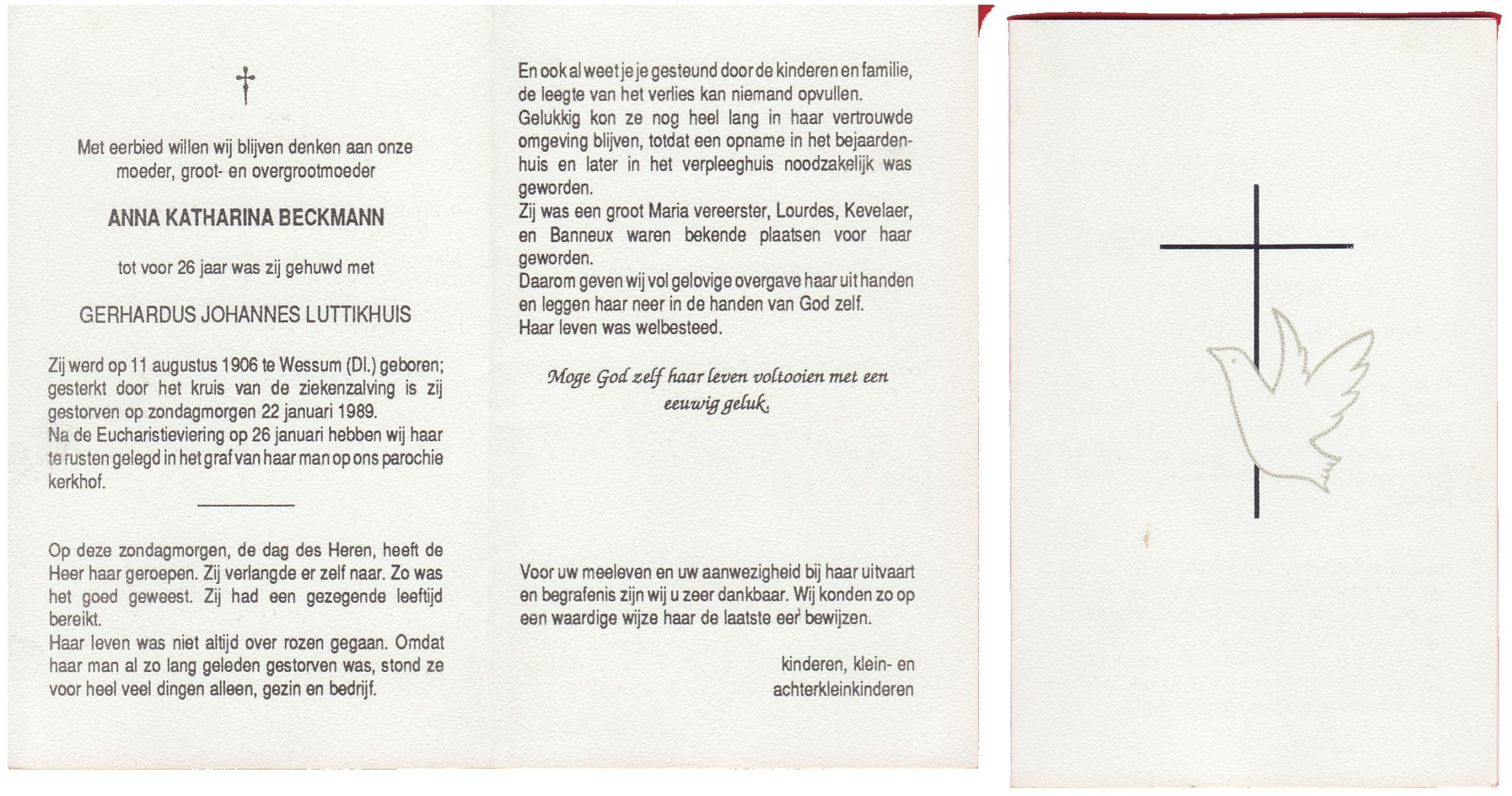 BEKHUIS, Geertruida Maria, geboren op 01-09-1888 te Denekamp, overleden op 26-5-1958 te Denekamp op 70-jarige leeftijd, begraven op 29-5-1958 te Denekamp.