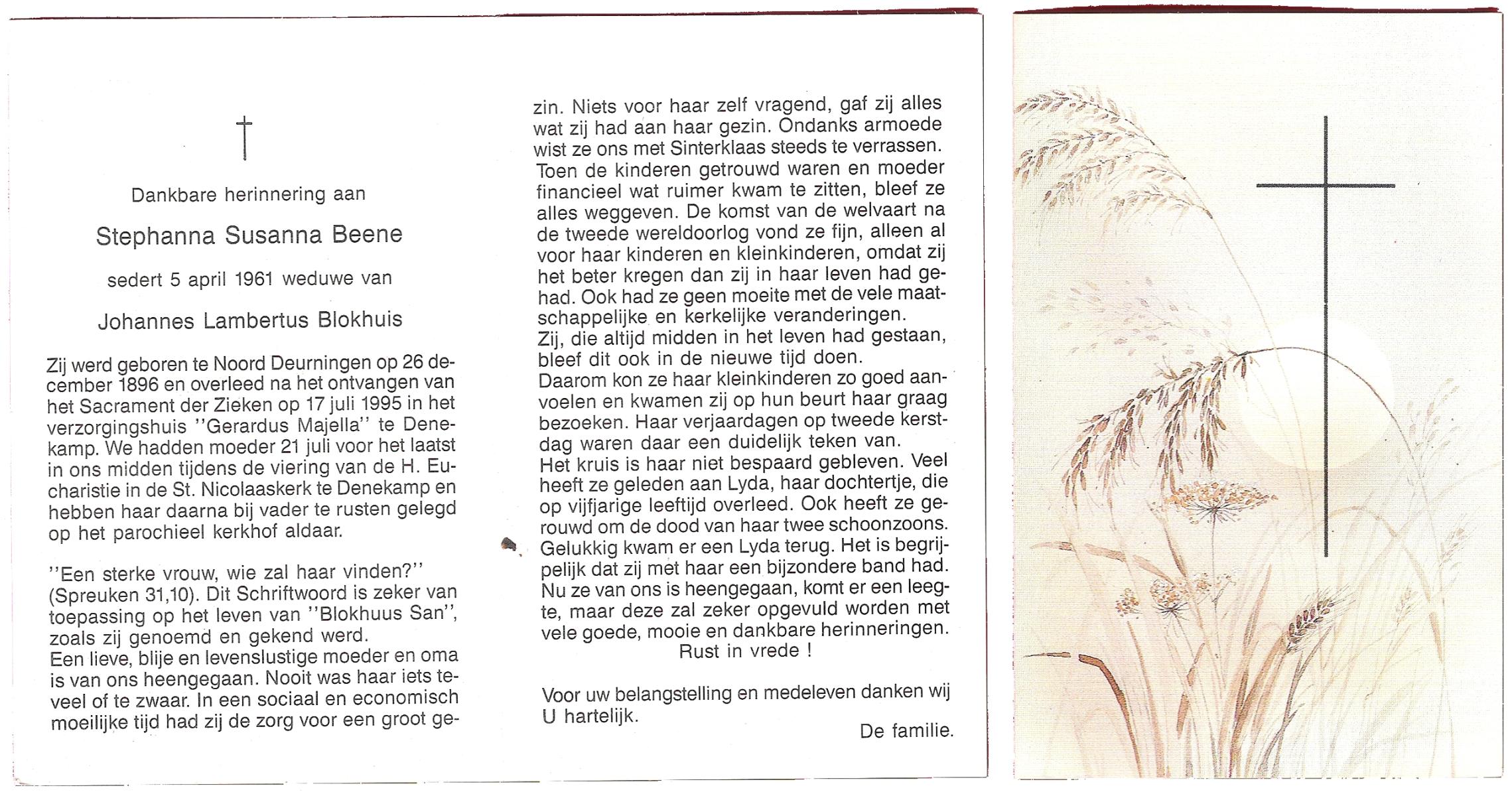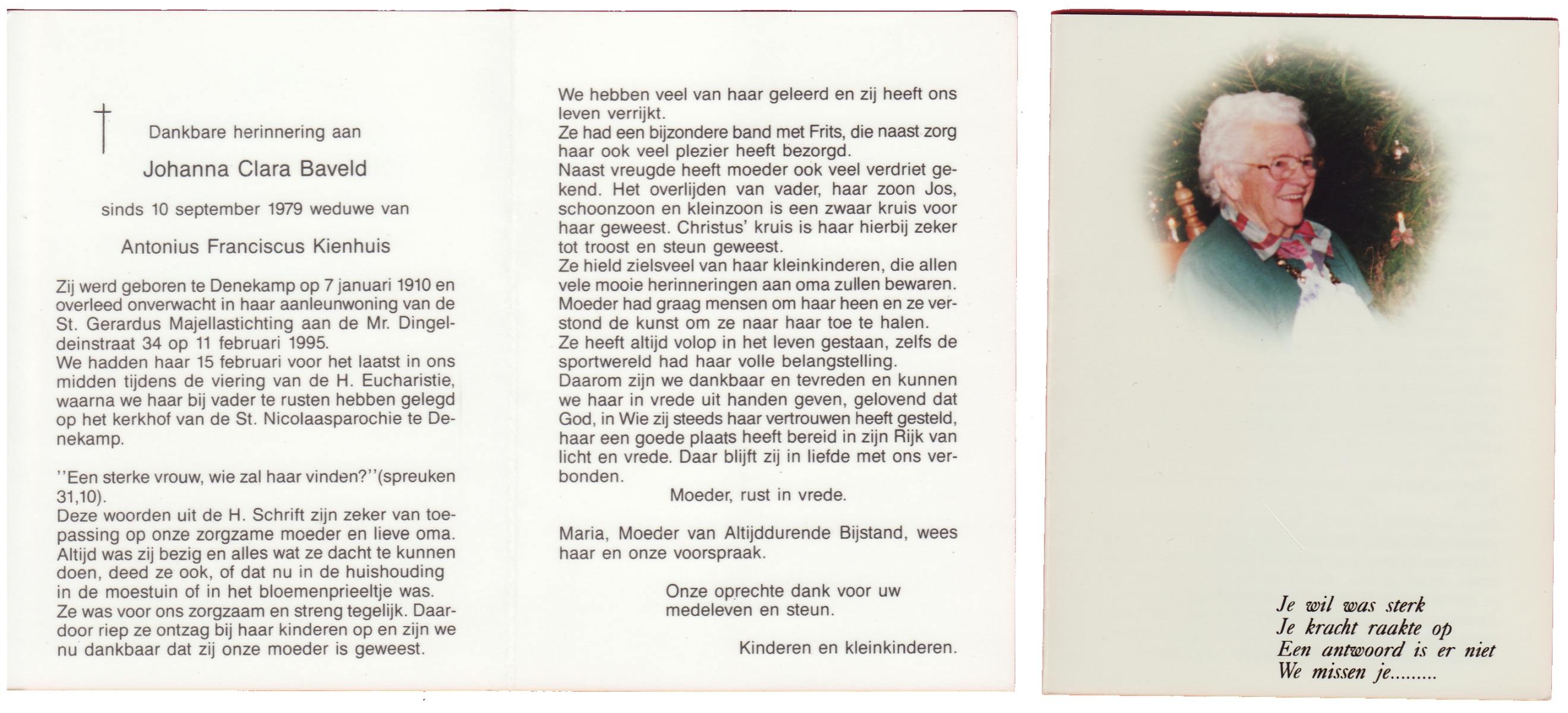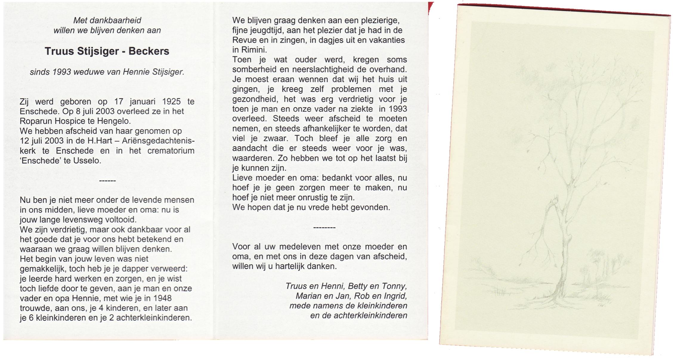 BEIJERINK, Johanna Aleida, geboren op 23-5-1903 te Tilligte, overleden op 24-12-1993 te Tilligte op 90-jarige leeftijd, begraven op 29-12-1993 te Tilligte.