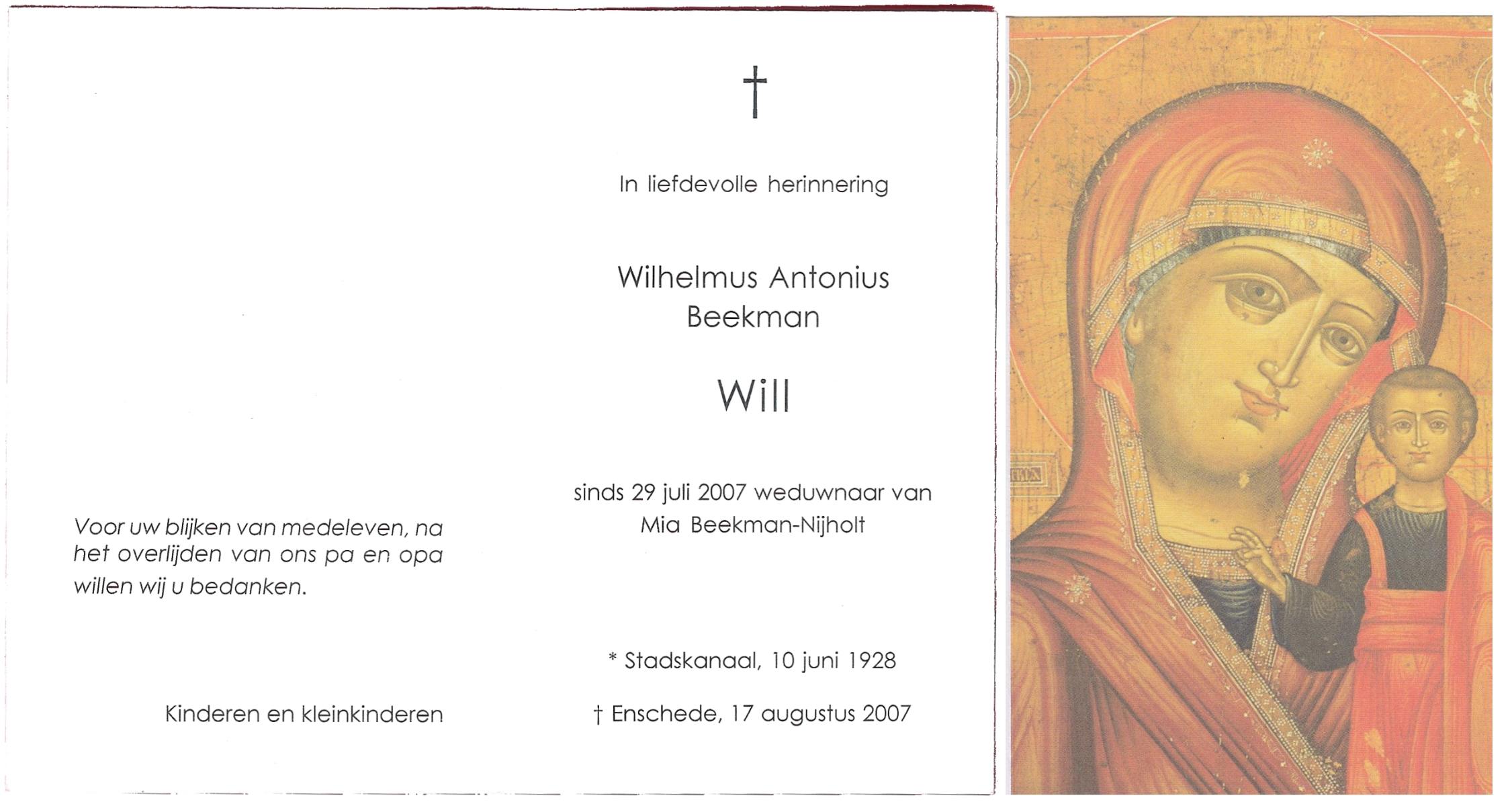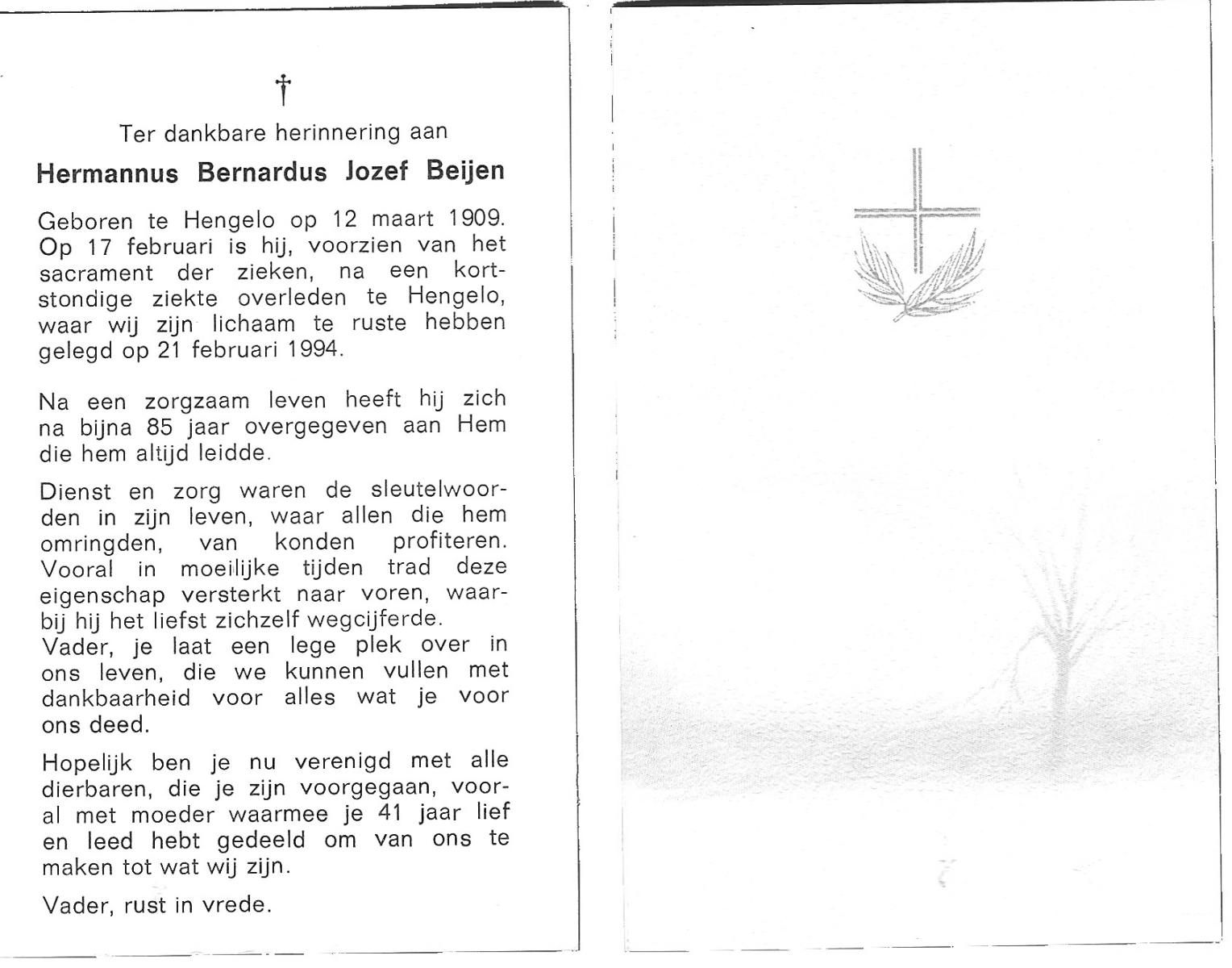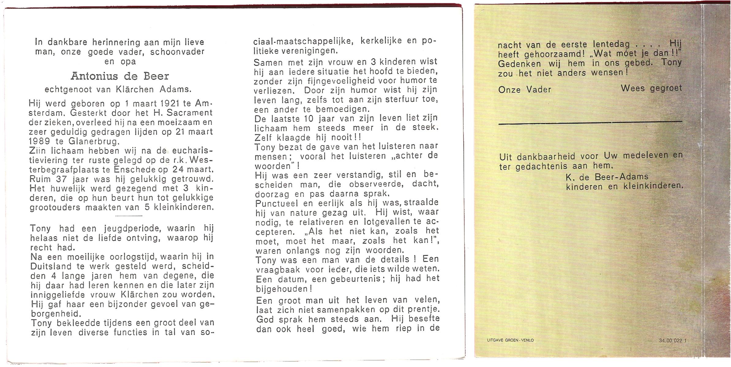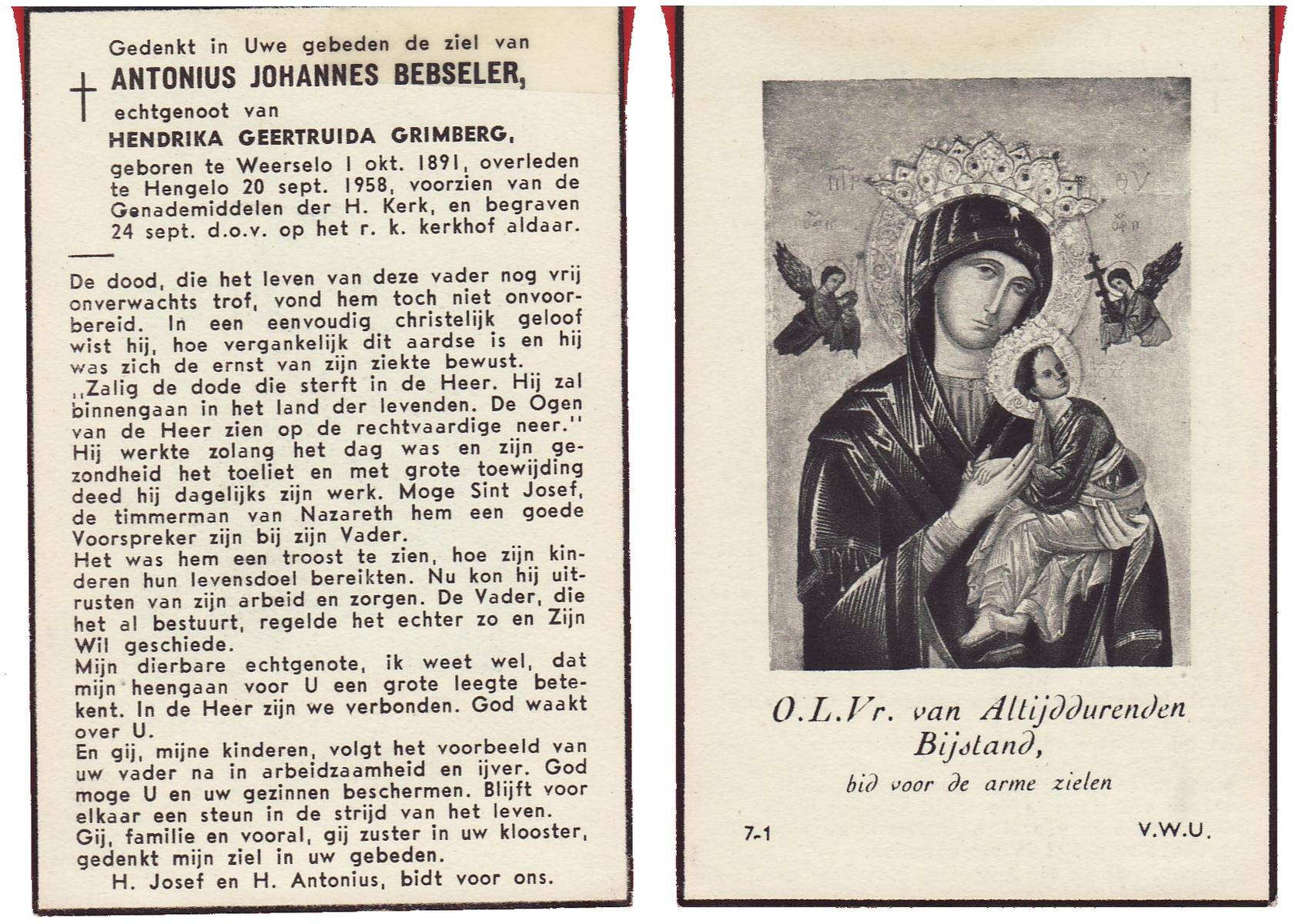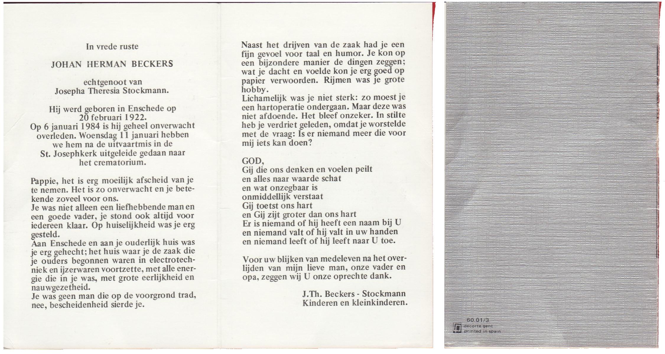 BEIMER, Johan Wilhelmus Antonius, geboren op 27-6-1913 te Lonneker, overleden op 6-7-1990 te Enschede op 77-jarige leeftijd, gecremeerd te Usselo.