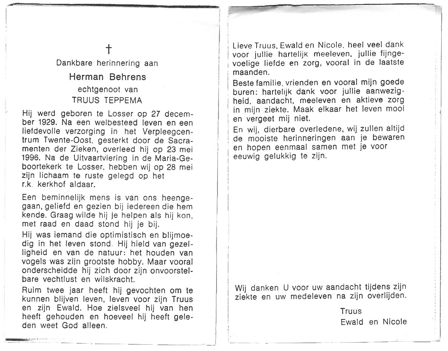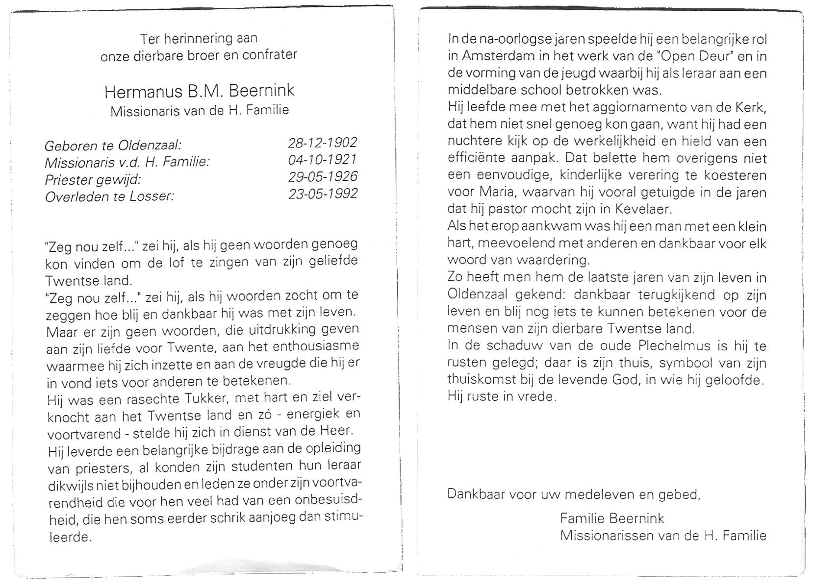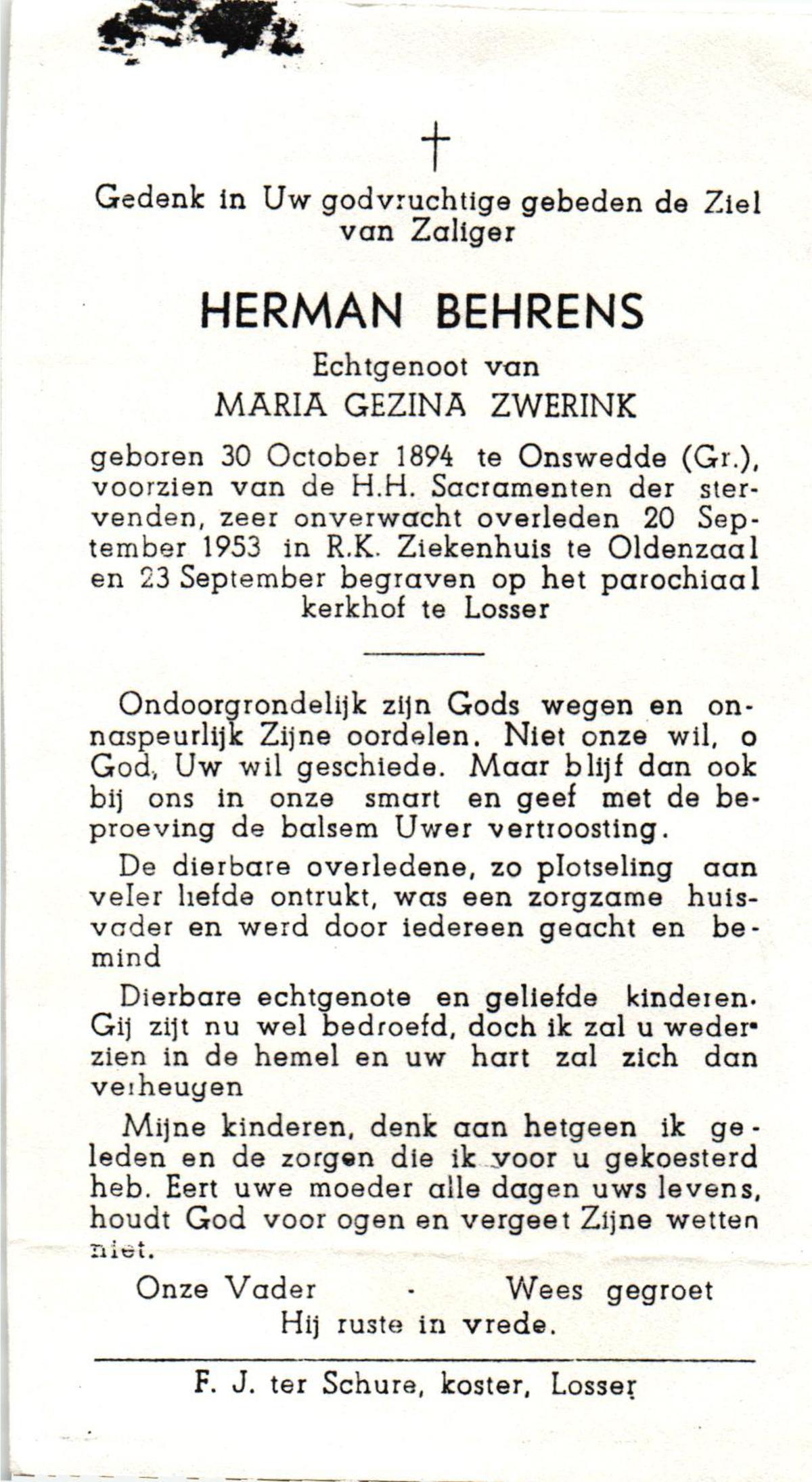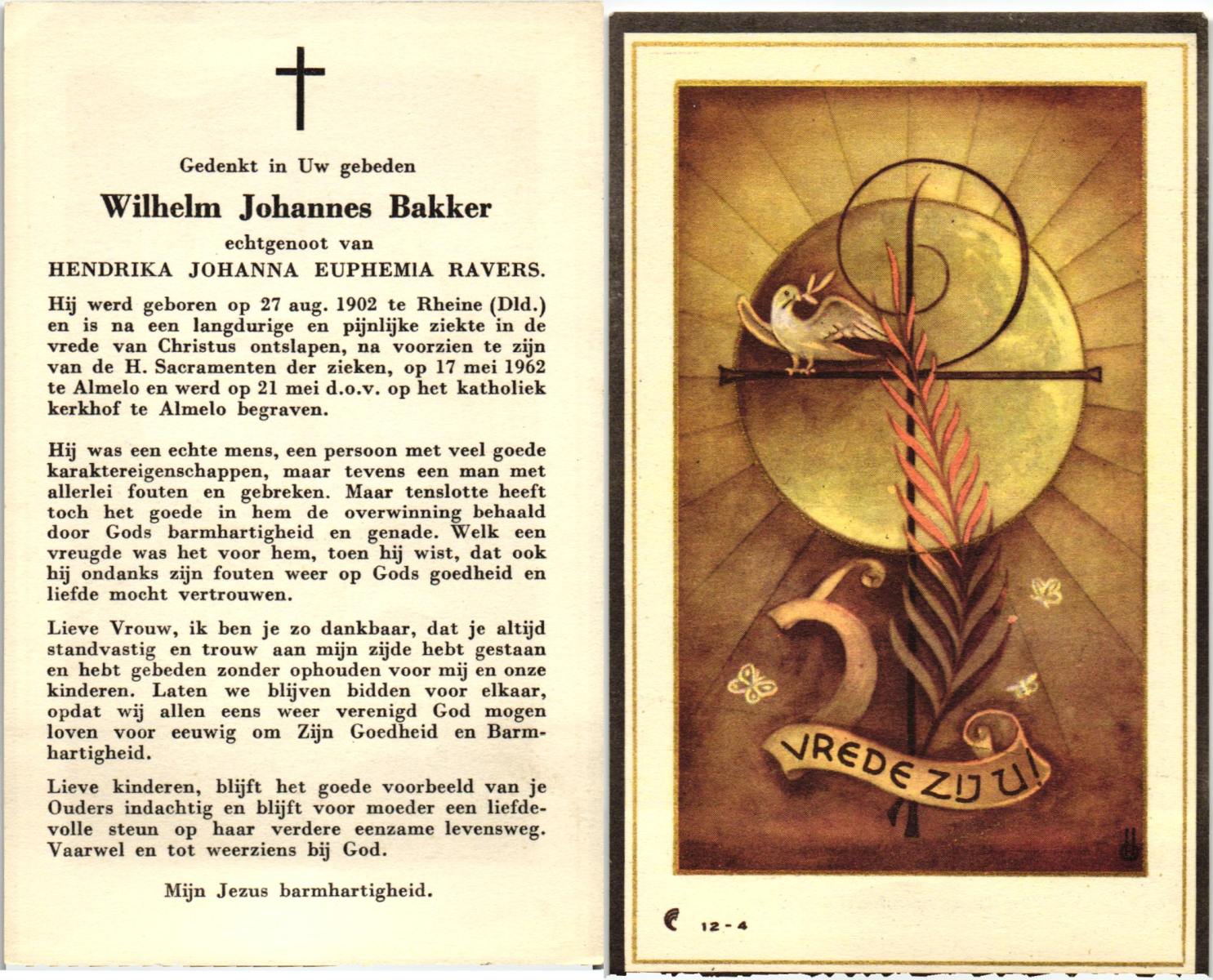 BEKHUIS, Hermanus, geboren op 19-05-1896 te Tubbergen, overleden op 15-8-1965 te Oldenzaal, ziekenhuis op 69-jarige leeftijd, begraven op 19-8-1965 te Ootmarsum.