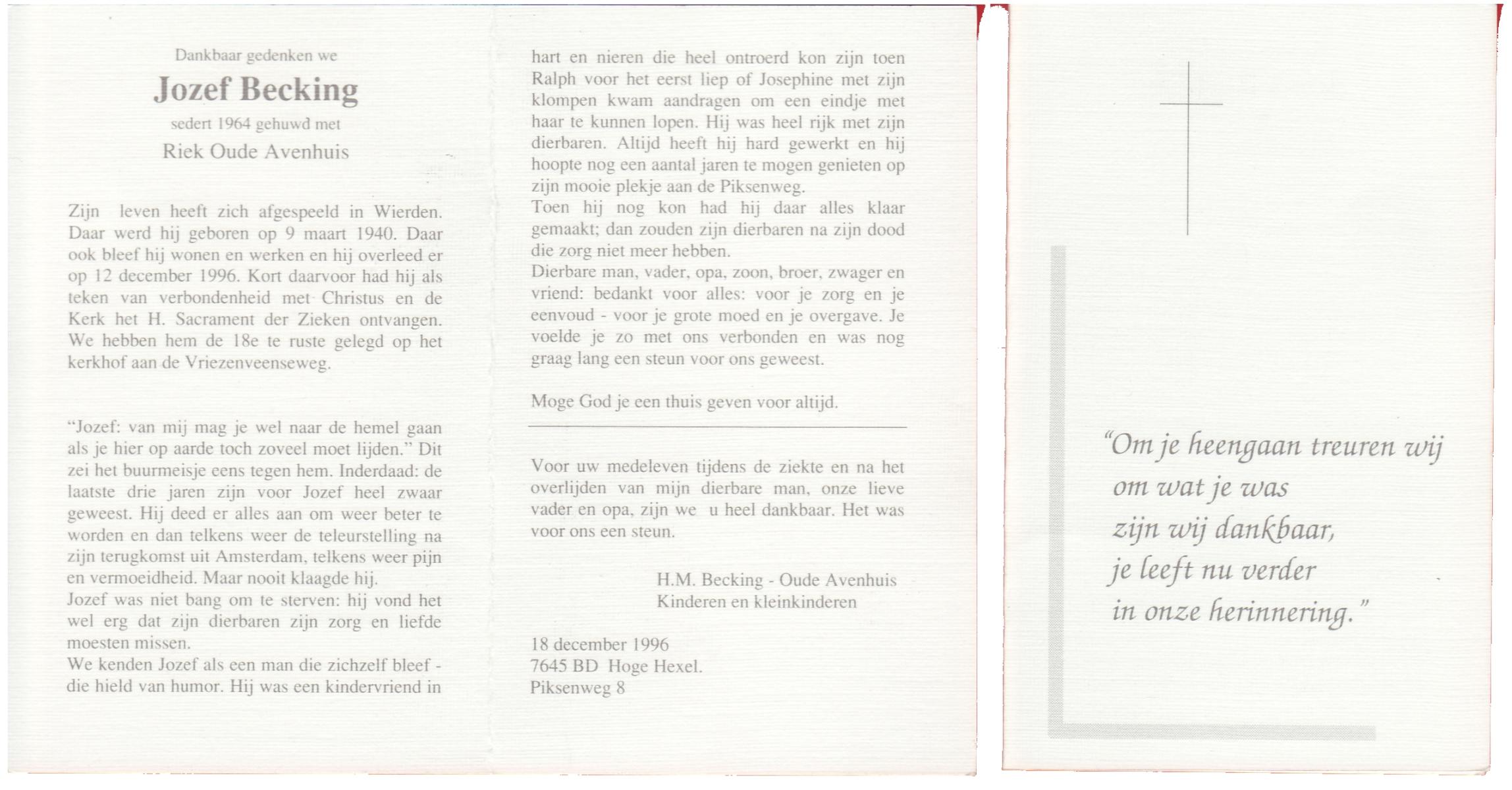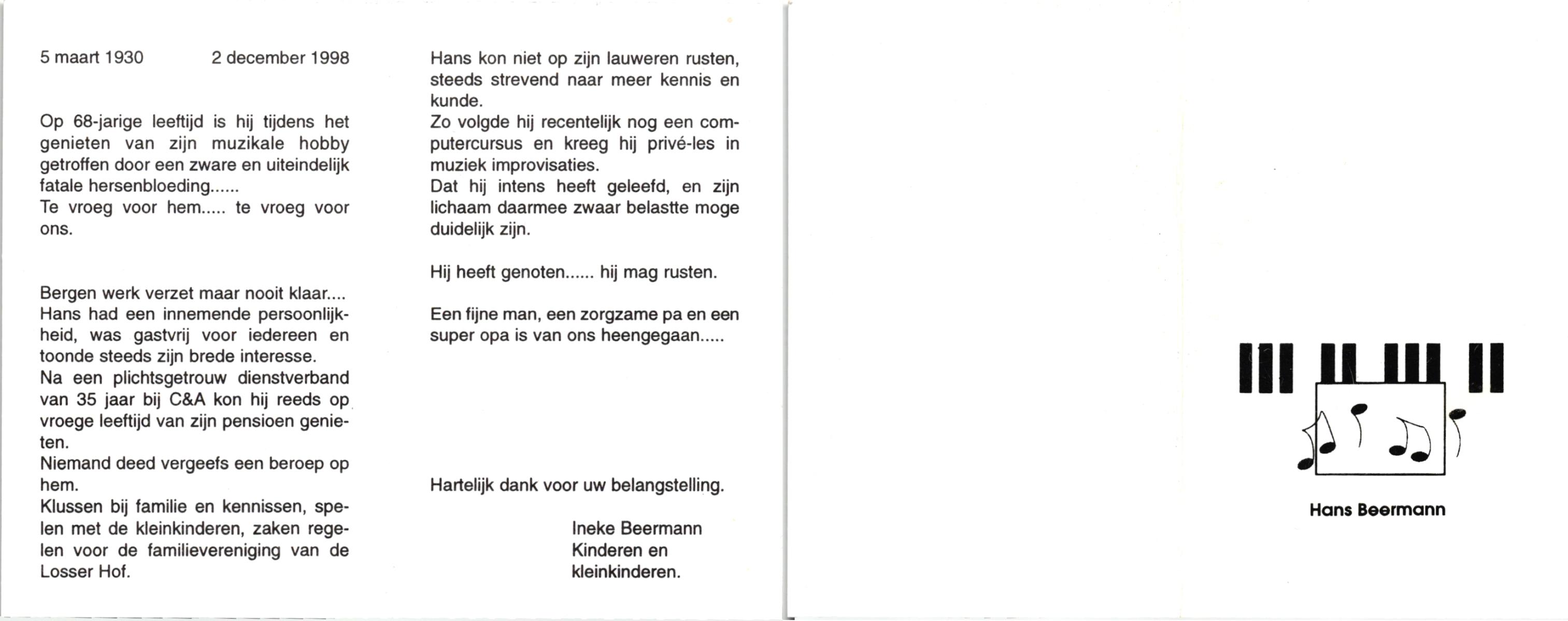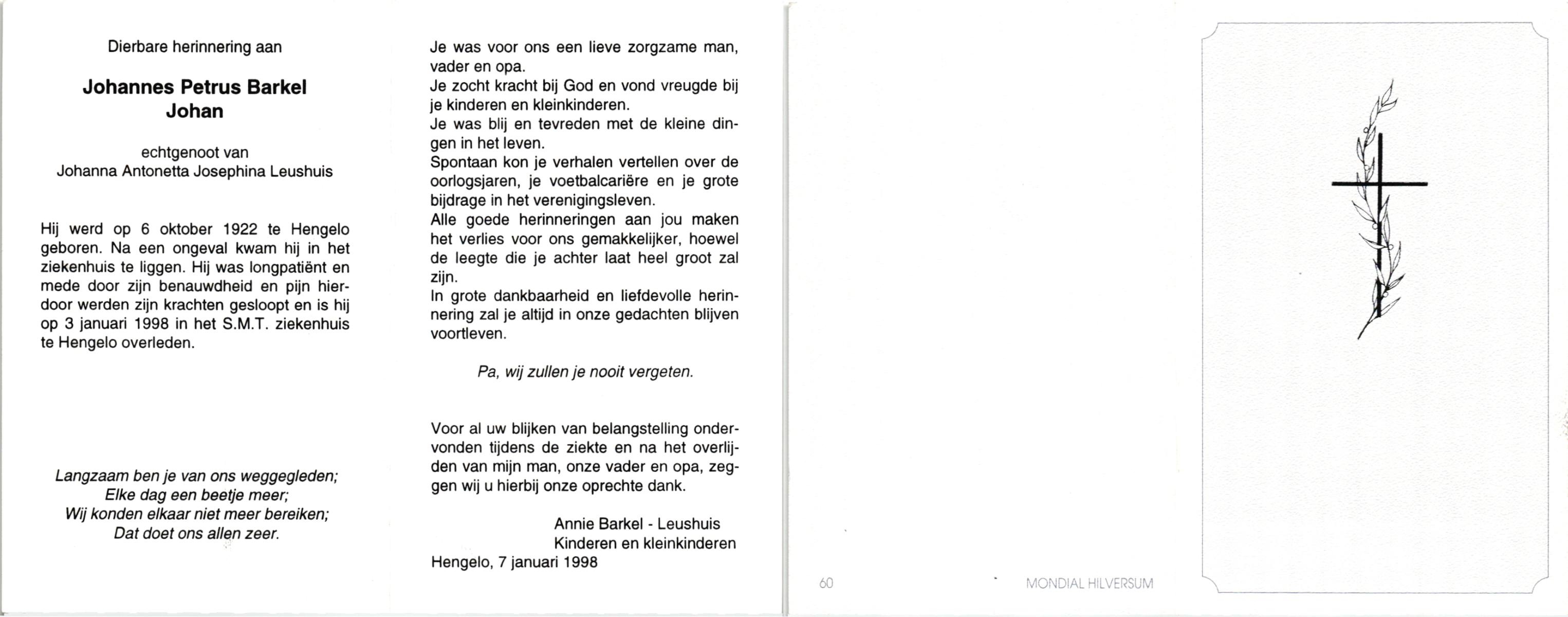 BEKHUIS, Gerard, geboren op 2-2-1925 te Tubbergen, overleden op 1-5-1998 te Utrecht op 73-jarige leeftijd, begraven op 6-5-1998 te Tubbergen.