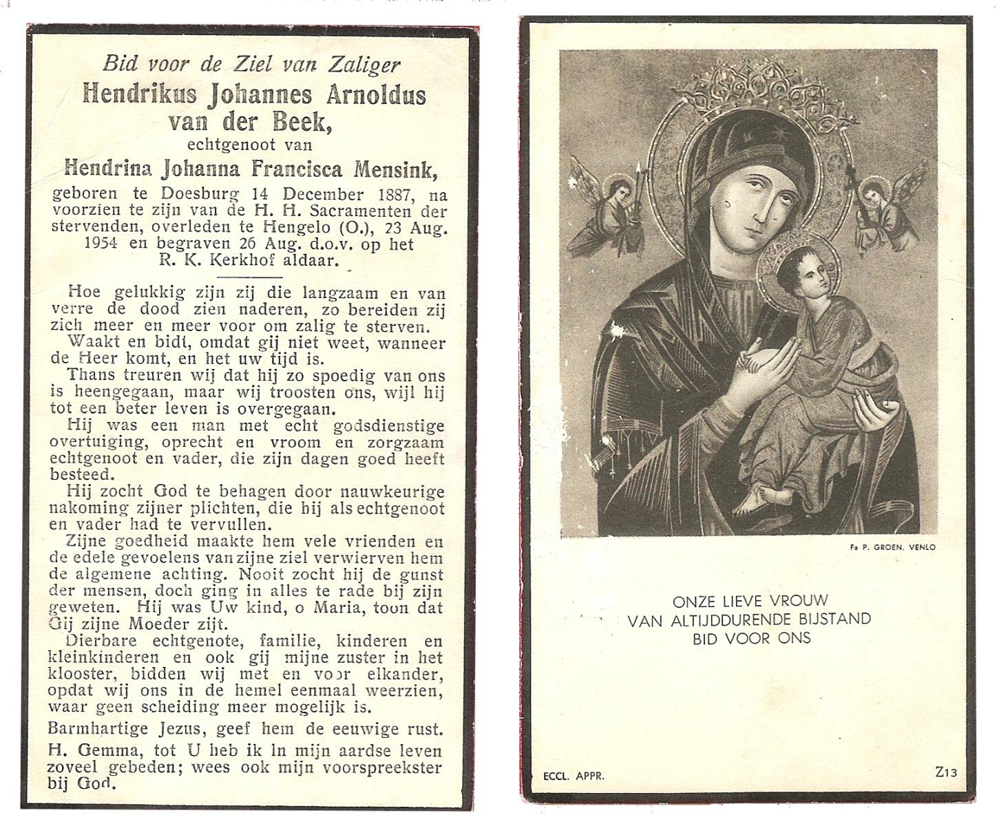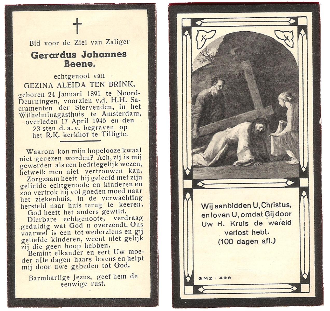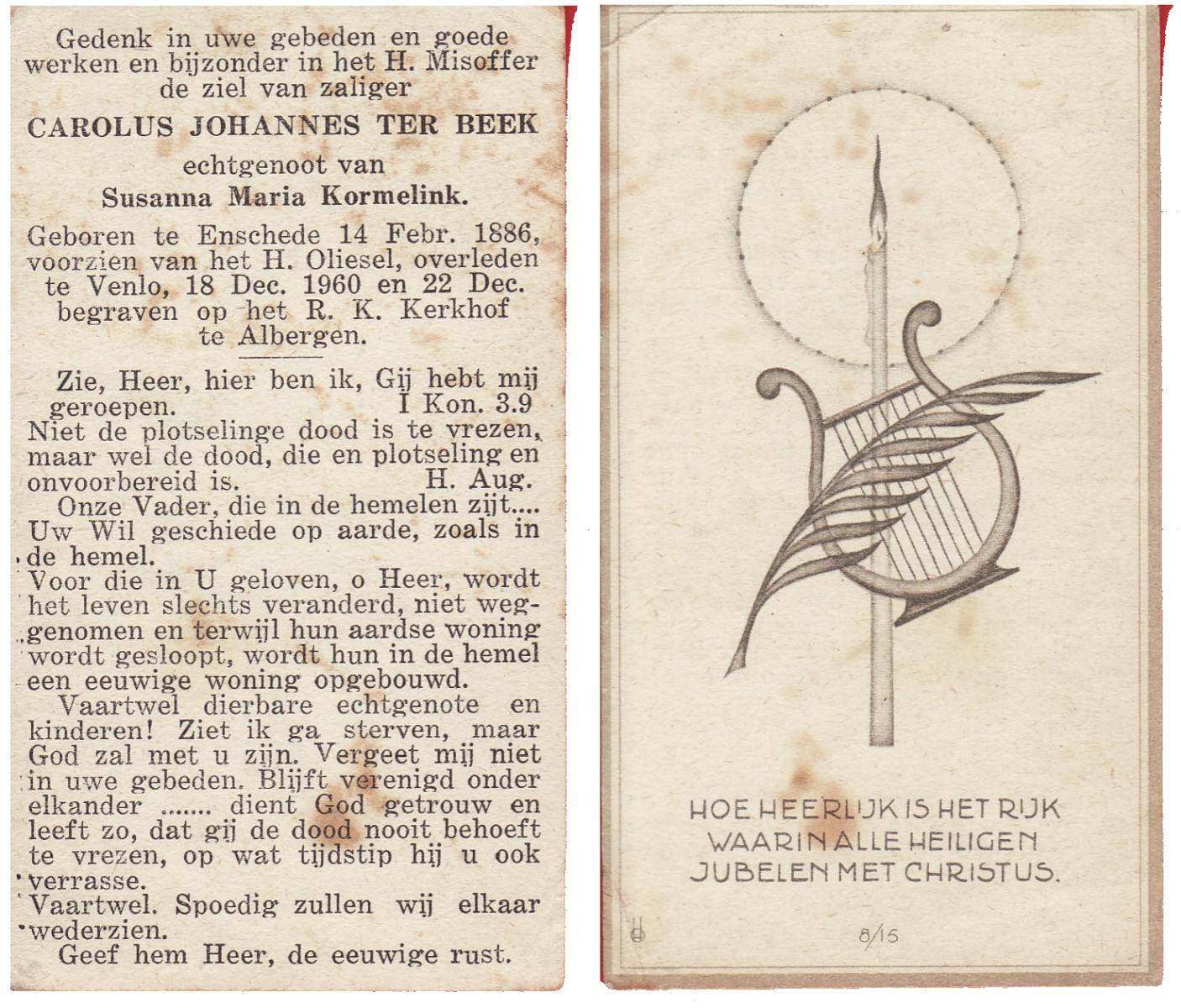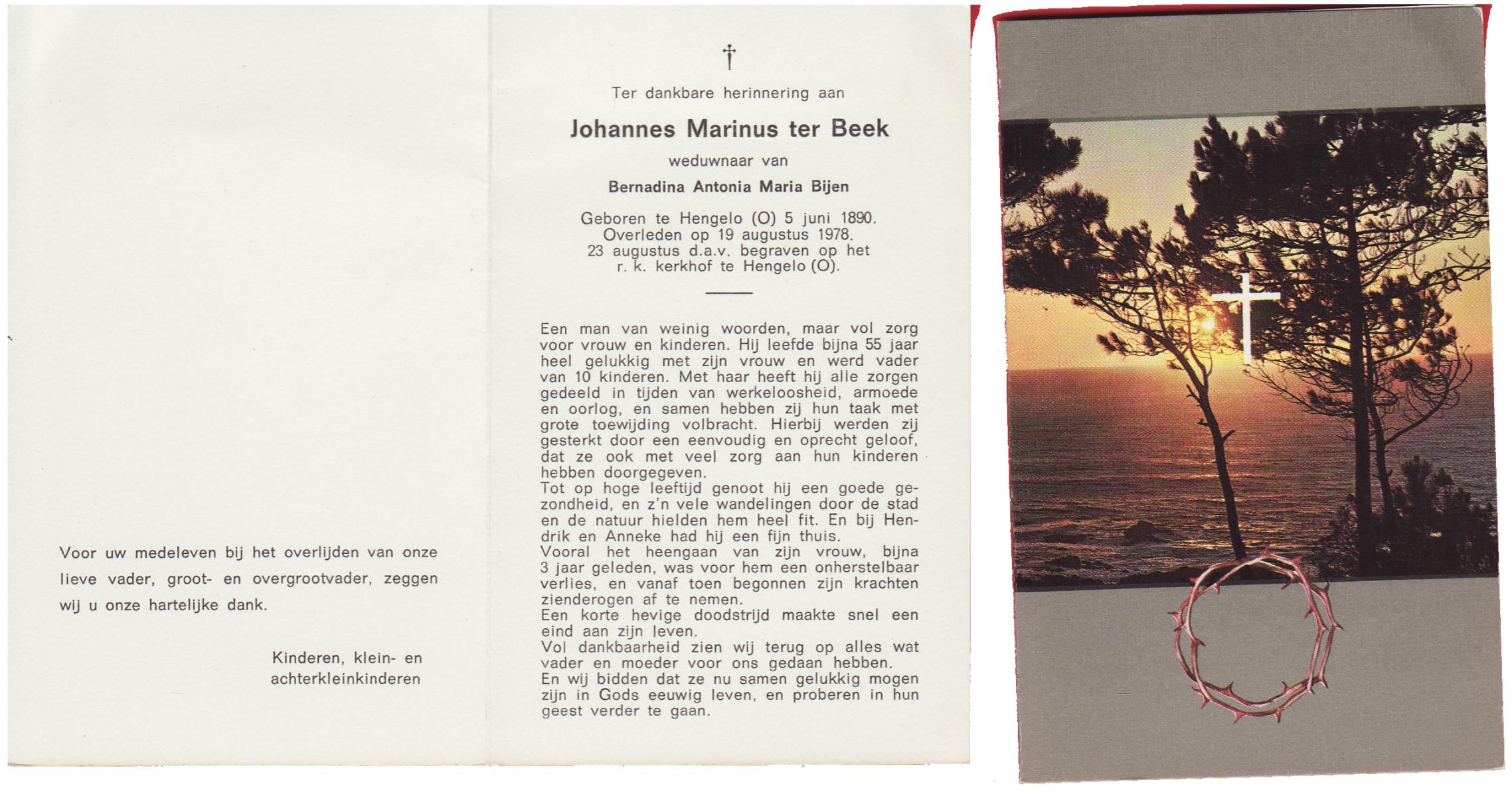 BEKE, ter, Johannes Gerardus Franciscus, geboren op 02-04-1892 te Hengelo (O), overleden op 29-10-1959 te Doetinchem op 67-jarige leeftijd, begraven op 3-11-1959 te Oldenzaal.