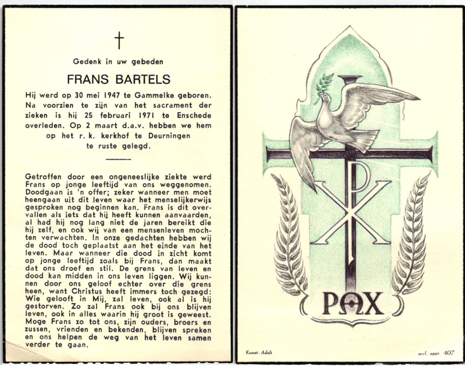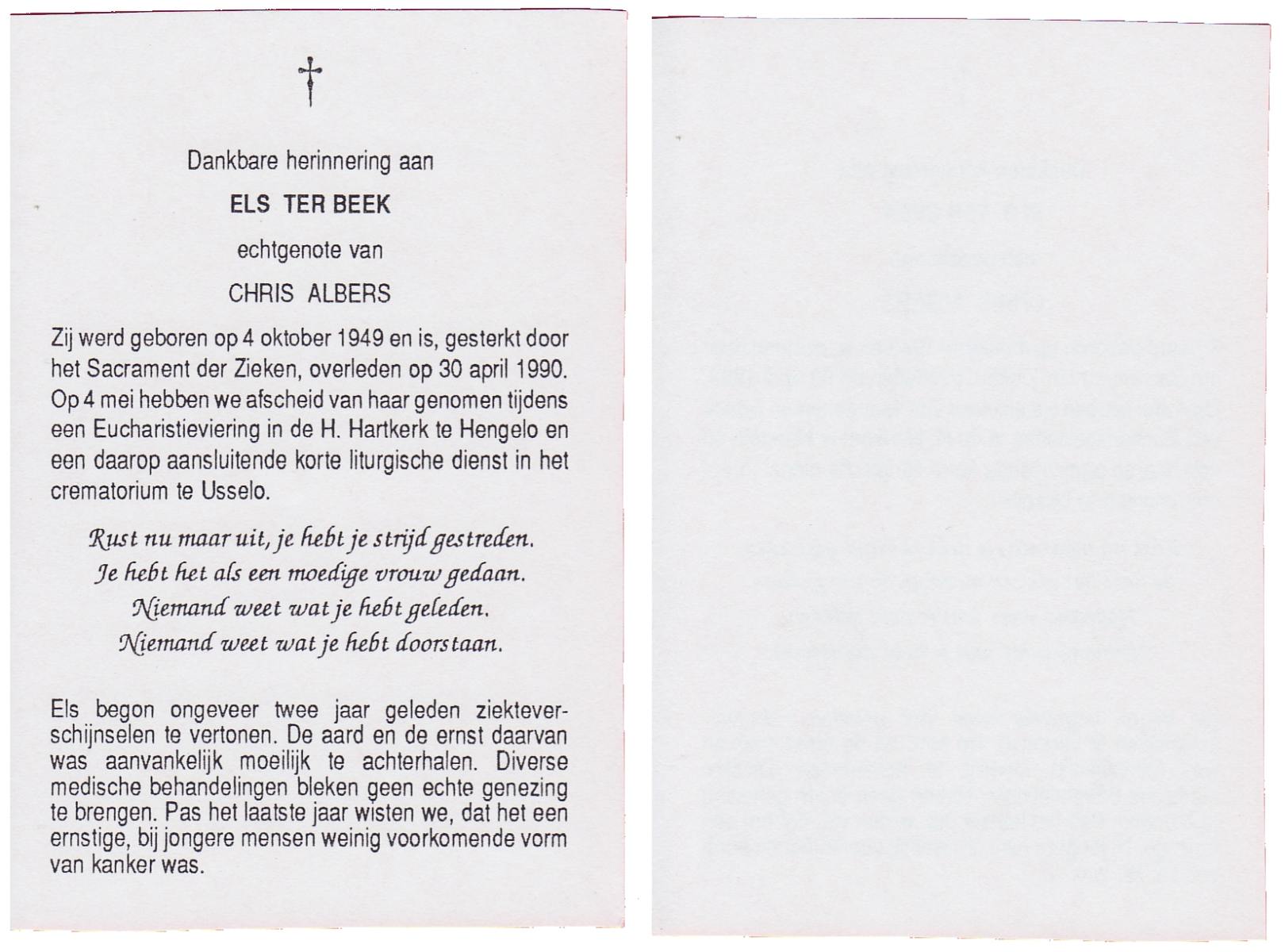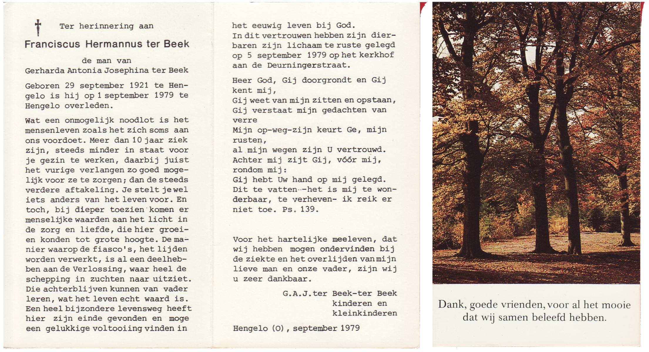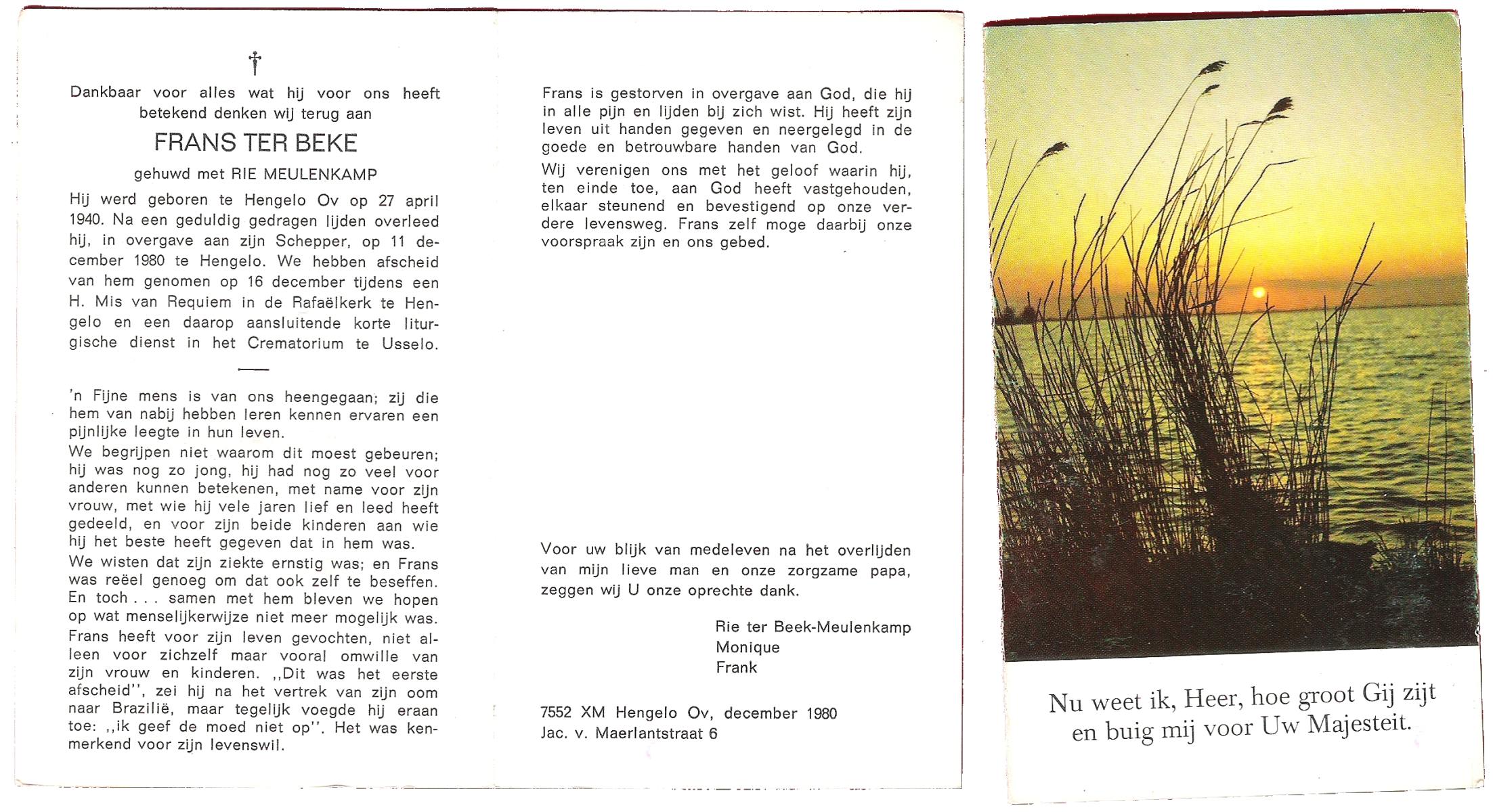 BEKE, ter, Frans, geboren op 27-4-1940 te Hengelo (O), overleden op 11-12-1980 te Hengelo (Ov.) op 40-jarige leeftijd, gecremeerd op 16-12-1980 te Usselo.
