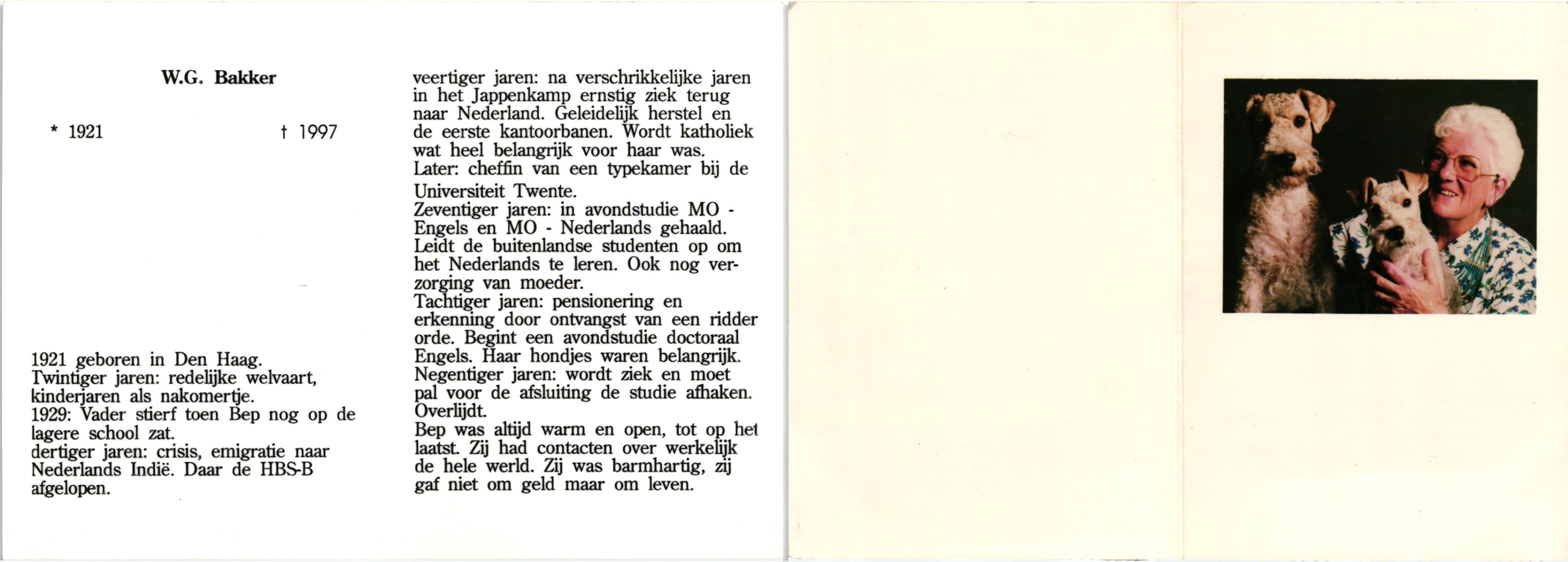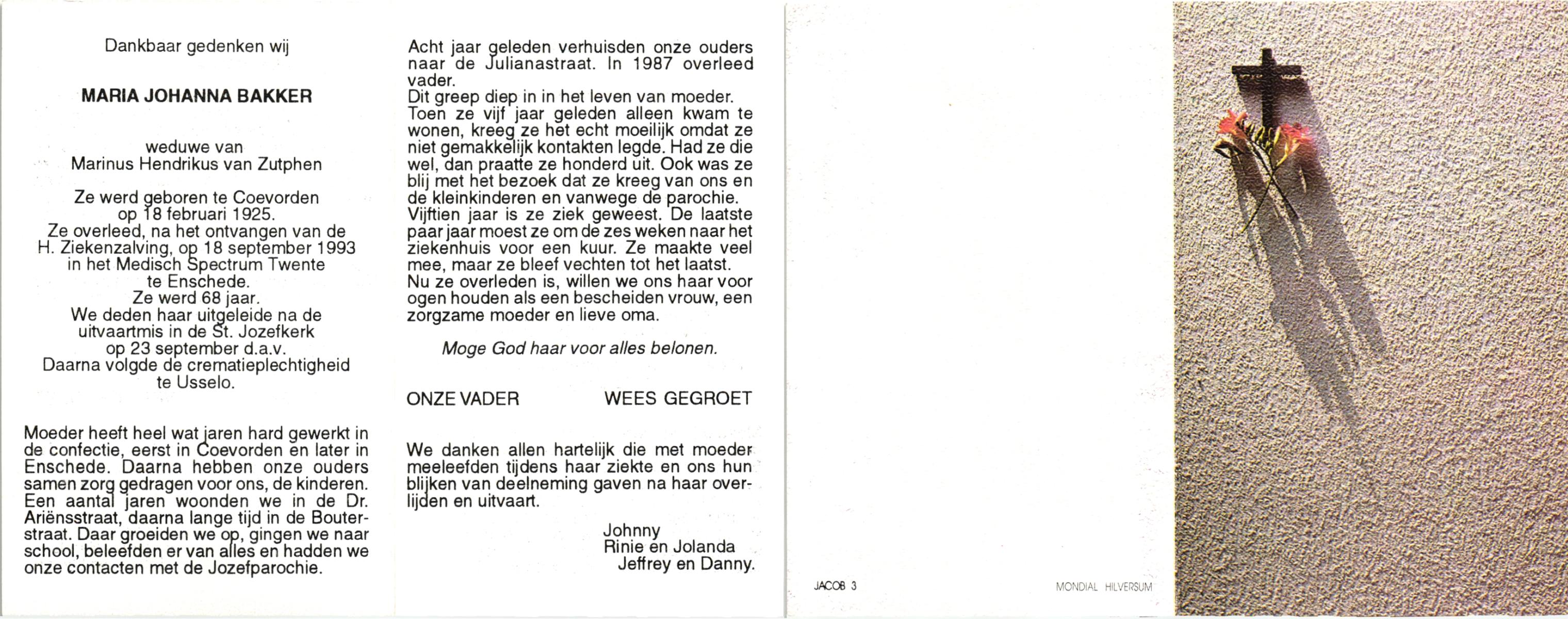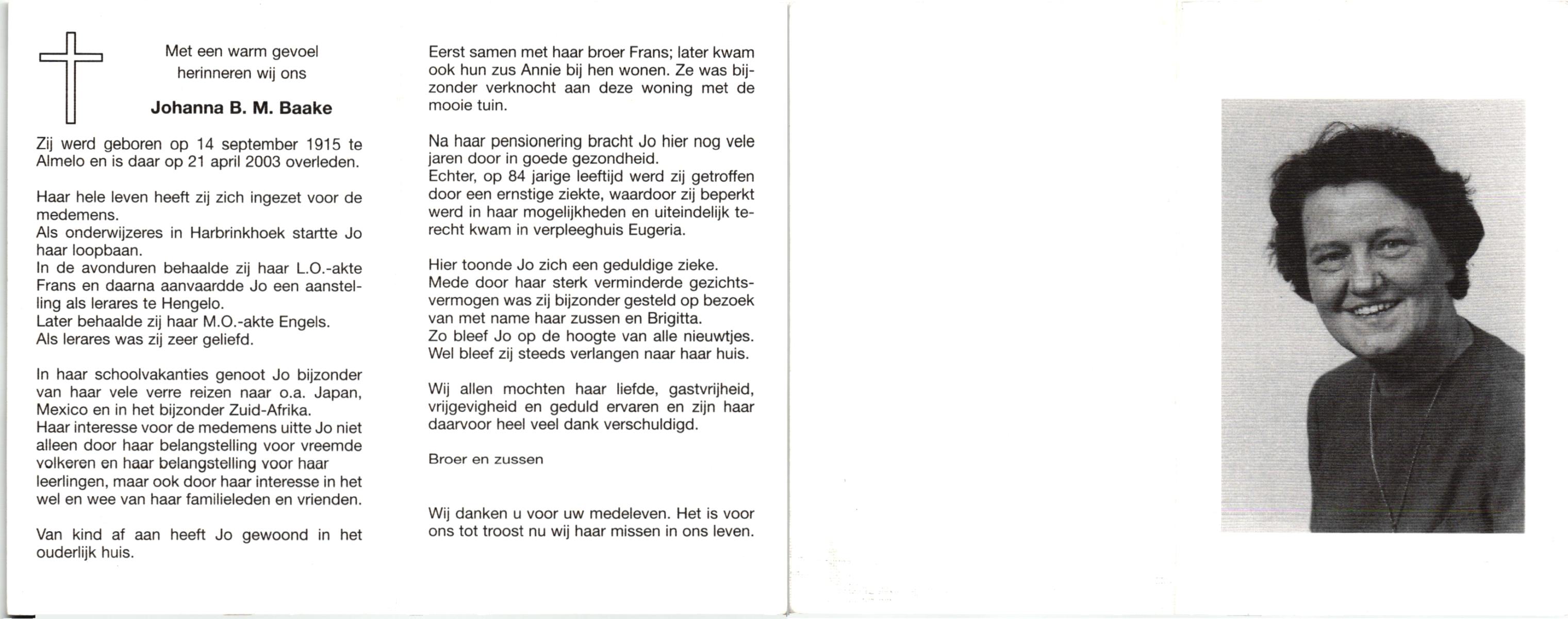 BEIJER, Josephine Maria Berendina, geboren op 24-7-1914 te Enschede, overleden op 17-9-1993 op 79-jarige leeftijd, gecremeerd op 21-9-1993 te Usselo.