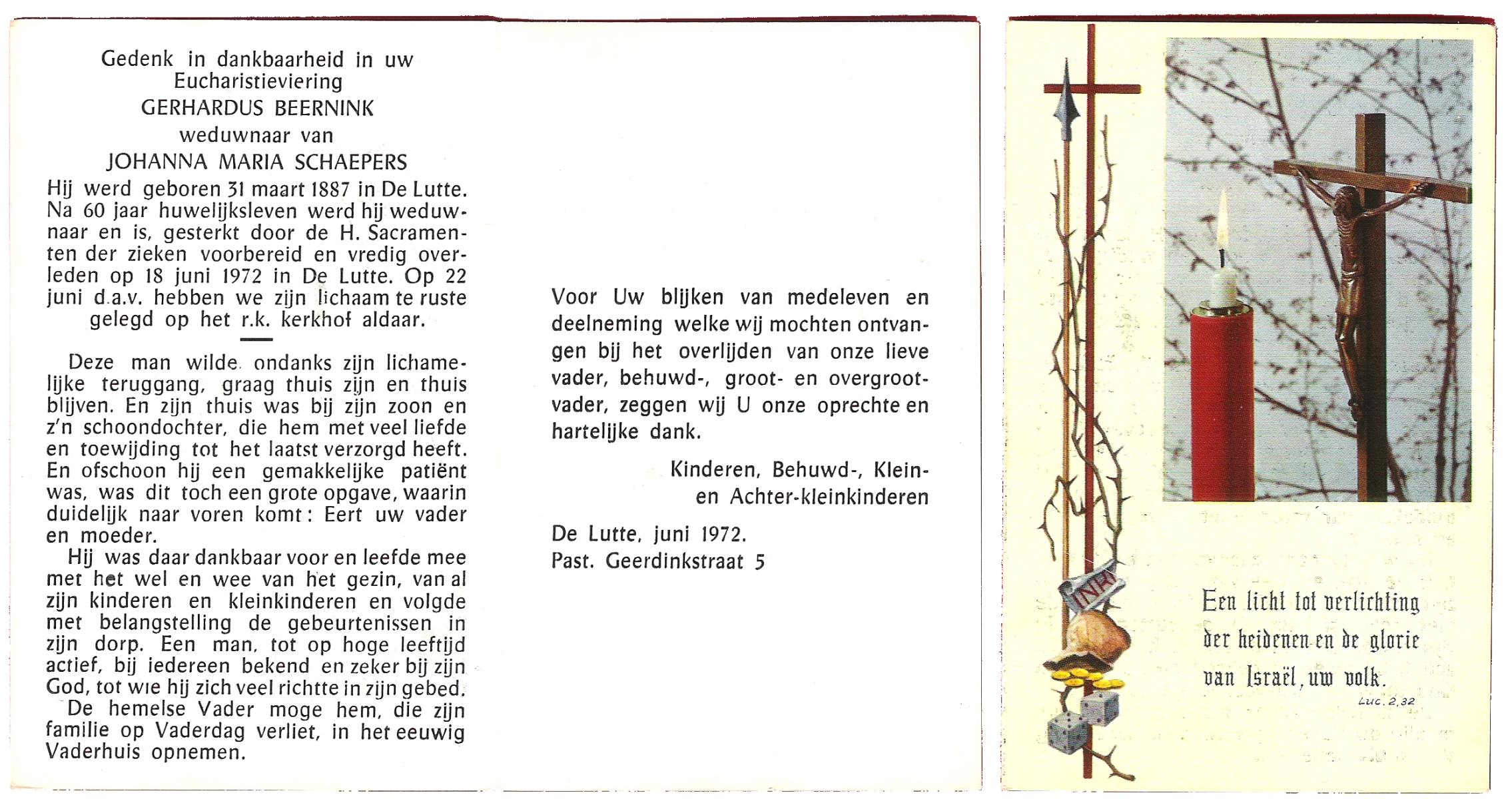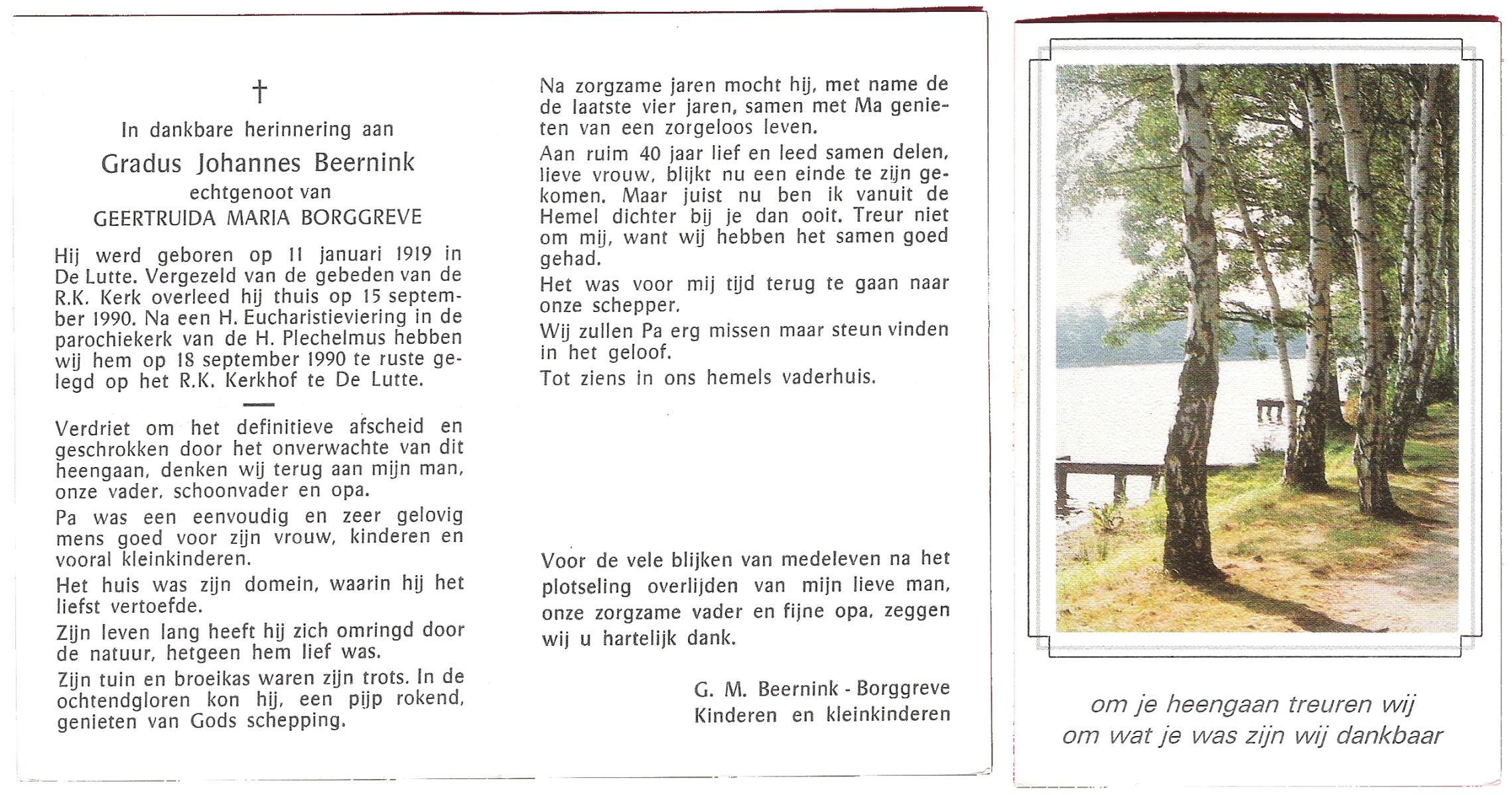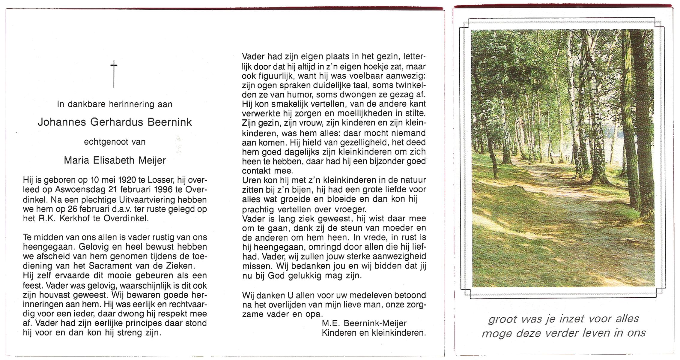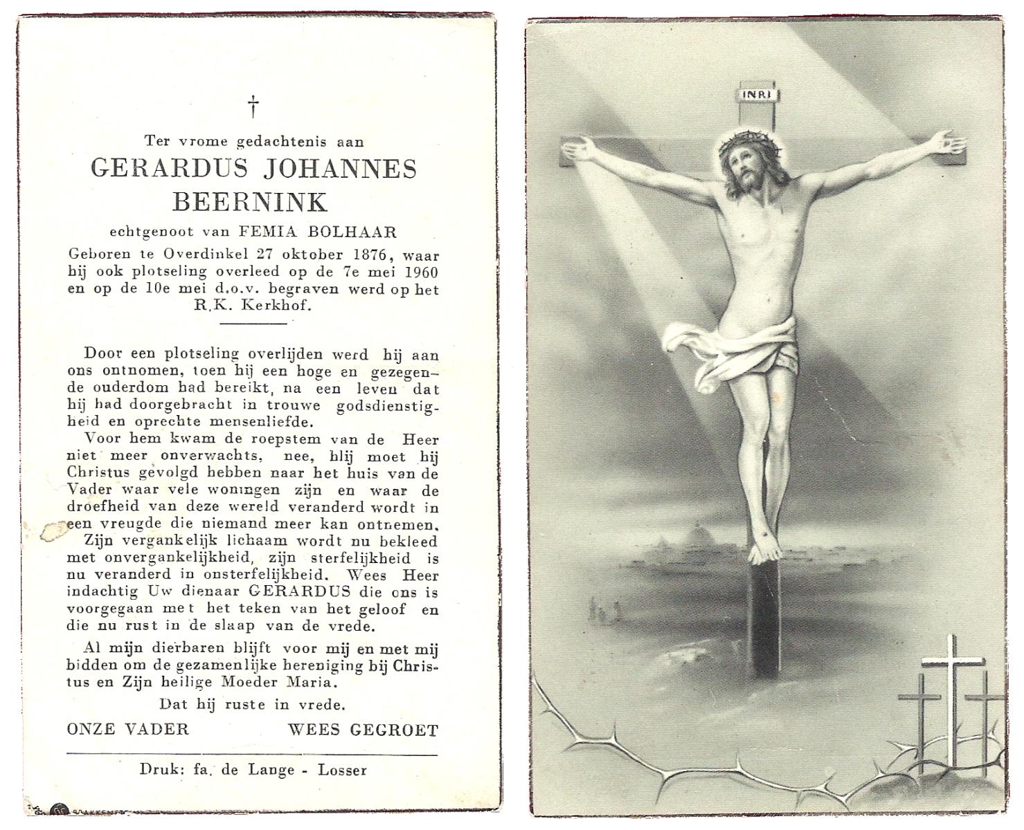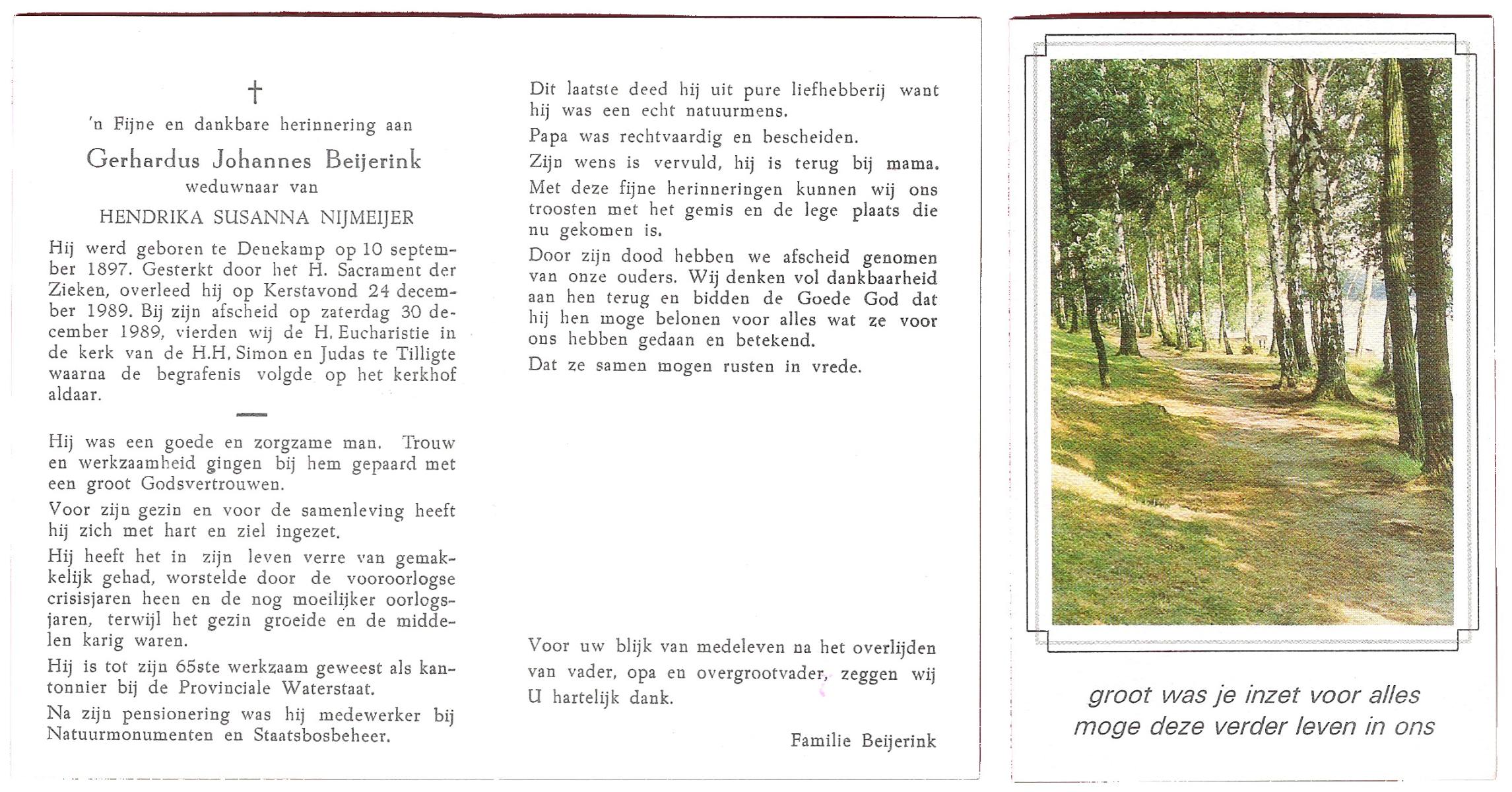 BEIJERINK, Gerhardus Johannes, geboren op 10-09-1897 te Denekamp, overleden op 24-12-1989 op 92-jarige leeftijd, begraven op 30-12-1989 te Tilligte.