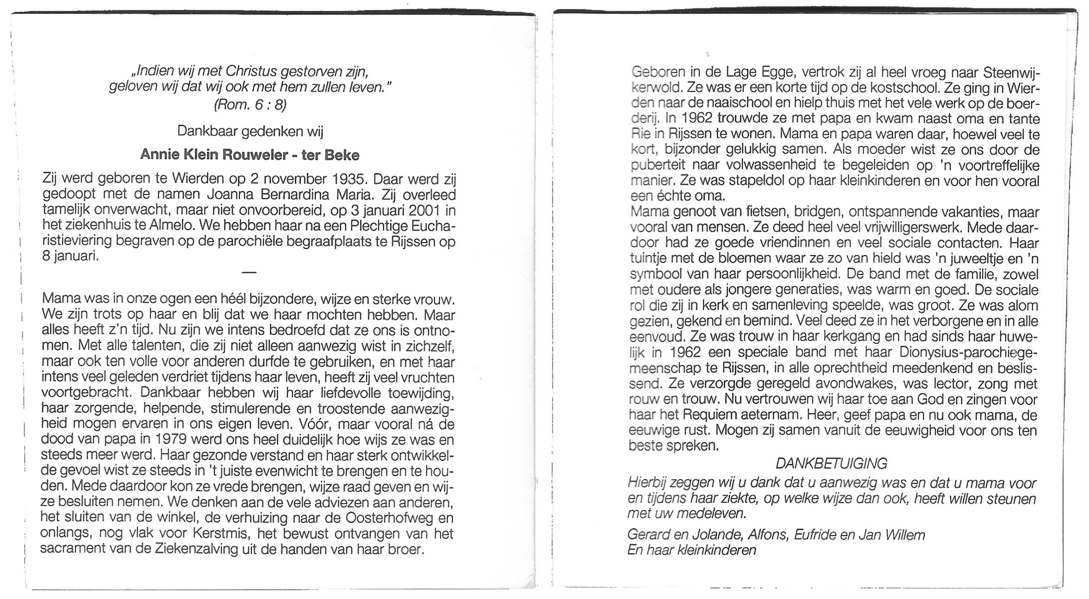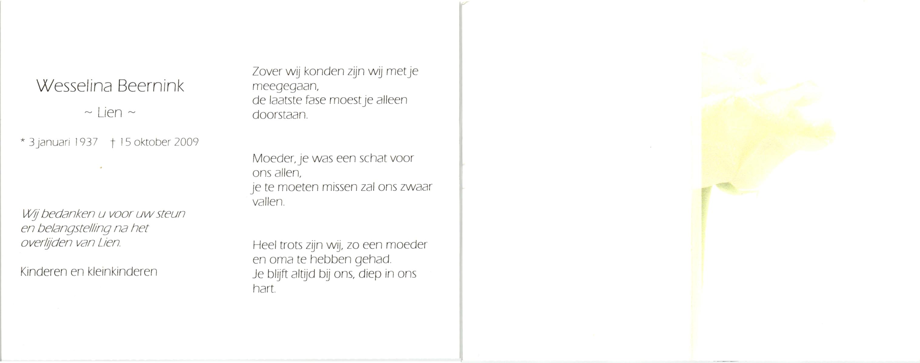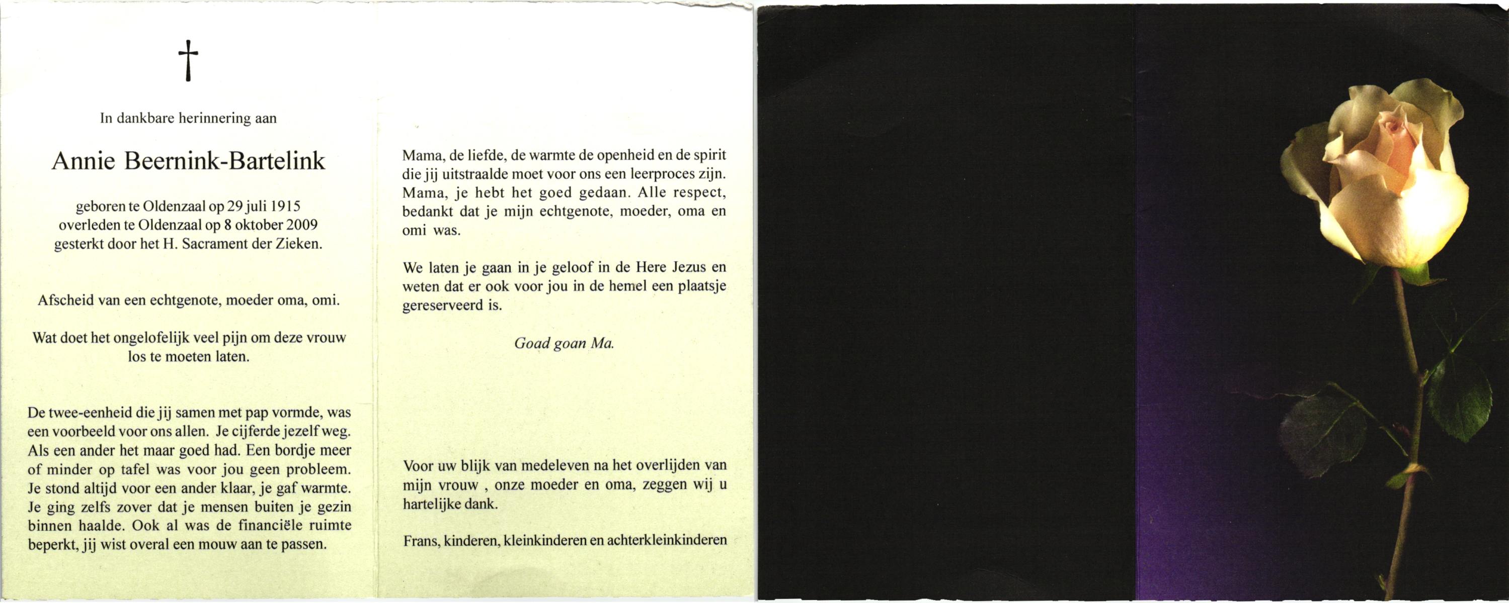 BEIJERINK, , Annie, geboren op 5-6-1931 te Weerselo, overleden op 23-11-2009 te Ootmarsum op 78-jarige leeftijd.