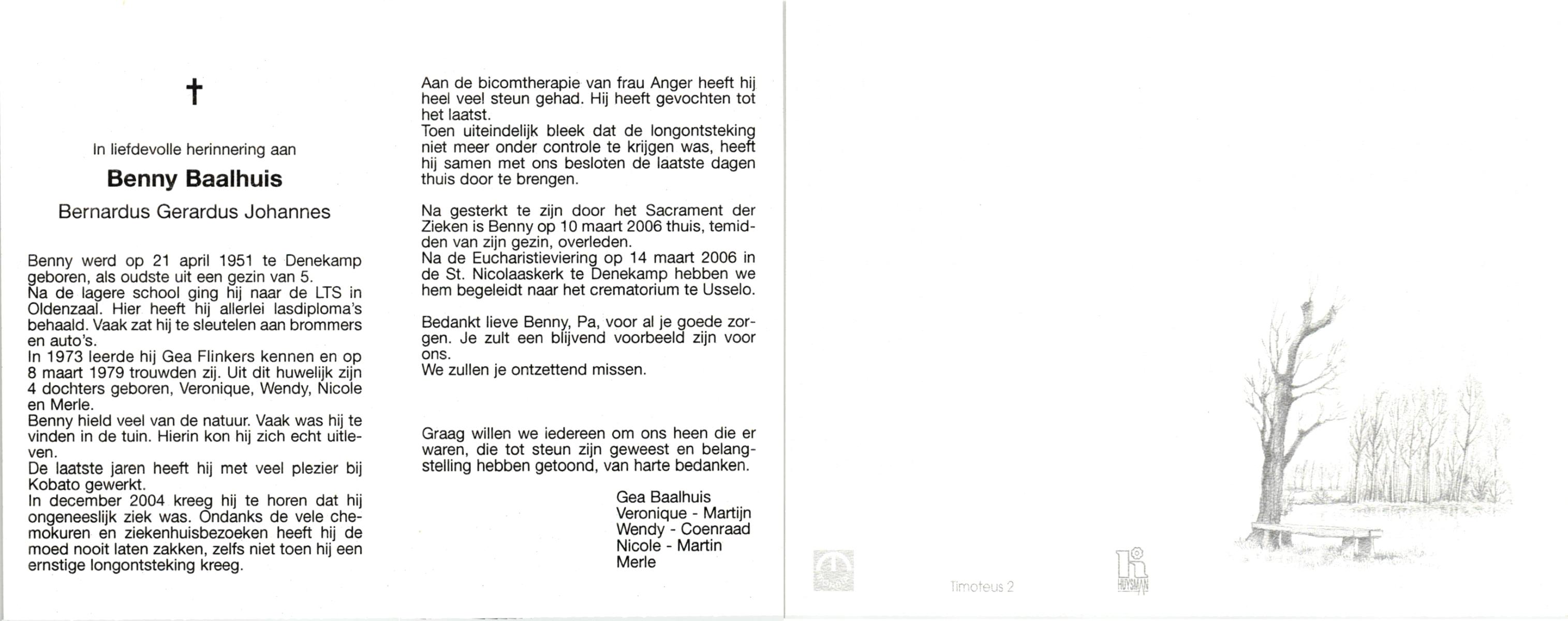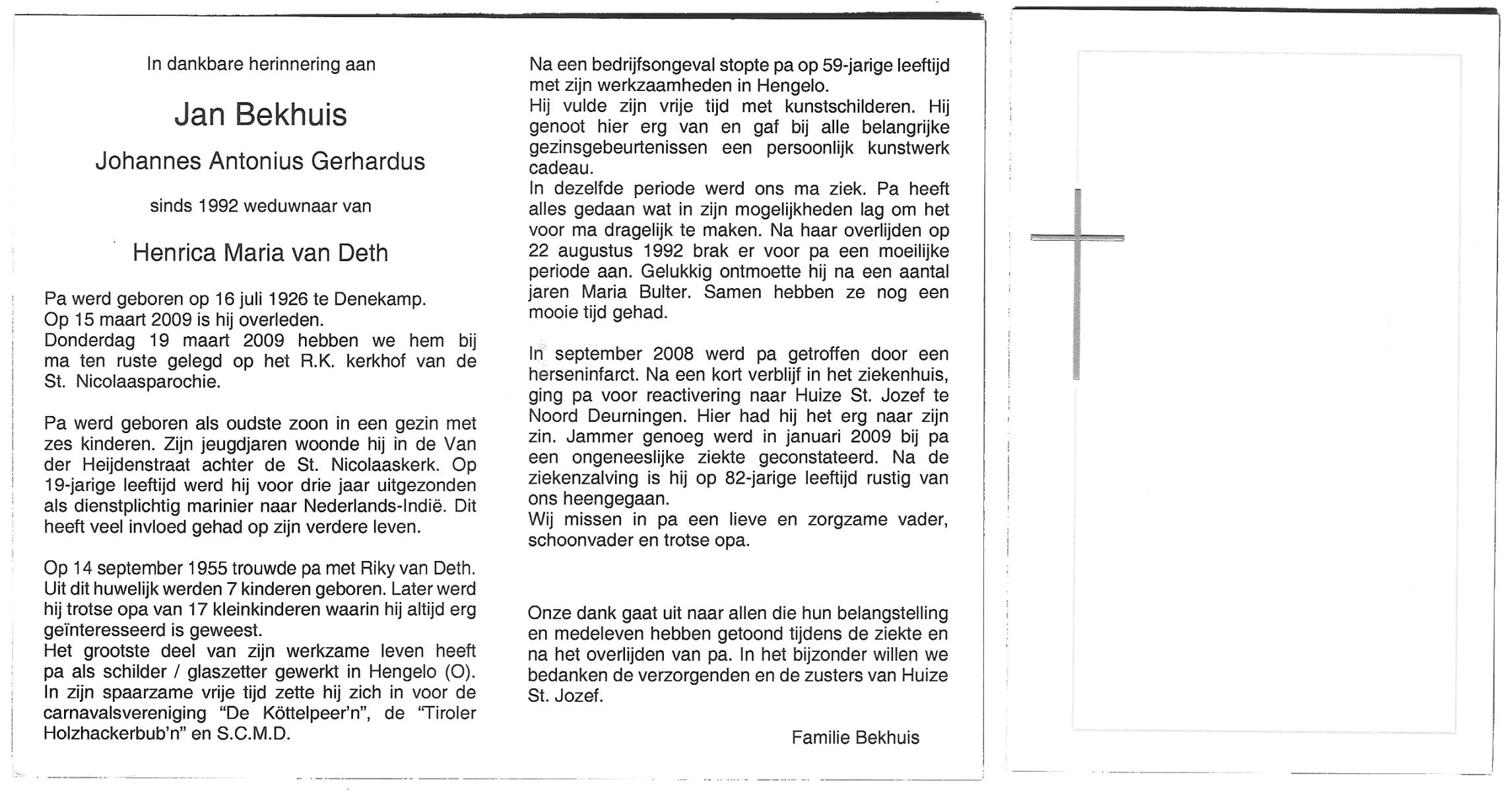 BEKHUIS, Jan, geboren op 16-7-1926 te Denekamp, overleden op 15-3-2009 op 82-jarige leeftijd, begraven op 19-3-2009 te Denekamp.