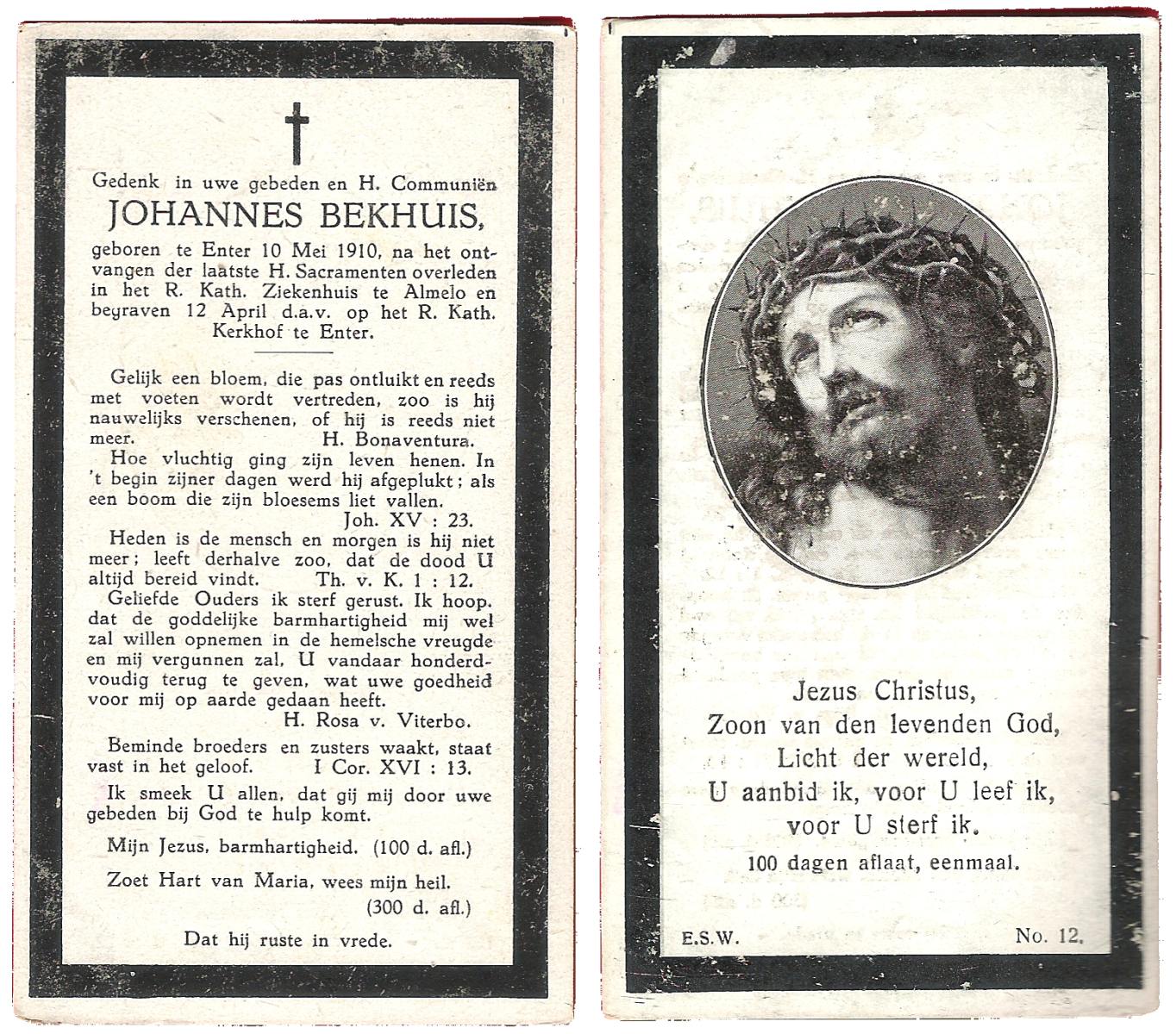 BEKHUIS, Johannes, geboren op 10-5-1910 te Wierden, Enter, overleden te Almelo.