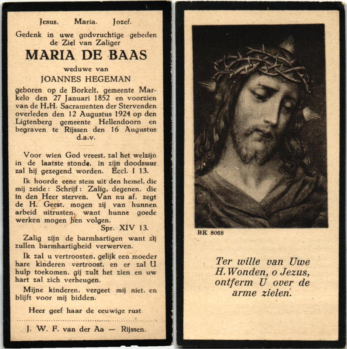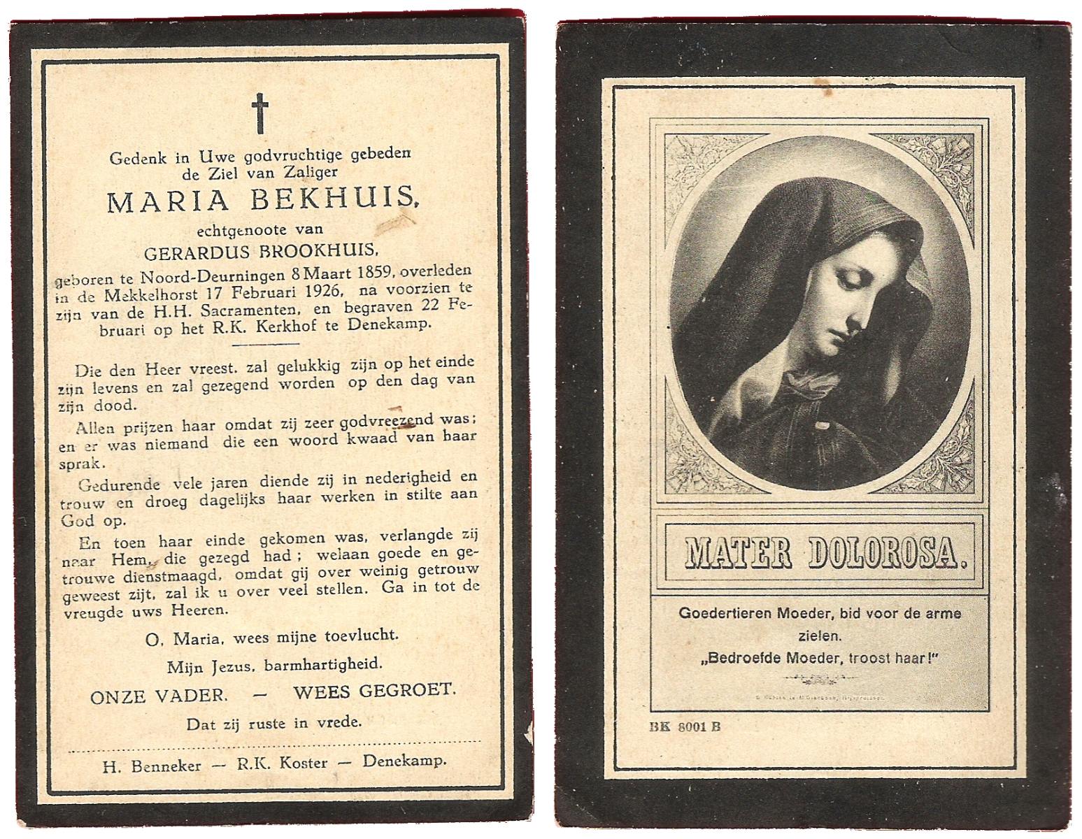 BEKHUIS, Maria, geboren op 08-03-1859 te Noord Deurningen, overleden op 17-2-1926 op 67-jarige leeftijd, begraven op 22-2-1926 te Denekamp.
