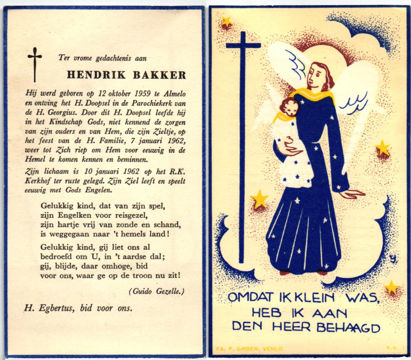 BEKHUIS, Hendrikus, geboren op 30-09-1896 te Tubbergen, overleden op 25-1-1961 te Almelo op 64-jarige leeftijd, begraven op 28-1-1961 te Almelo.