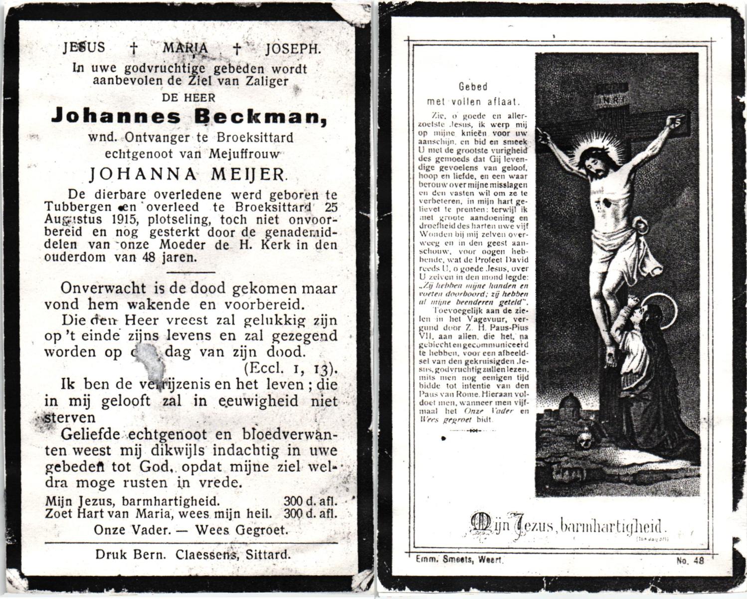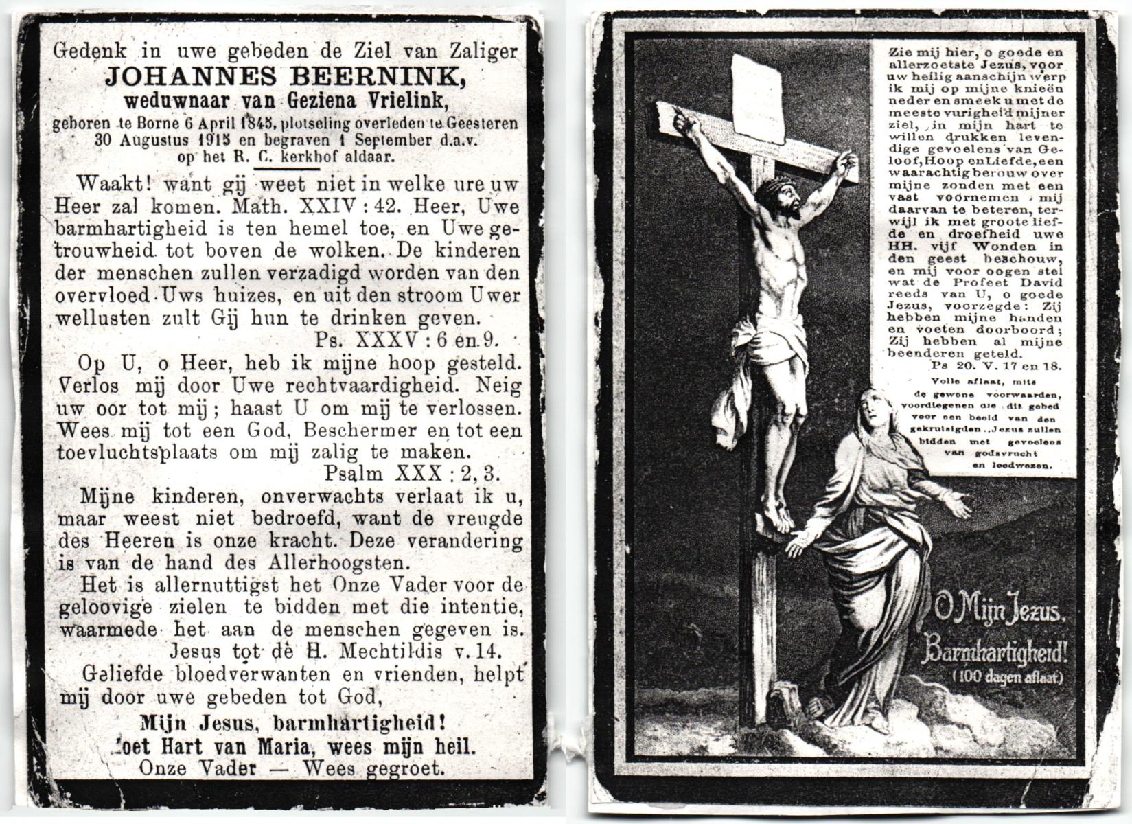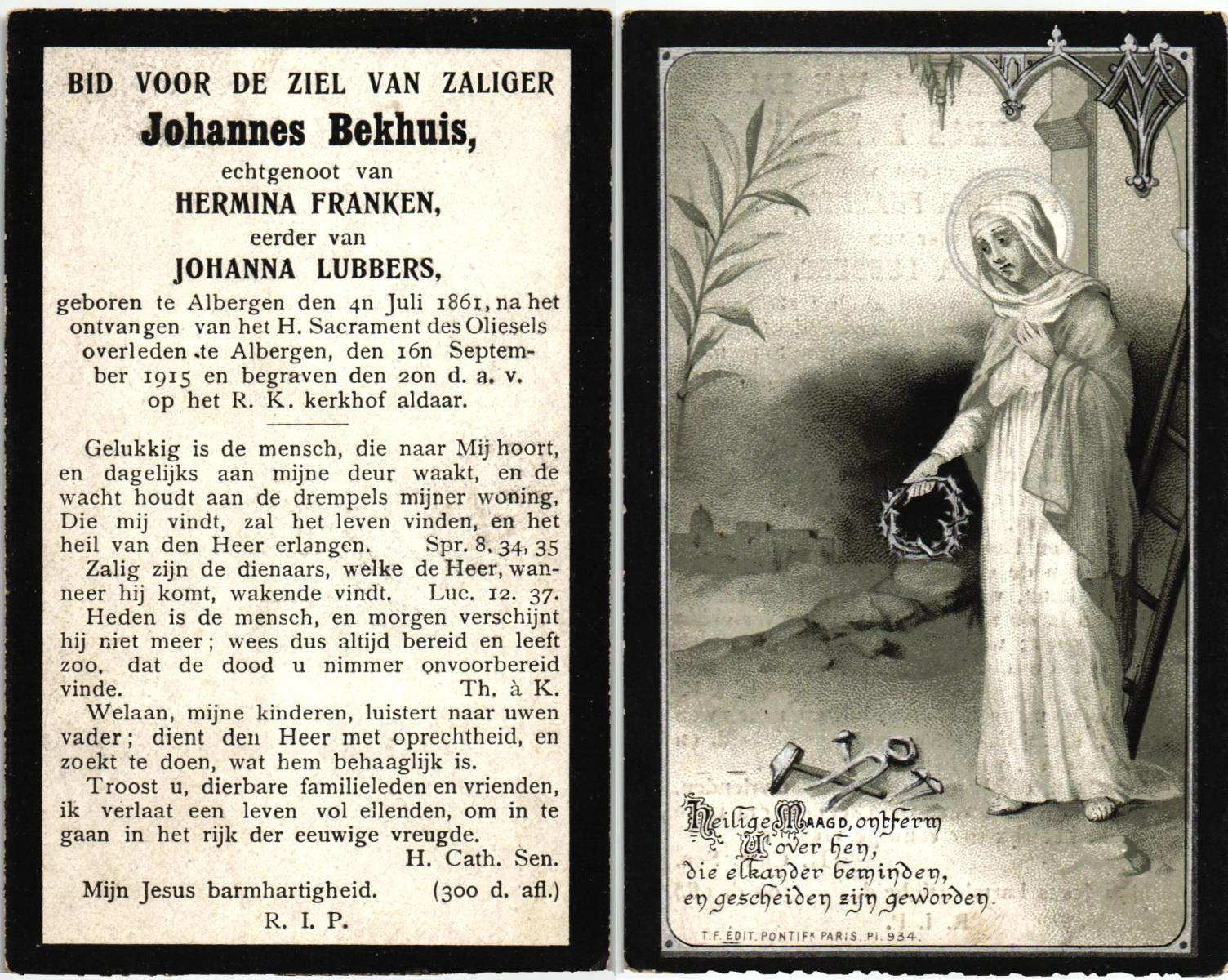 BEKHUIS, Johannes, geboren op 04-07-1861 te Albergen, overleden op 16-9-1915 te Albergen op 54-jarige leeftijd, begraven op 20-9-1915 te Albergen.