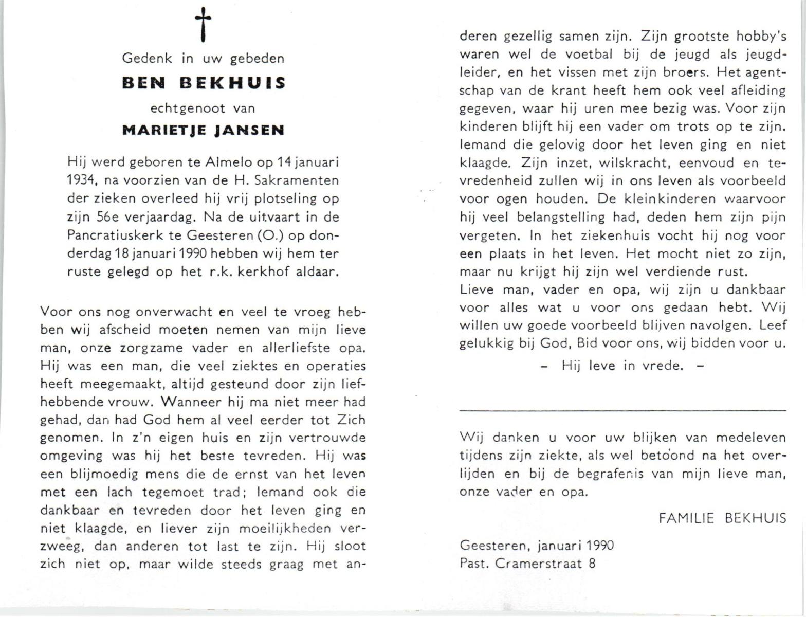 BEKHUIS, Ben, geboren op 14-1-1934 te Almelo, overleden op 14-1-1990 op 56-jarige leeftijd, begraven op 18-1-1990 te Geesteren.