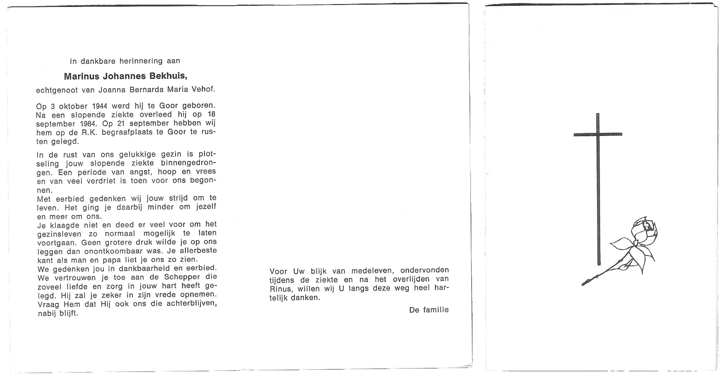 BEKHUIS, Marinus Johannes, geboren op 3-10-1944 te Goor, overleden op 18-9-1984 te Goor op 39-jarige leeftijd, begraven op 21-9-1984 te Goor.