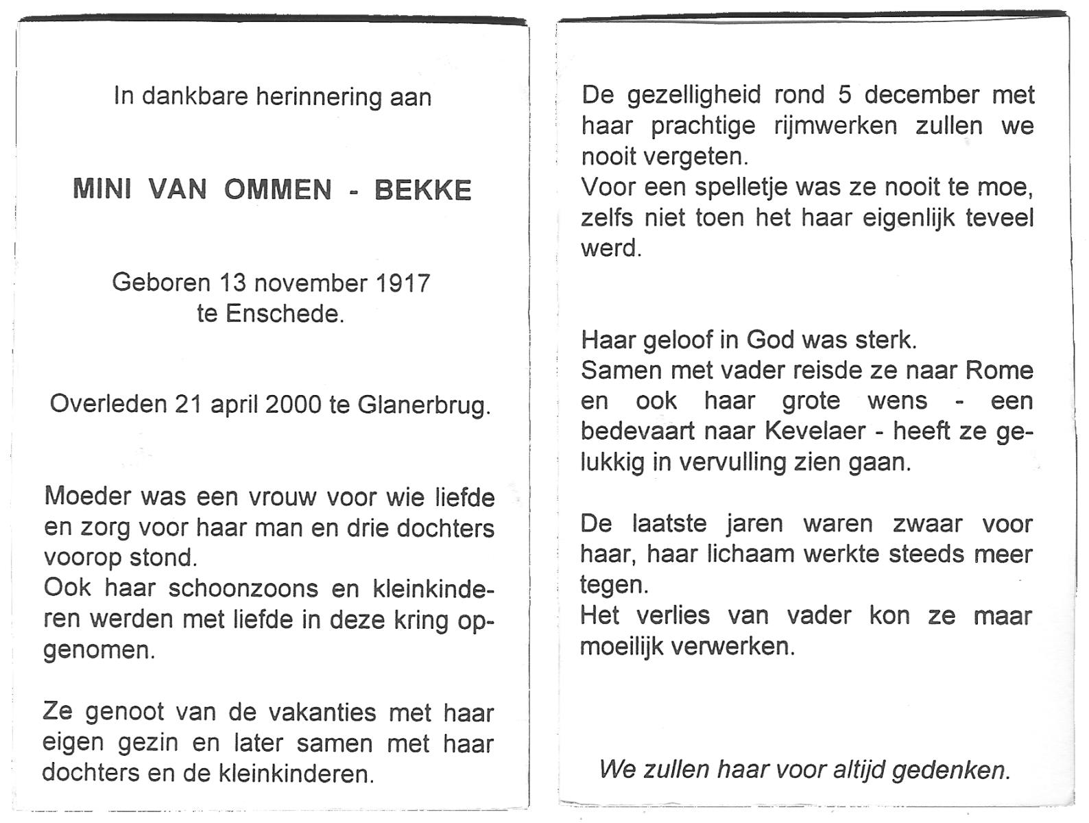 BEKKE, Mini, geboren op 13-11-1917 te Enschede, overleden op 21-4-2000 te Glanerbrug op 82-jarige leeftijd.
