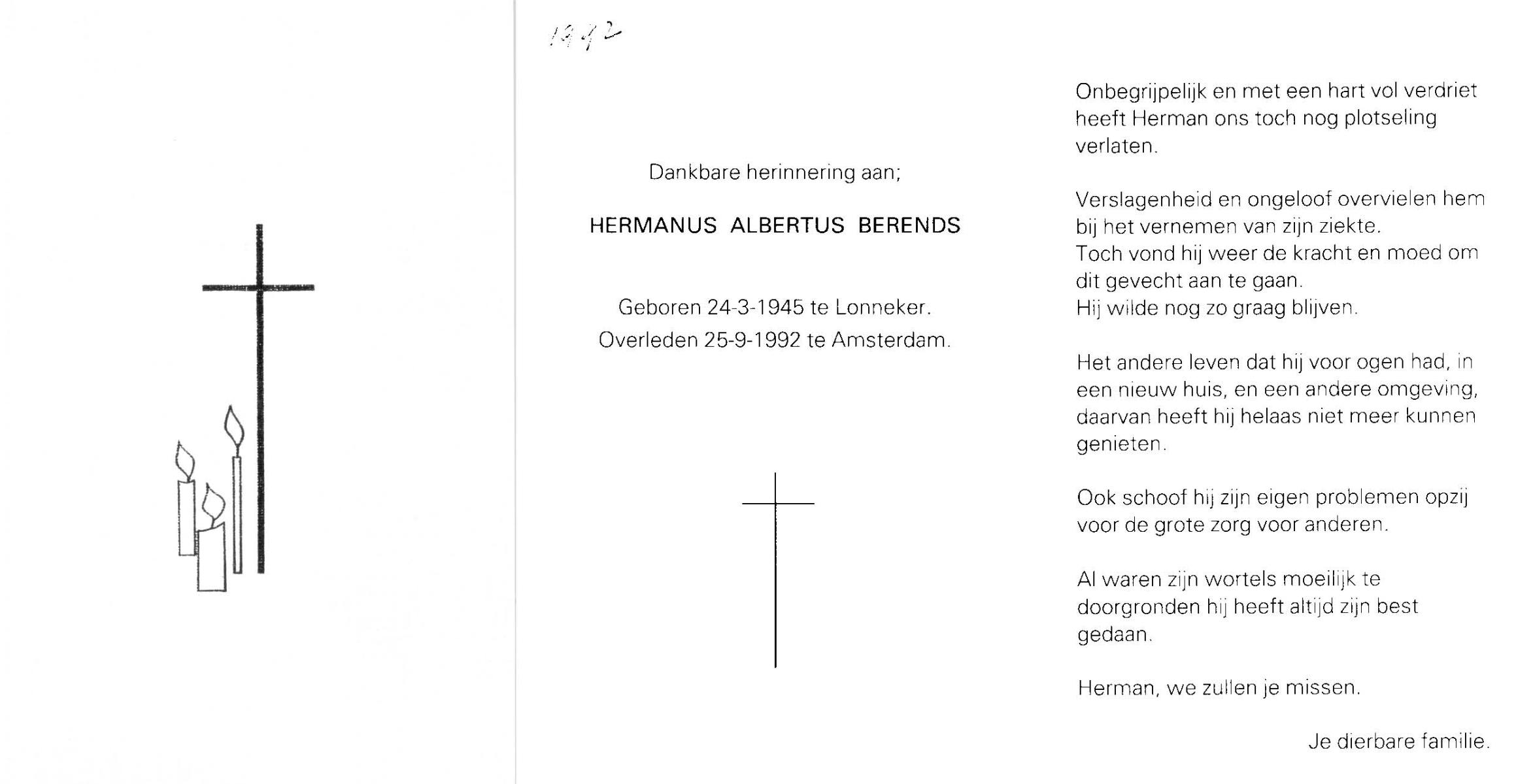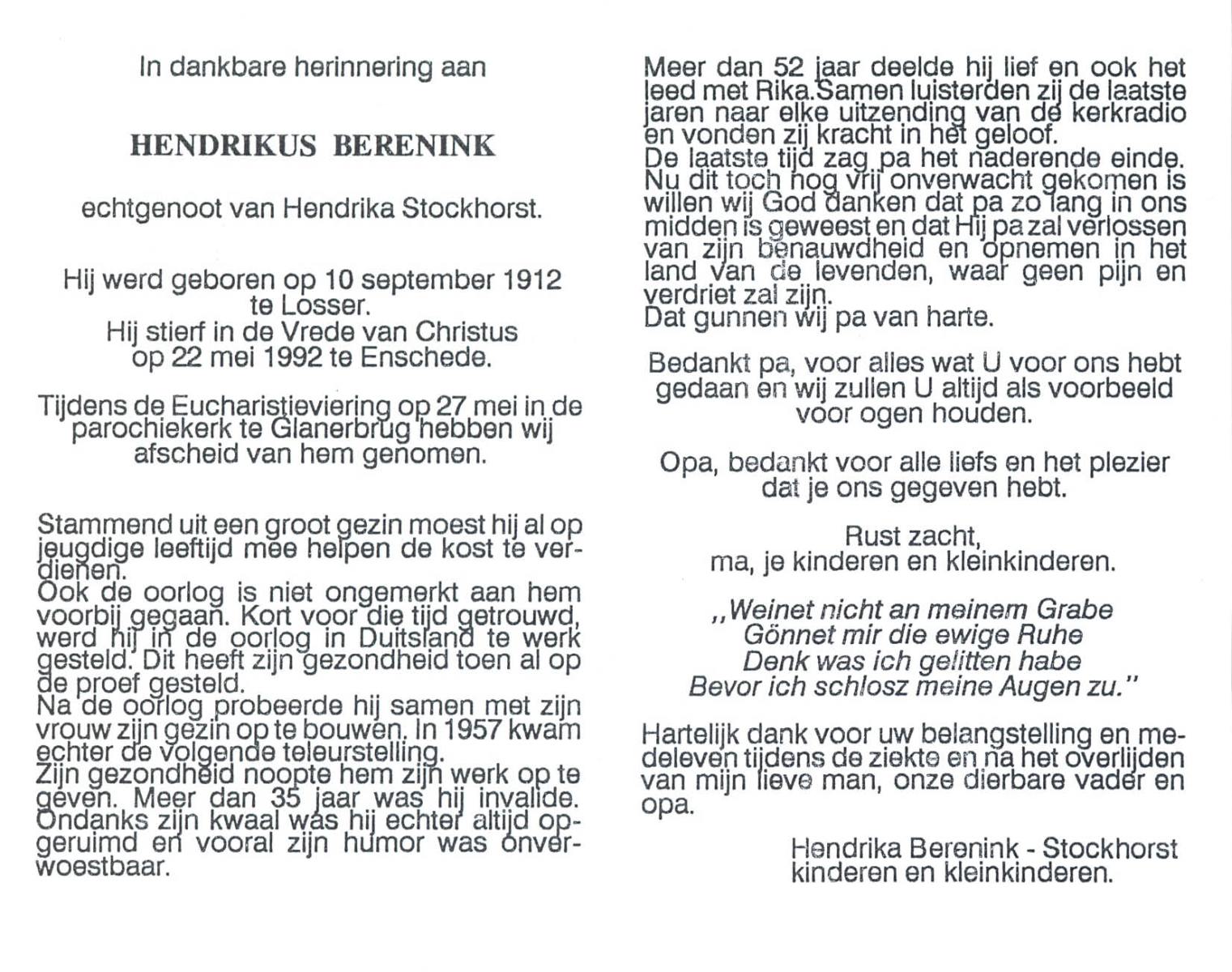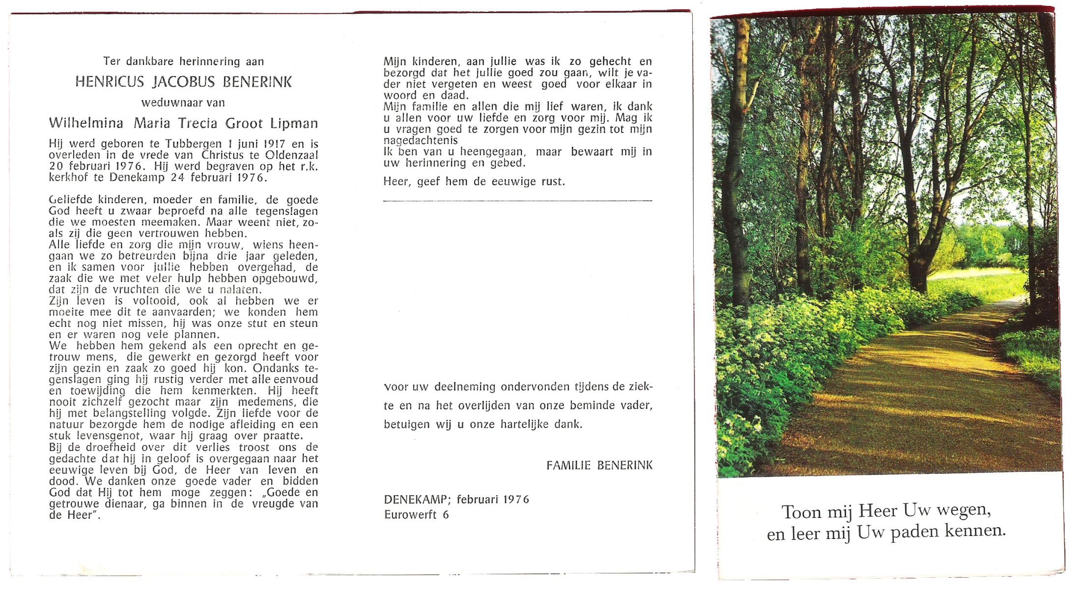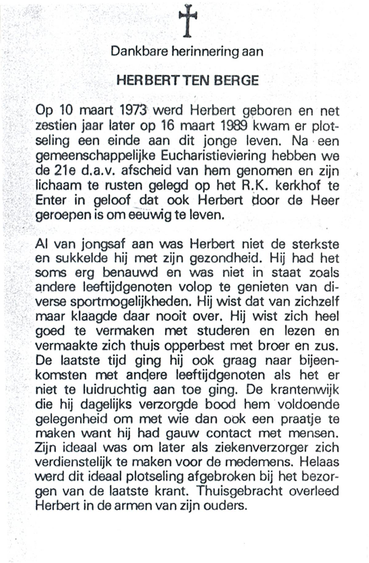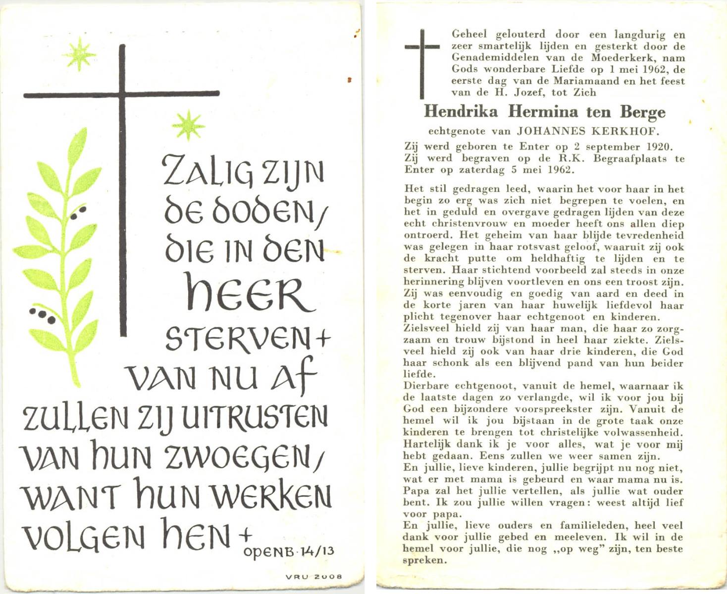 BEKKE, ter, Hermanus Hendrikus Antonius, geboren op 6-10-1916 te Hengelo (O), overleden op 22-1-1976 te Hengelo (Ov.) op 59-jarige leeftijd, begraven op 26-1-1976 te Hengelo (Ov.).