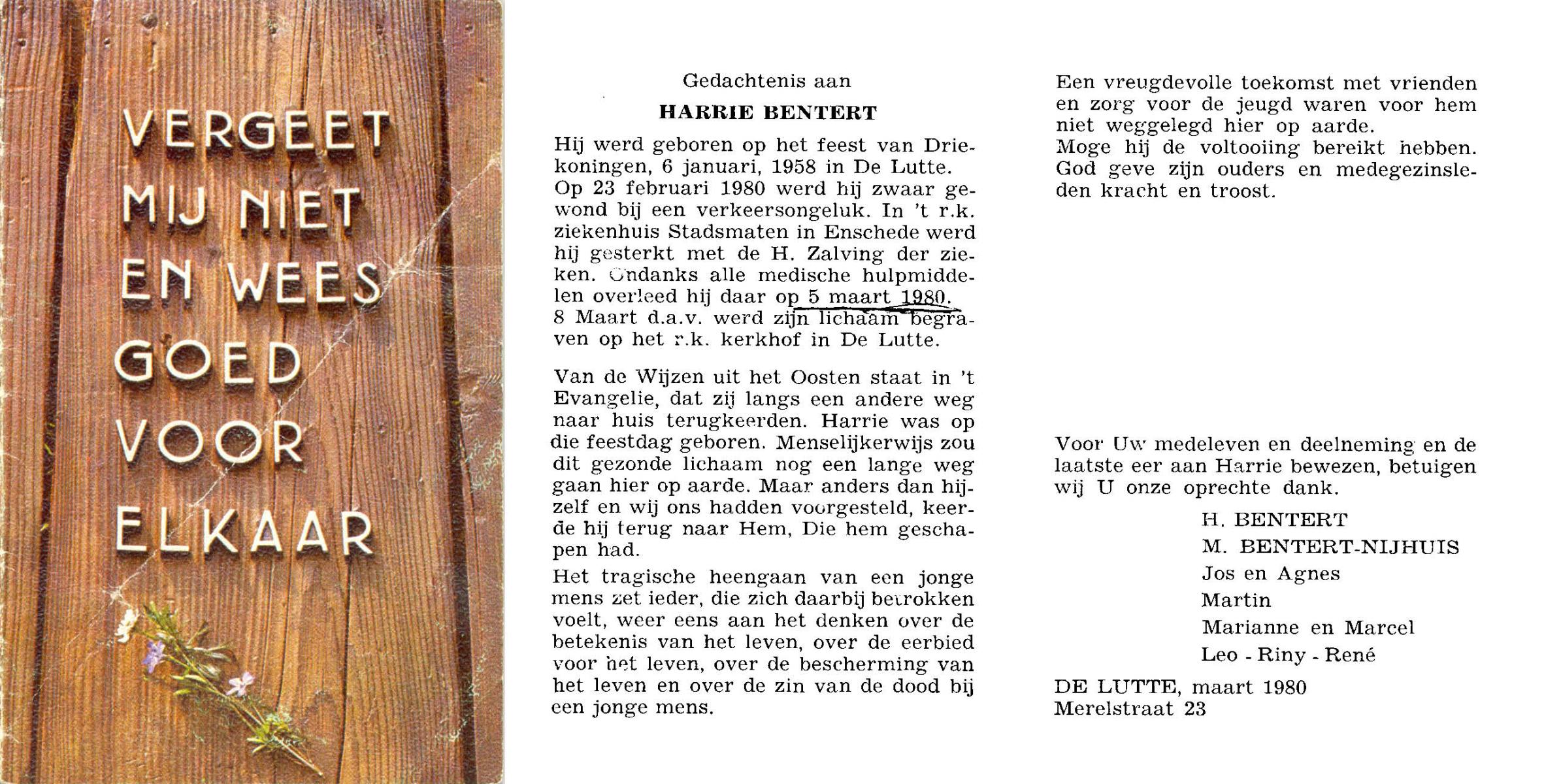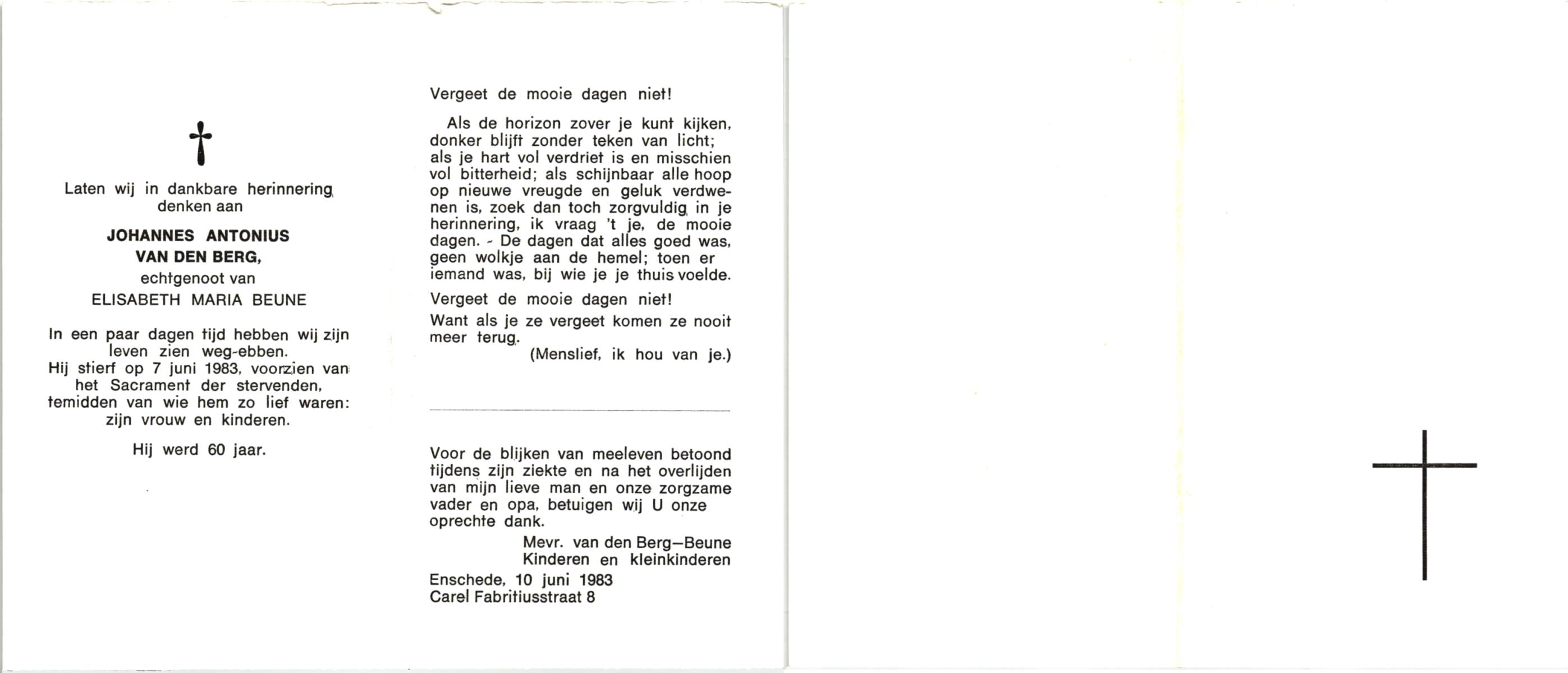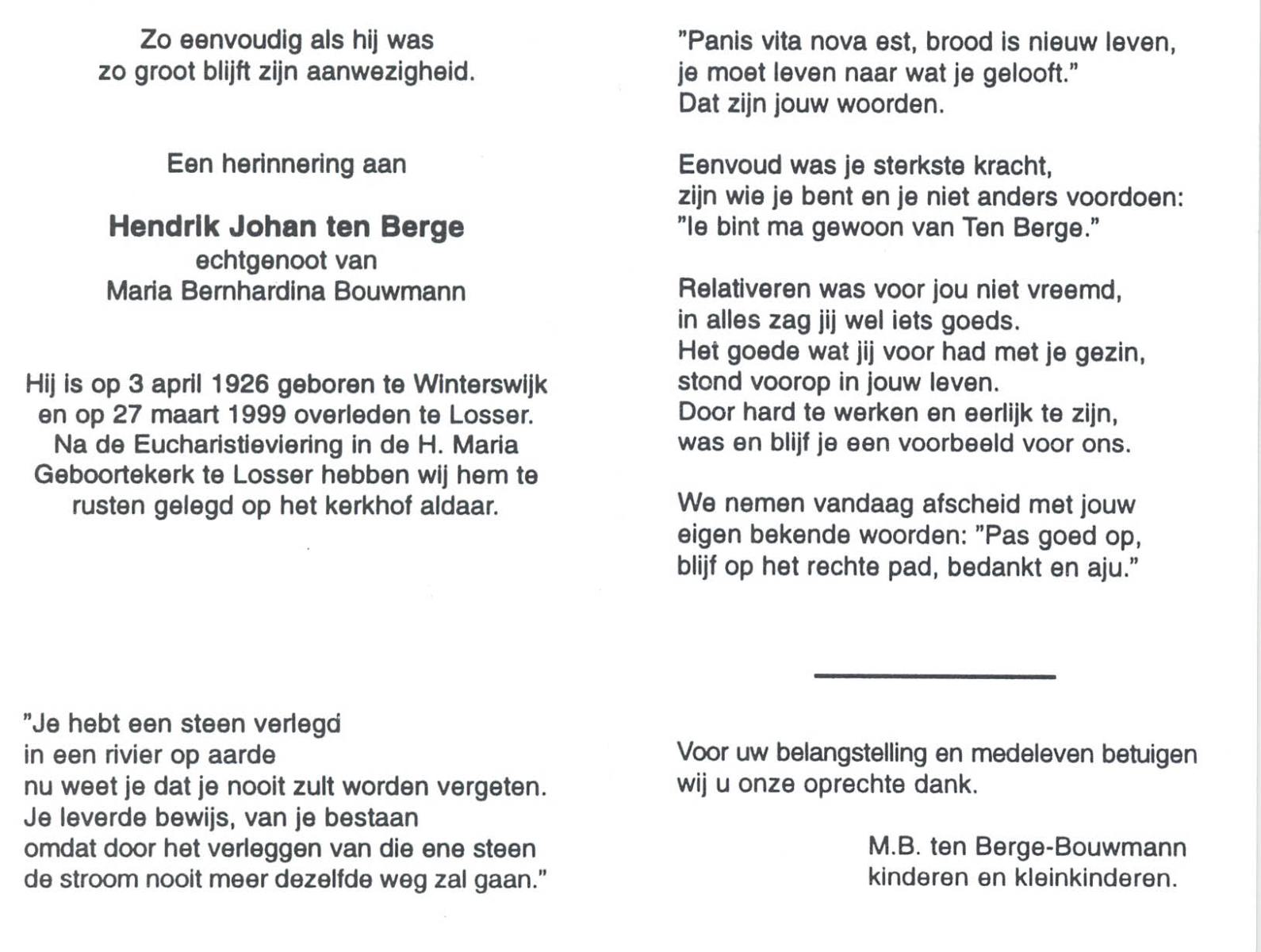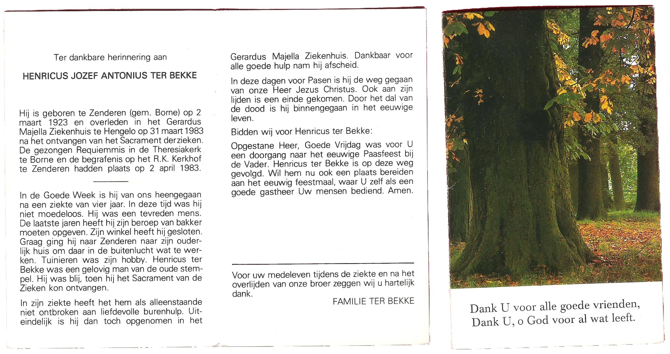 BEKKE, ter, Henricus Jozef Antonius, geboren op 2-3-1923 te Zenderen, overleden op 31-3-1983 te Hengelo (Ov.) op 60-jarige leeftijd, begraven op 2-4-1983 te Zenderen.