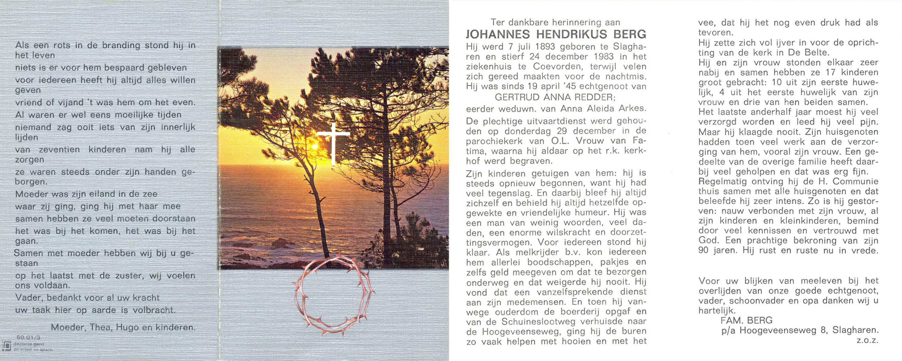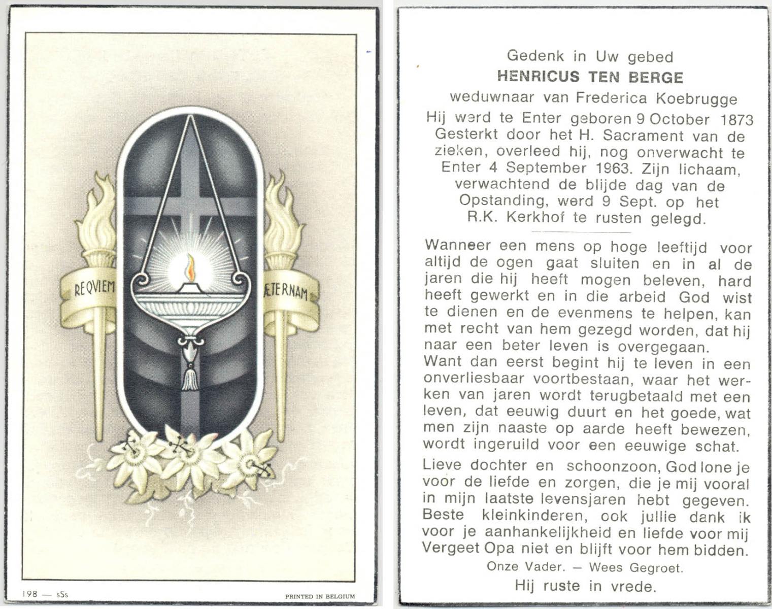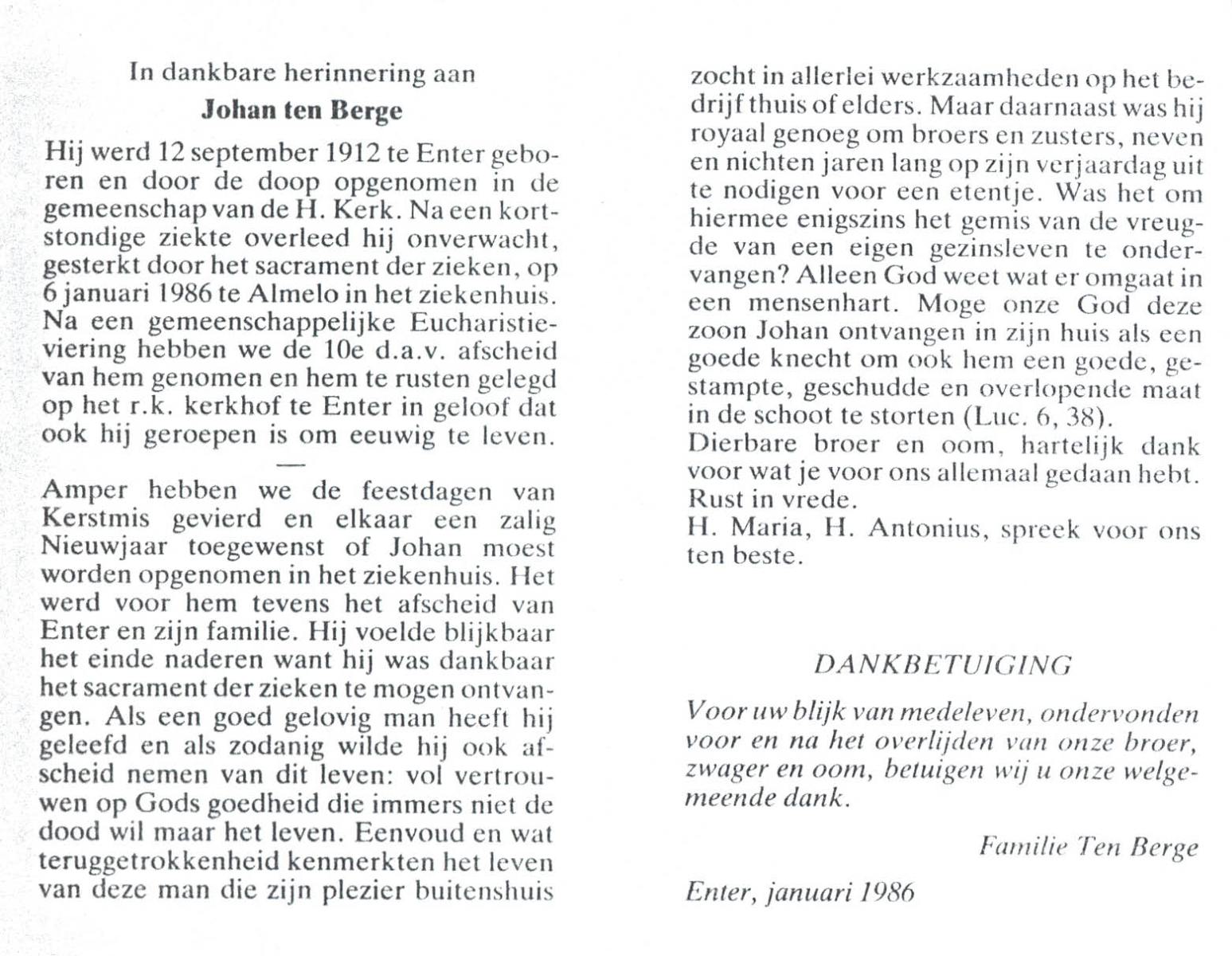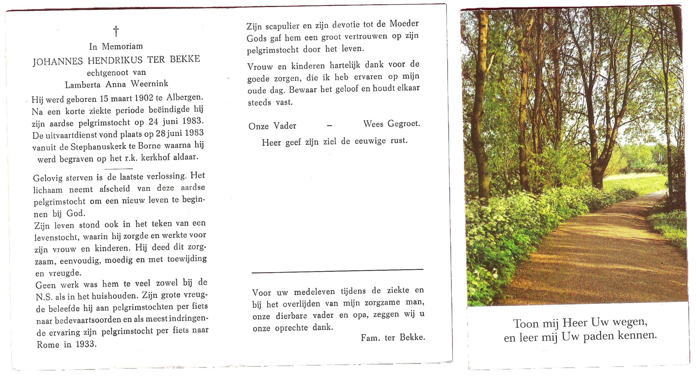 BEKKE, ter, Johannes Hendrikus, geboren op 15-3-1902 te Albergen, overleden op 24-6-1983 op 81-jarige leeftijd, begraven op 28-6-1983 te Borne.
