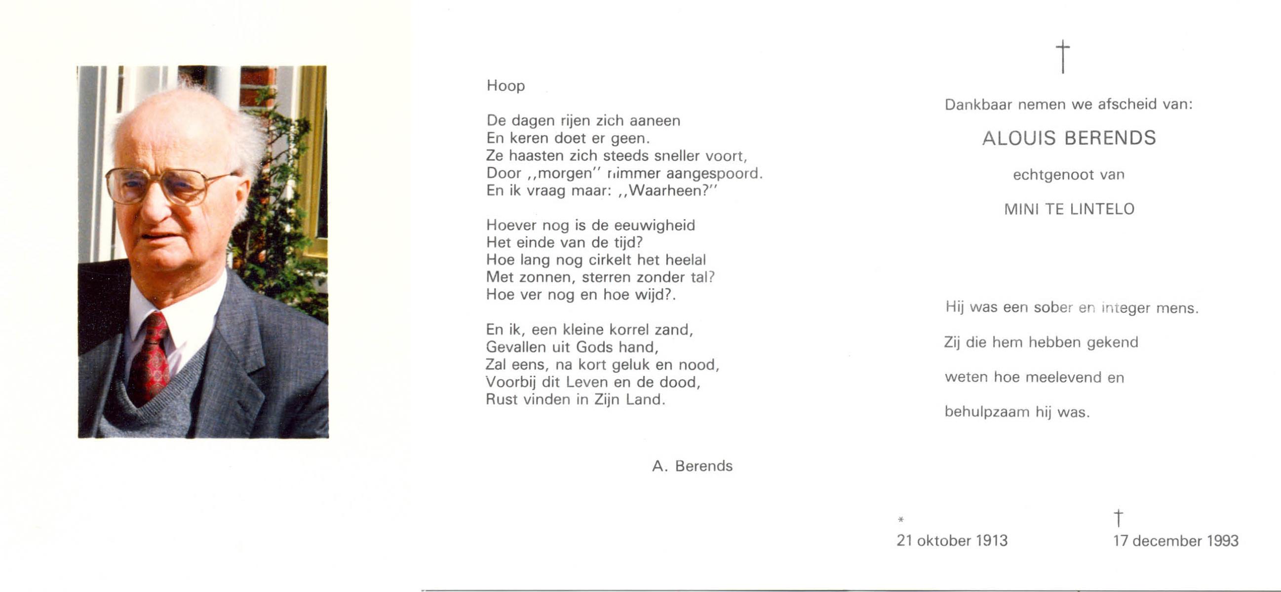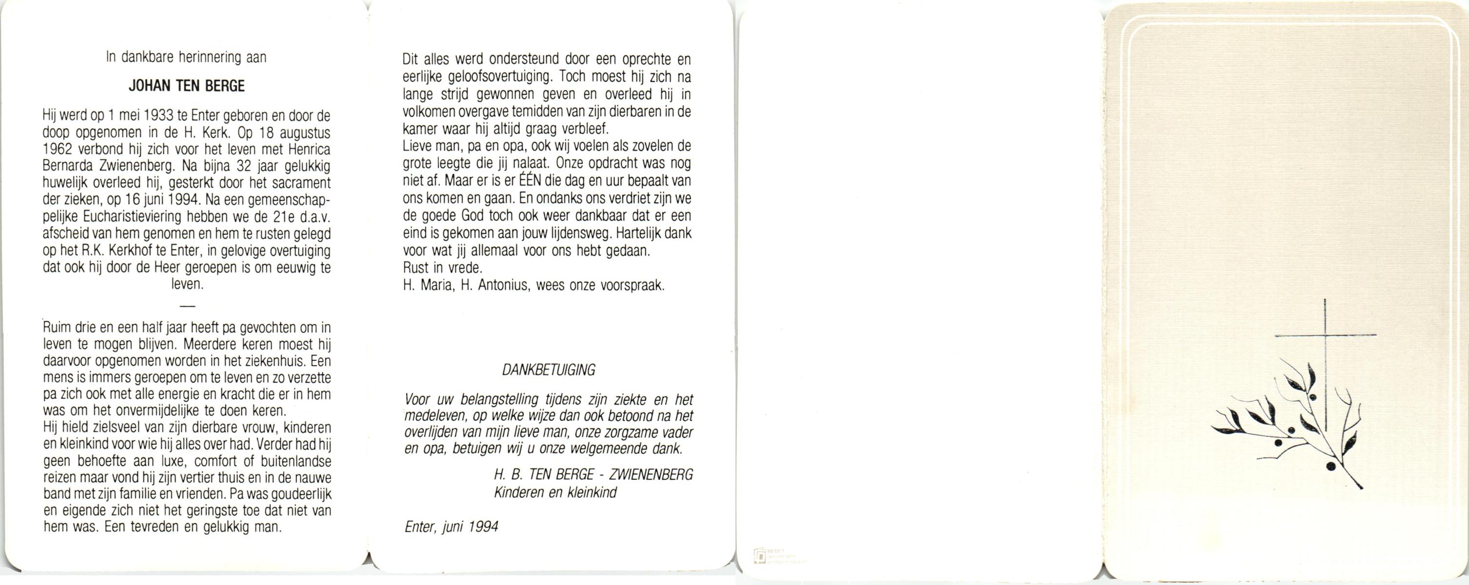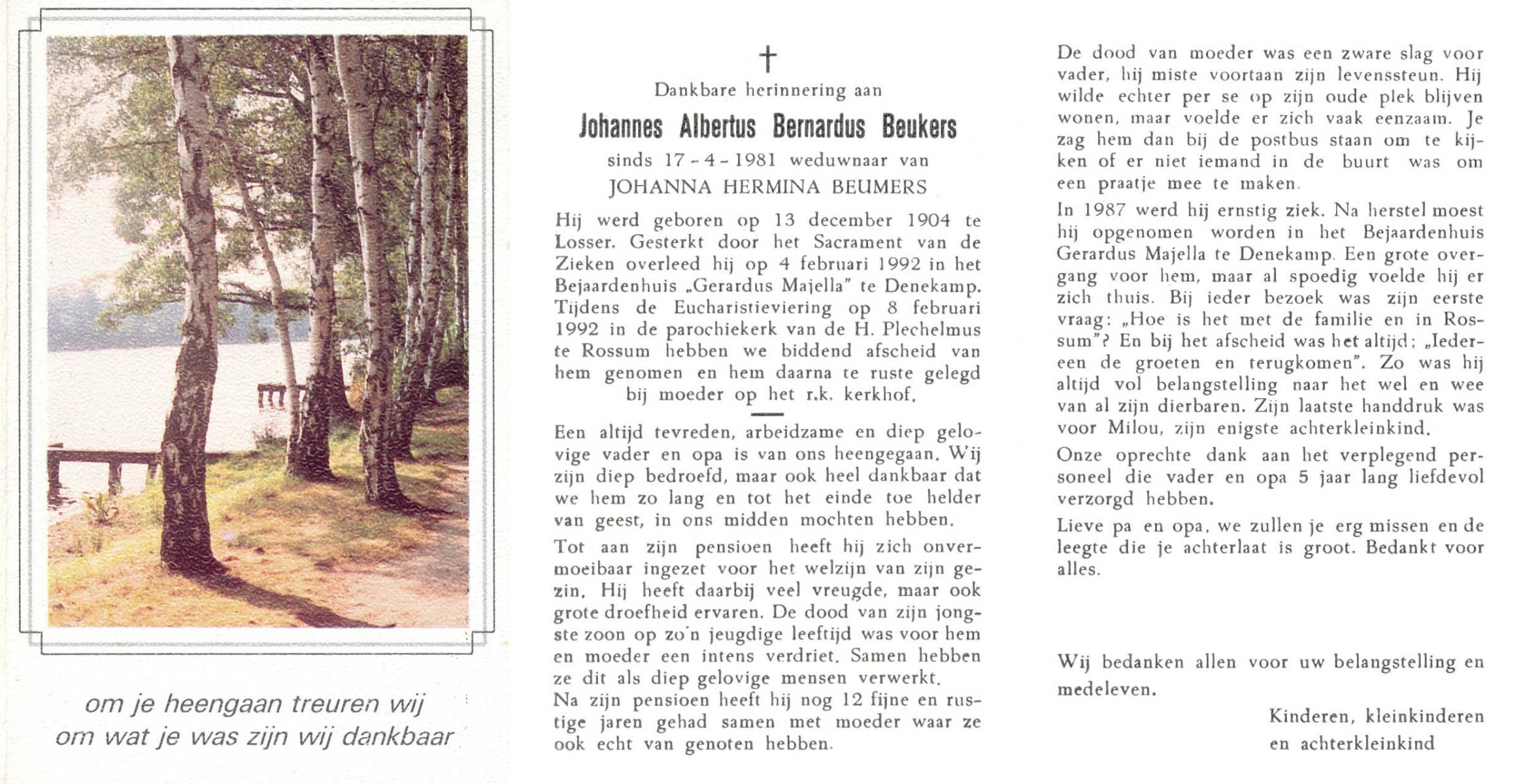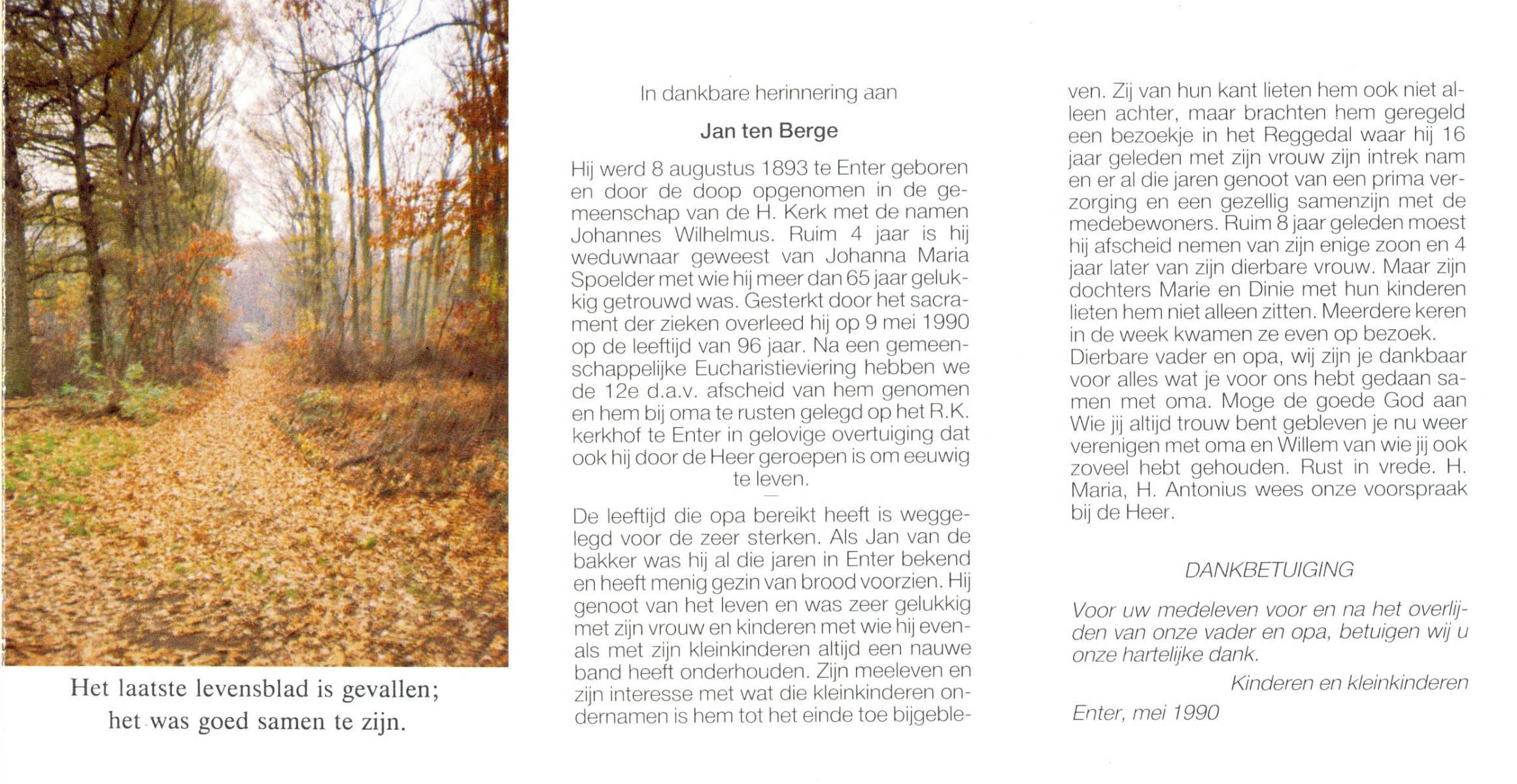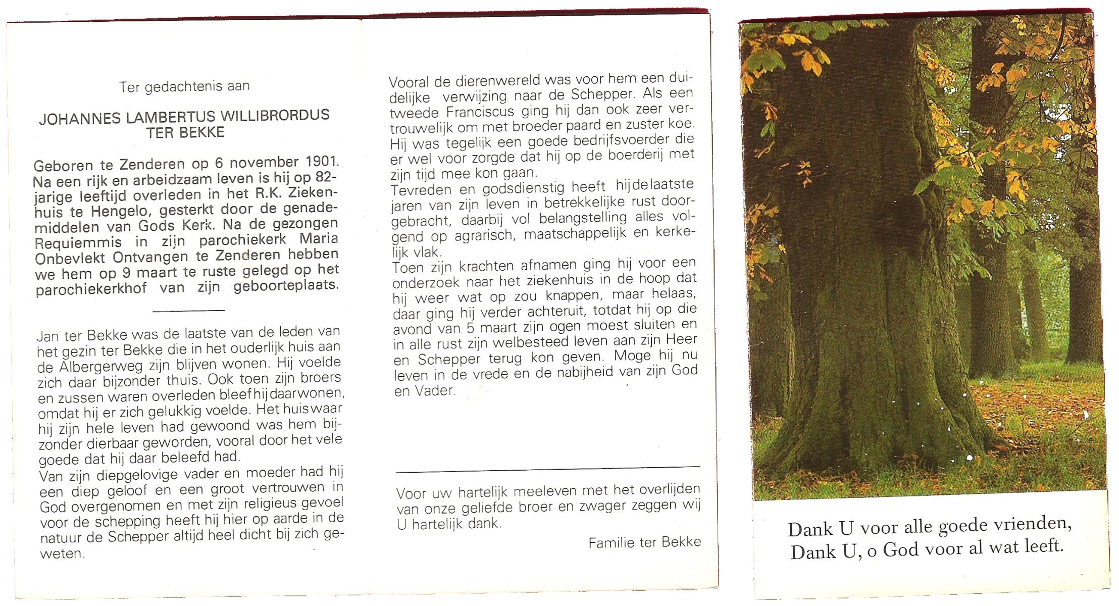 BEKKE, ter, Johannes Lambertus Willibrordus, geboren op 6-11-1901 te Zenderen, overleden op 5-3-1994 te Hengelo (Ov.) op 92-jarige leeftijd, begraven op 9-3-1994 te Zenderen.