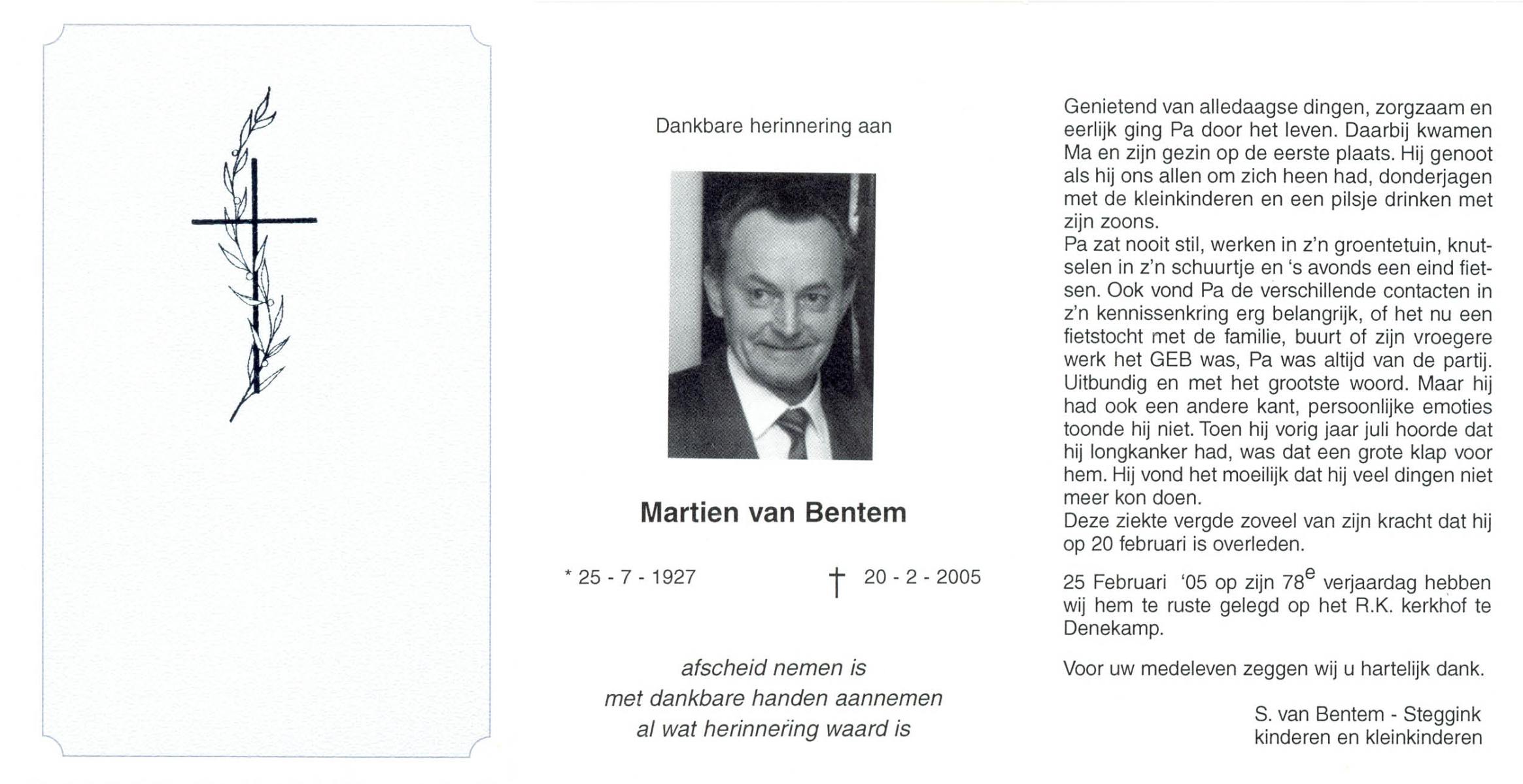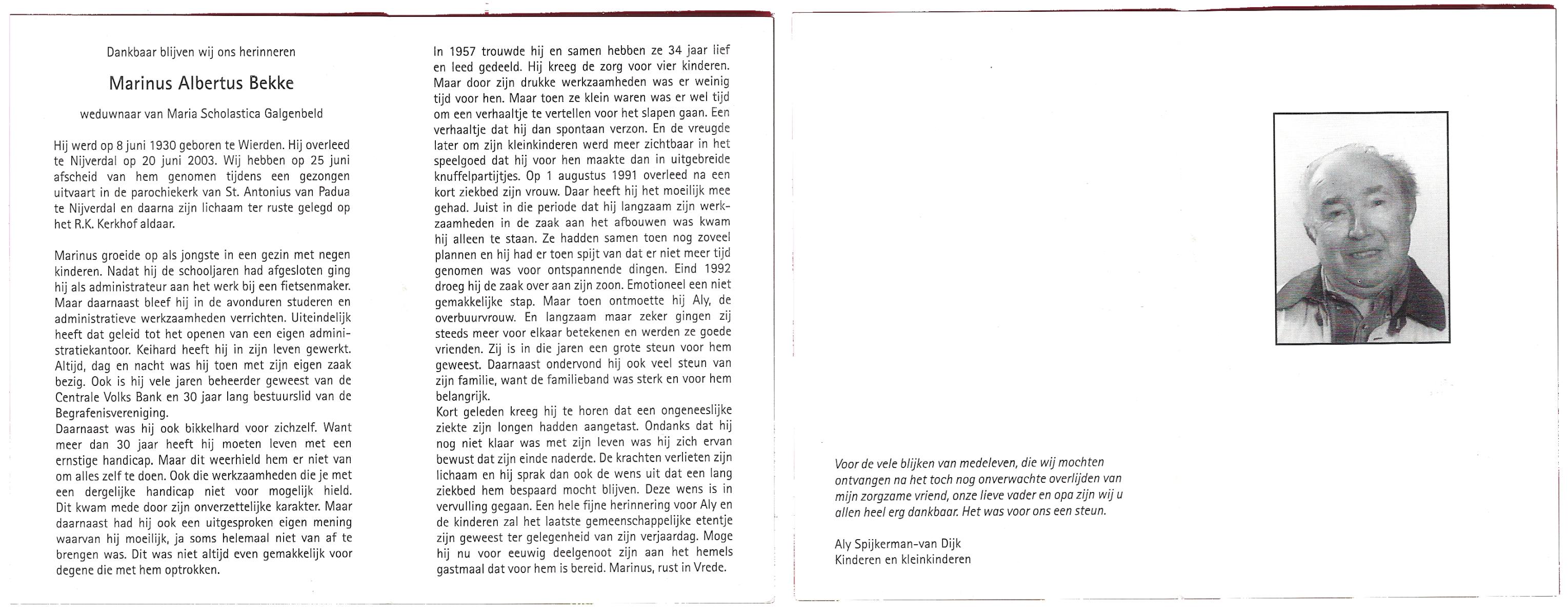 BEKKE, ter, Marinus Albertus, geboren op 8-6-1930 te Wierden, overleden op 20-6-2003 te Hellendoorn, Nijverdal op 73-jarige leeftijd, begraven te Hellendoorn, Nijverdal.