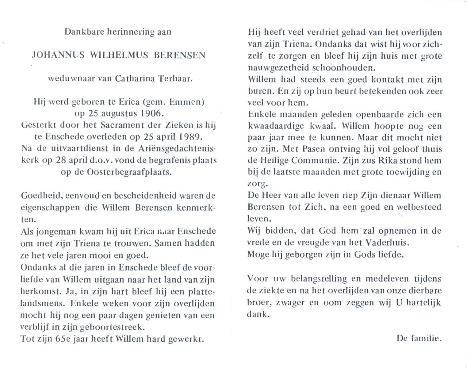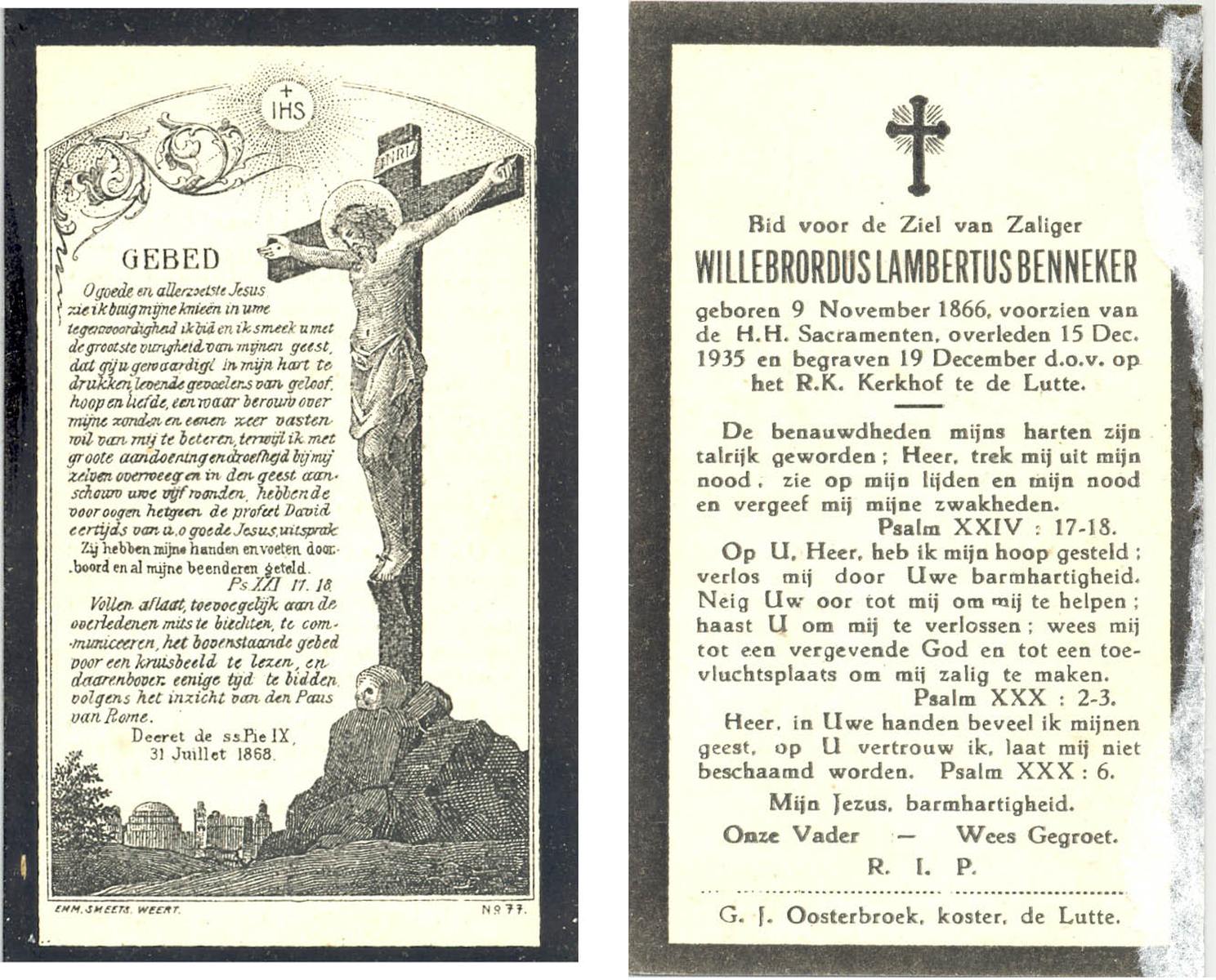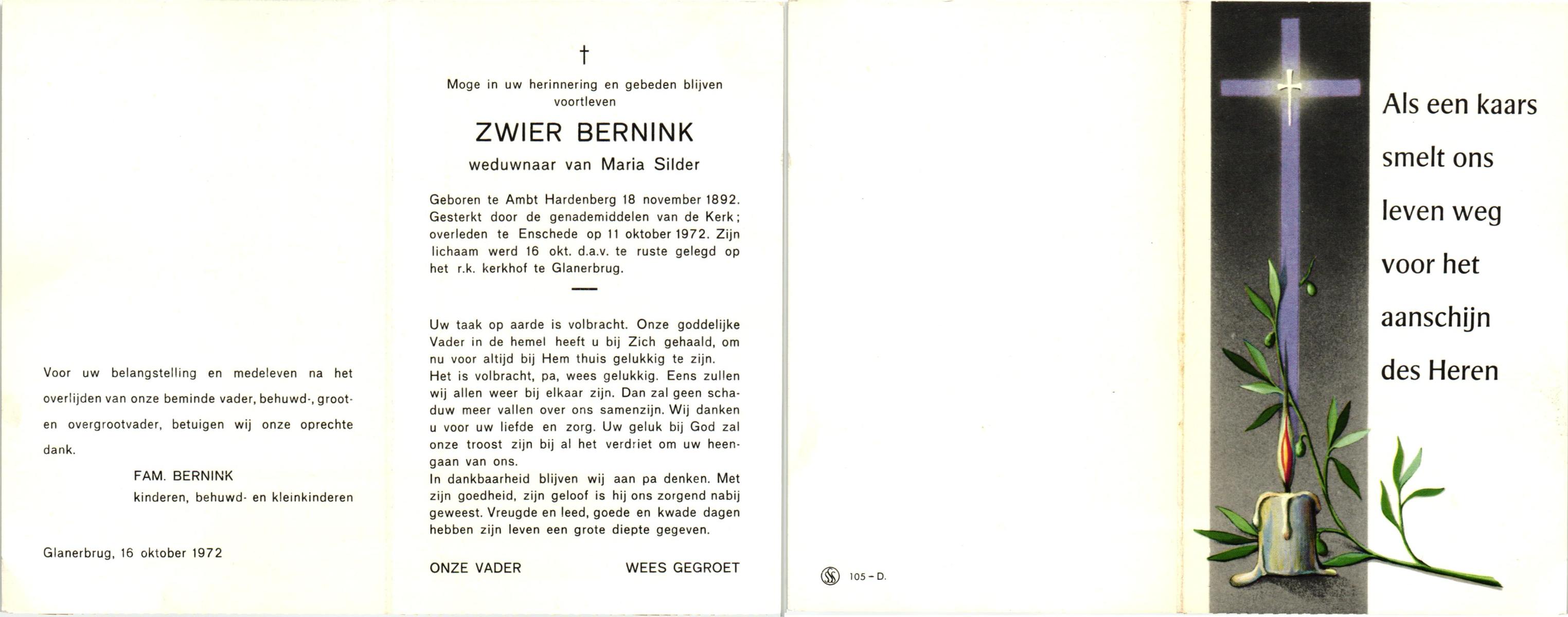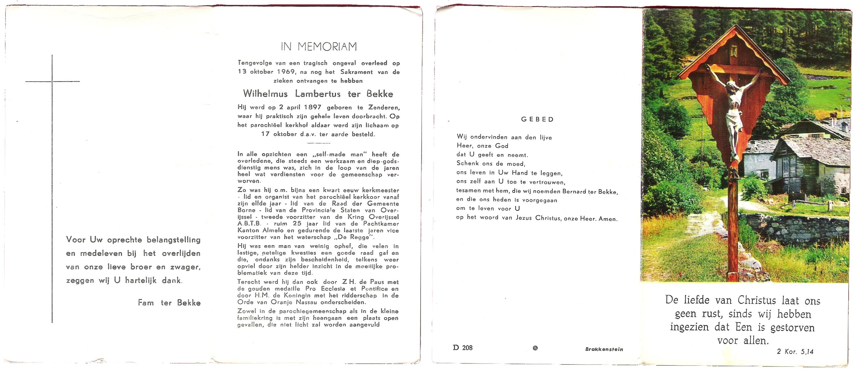 BEKKE, ter, Wilhelmus Lambertus, geboren op 02-04-1897 te Zenderen, overleden op 13-10-1969 op 72-jarige leeftijd, begraven op 17-10-1969 te Zenderen.