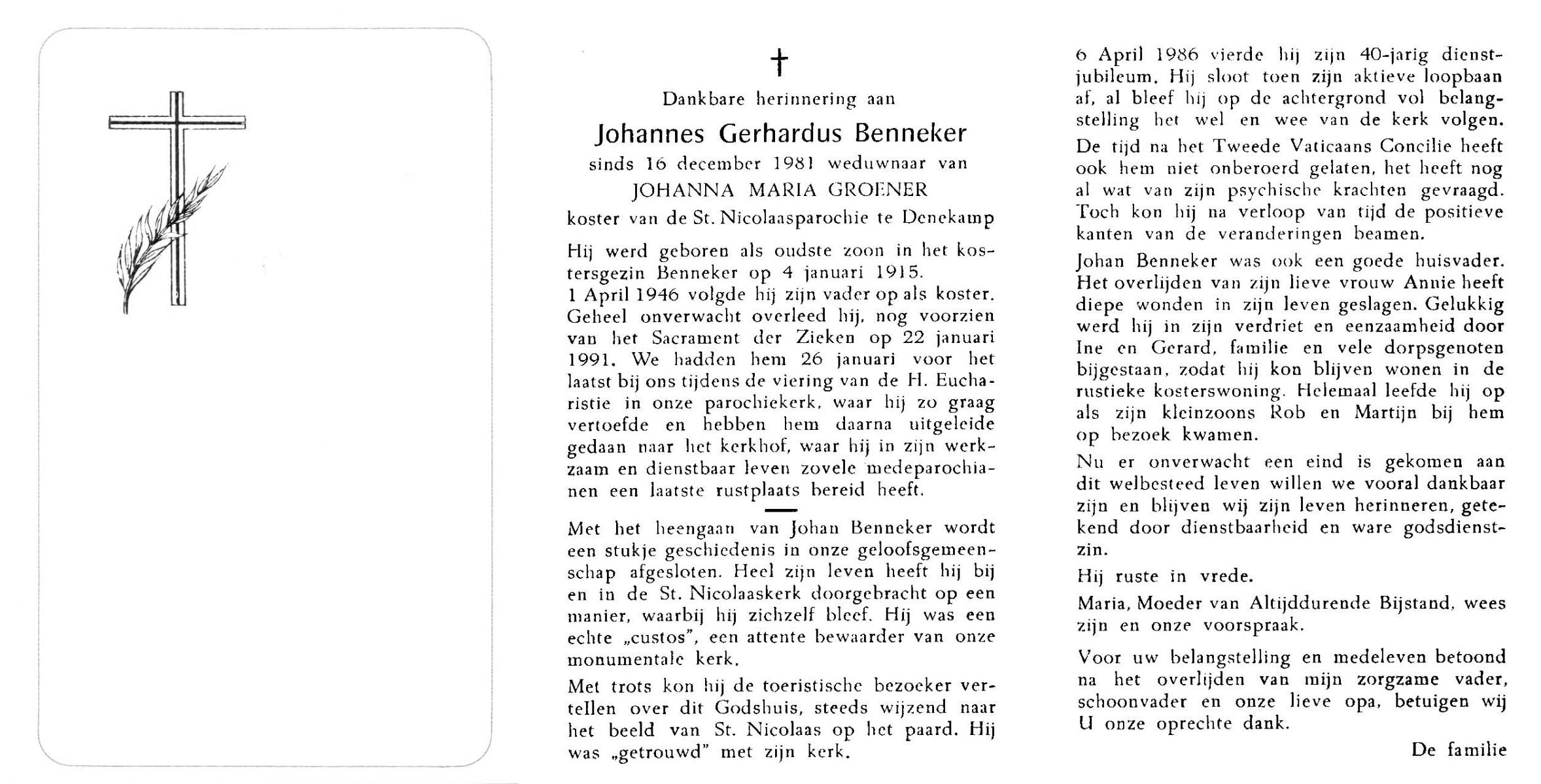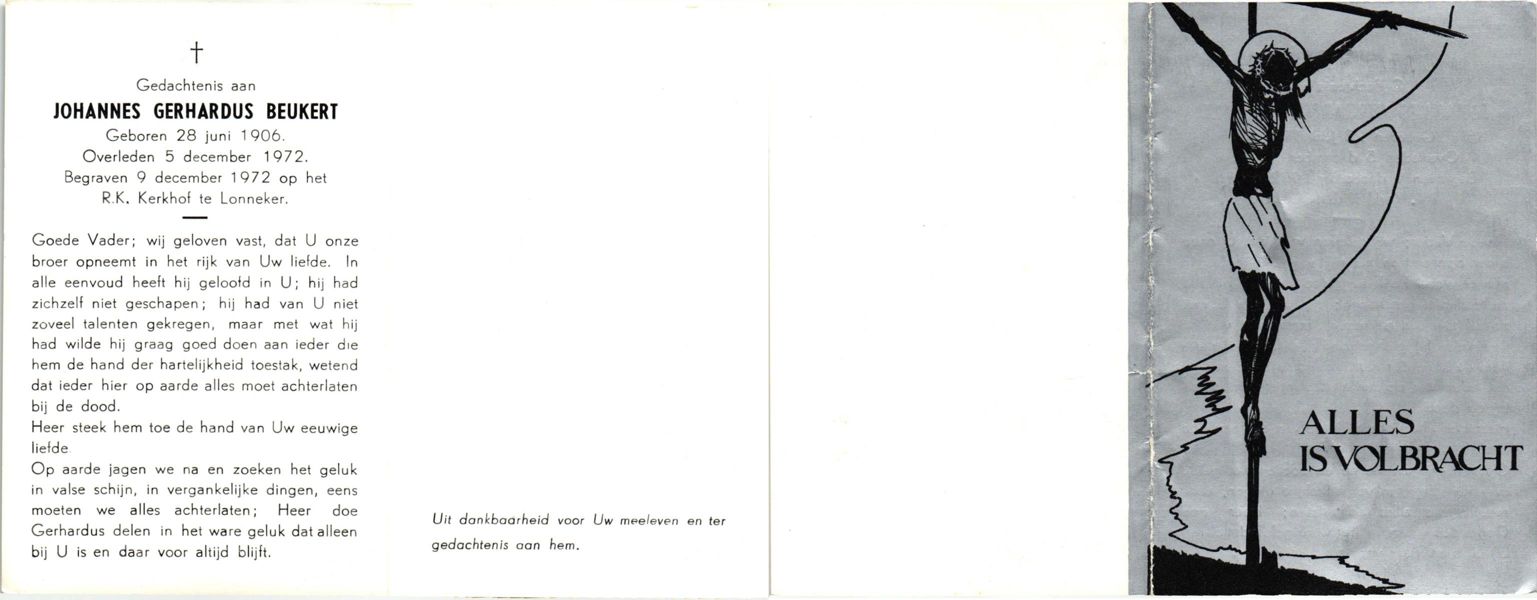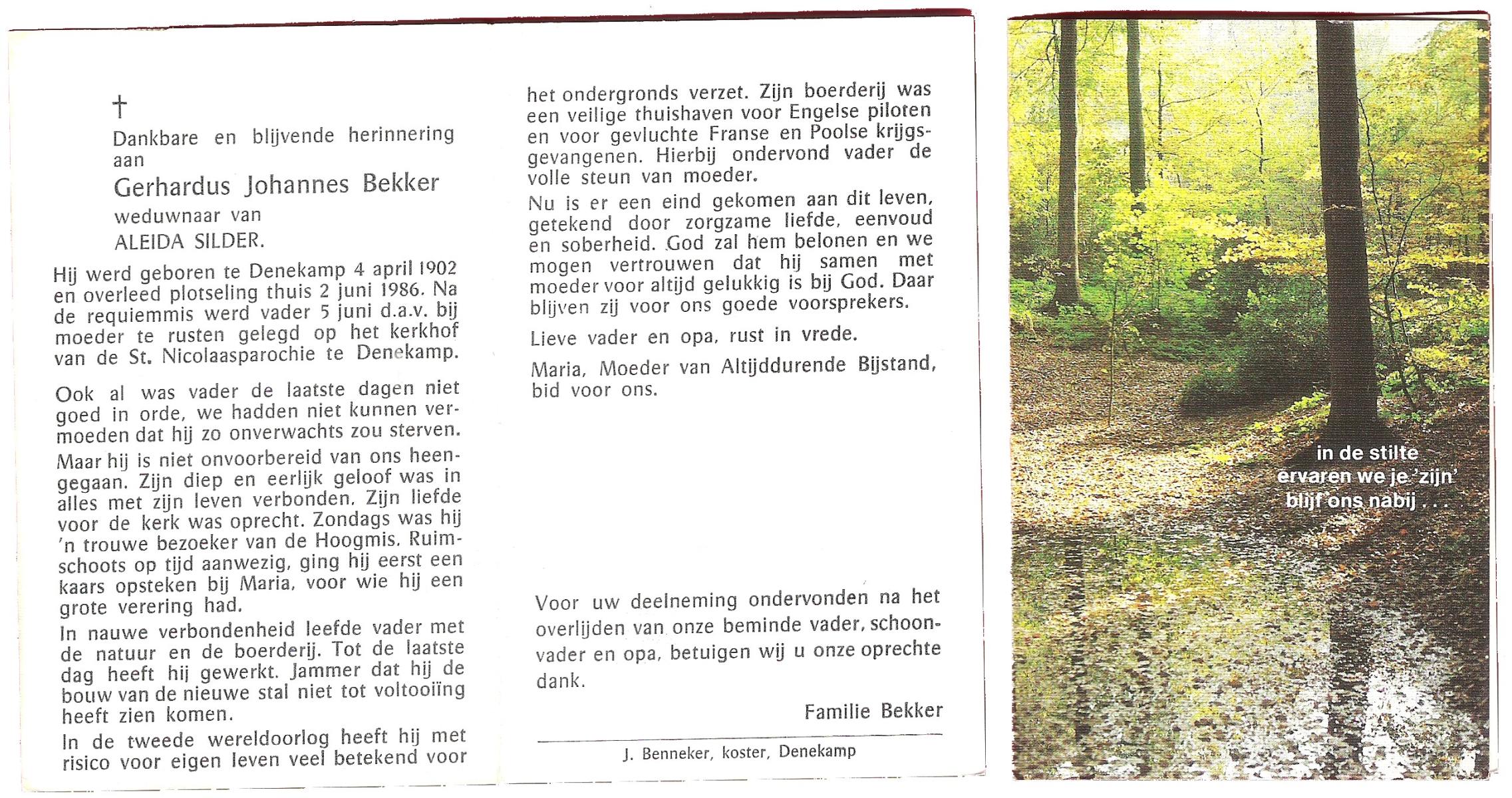BEKKER, Gerhardus Johannes, geboren op 4-4-1902 te Denekamp, overleden op 2-6-1986 te Denekamp op 84-jarige leeftijd, begraven op 5-6-1986 te Denekamp.