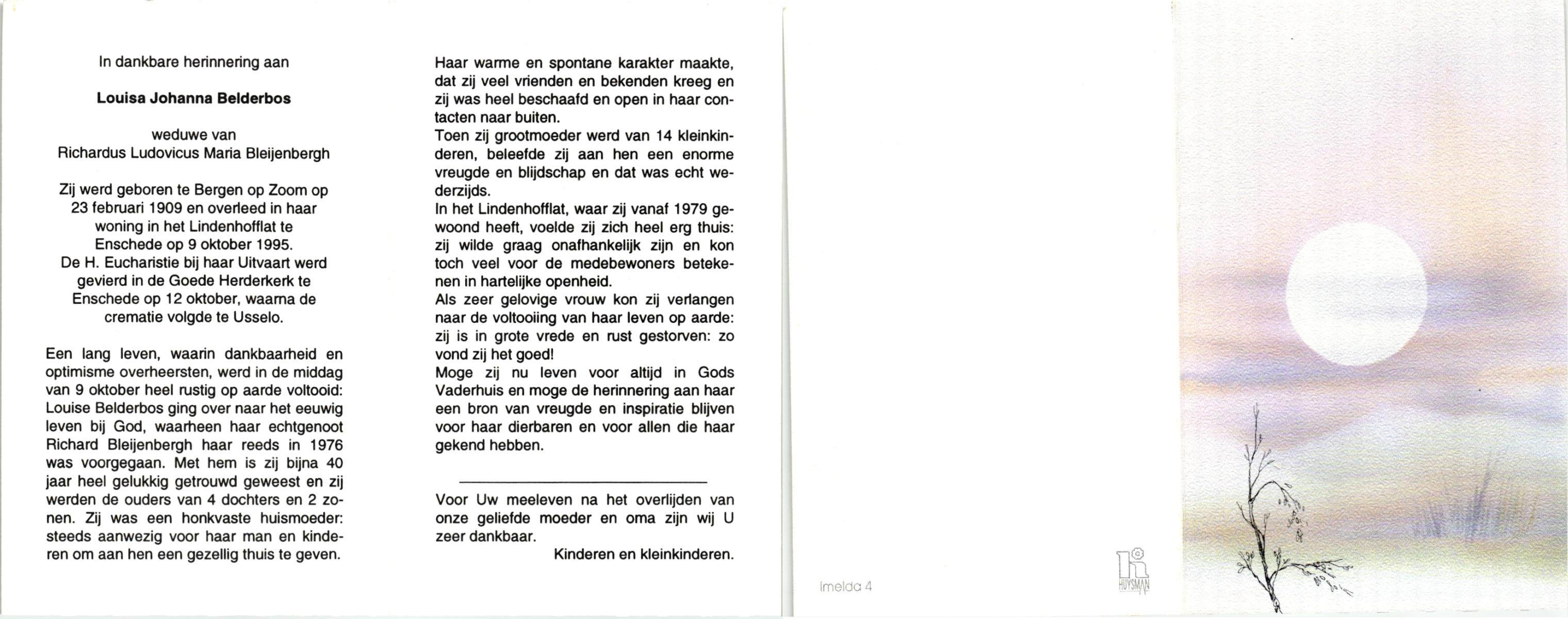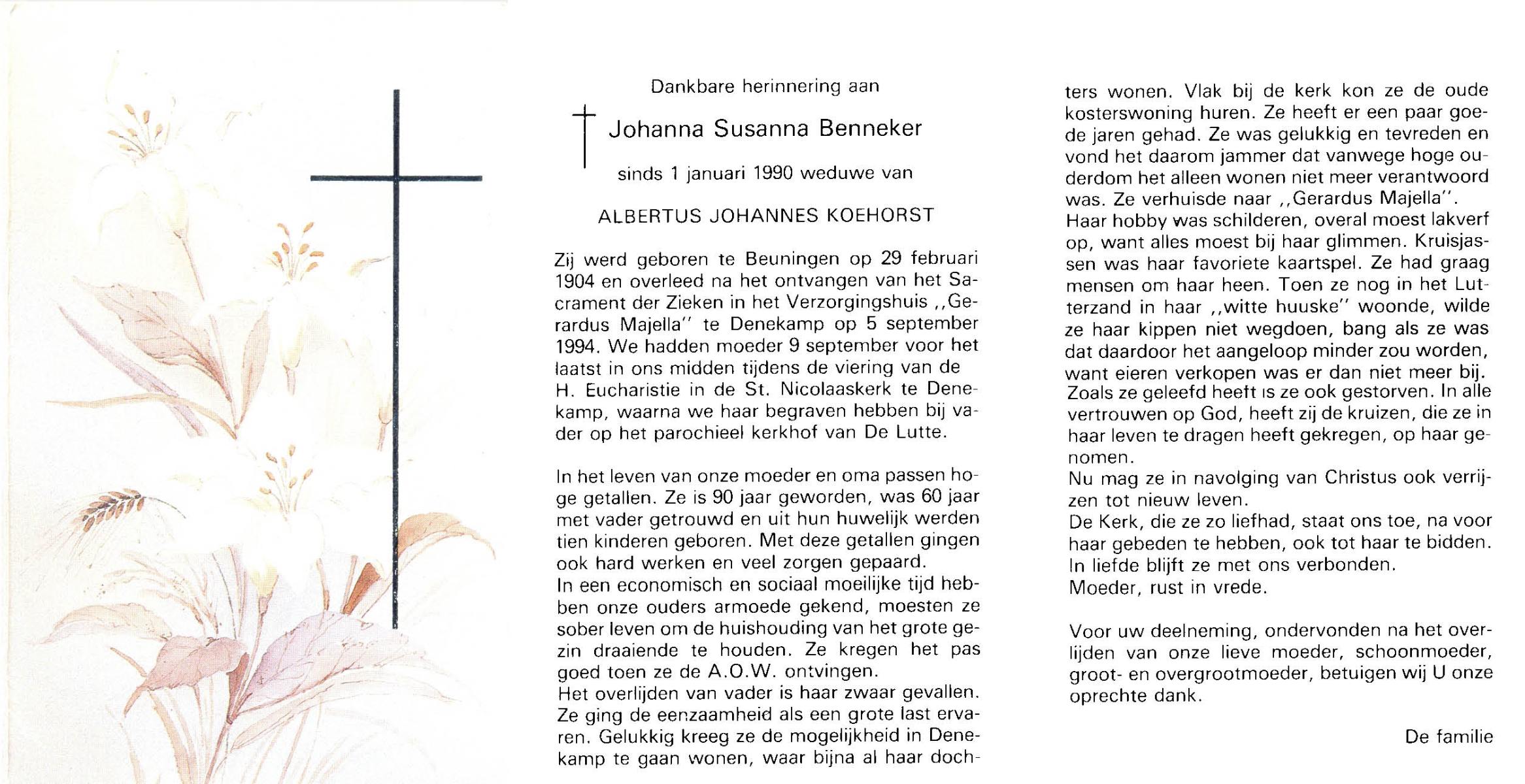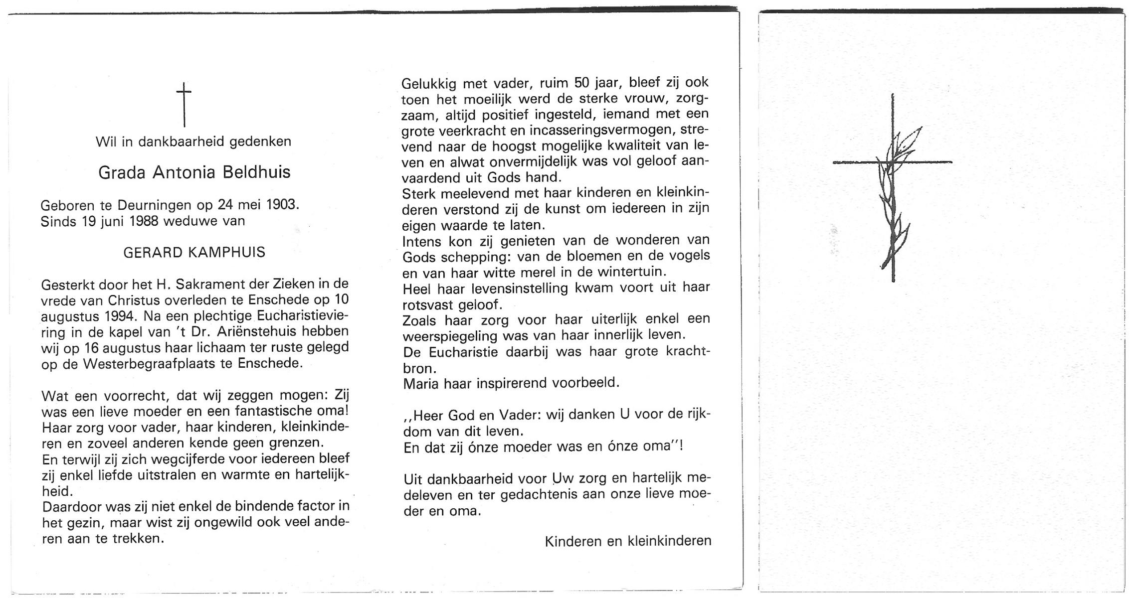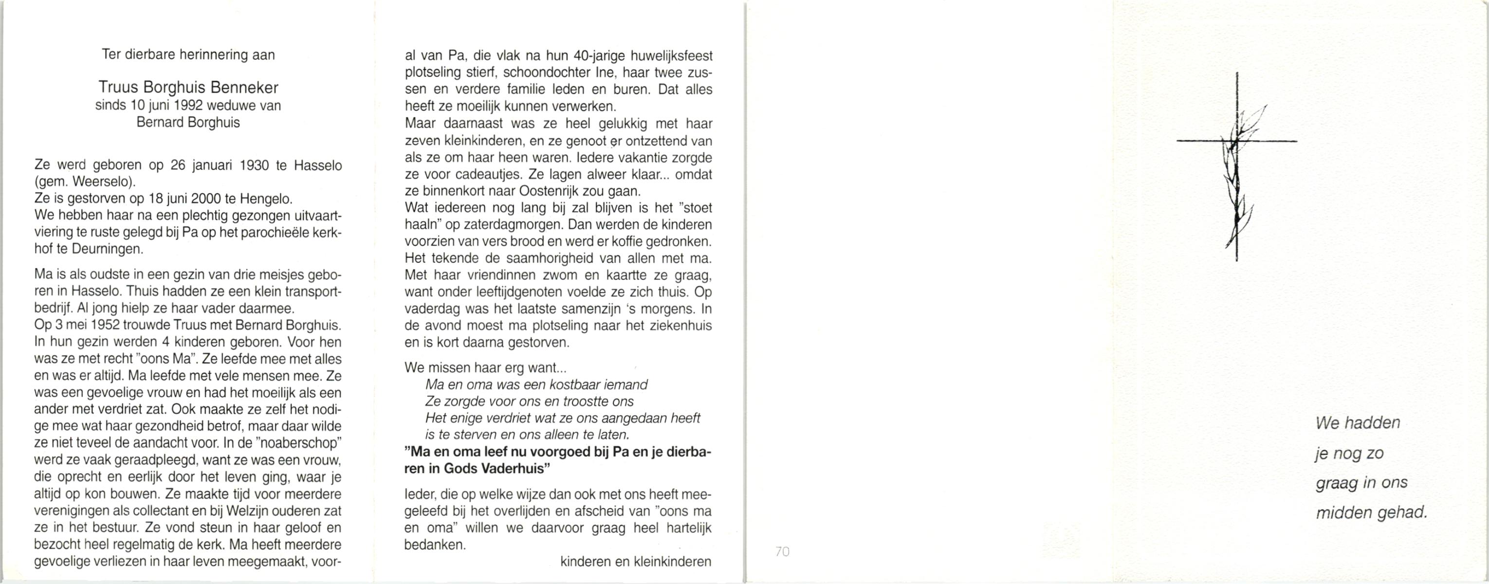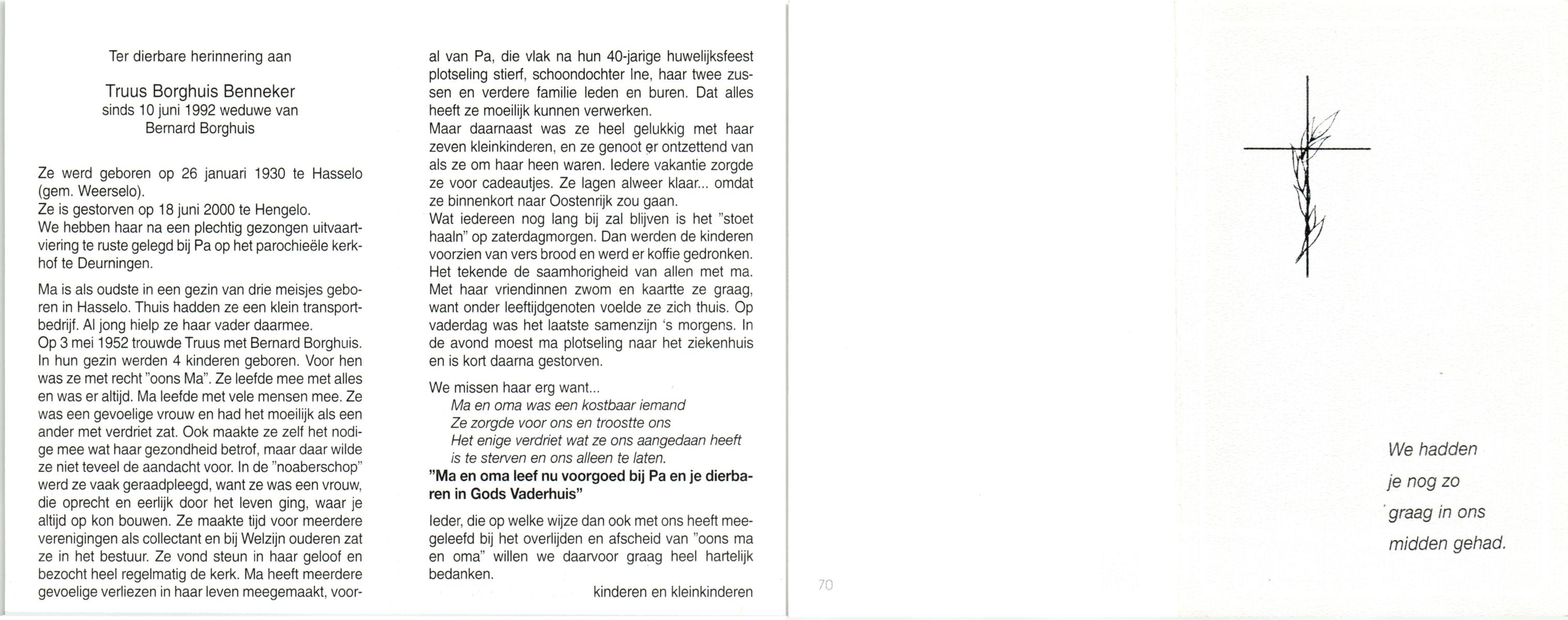 BEKKERS, Gerharda Josephina, geboren op 27-9-1917 te Borne, overleden op 16-4-1994 te Borne op 76-jarige leeftijd, begraven op 20-4-1994 te Borne.