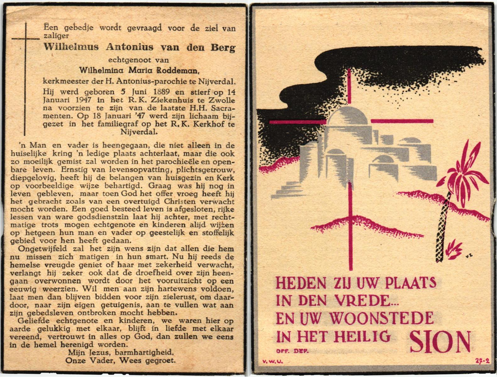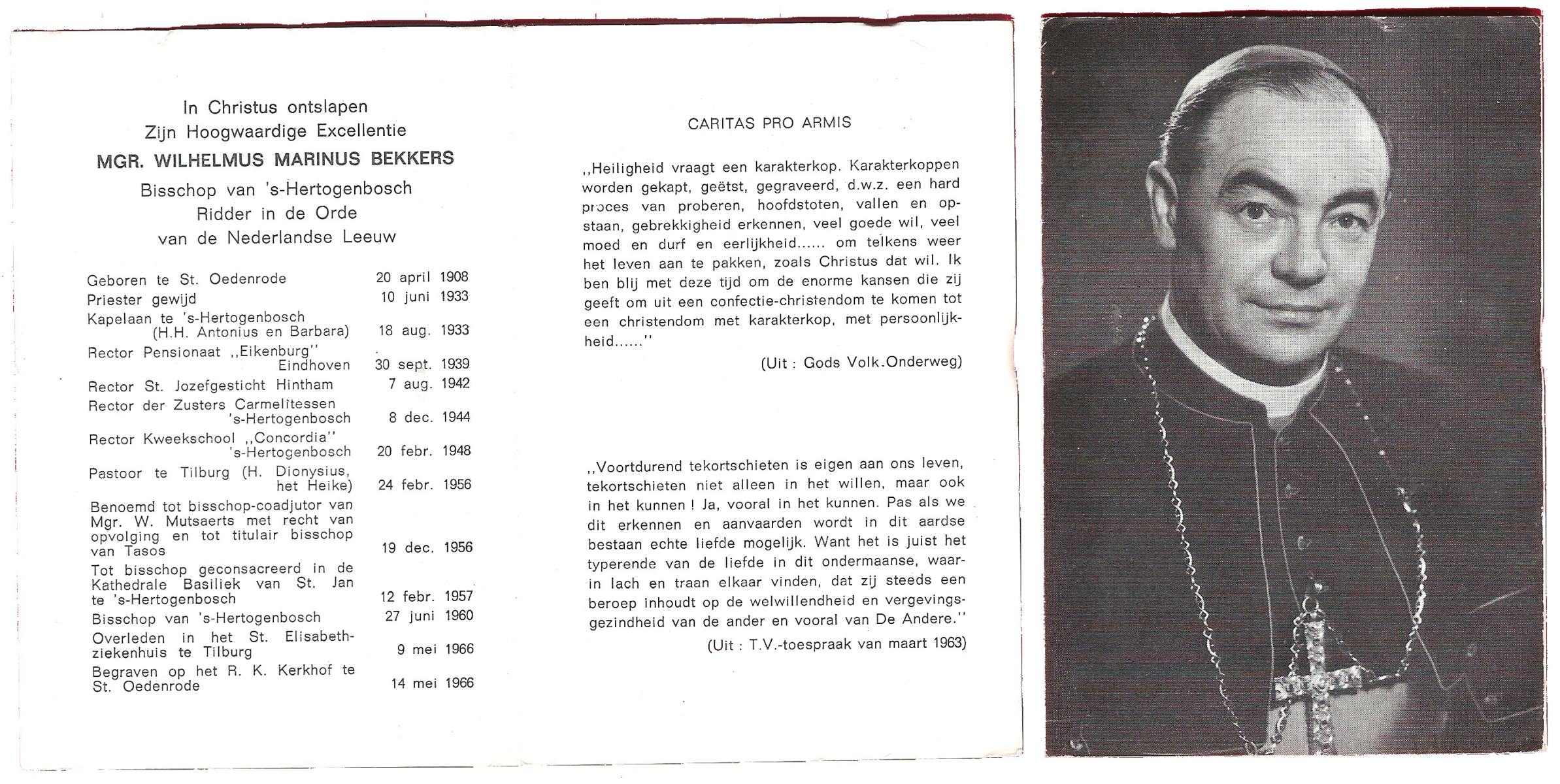 BEKKERS, Wilhelmus Marinus, geboren op 20-4-1908 te St. Oedenrode, overleden op 9-5-1966 te Tilburg op 58-jarige leeftijd, begraven op 14-5-1966 te St. Oedenrode.