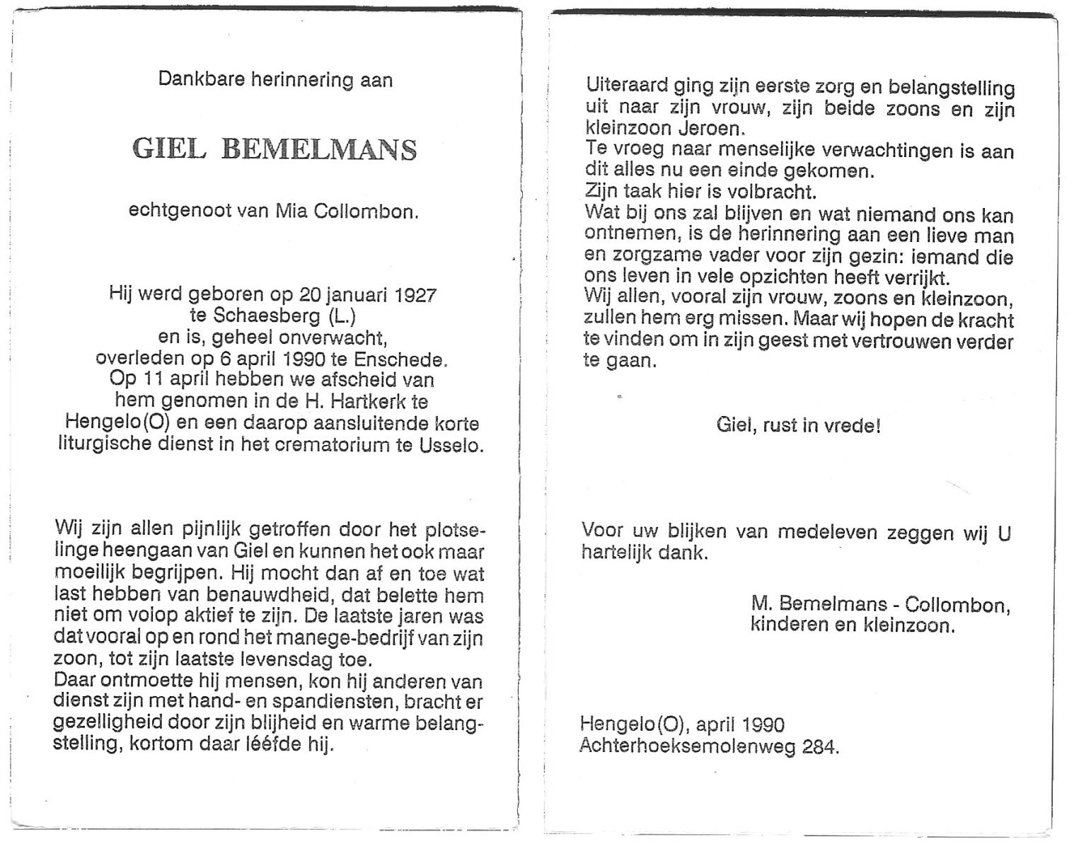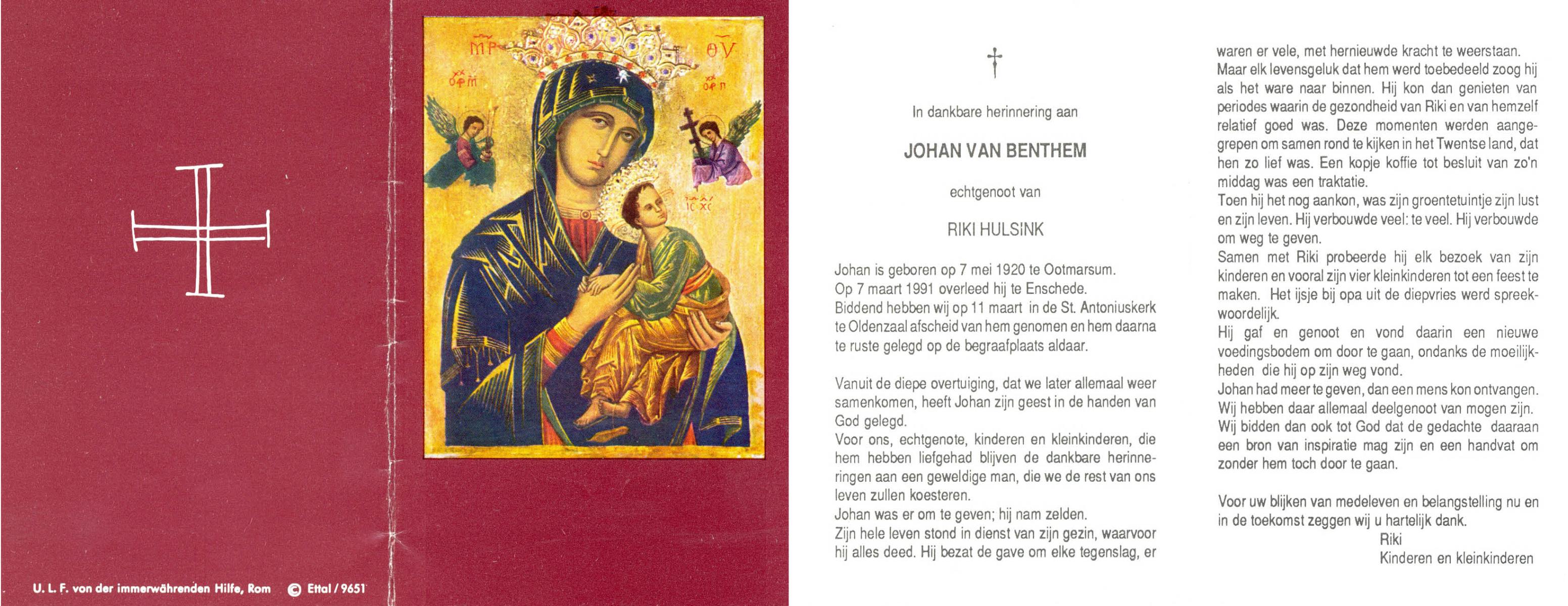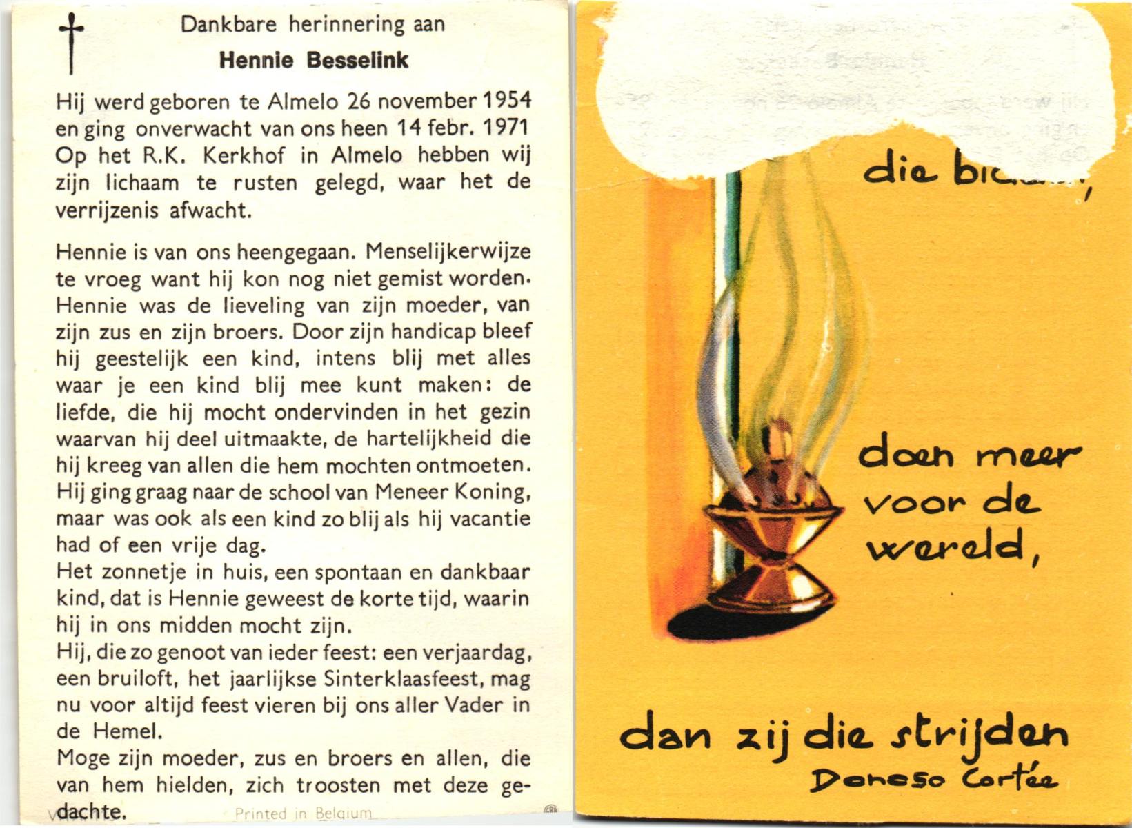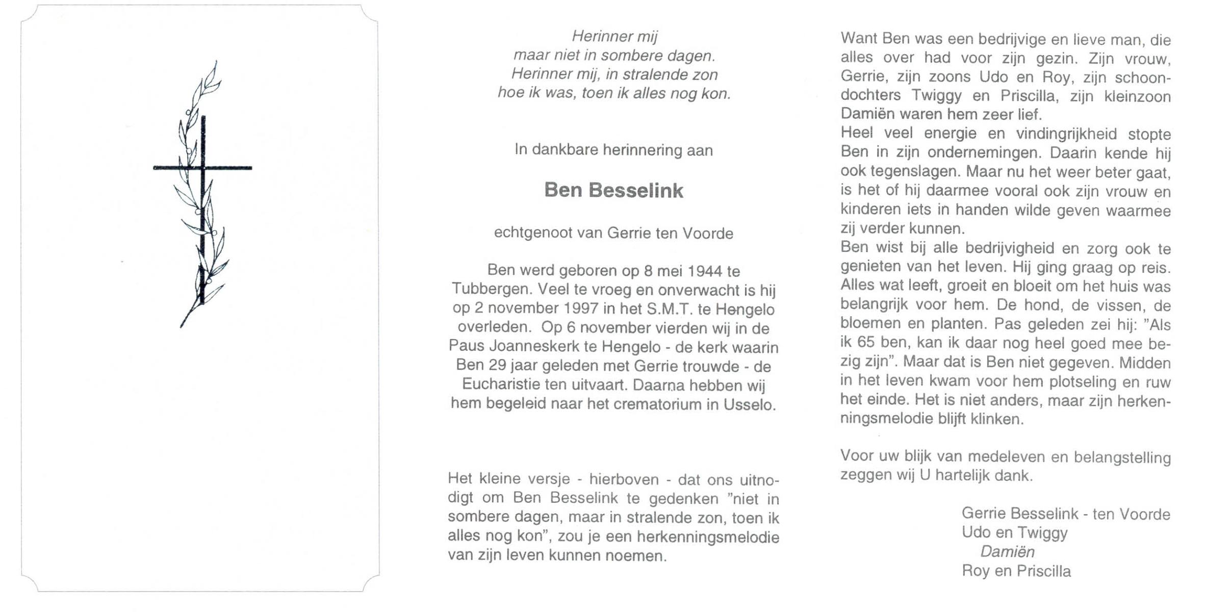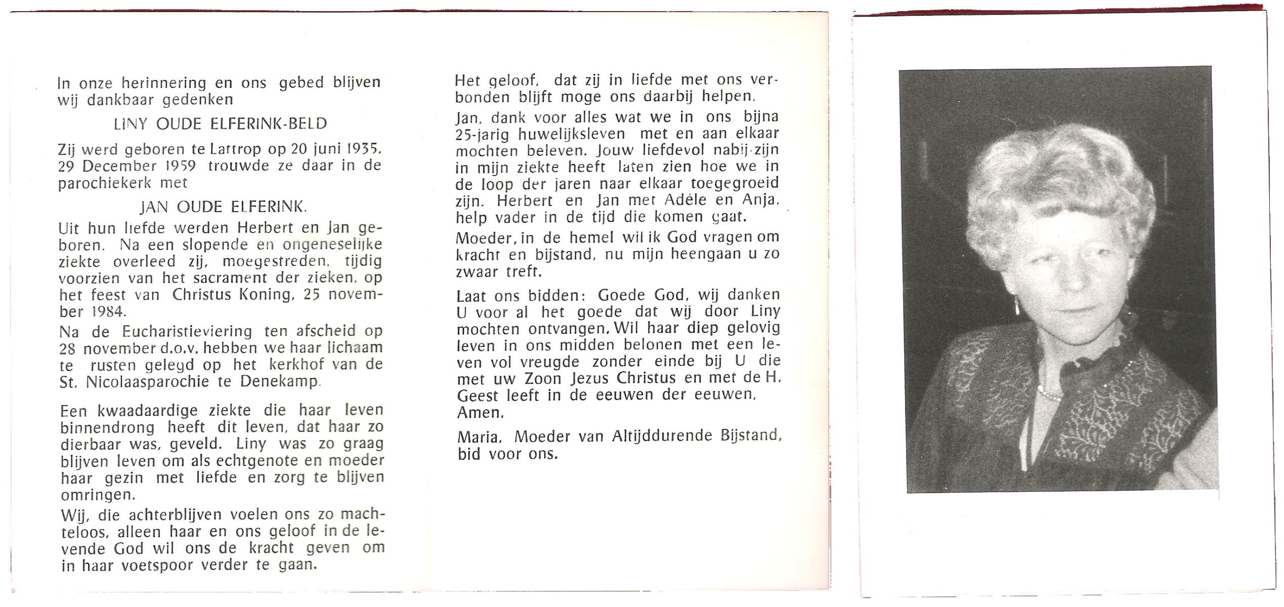 BELD, Ben, geboren op 31-5-1934 te Borne, overleden op 8-6-1985 te Hengelo (Ov.) op 51-jarige leeftijd, begraven op 13-6-1985 te Borne.