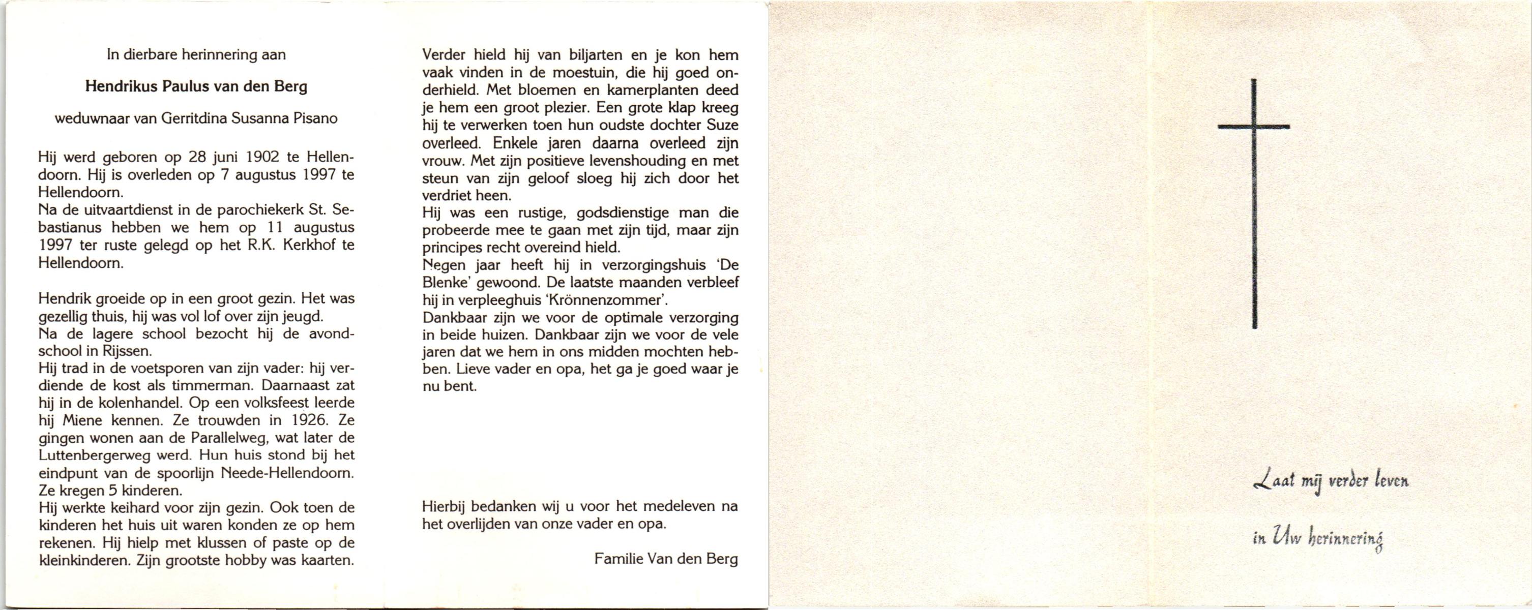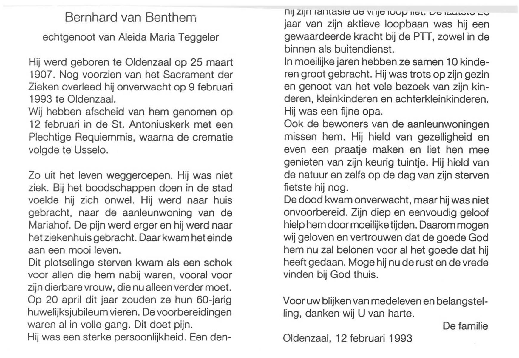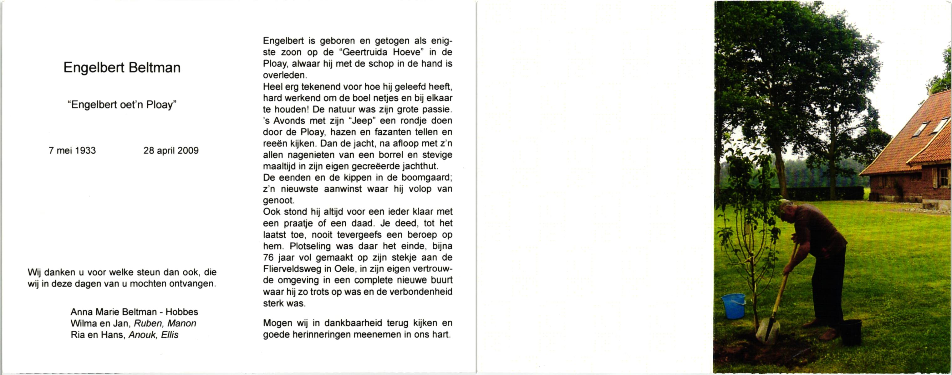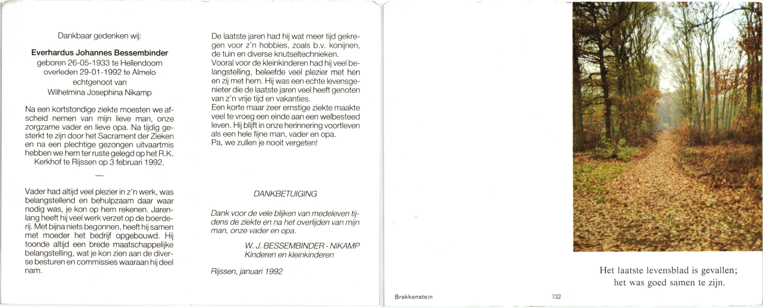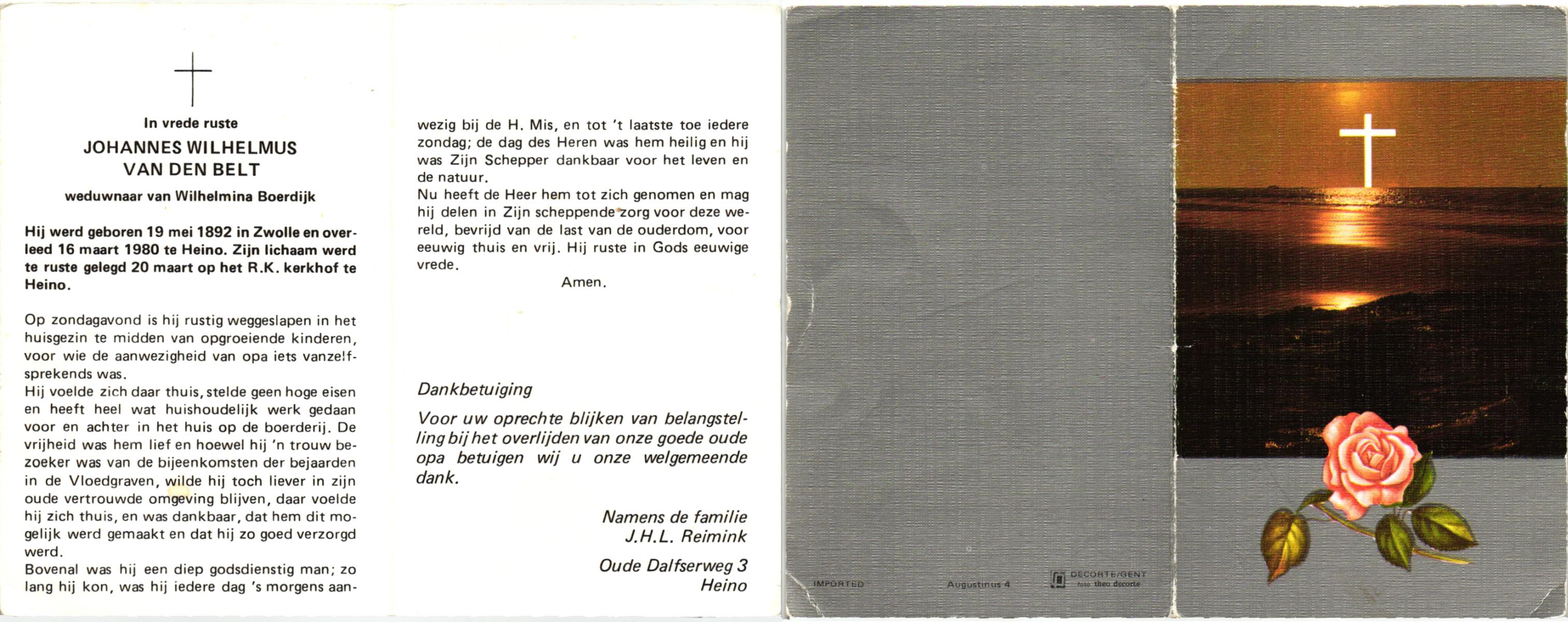 BELD, Everardus Gerardus, geboren op 12-8-1924 te Tubbergen, overleden op 30-7-1993 te Almelo, ziekenhuis op 68-jarige leeftijd, begraven op 3-8-1993 te Zenderen.