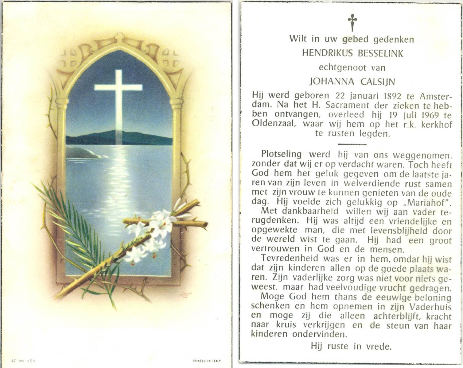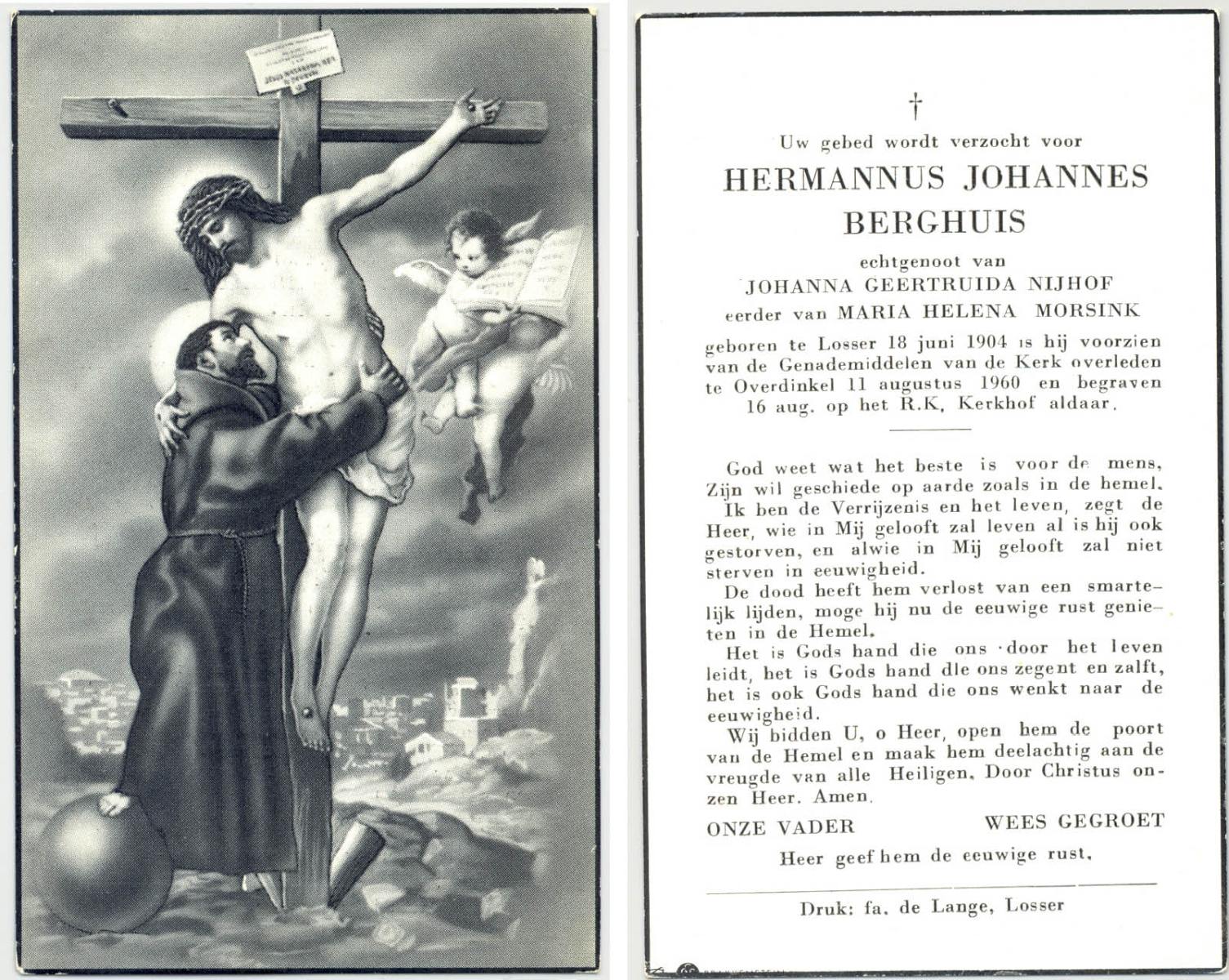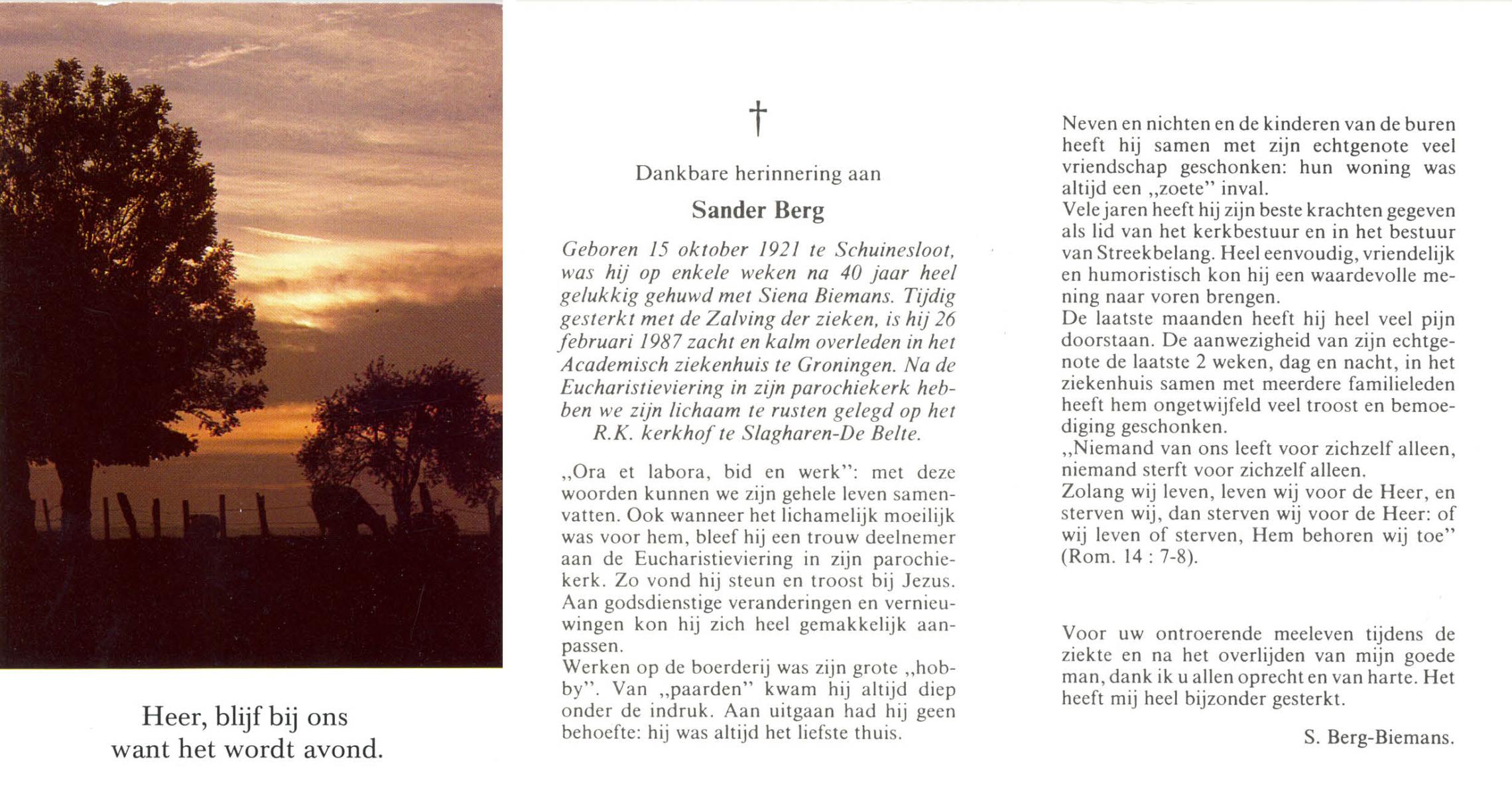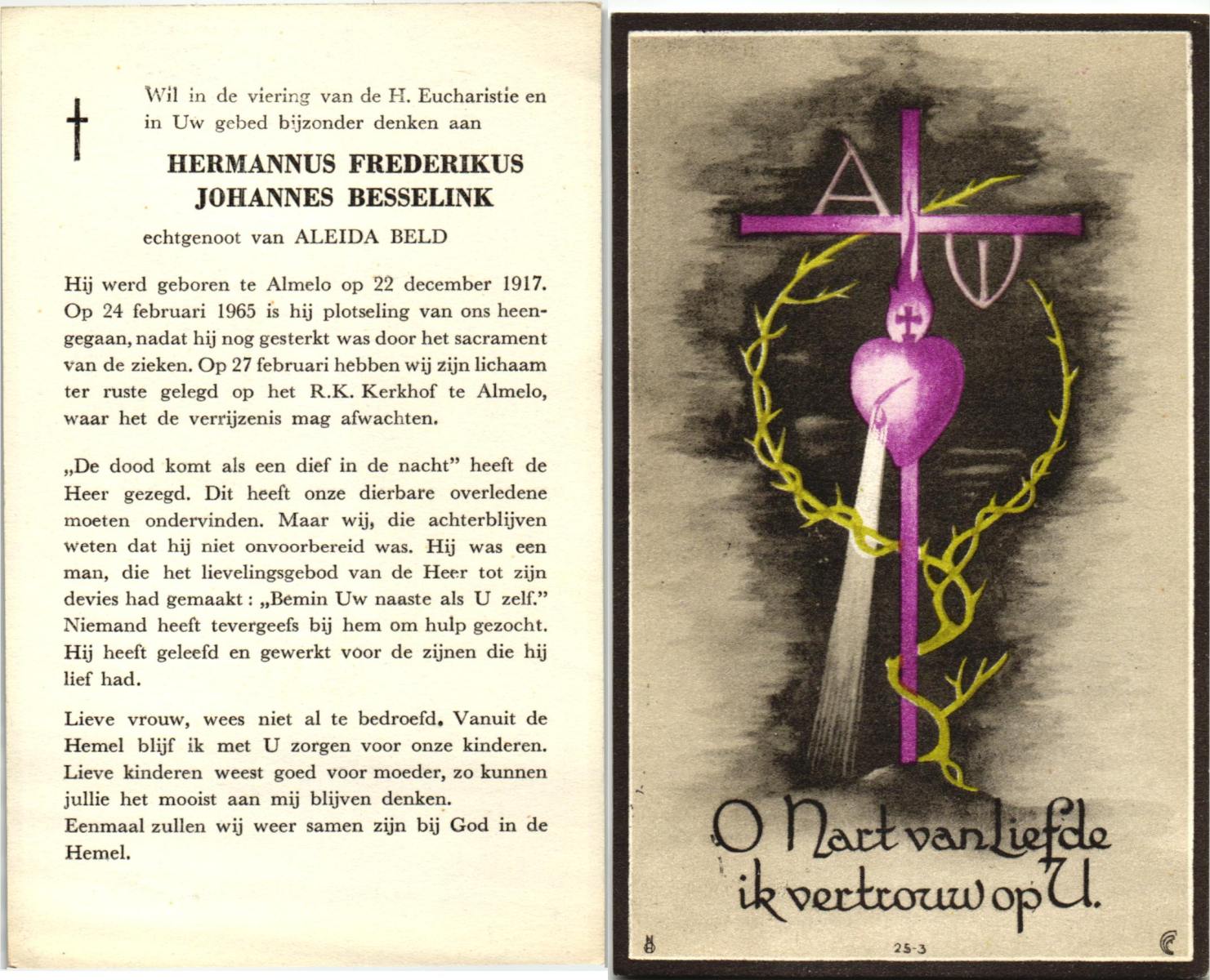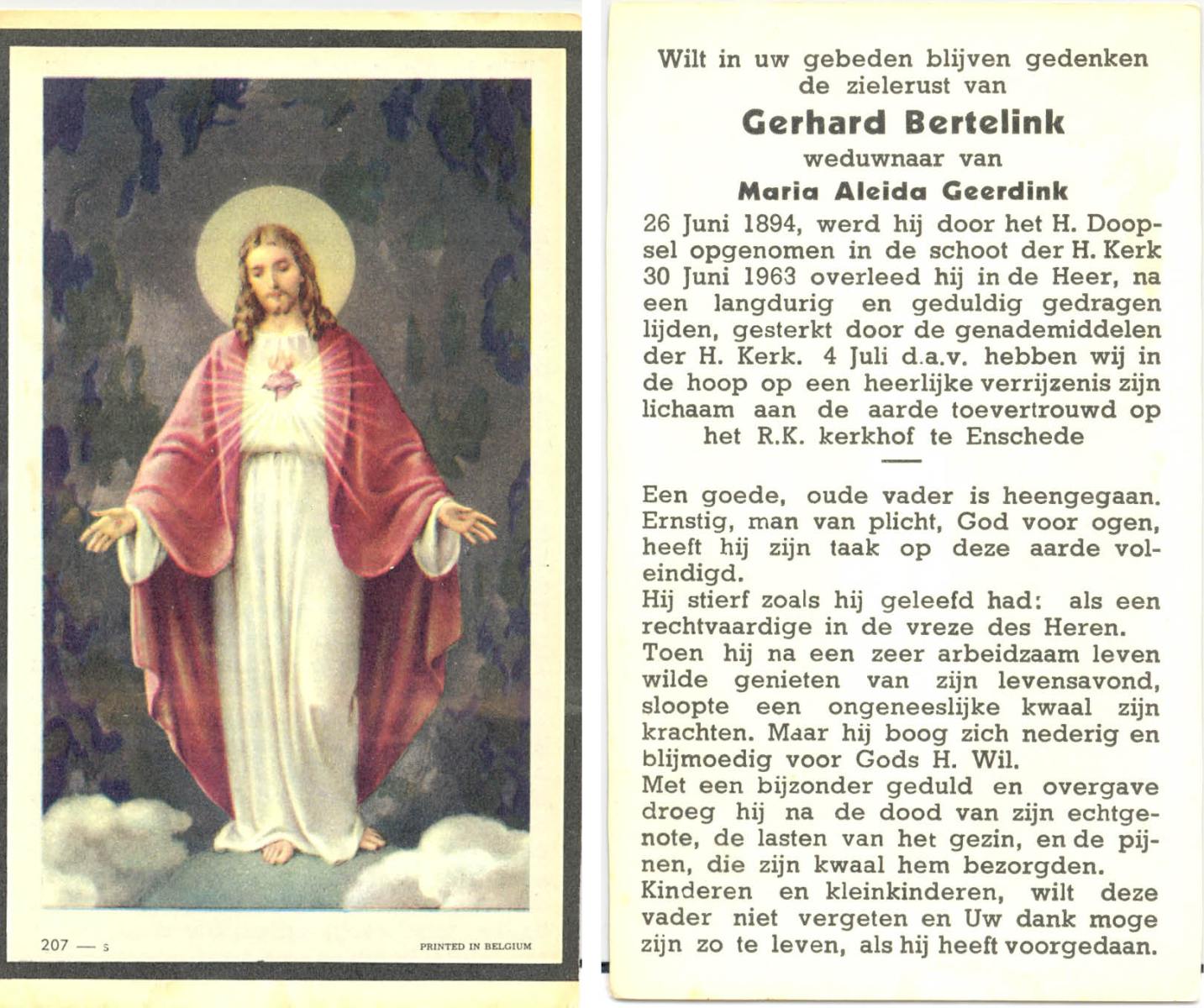 BIEMANS, Hermannus Hendrikus, geboren op 27-04-1897 te De Belte/Slagharen, overleden op 21-7-1984 te Hardenberg op 87-jarige leeftijd, begraven op 25-7-1984 te Slagharen, R.K.Kerhof de Belte.