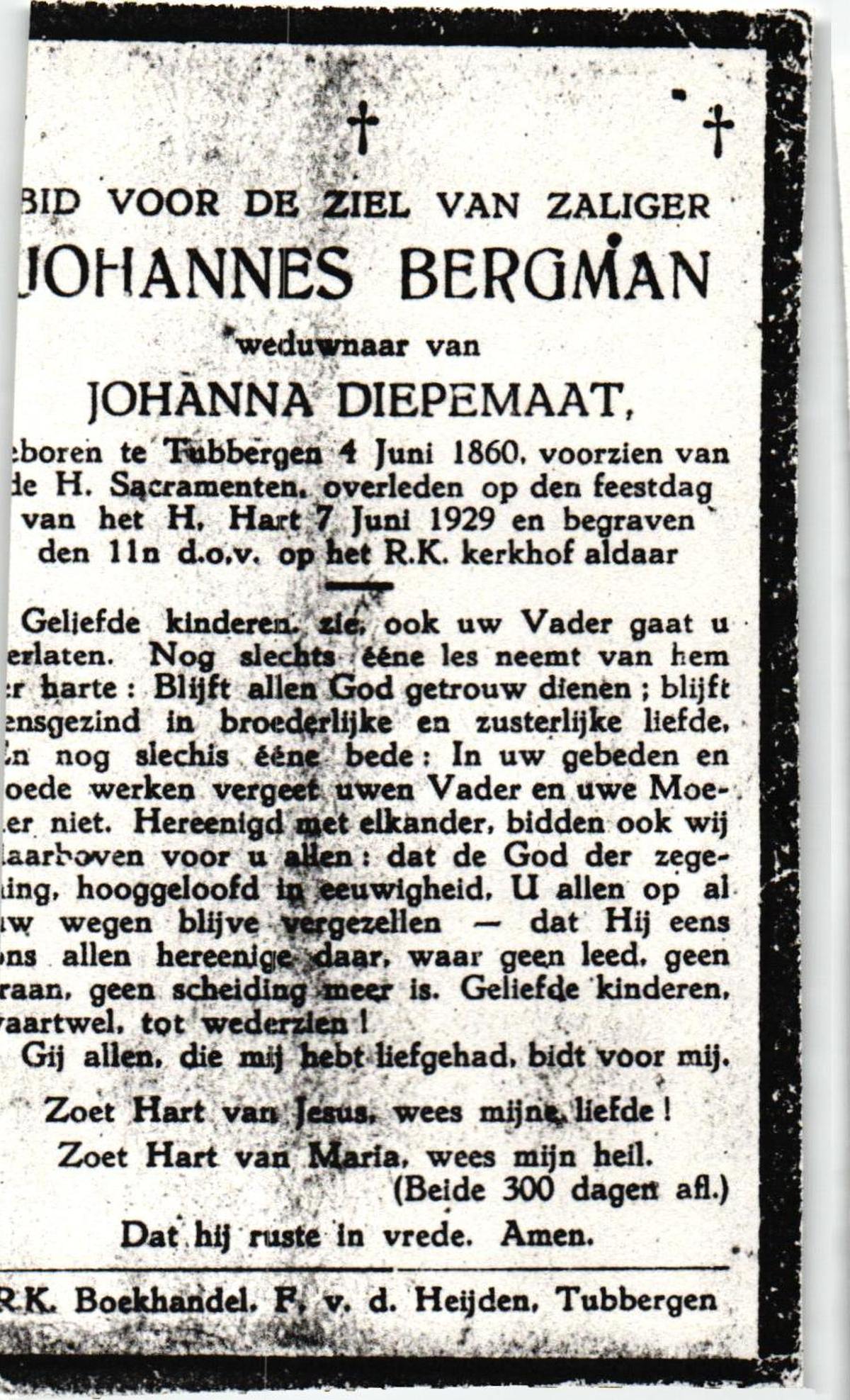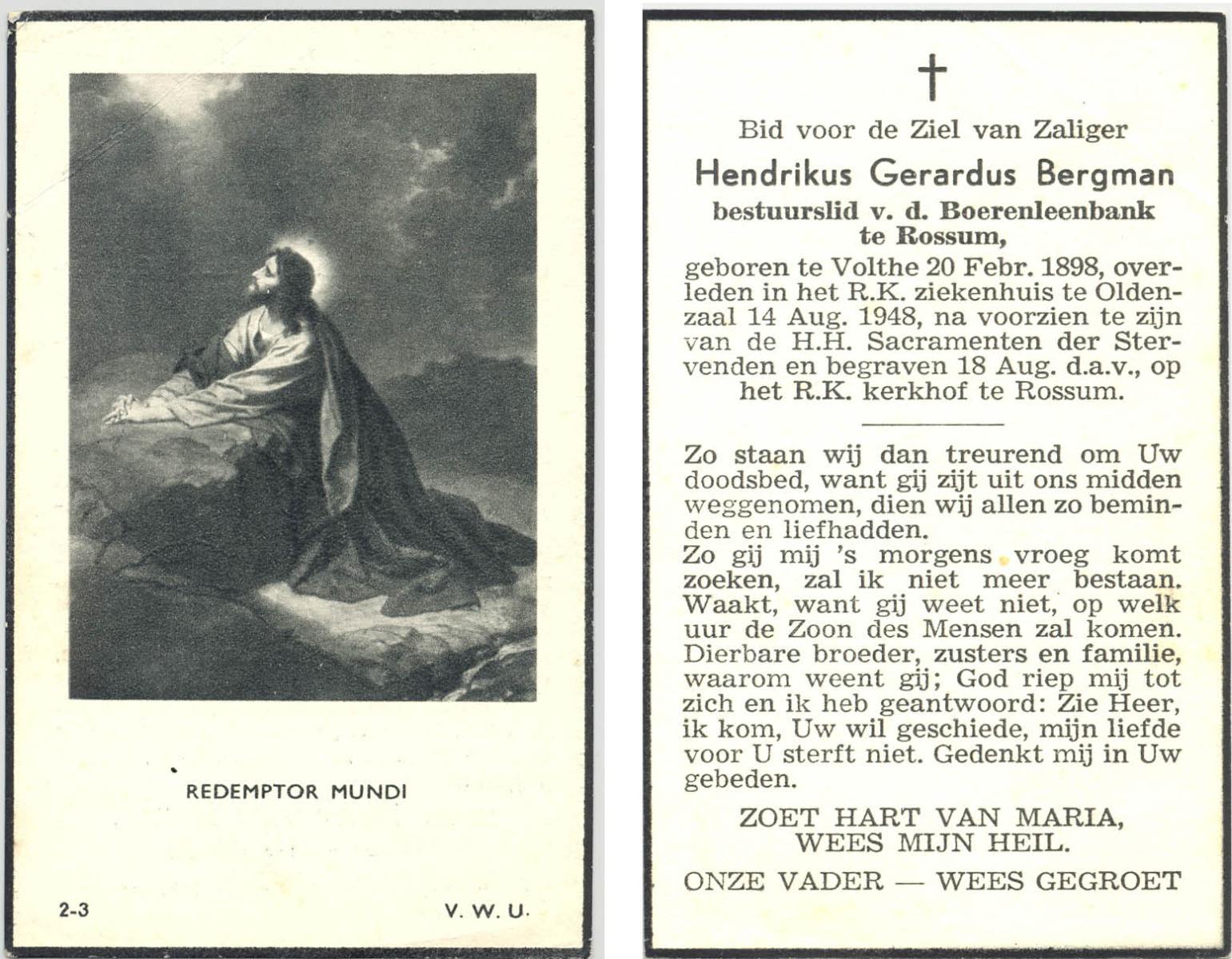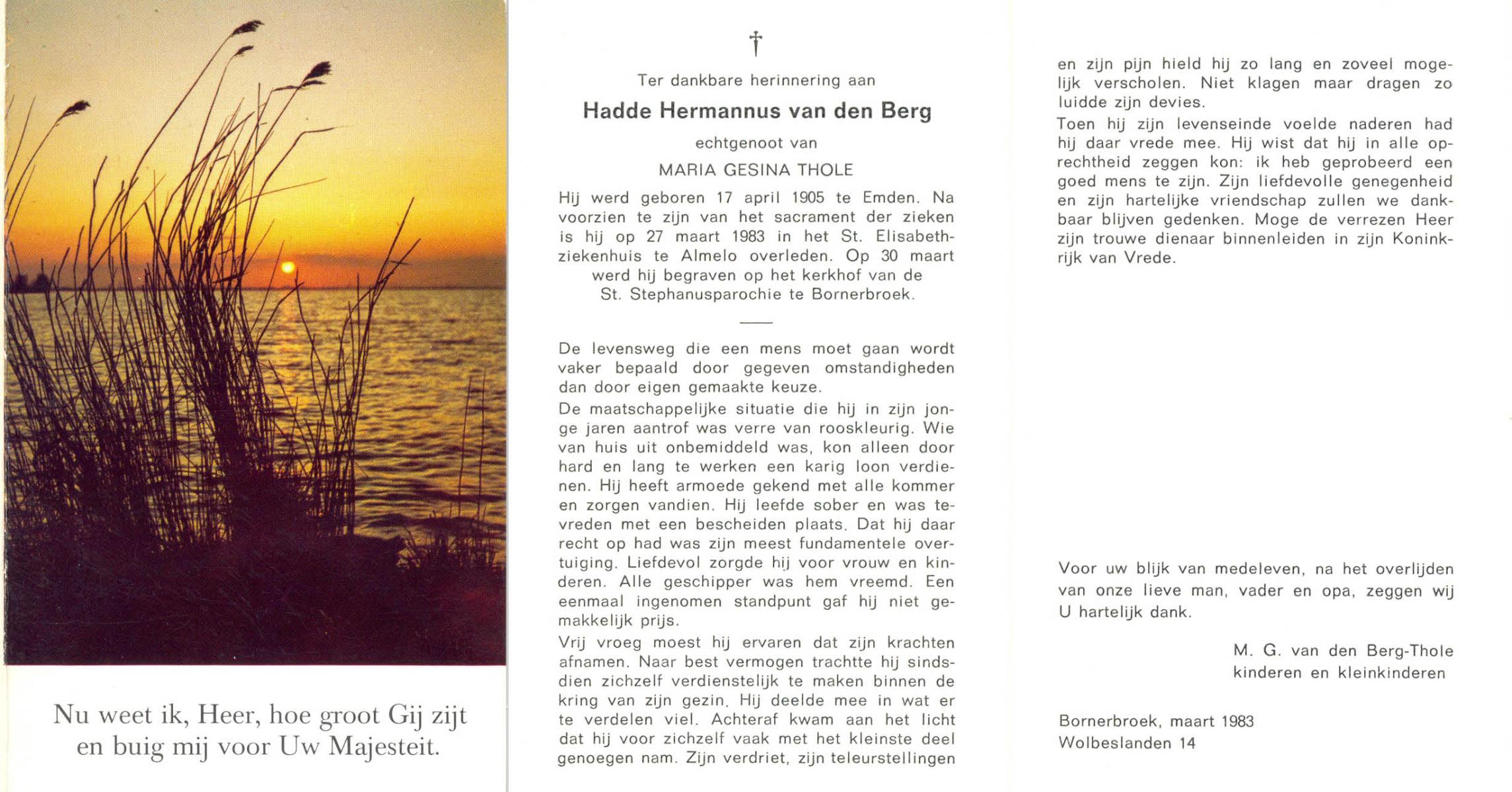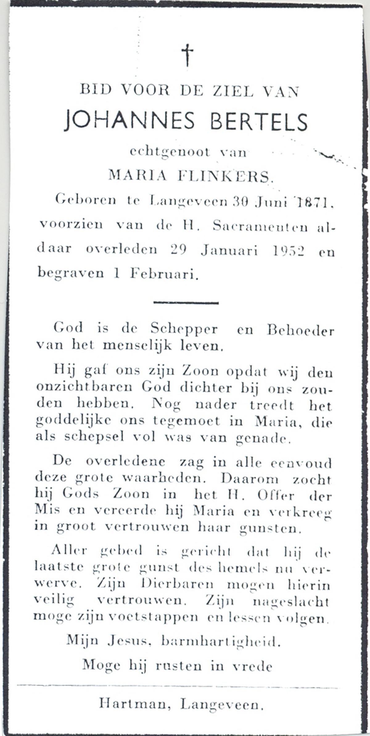 BIEMANS, Hermannus Hendrikus, geboren op 27-04-1897 te De Belte/Slagharen, overleden op 21-7-1984 te Hardenberg op 87-jarige leeftijd, begraven op 25-7-1984 te Slagharen, R.K.Kerhof de Belte.