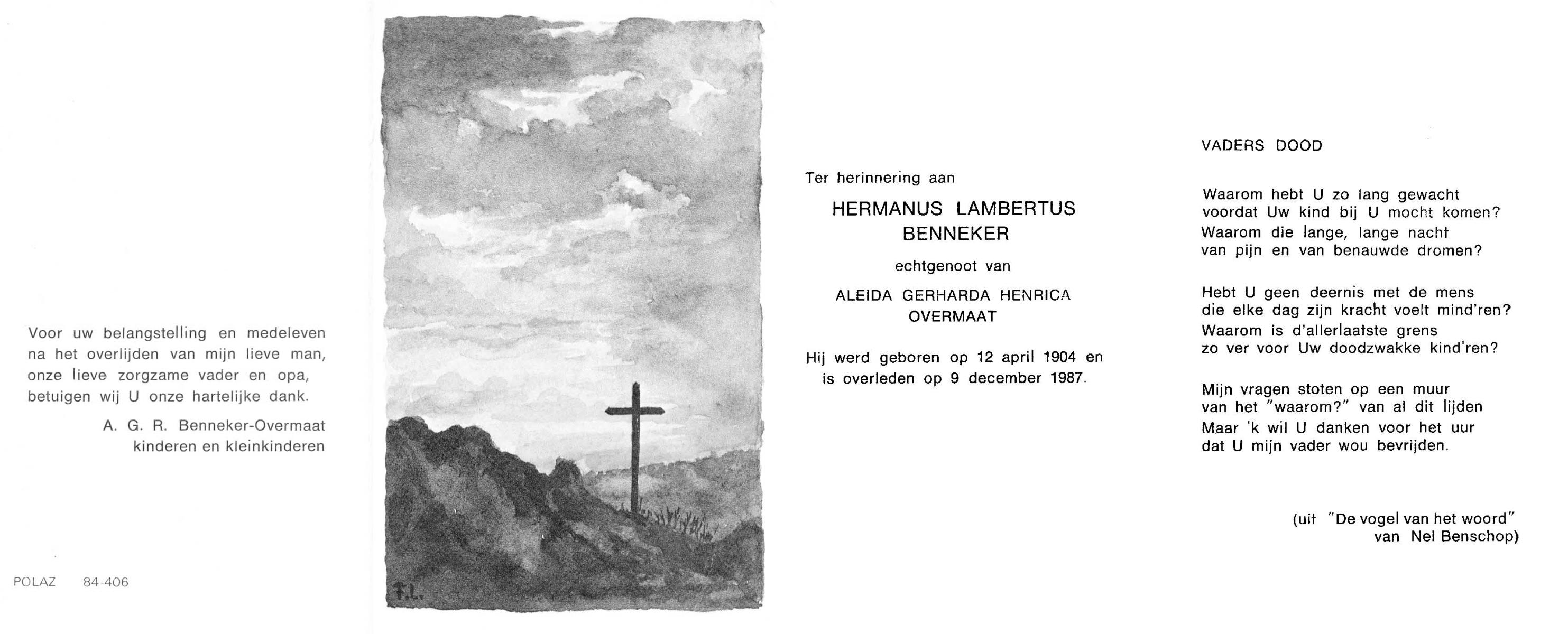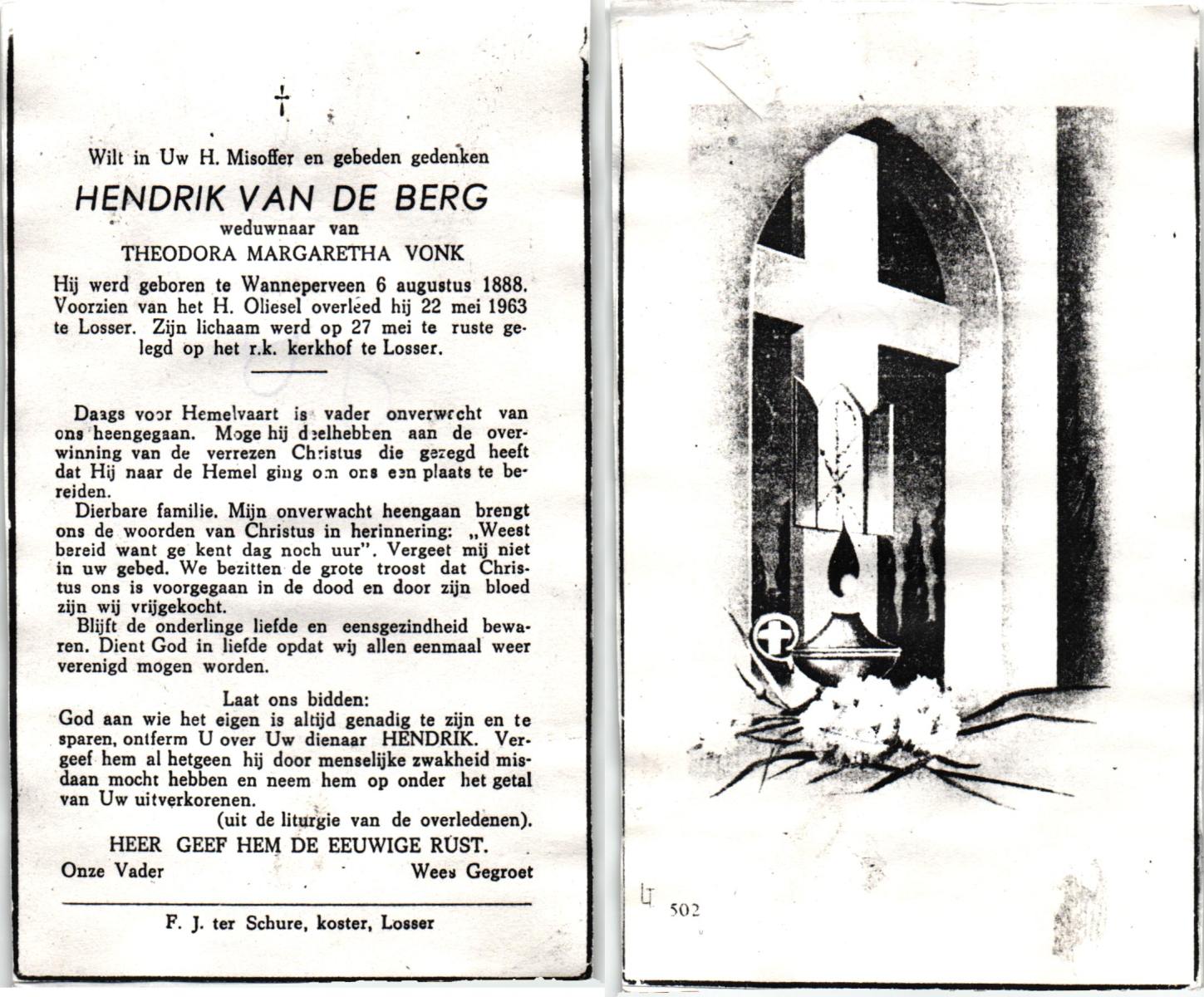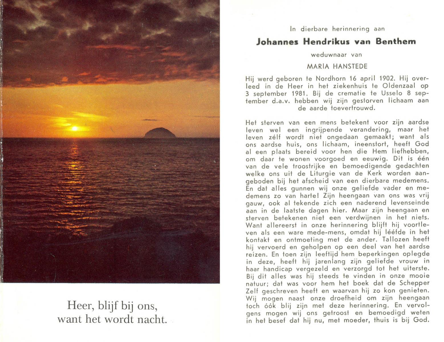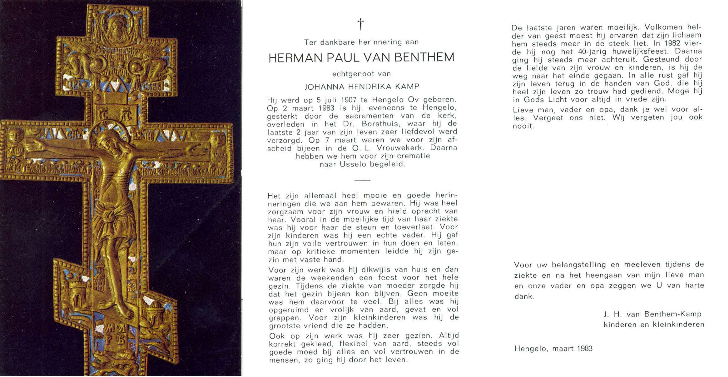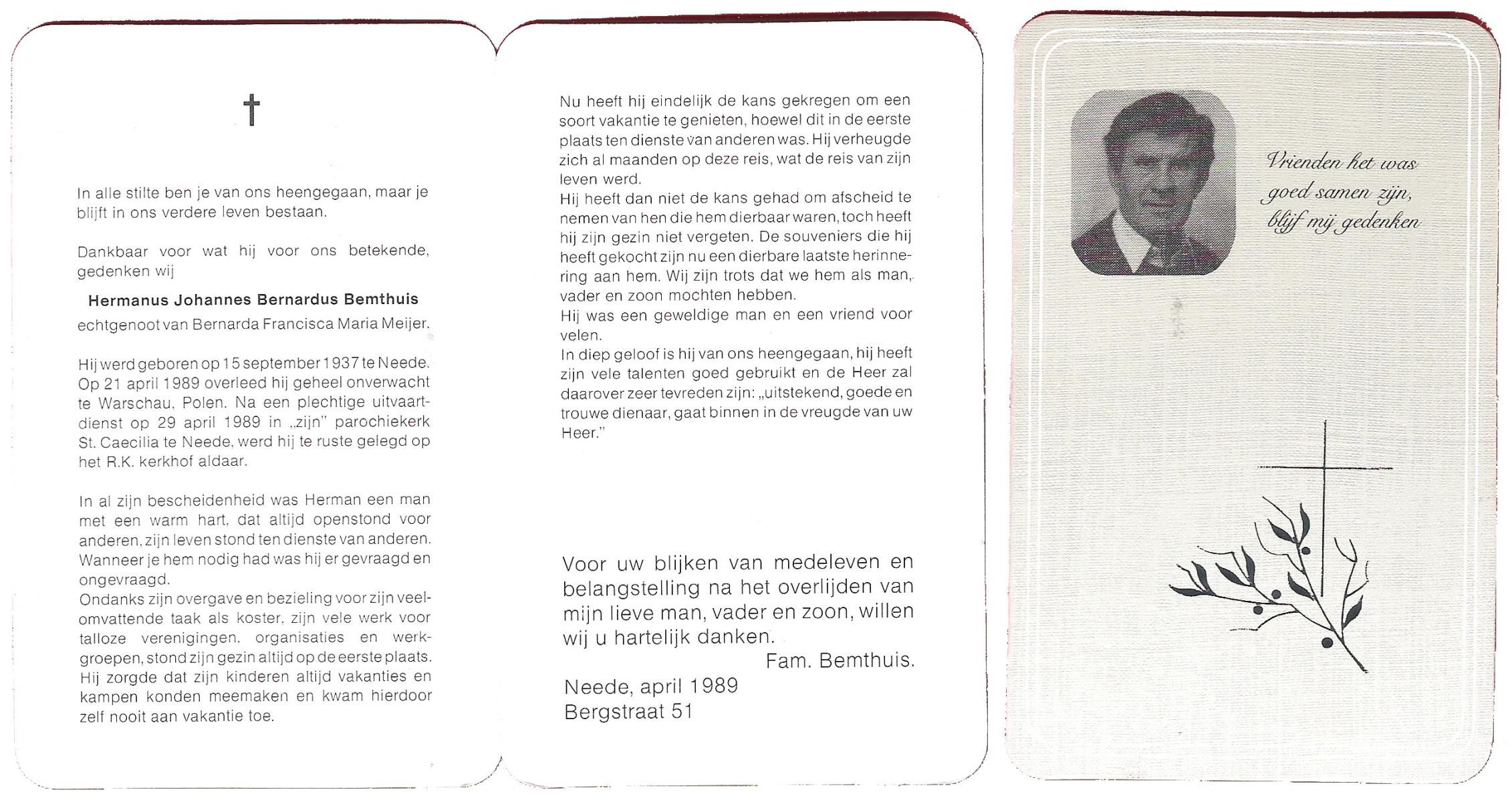 BIEMANS, Hermannus Hendrikus, geboren op 27-04-1897 te De Belte/Slagharen, overleden op 21-7-1984 te Hardenberg op 87-jarige leeftijd, begraven op 25-7-1984 te Slagharen, R.K.Kerhof de Belte.
