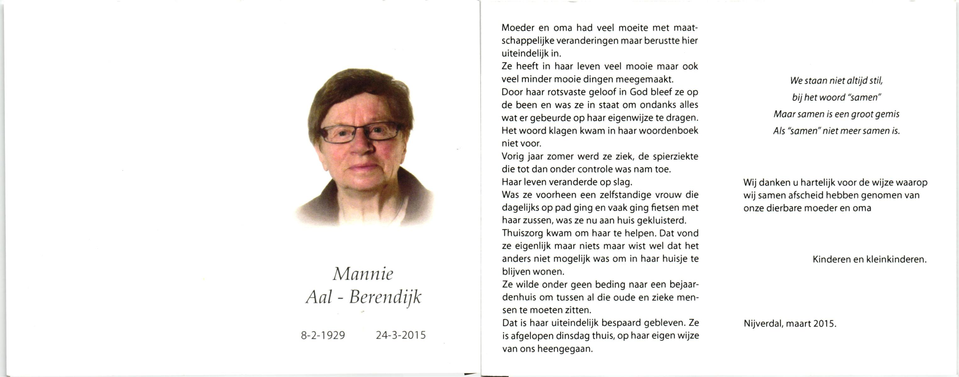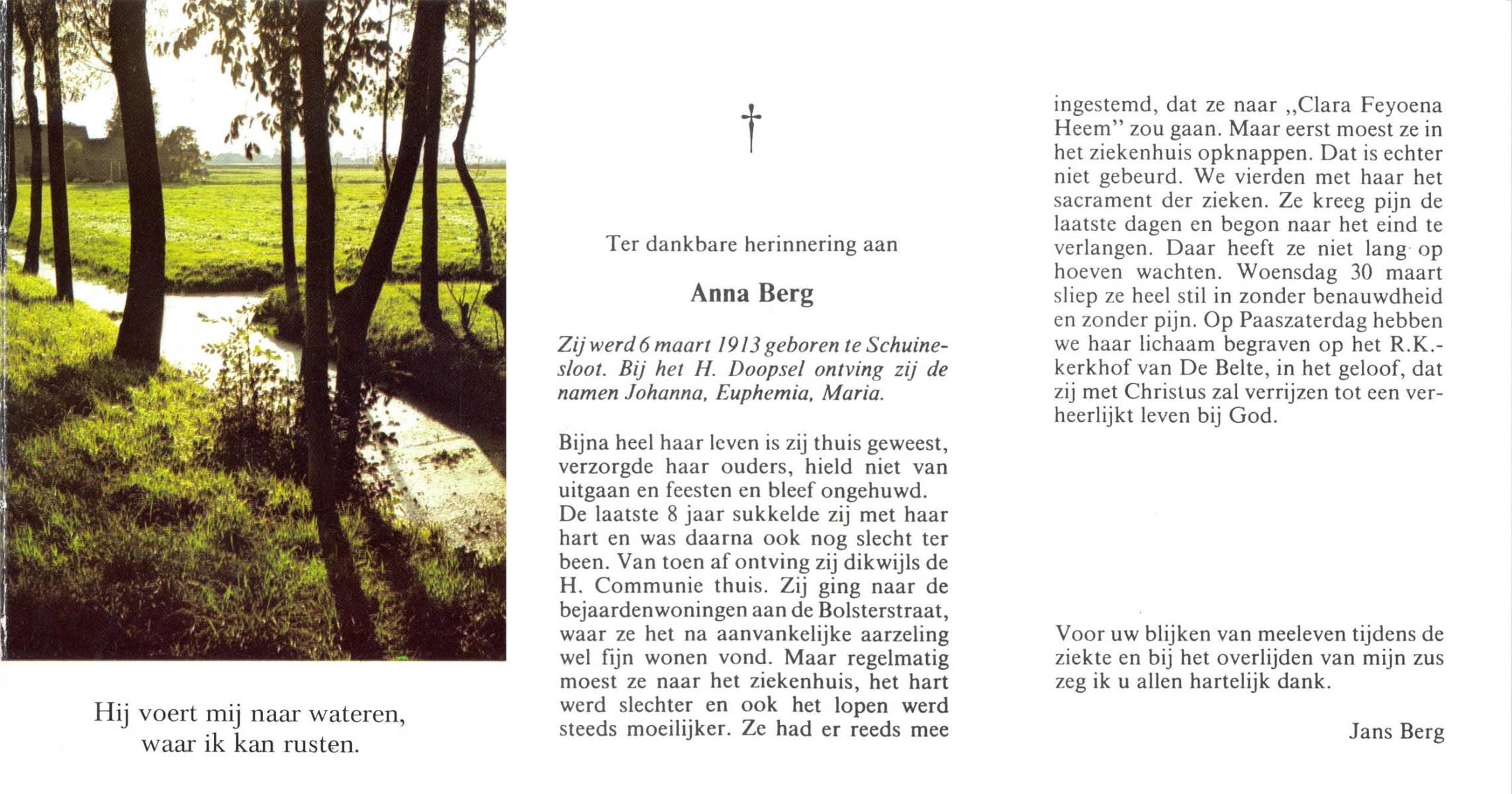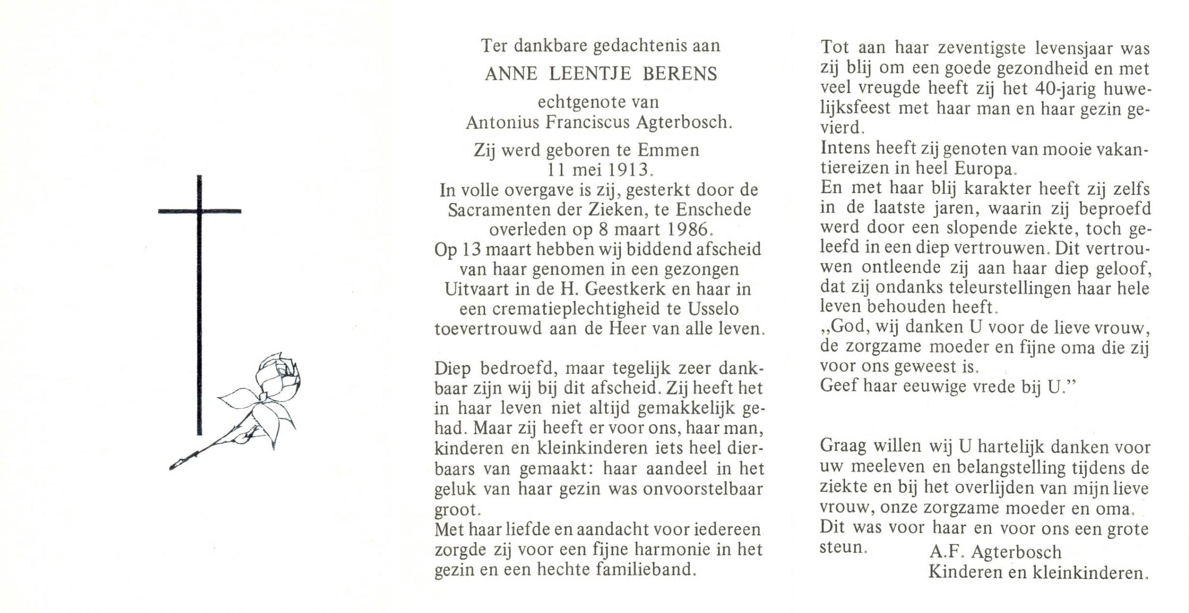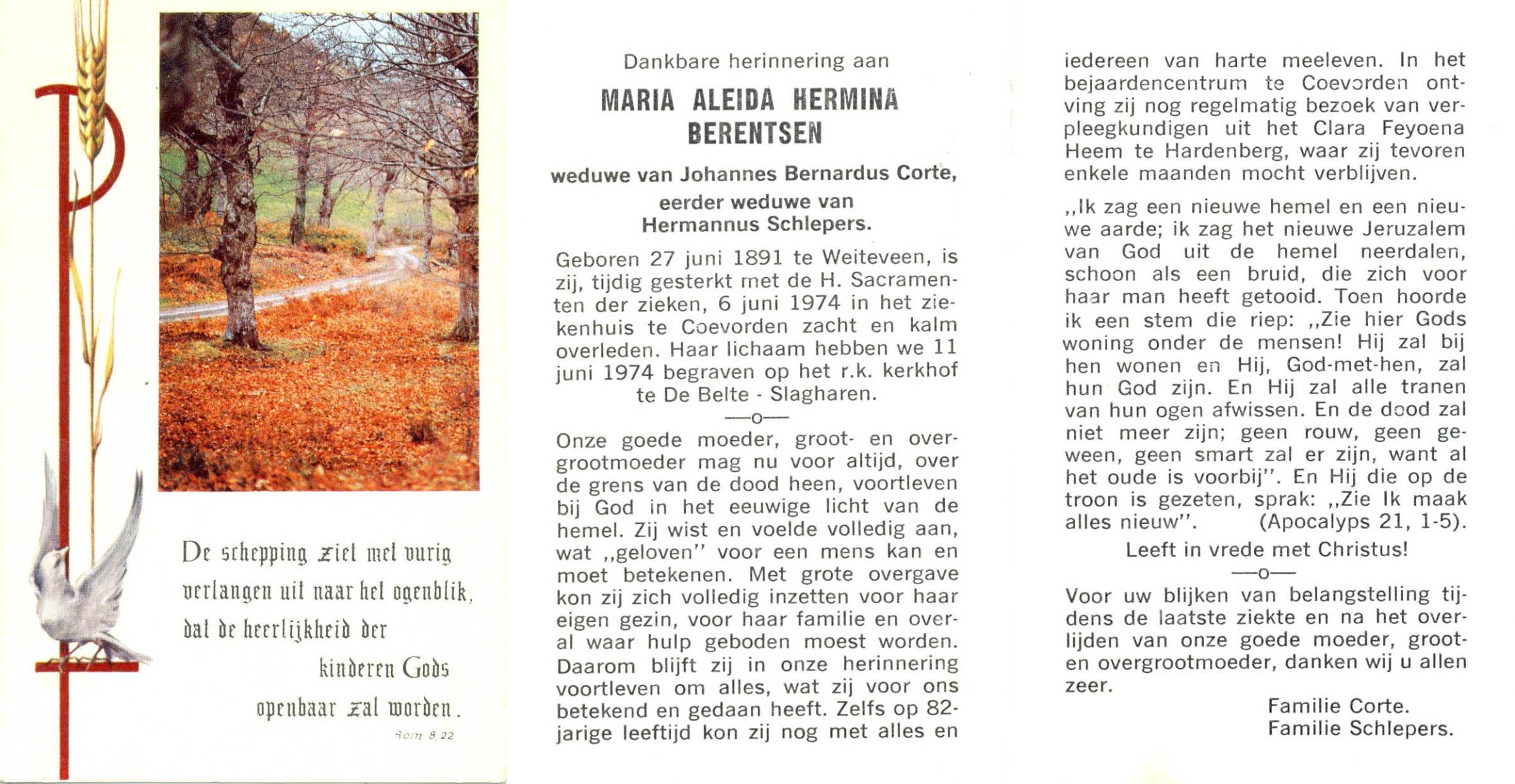 BIEMANS, Anna Willemina, geboren op 28-02-1895 te Slagharen, overleden op 30-9-1986 te Hardenberg op 91-jarige leeftijd, begraven op 3-10-1986 te Slagharen kerkhof de Belte.