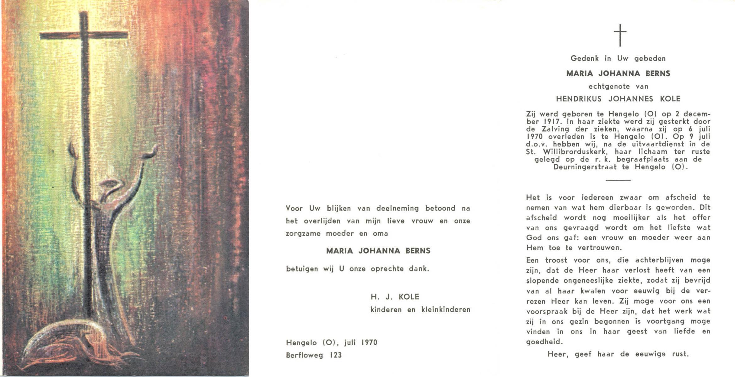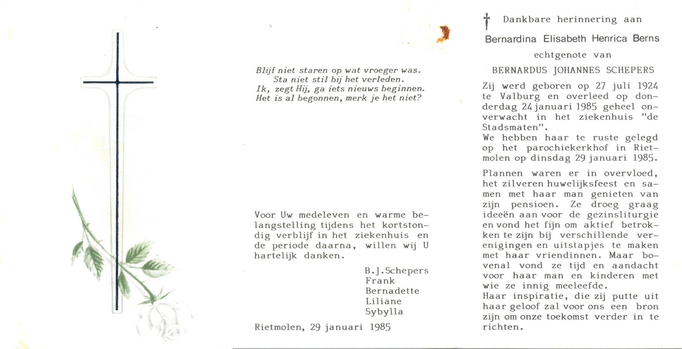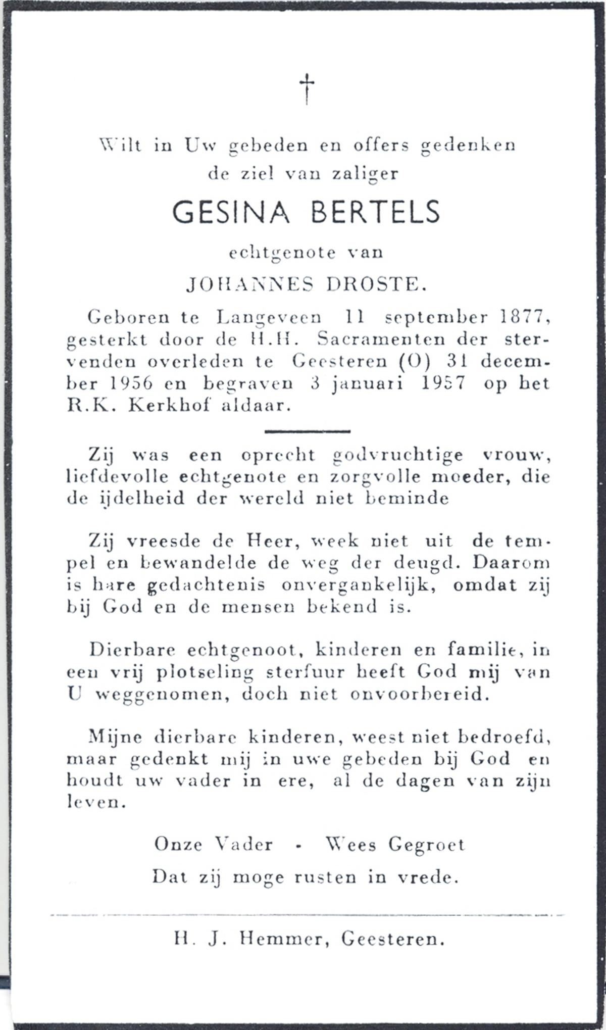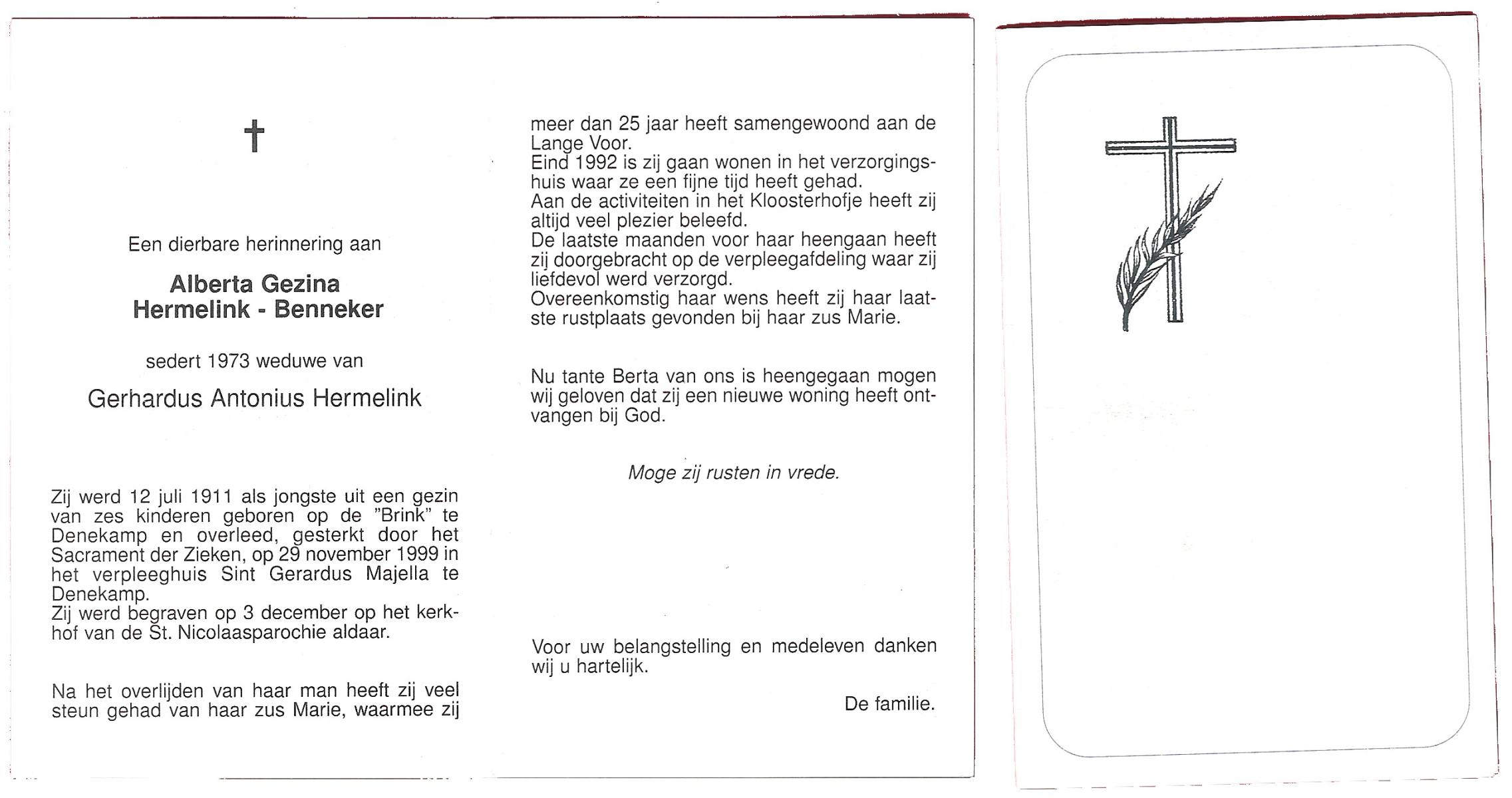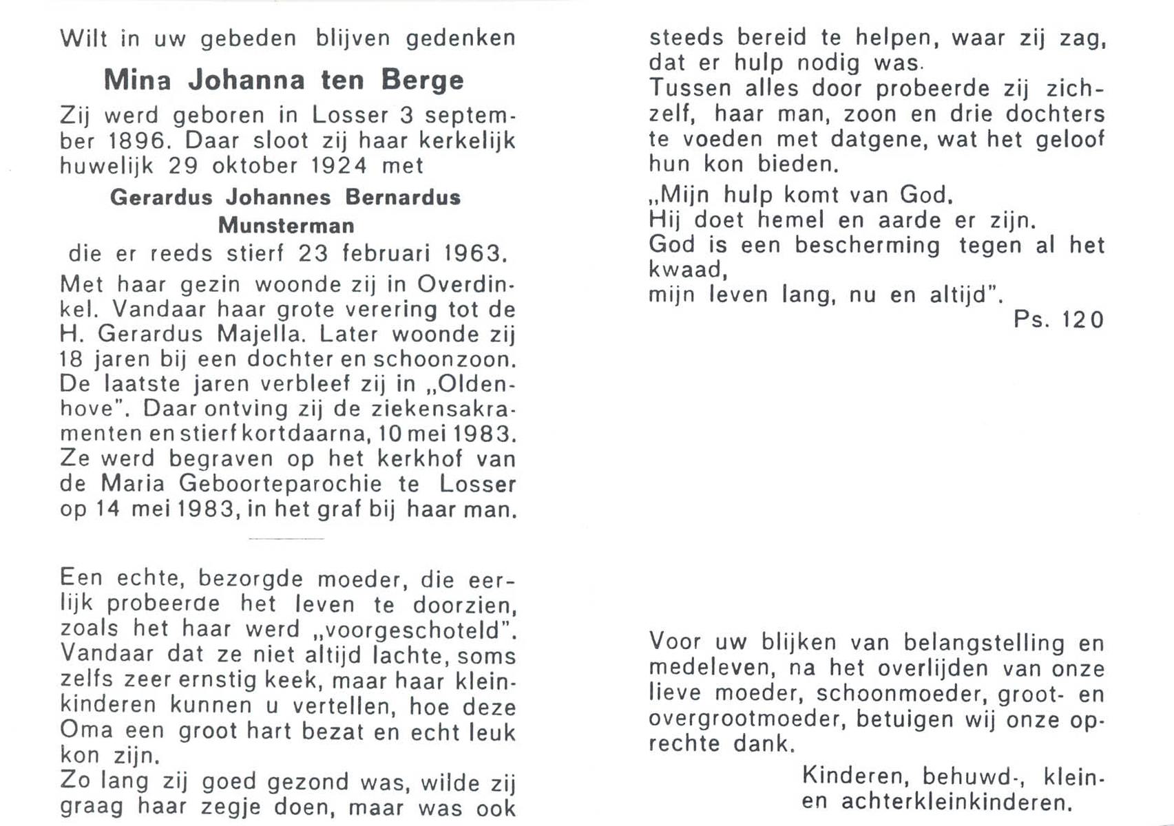 BIEMANS, Bernarda Hermina, geboren op 13-12-1924 te Slagharen, overleden op 6-7-1981 te Hardenberg op 56-jarige leeftijd.