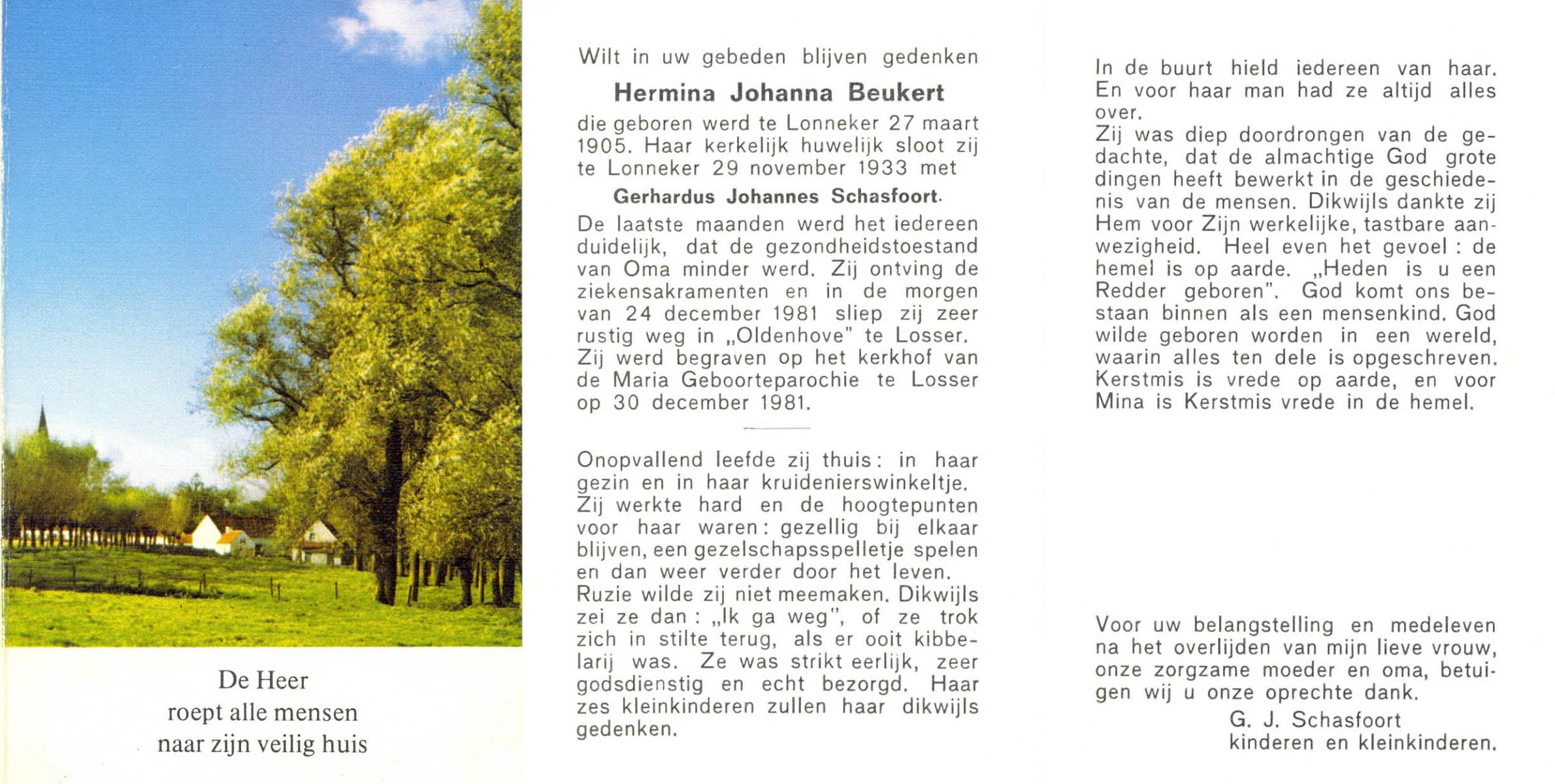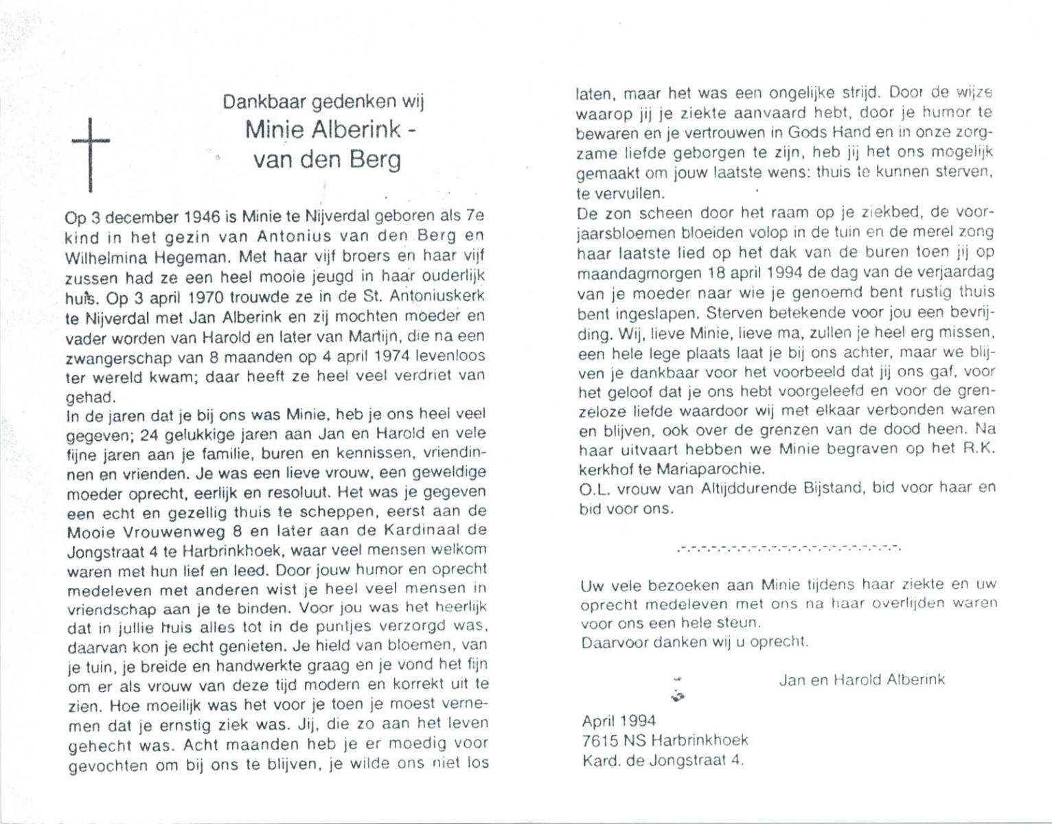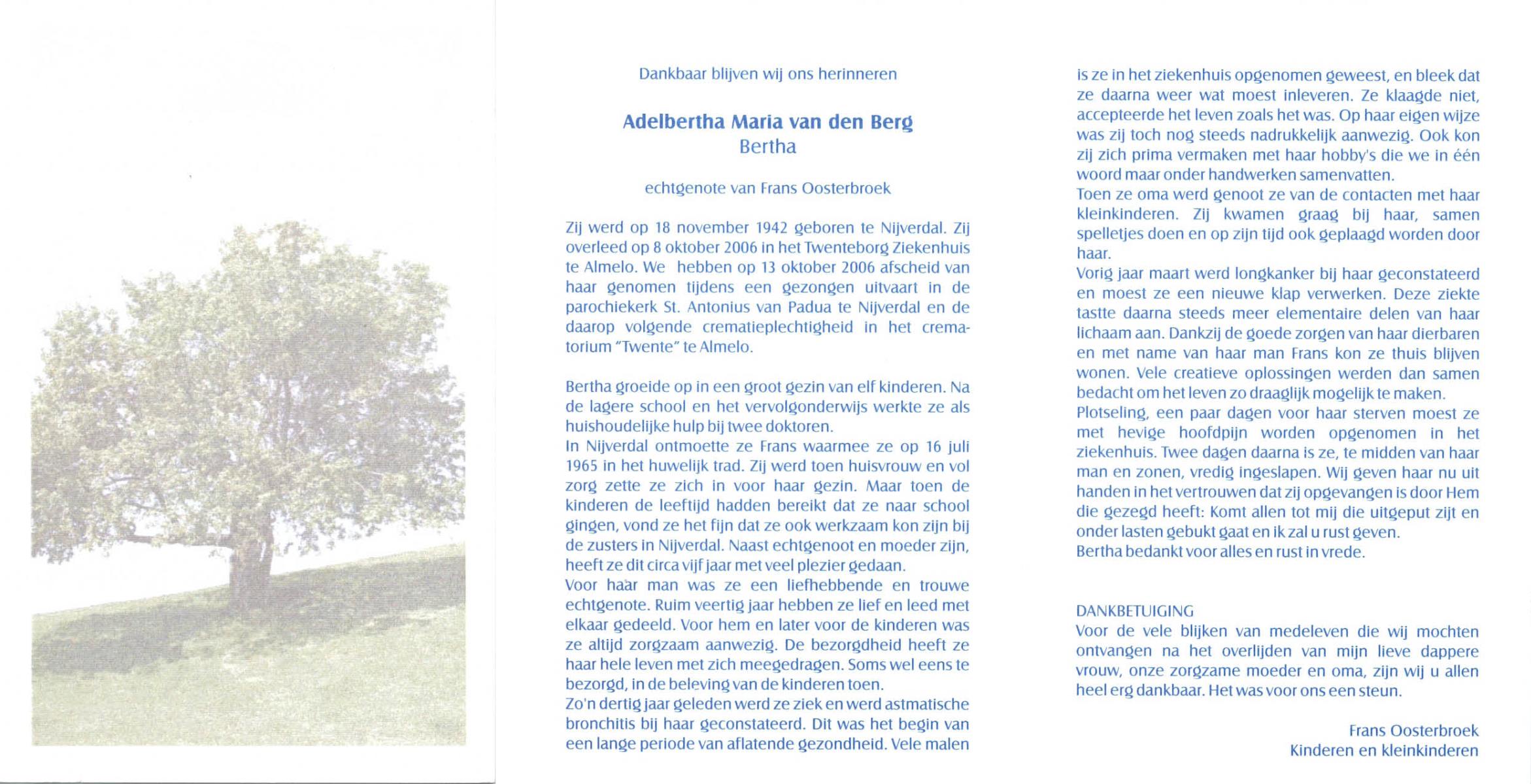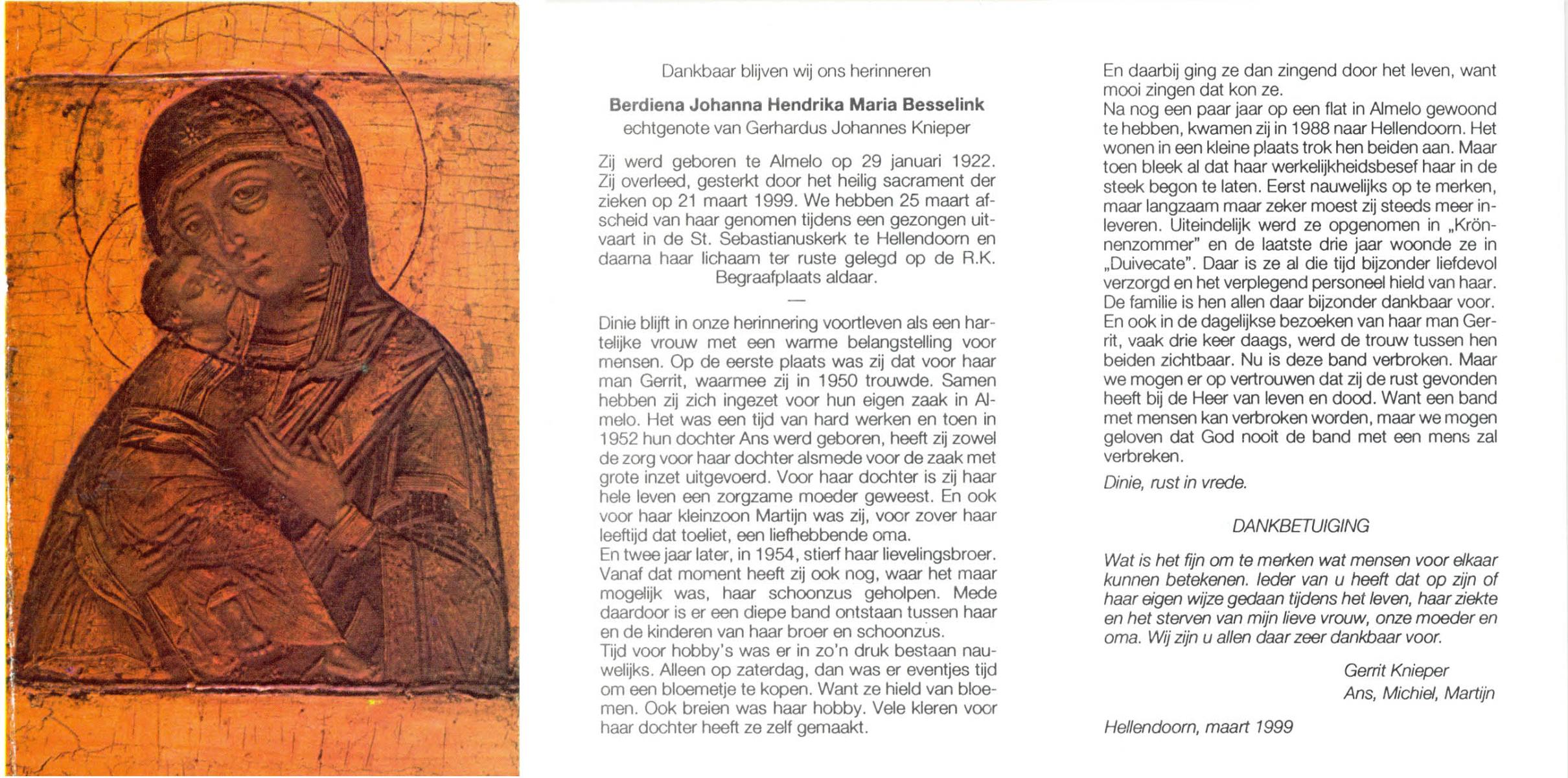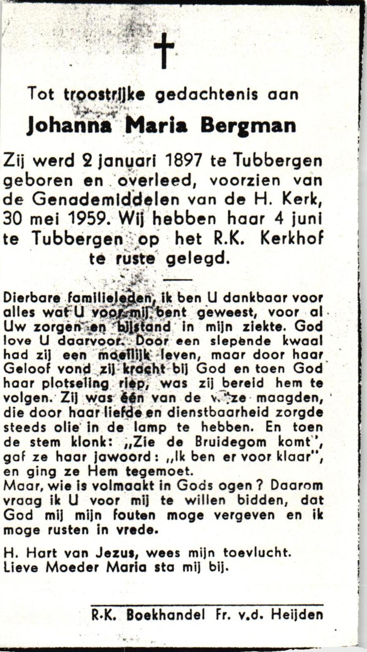 BIEMANS, Bernarda Hermina, geboren op 13-12-1924 te Slagharen, overleden op 6-7-1981 te Hardenberg op 56-jarige leeftijd.